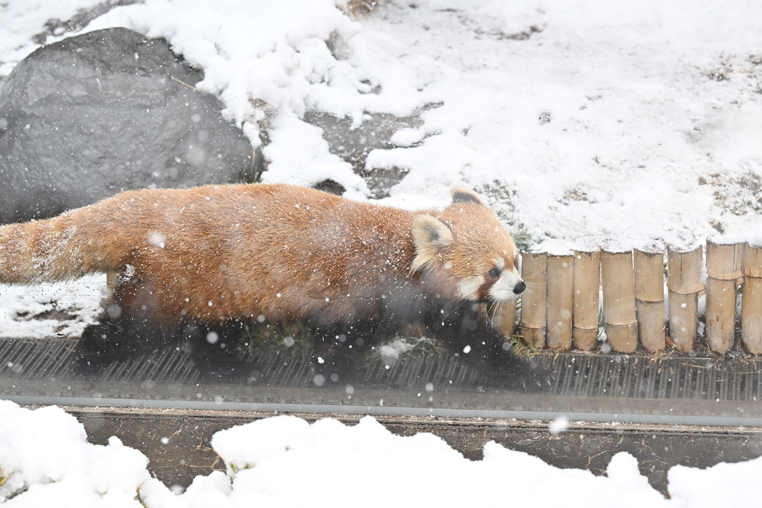 今日のパンダは9:30からです。夜のうちから雪が降り続き、園内は数センチの積雪となりました。