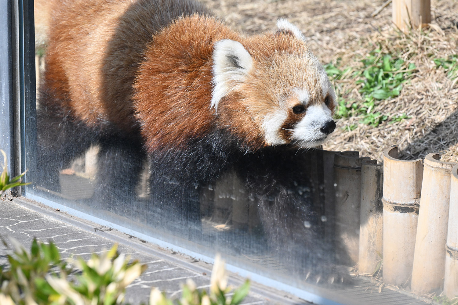 今日のパンダは14:00からです。今日も過ごしやすい暖かな陽気で、レッサーパンダ舎はやや混み合っていました。