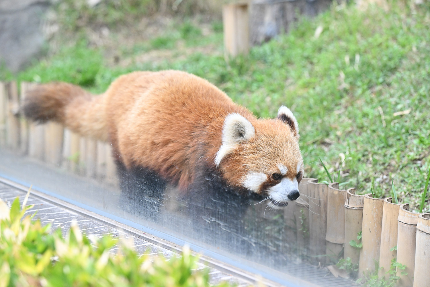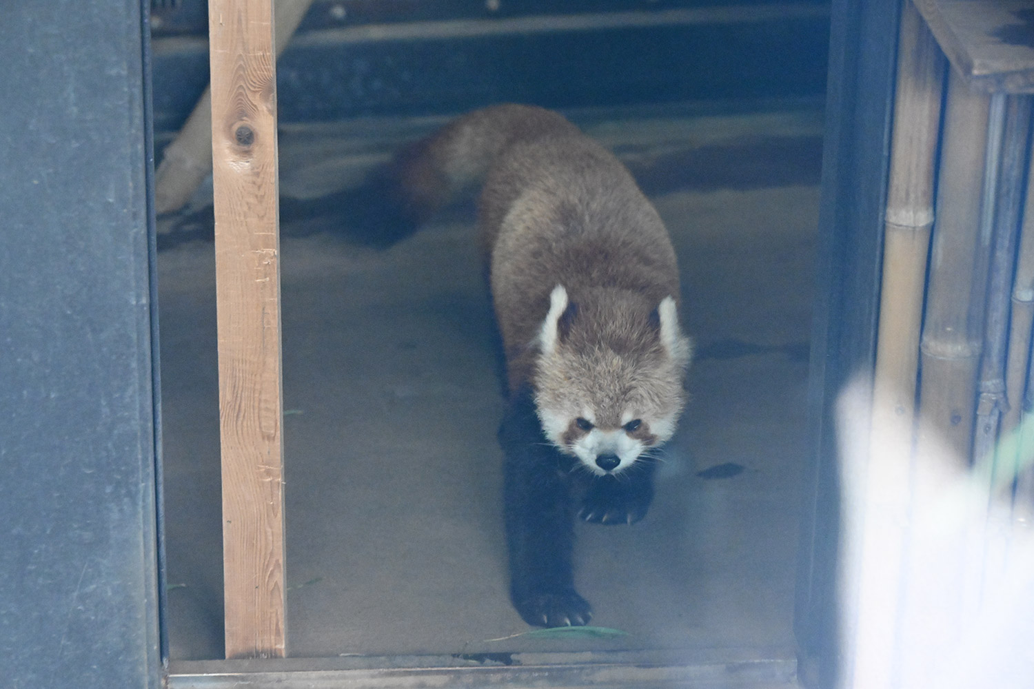 今日のパンダは11:00からです。肌寒い曇り空でレッサーパンダ舎は空いていました。