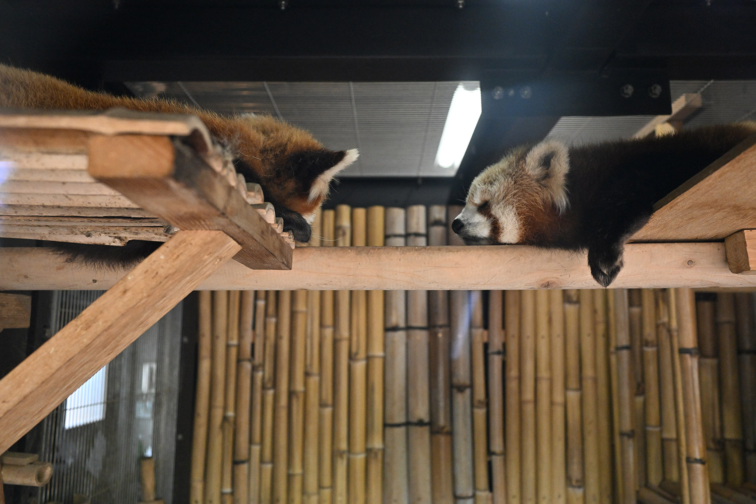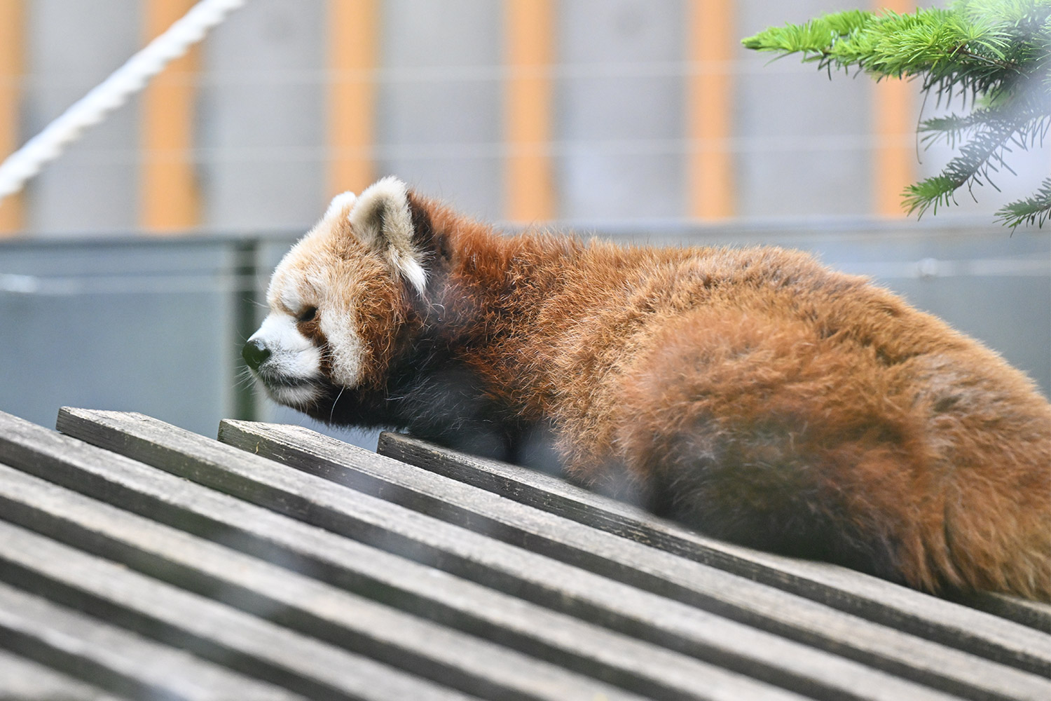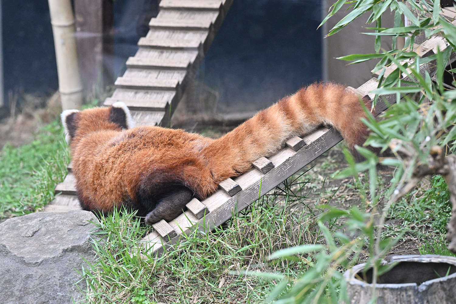 今日のパンダは11:00からです。行楽日和の土曜日はレッサーパンダ舎もやや混み合っていました。