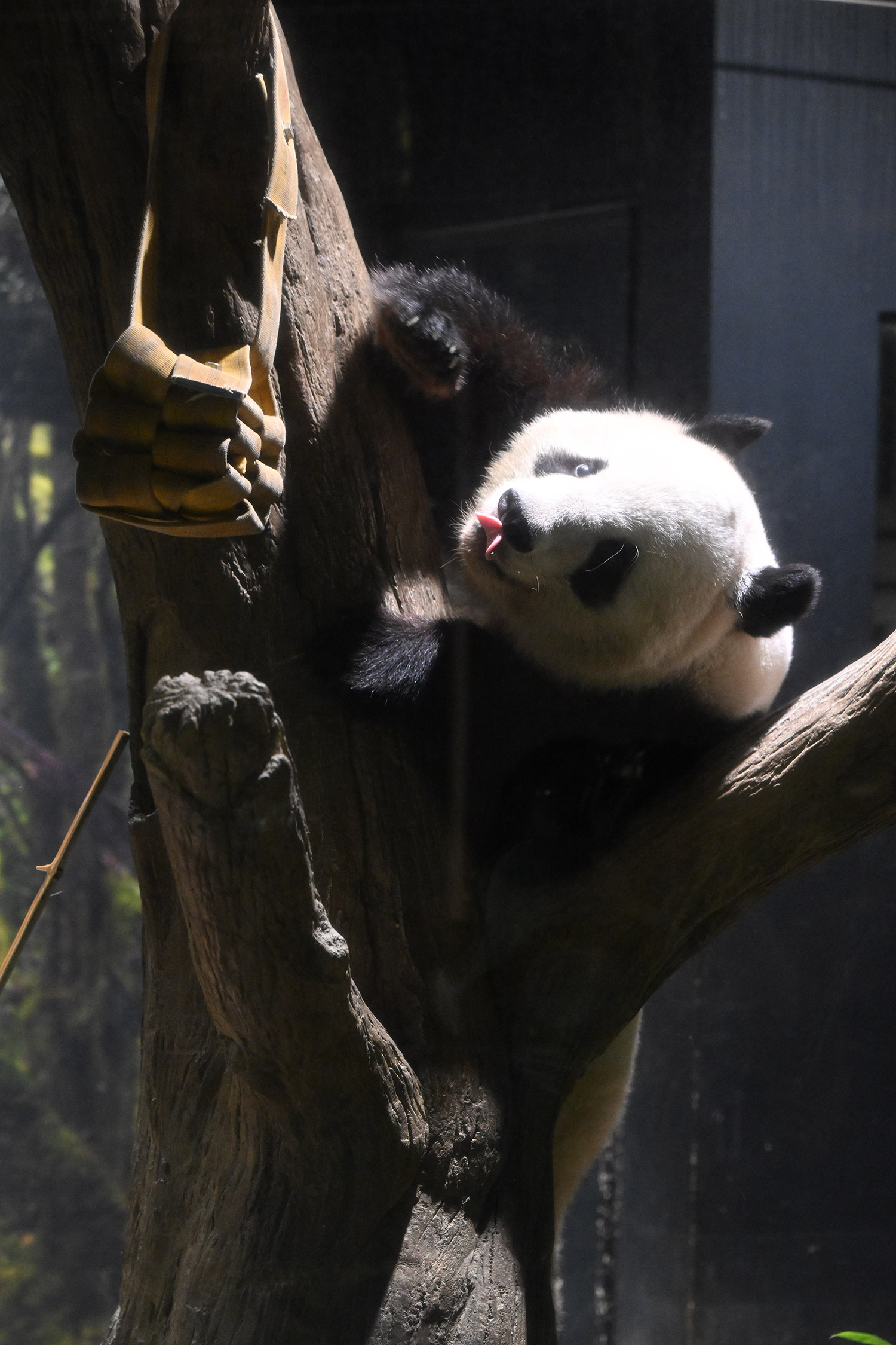 レイレイのお背中どーんとして艶やかで美しいですね🥰💕 シャオシャオは擬木によじ登って舌をペロリと可愛いです😄❤️ シャオくんのほうが小柄に見えますが、実際は10キロも重いのが不思議に思えます🤔佐々木さんは着やせする方だと推測しました🤣💦