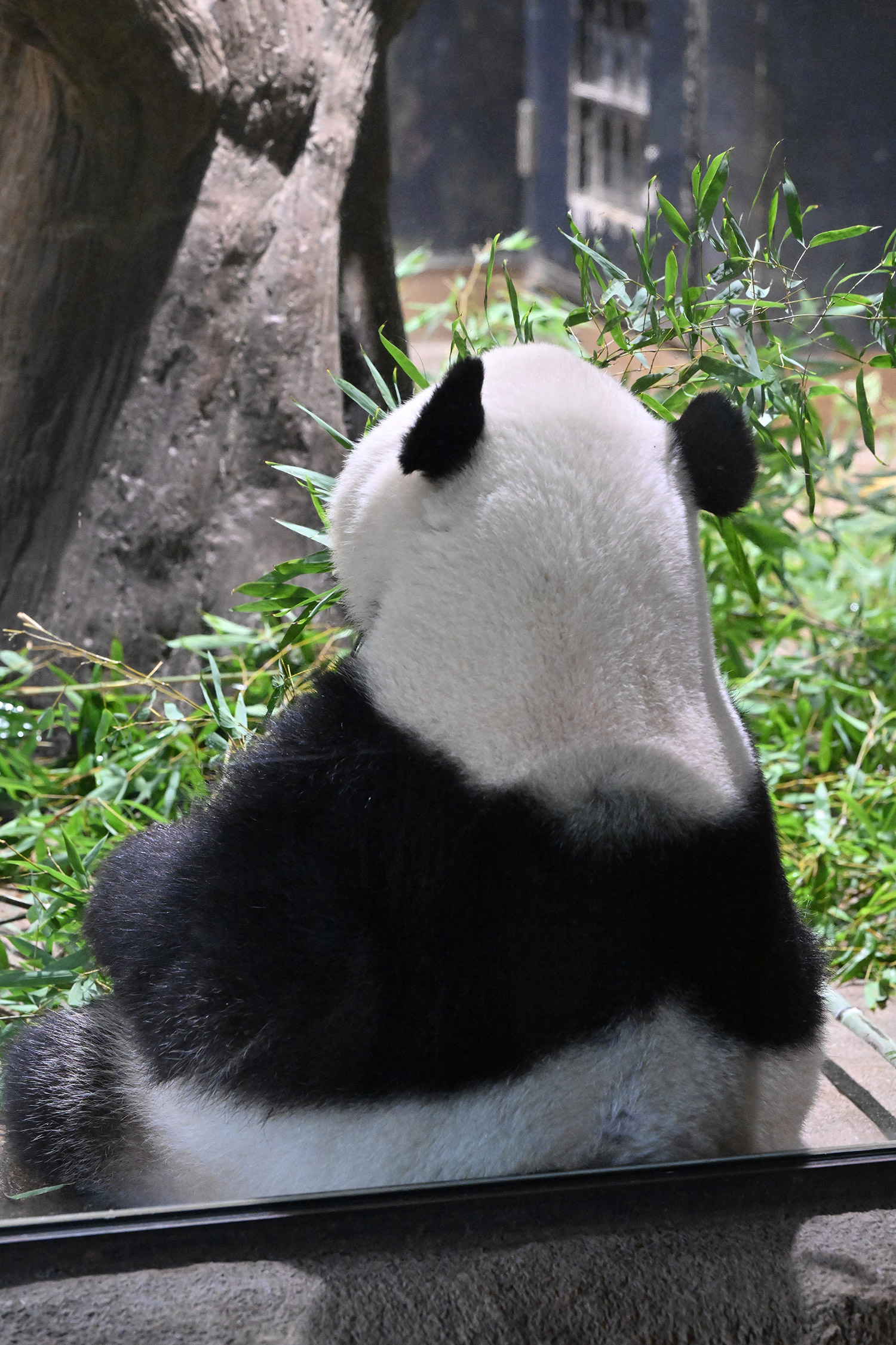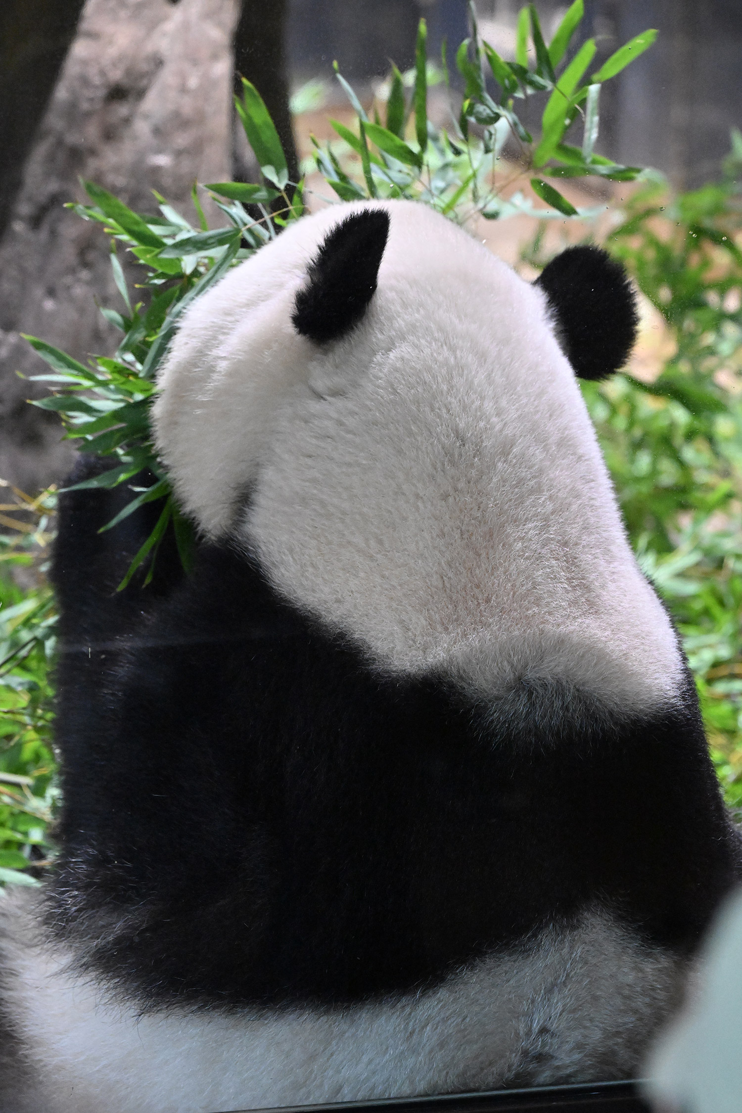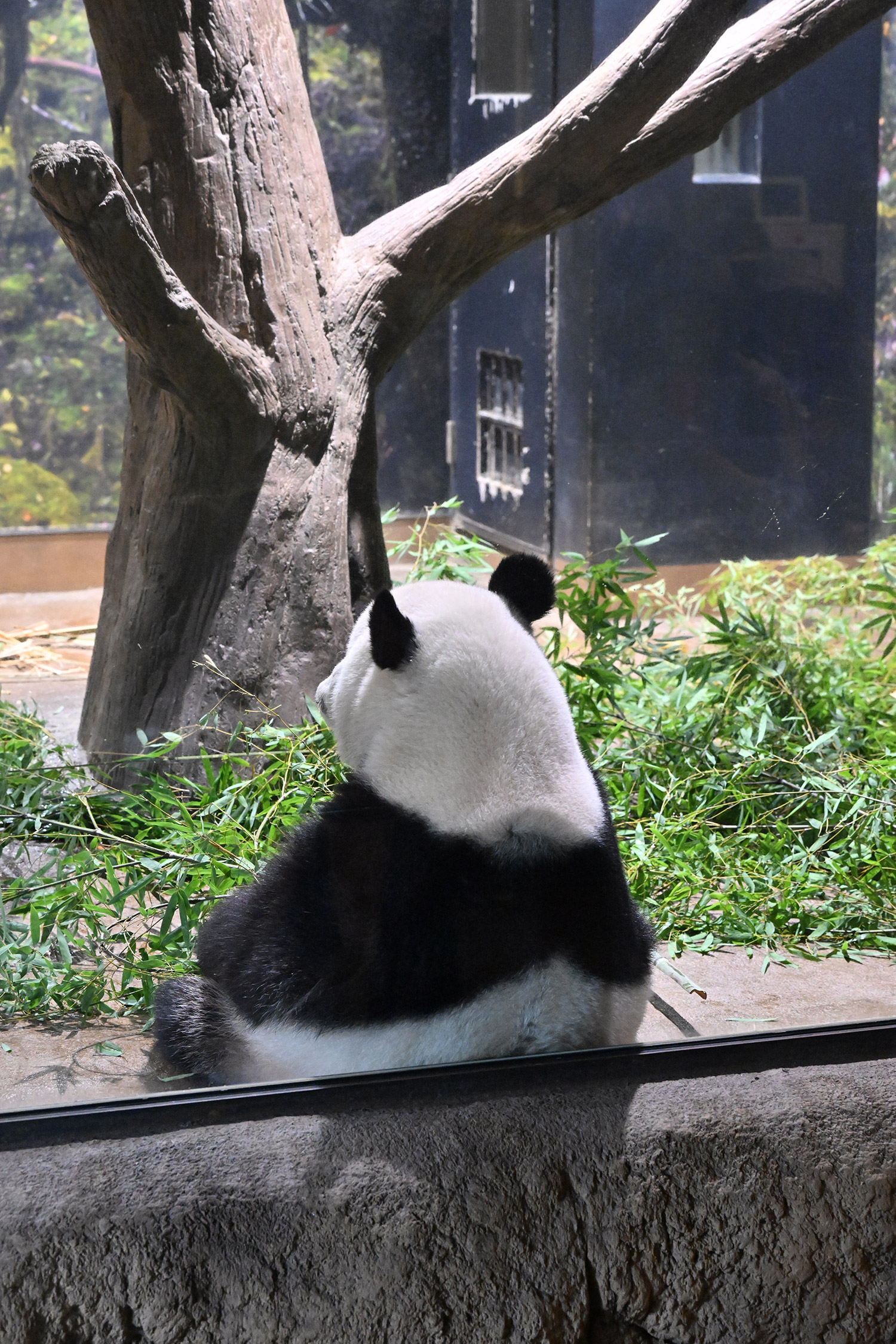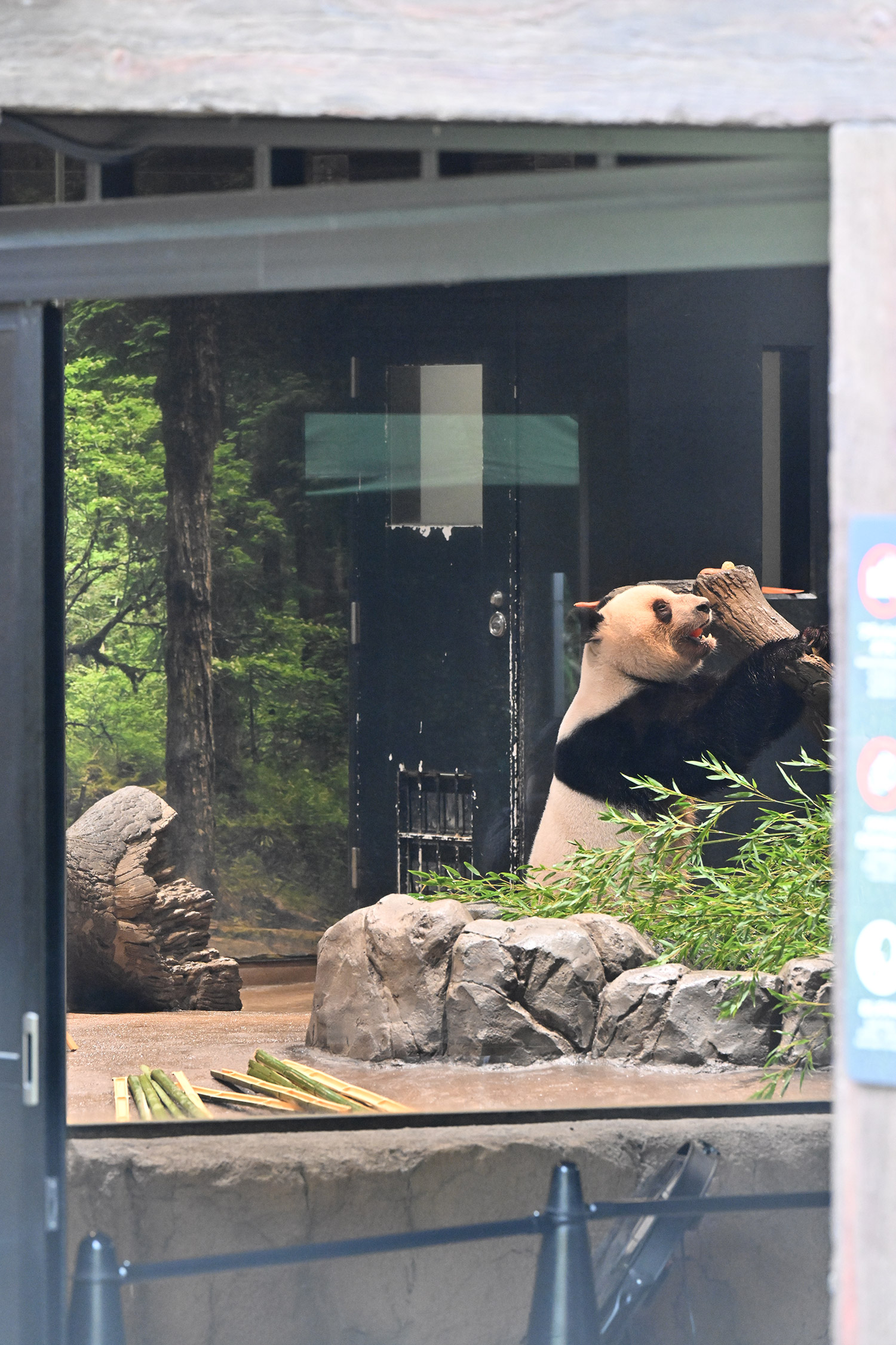 今日のパンダは10:00からです。今日も日差しがあるとやや暑めでパンダたちは室内展示でした。