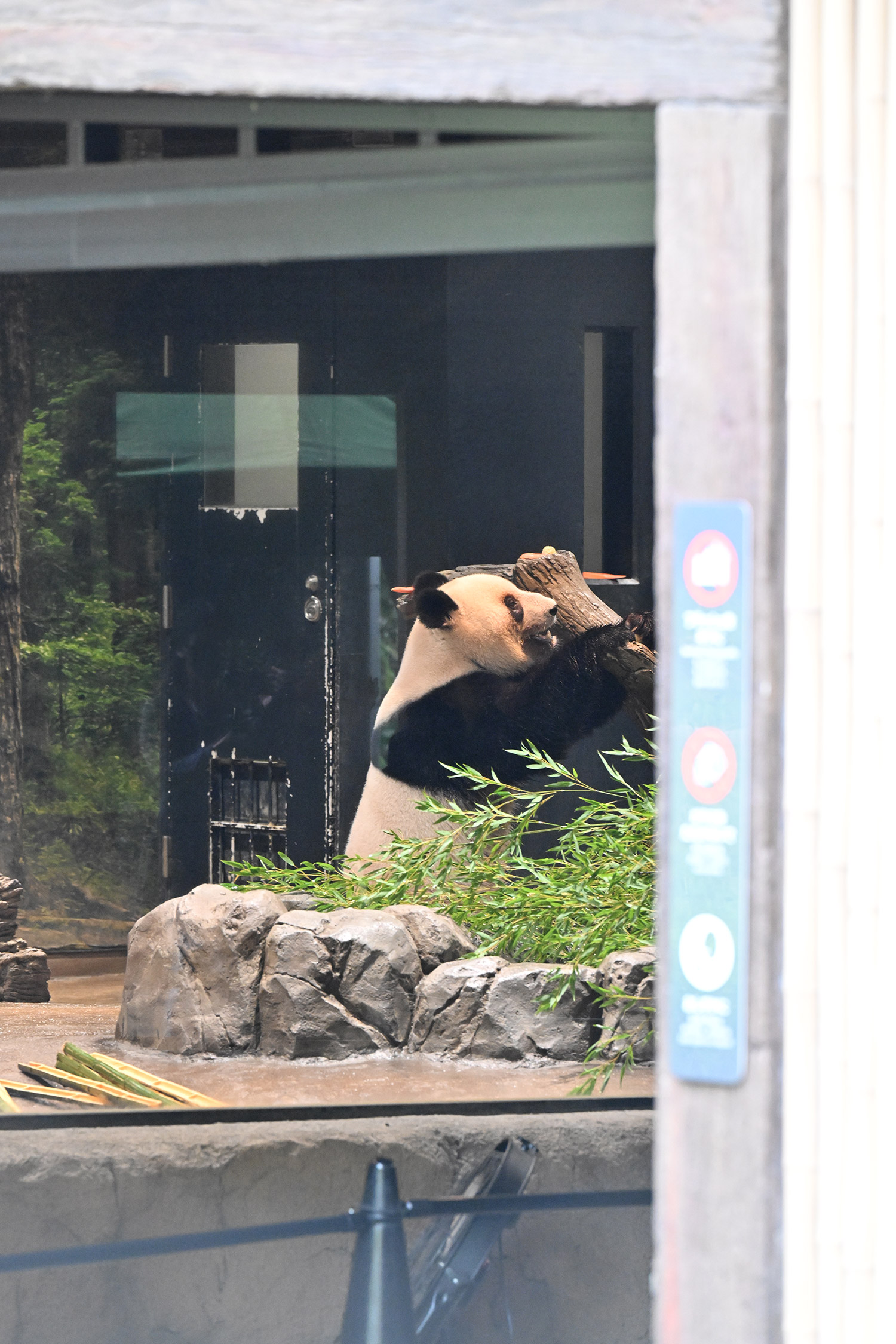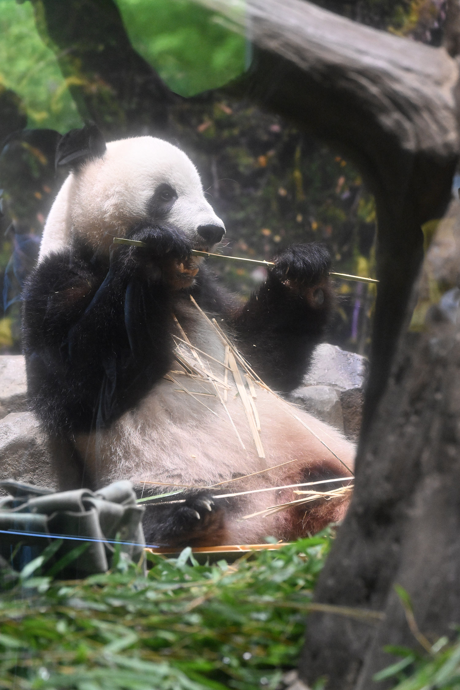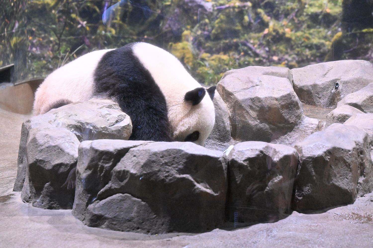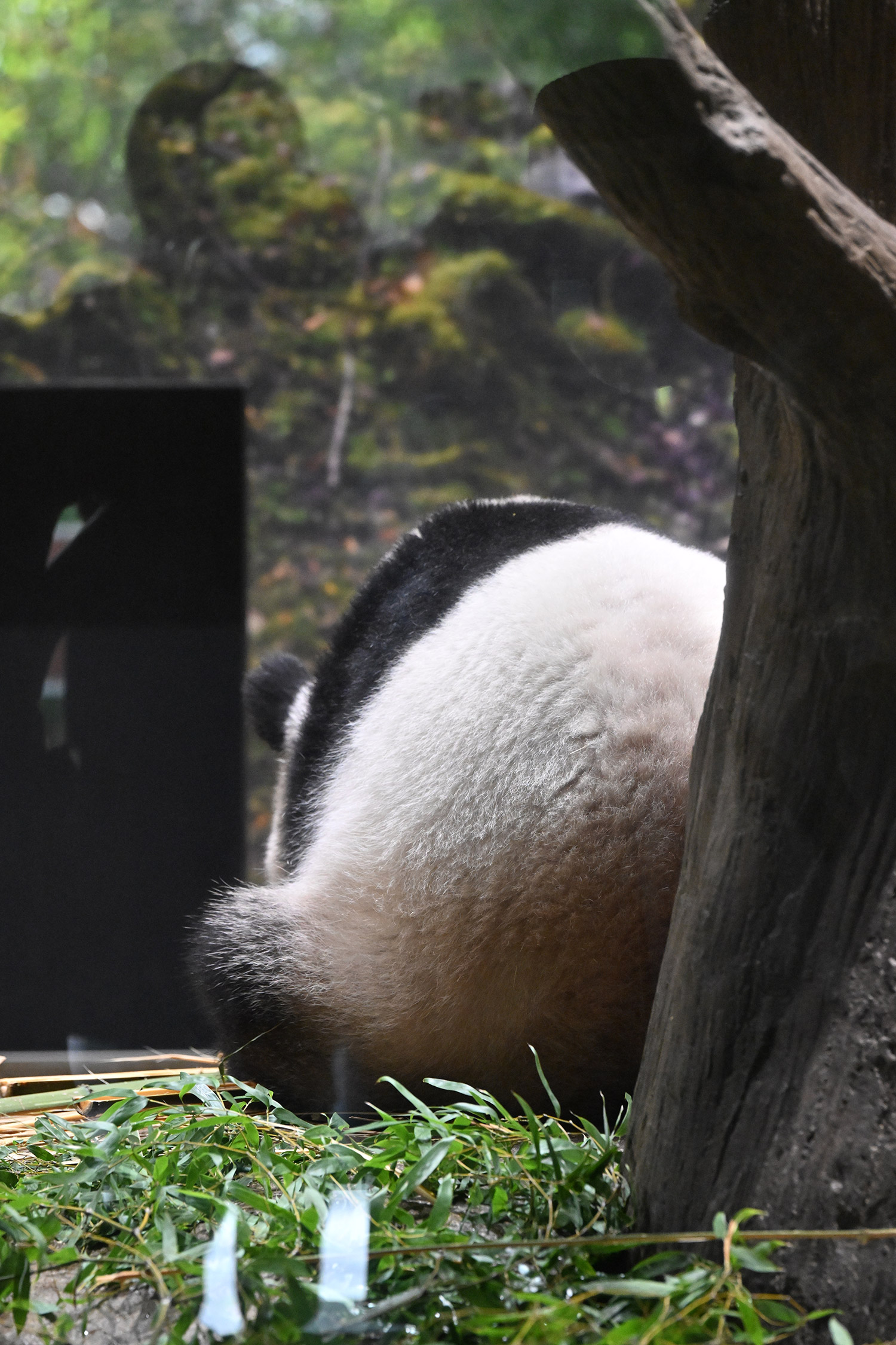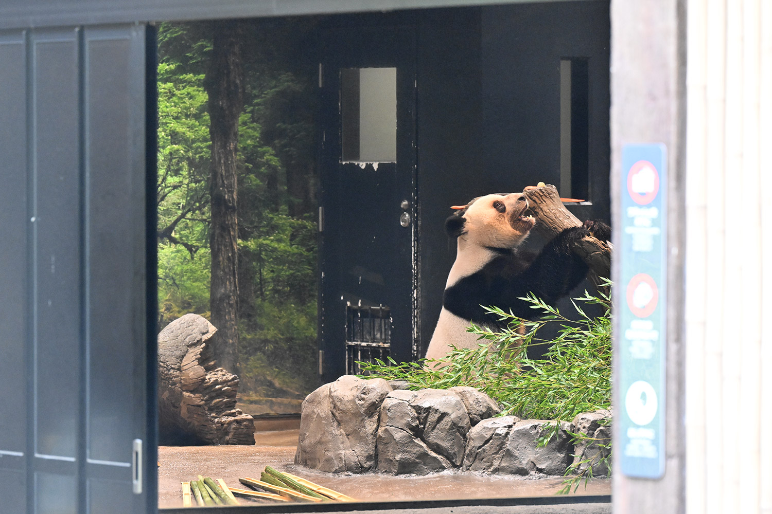 今日のパンダは10:00からです。今日も日差しがあるとやや暑めでパンダたちは室内展示でした。