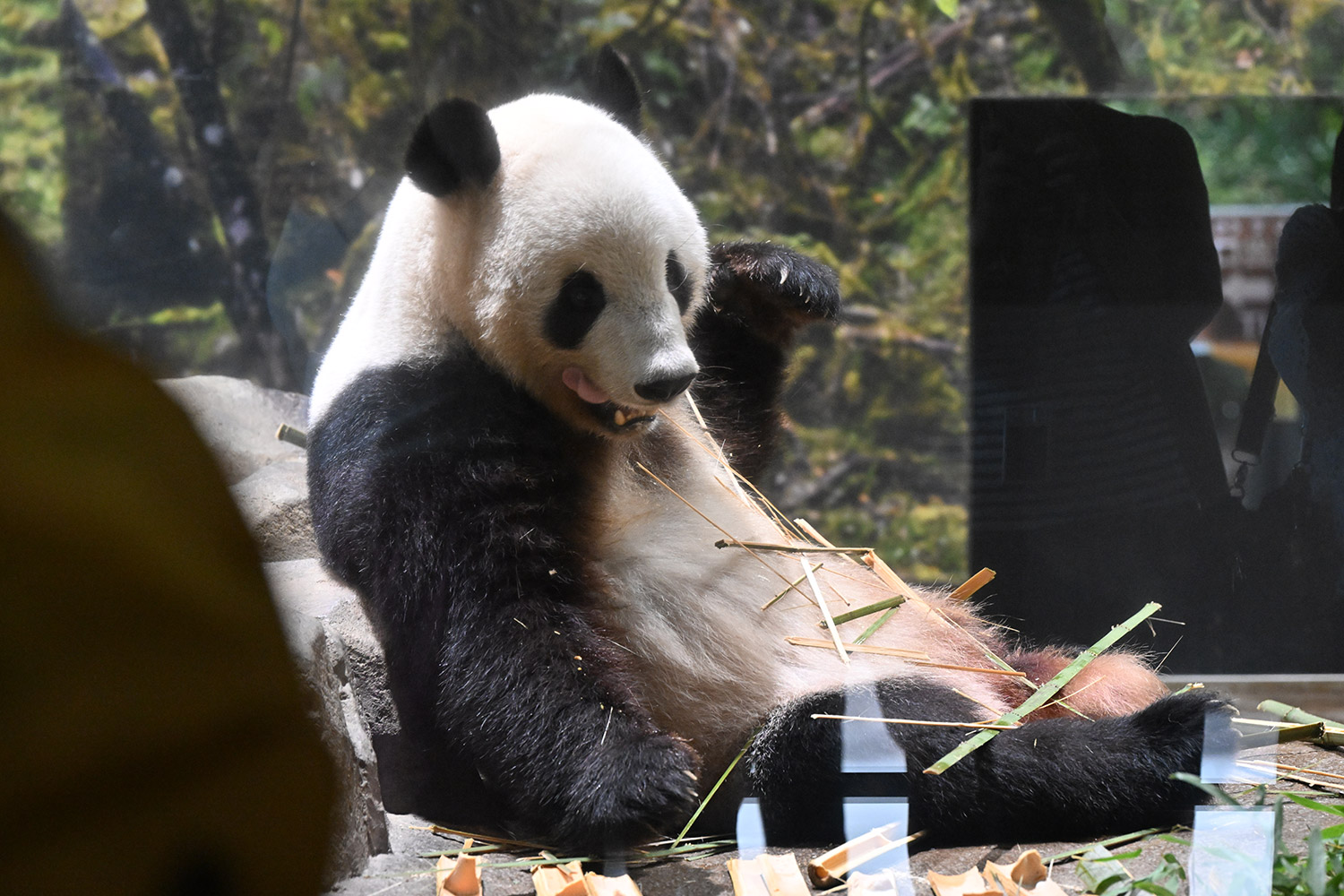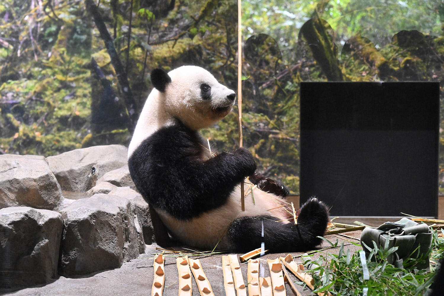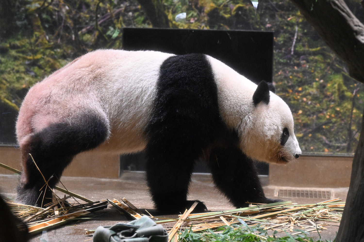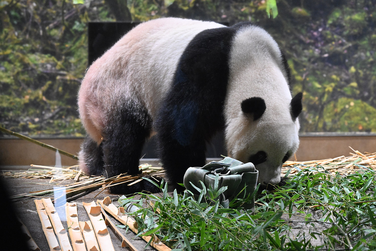 今日のパンダは10:00からです。今日も日差しがあるとやや暑めでパンダたちは室内展示でした。