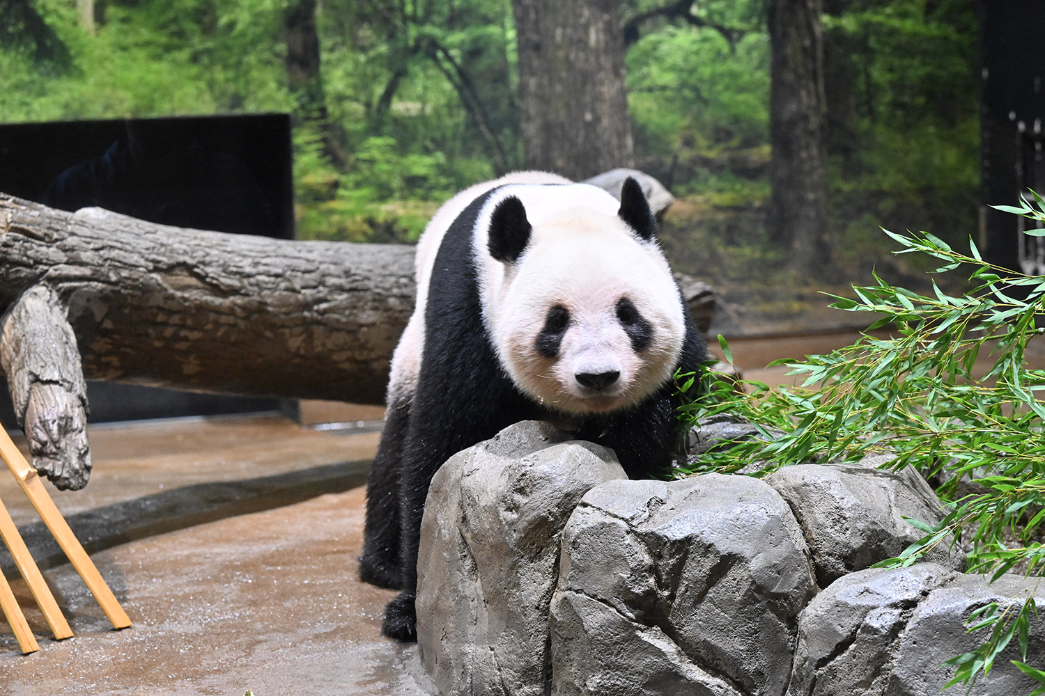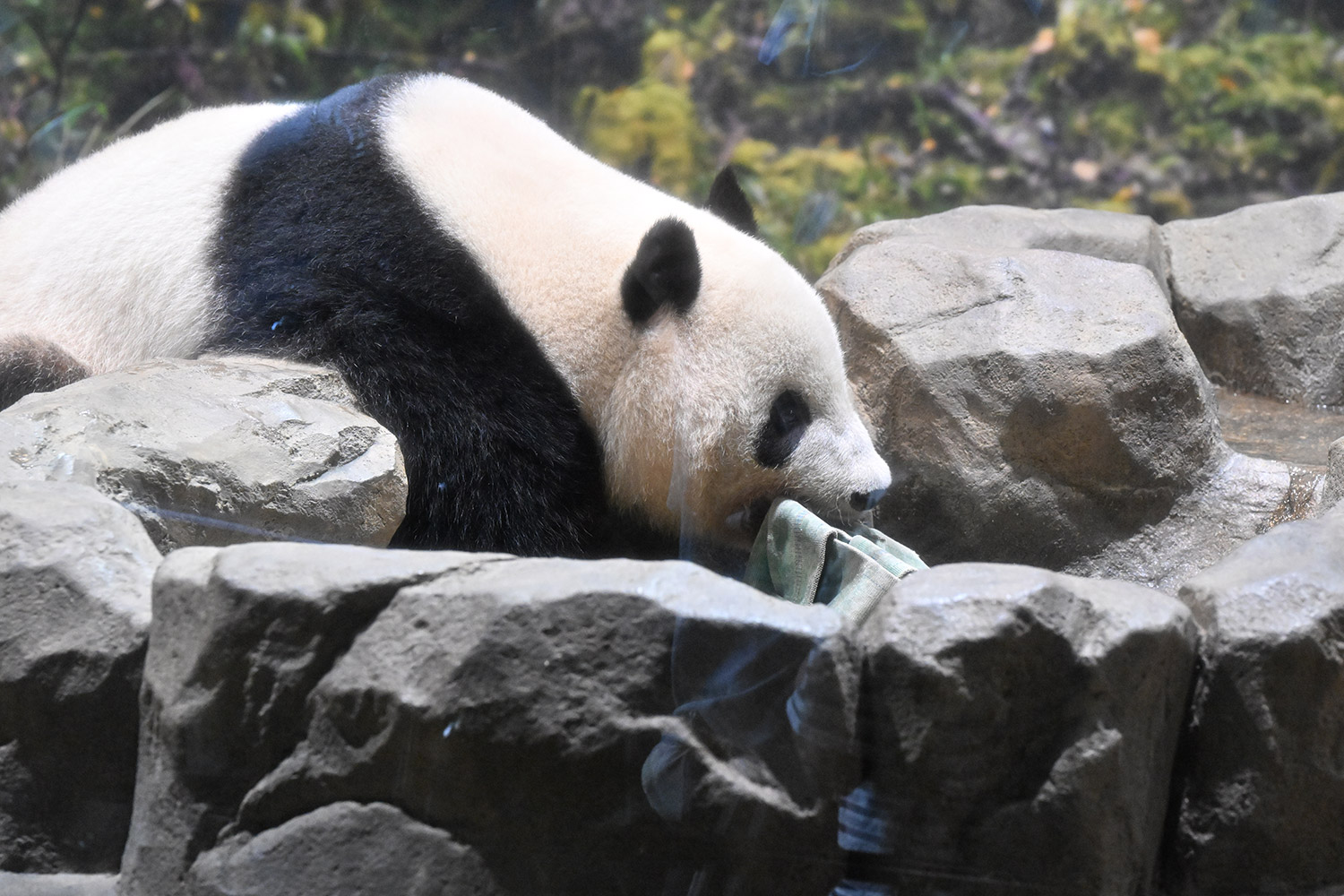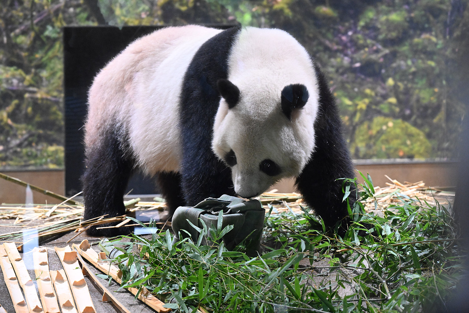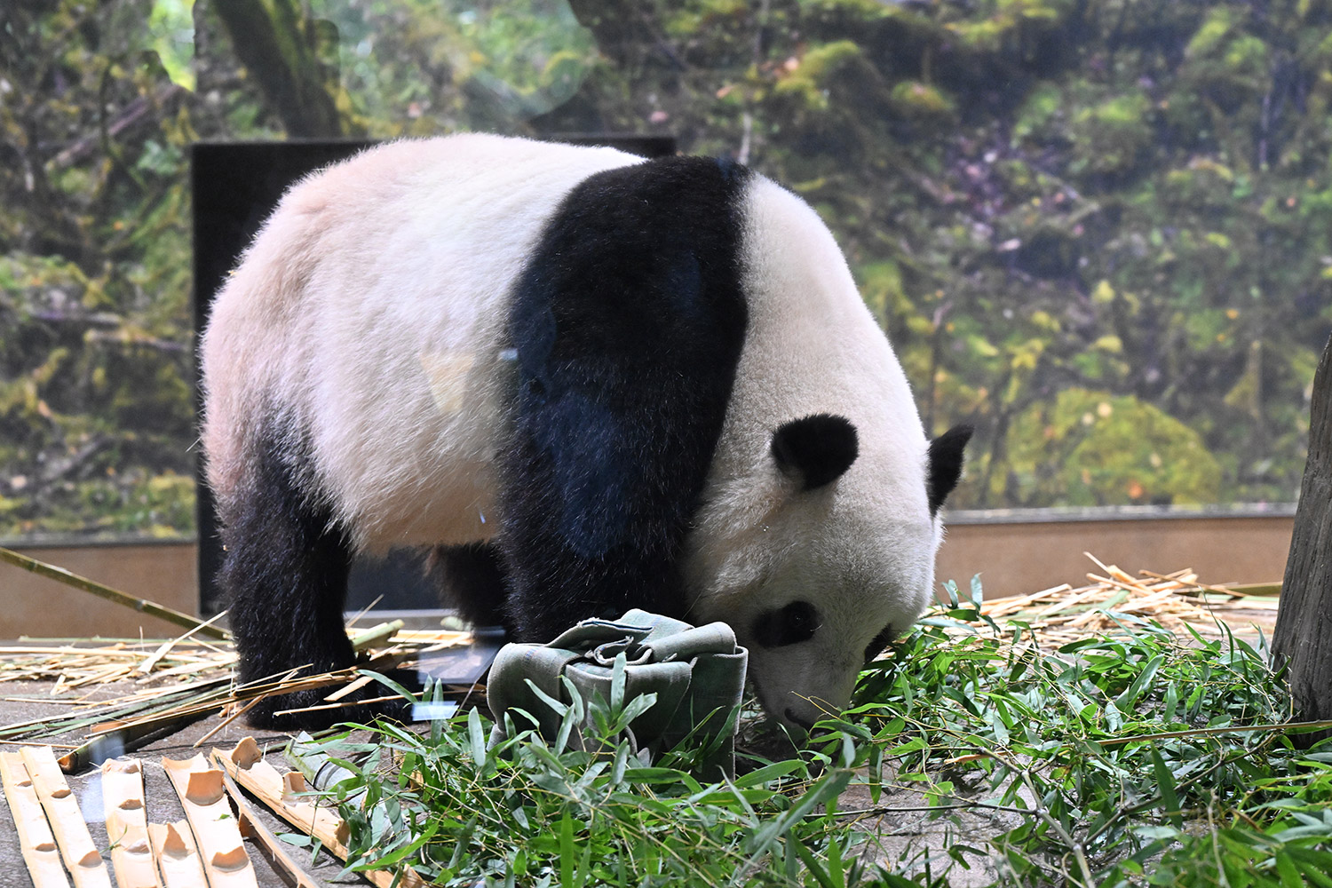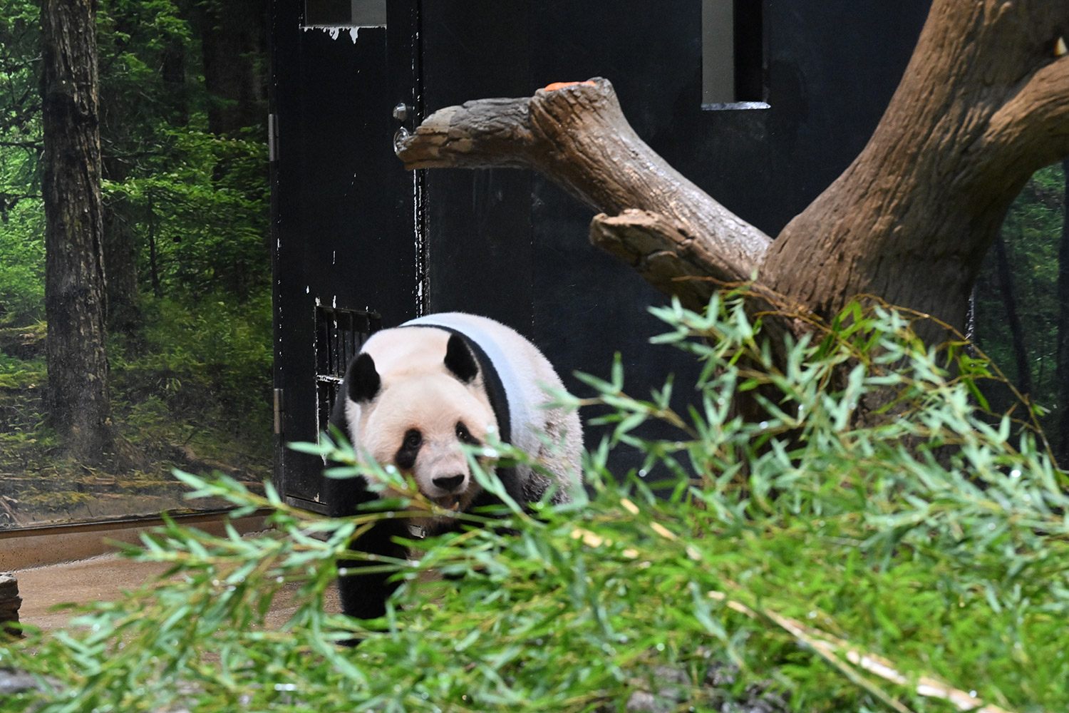 今日のパンダは10:00からです。今日も日差しがあるとやや暑めでパンダたちは室内展示でした。