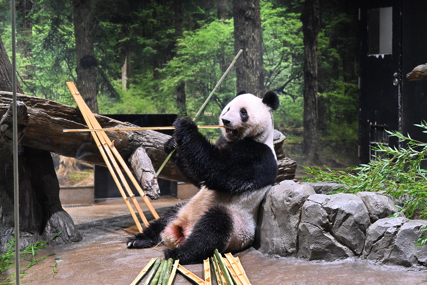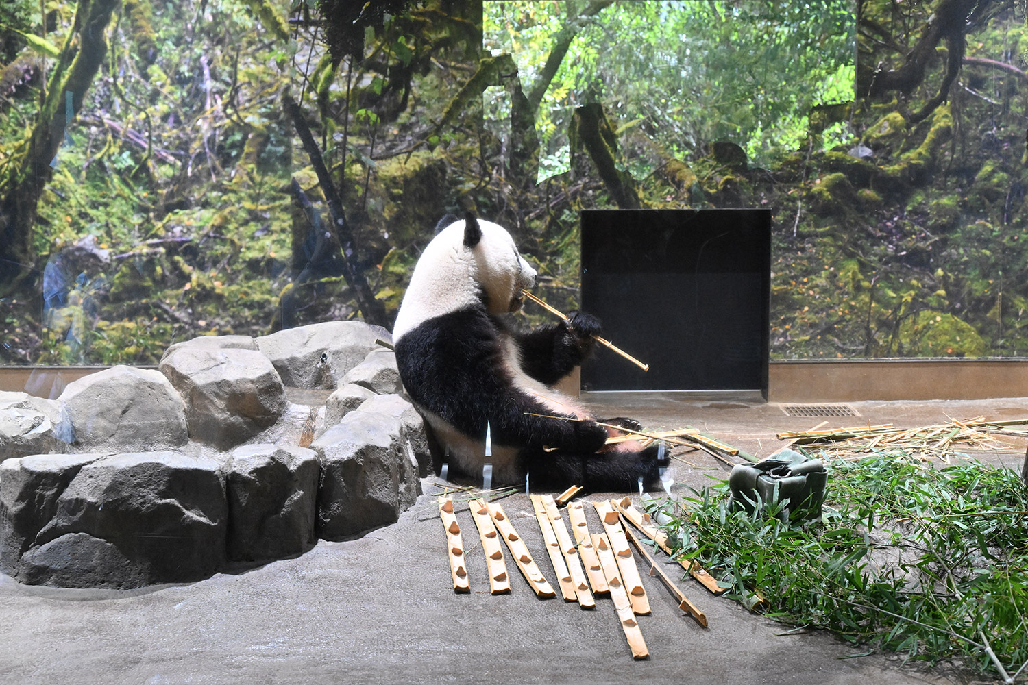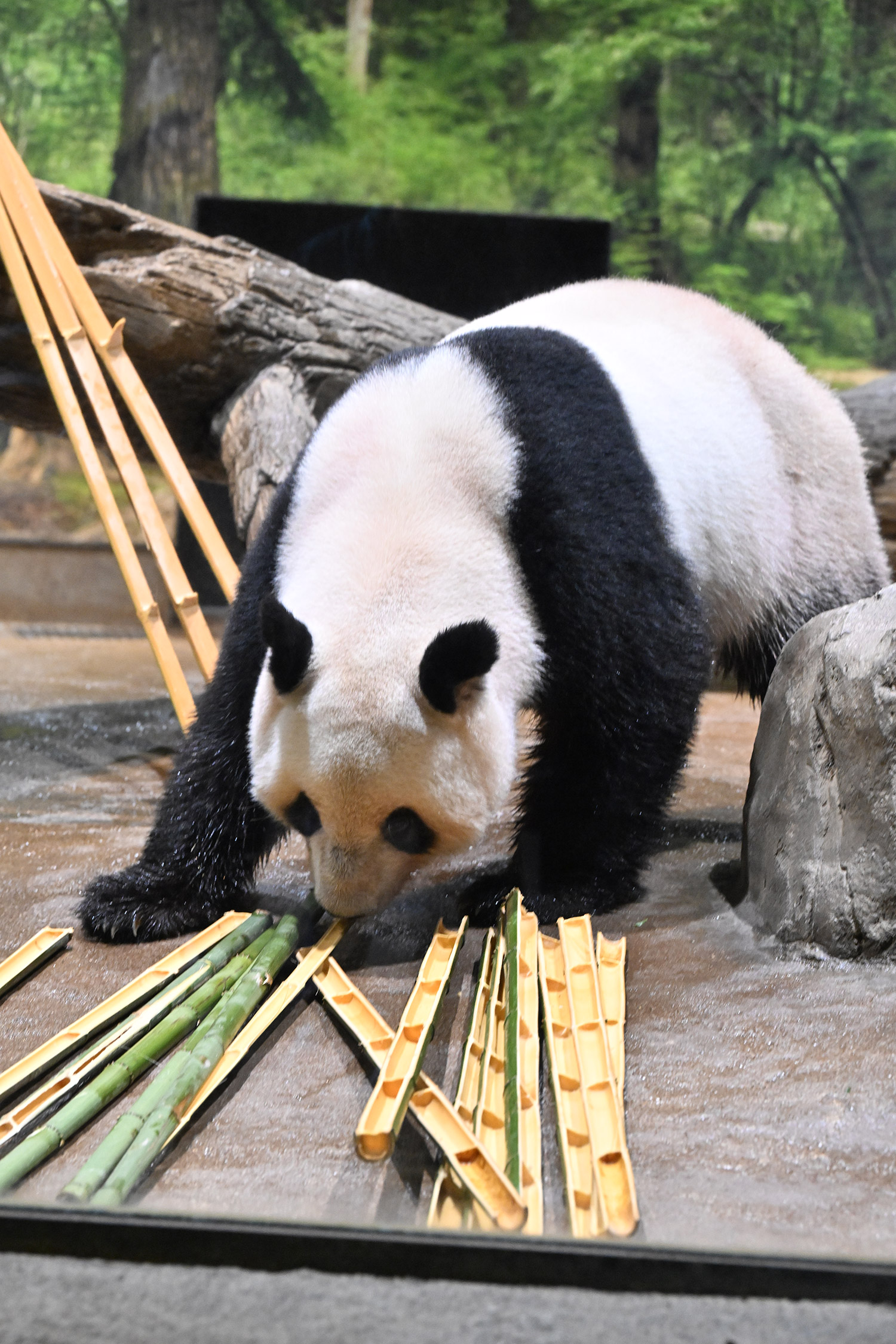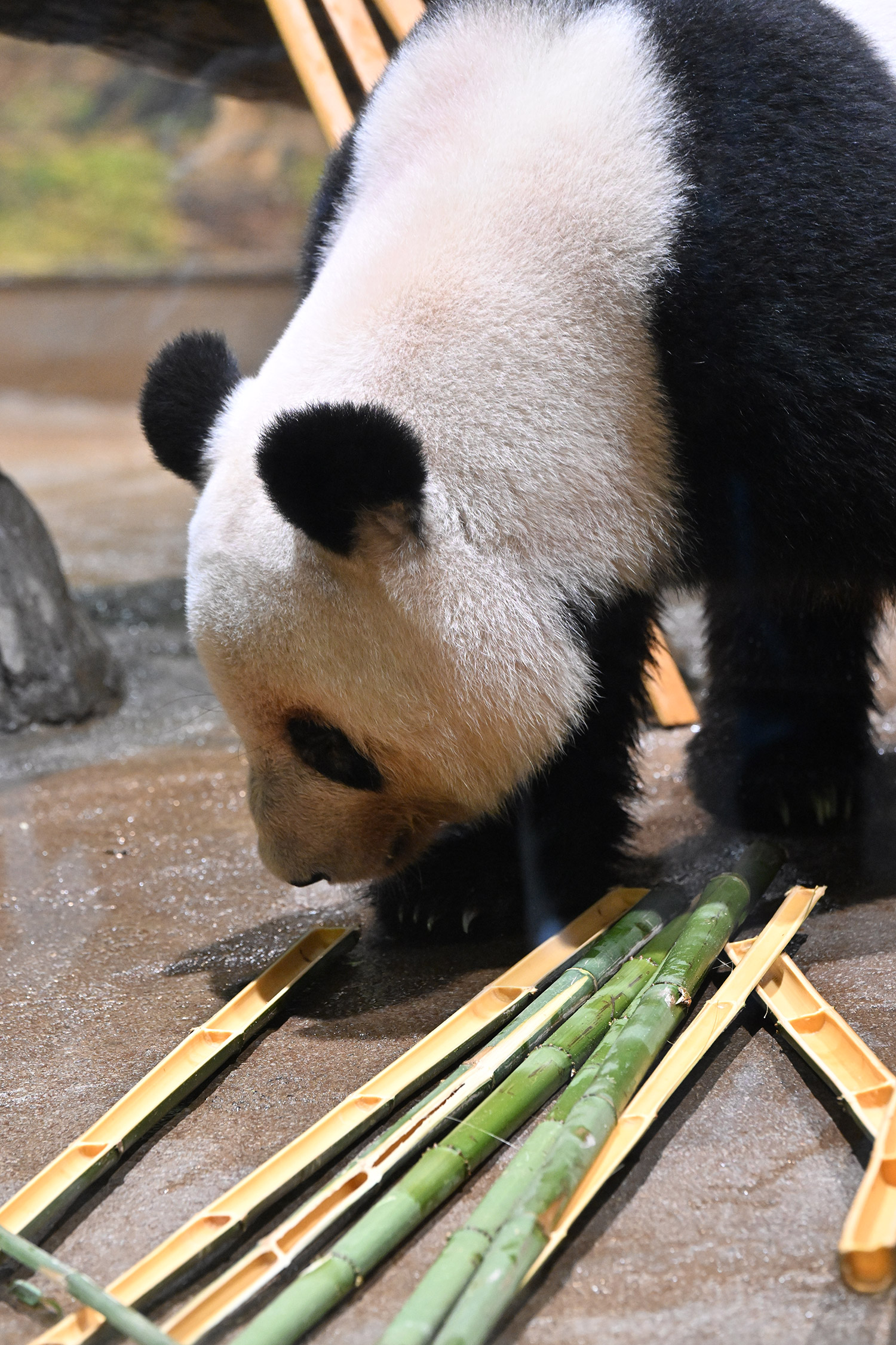 ふたりのお部屋に竹がきれいに並べられ。飼育員さん、いつも新鮮な竹ふんだんに…ありがとうございます!