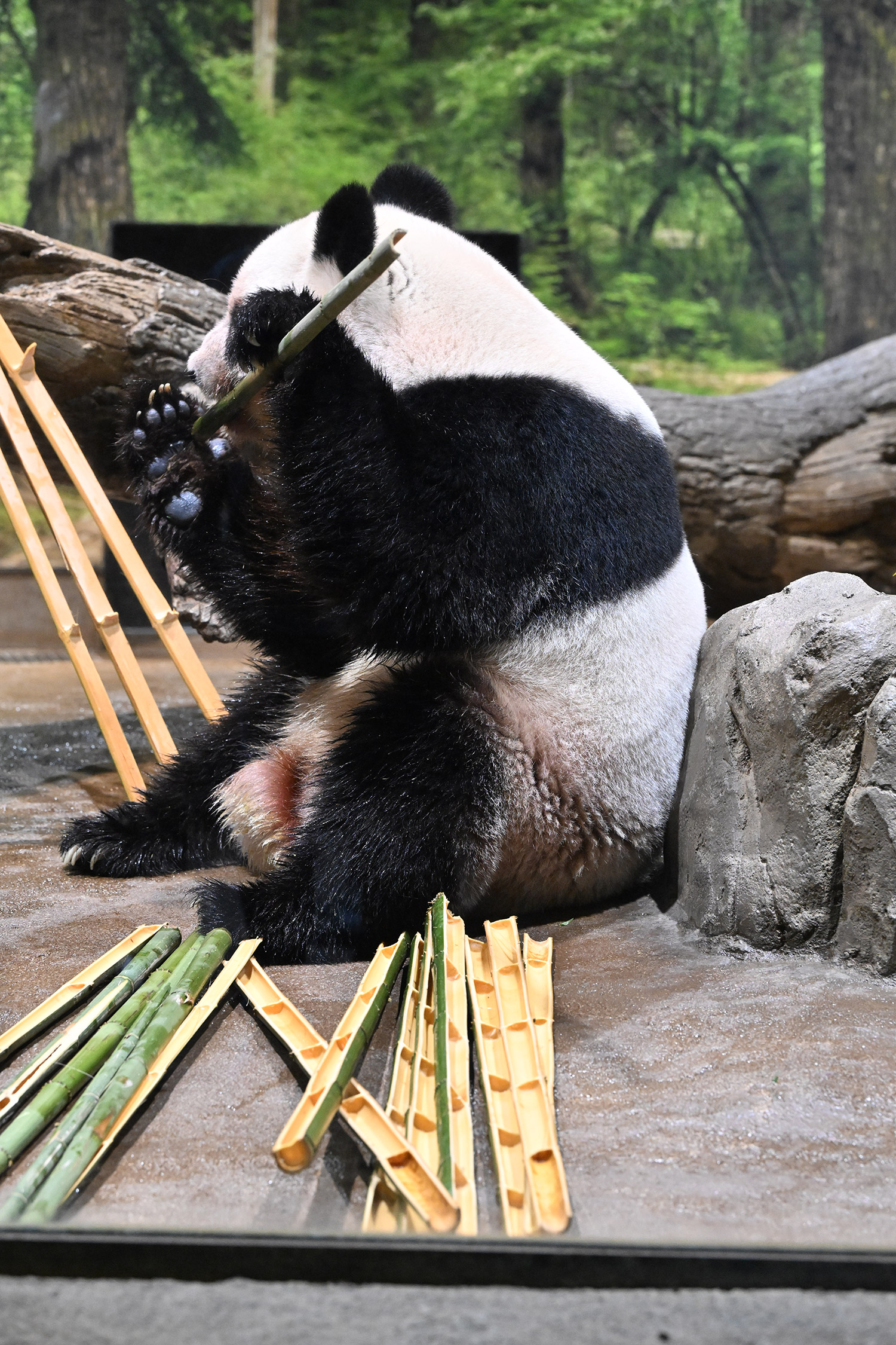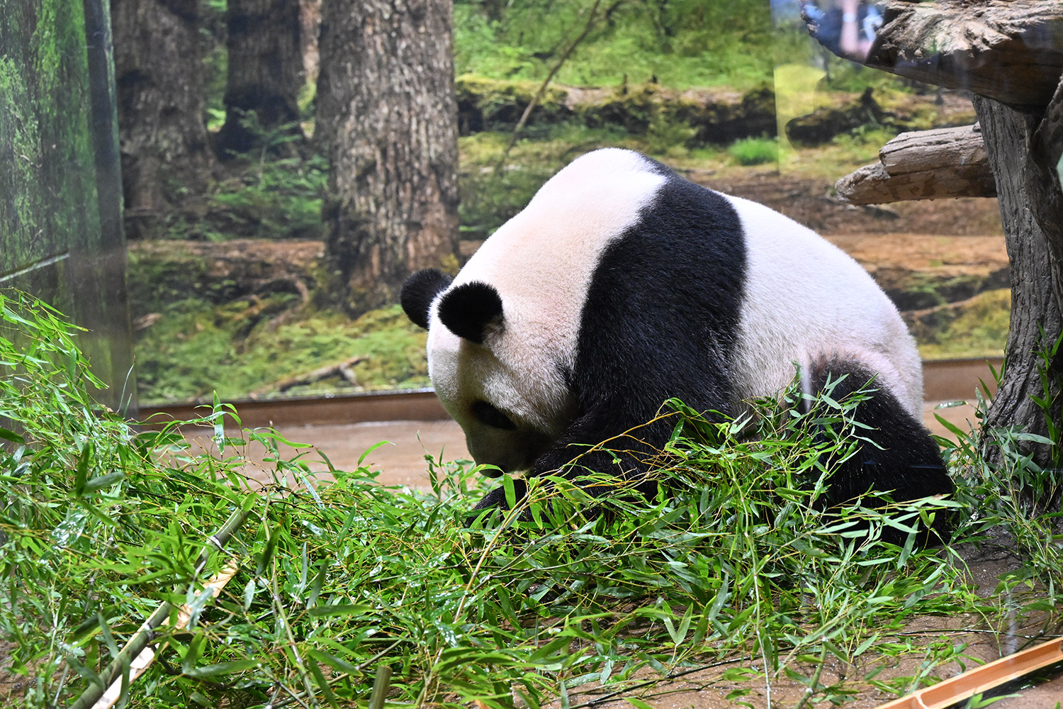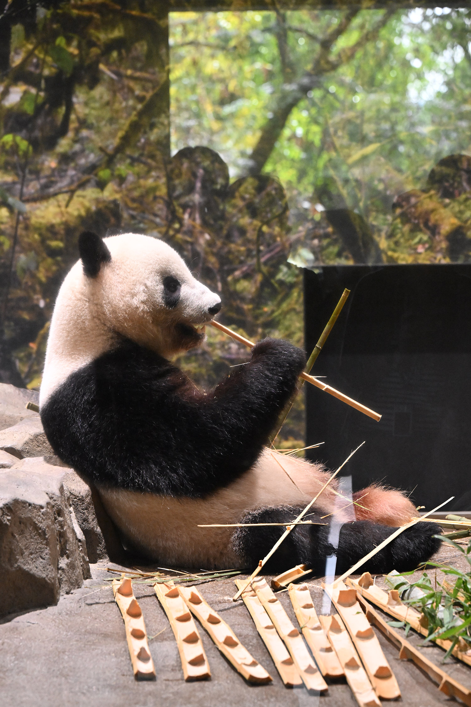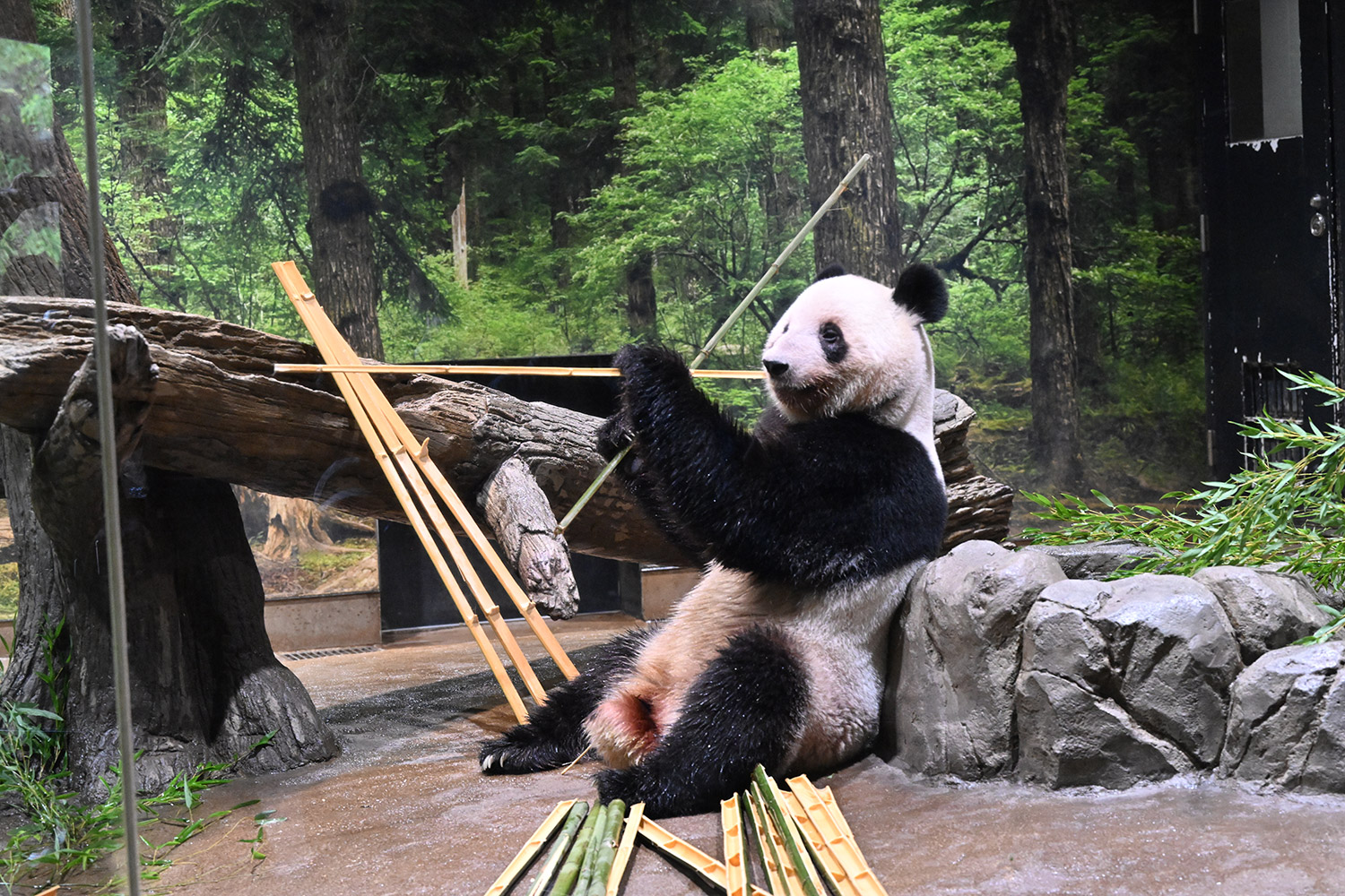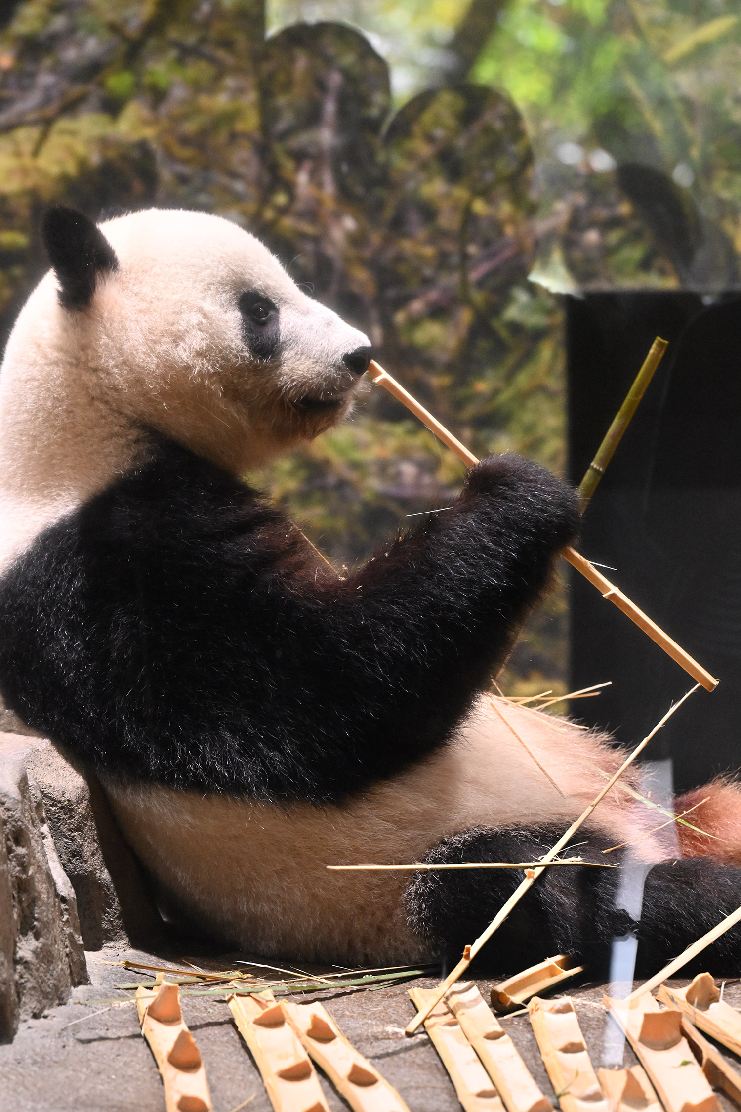 ふたりのお部屋に竹がきれいに並べられ。飼育員さん、いつも新鮮な竹ふんだんに…ありがとうございます!