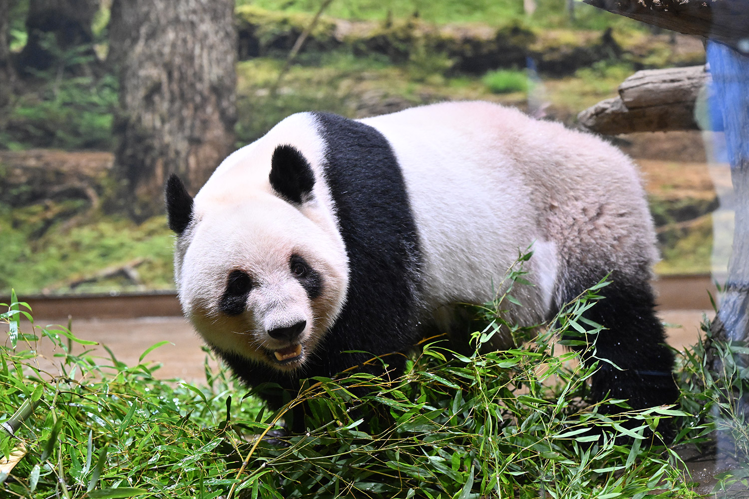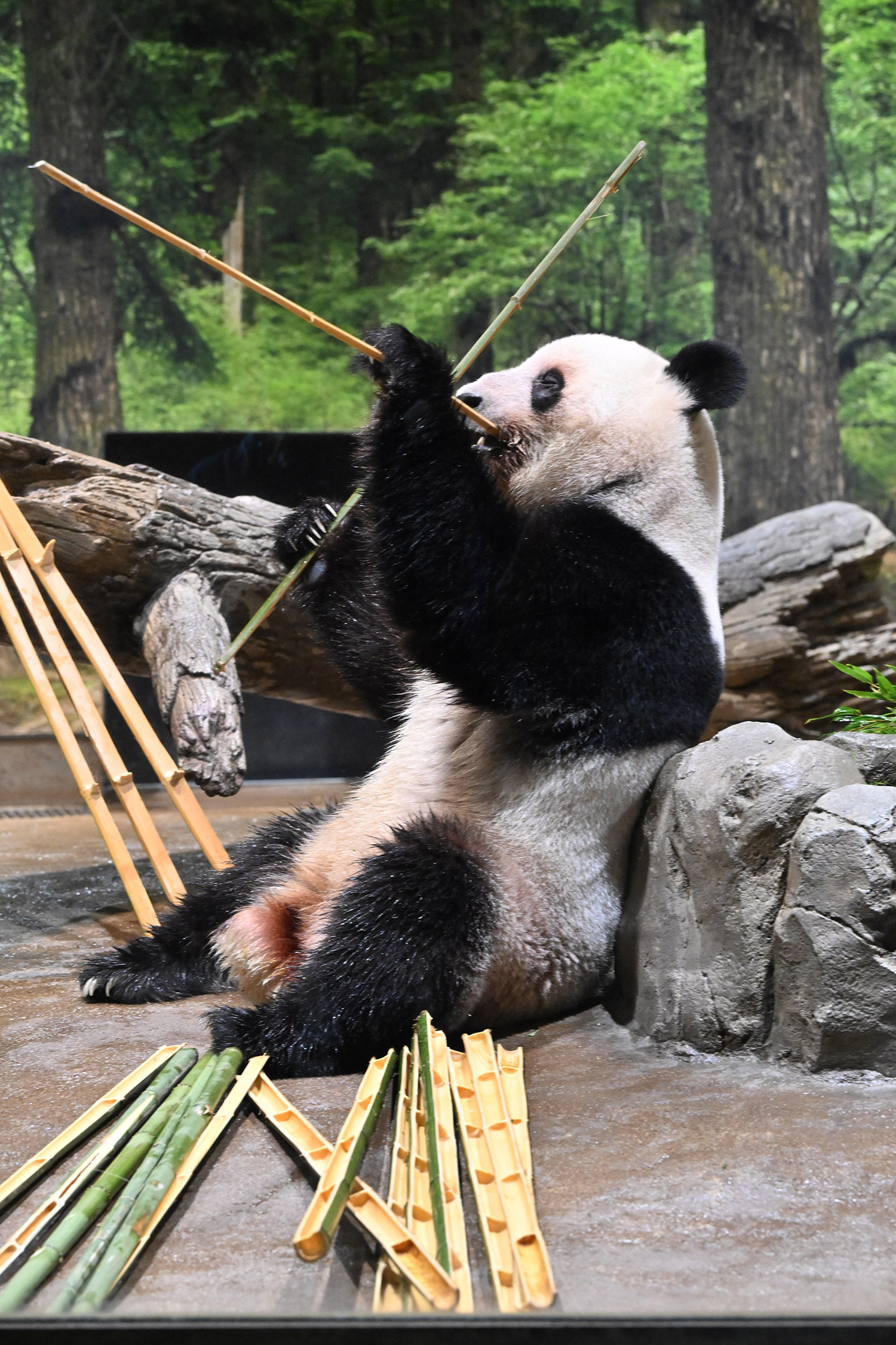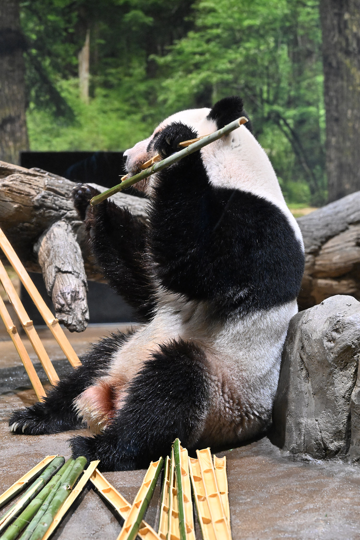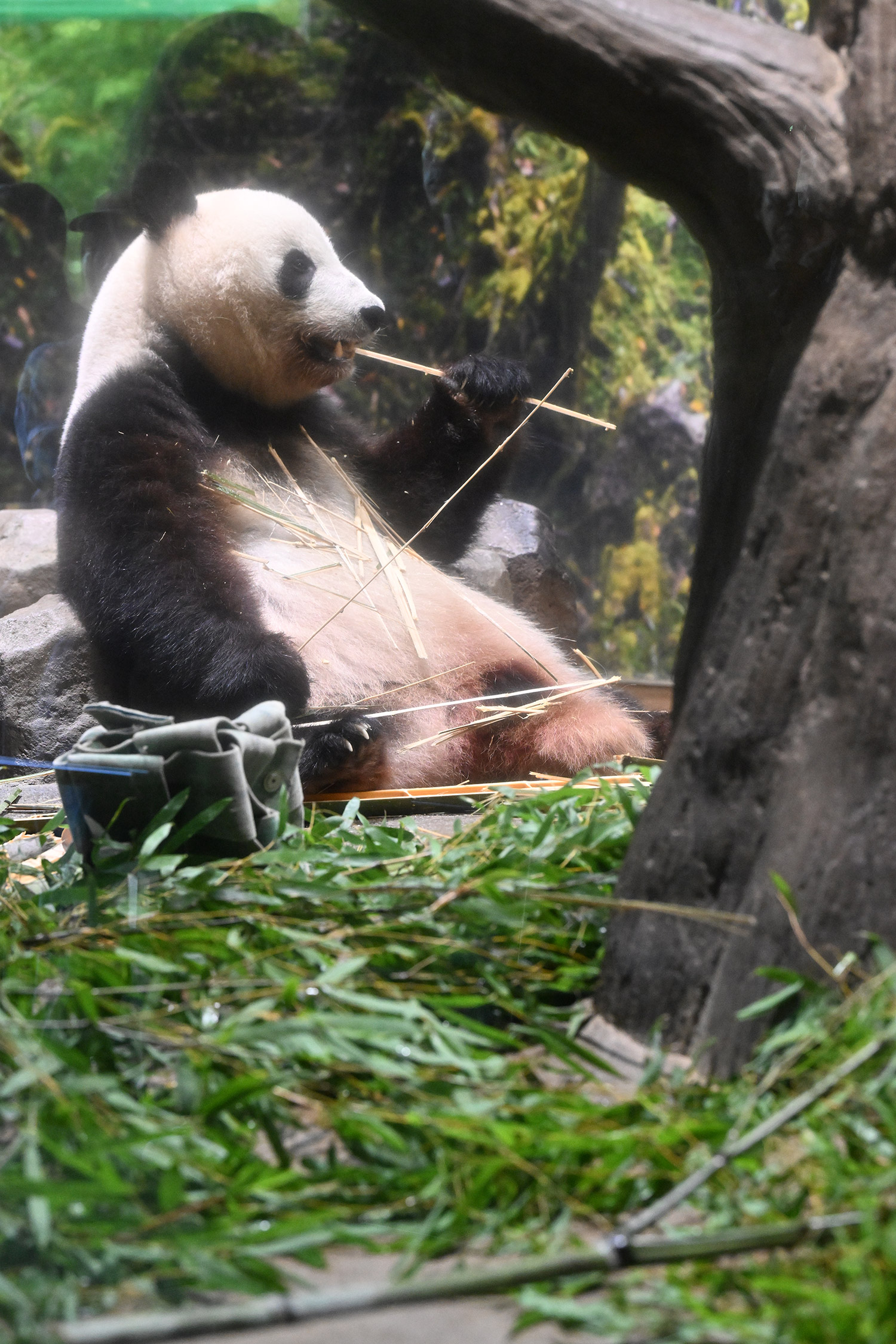 ふたりのお部屋に竹がきれいに並べられ。飼育員さん、いつも新鮮な竹ふんだんに…ありがとうございます!