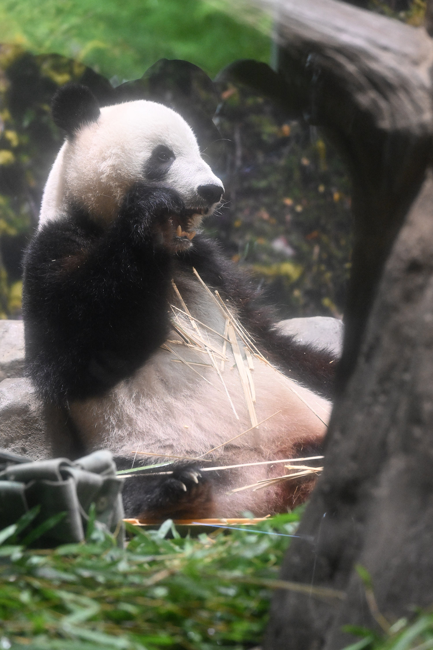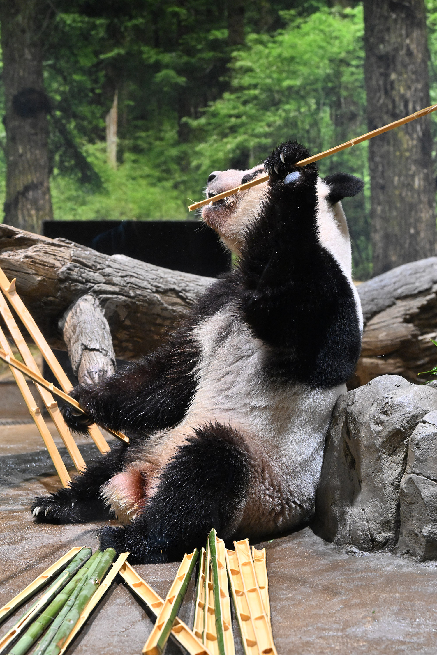 でもやっぱ竹🎋だよね〜〜😄いっぱい食べてね❣️ラストのシャオくん、水のみ場からおやつボックスがじっ🟩