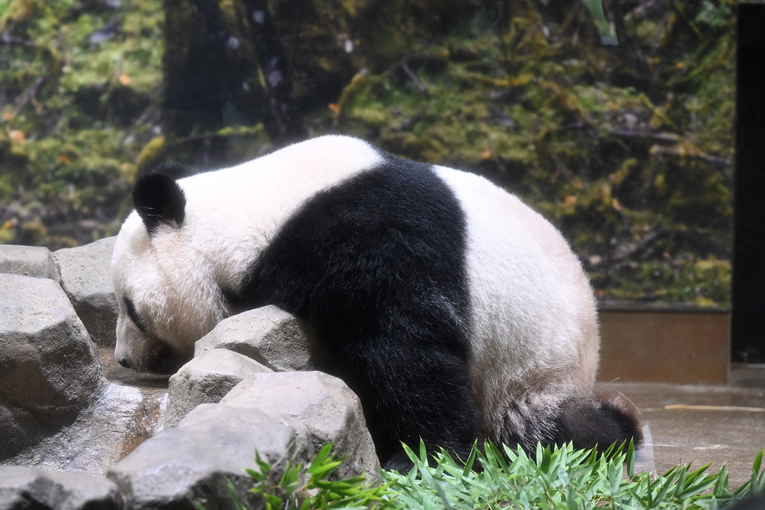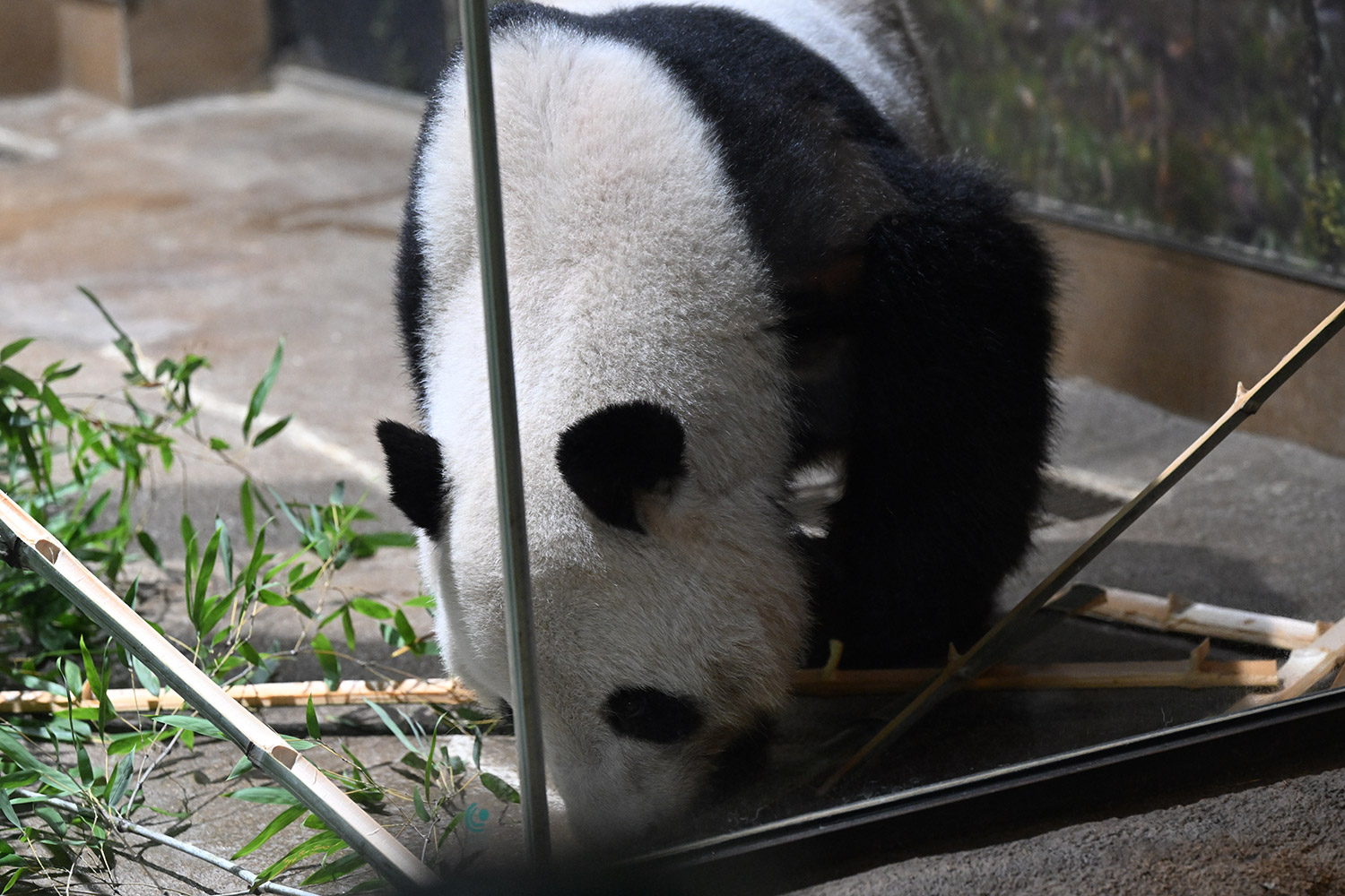 氏様のお写真笹の緑が美しく目が浄化されました。後頭部はすべすべ滑らかな特級品の毛皮ですね🐼〜。お食事のバランスもきっといいのですね😋🥕捜しは簡単なのかな?夢中になれるのかな?楽しんでね😄御写真ありがとうございました💚💛