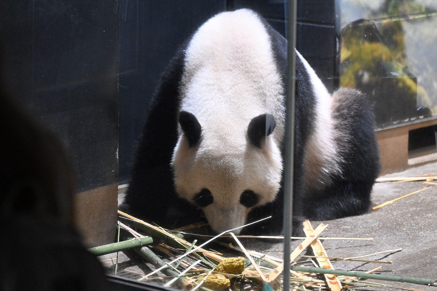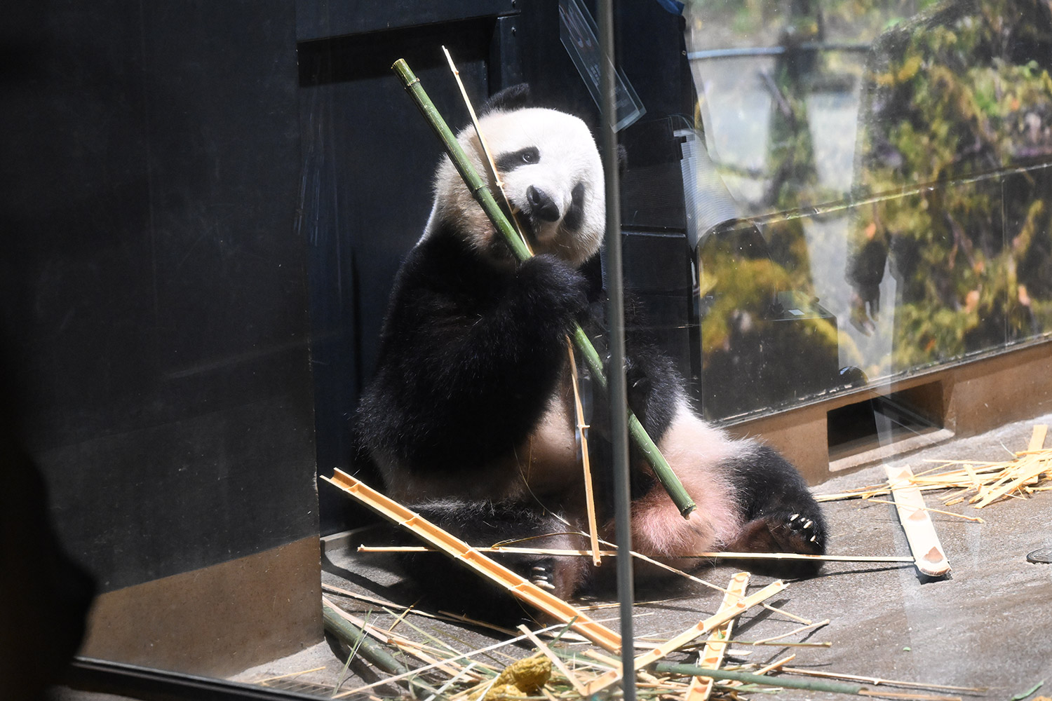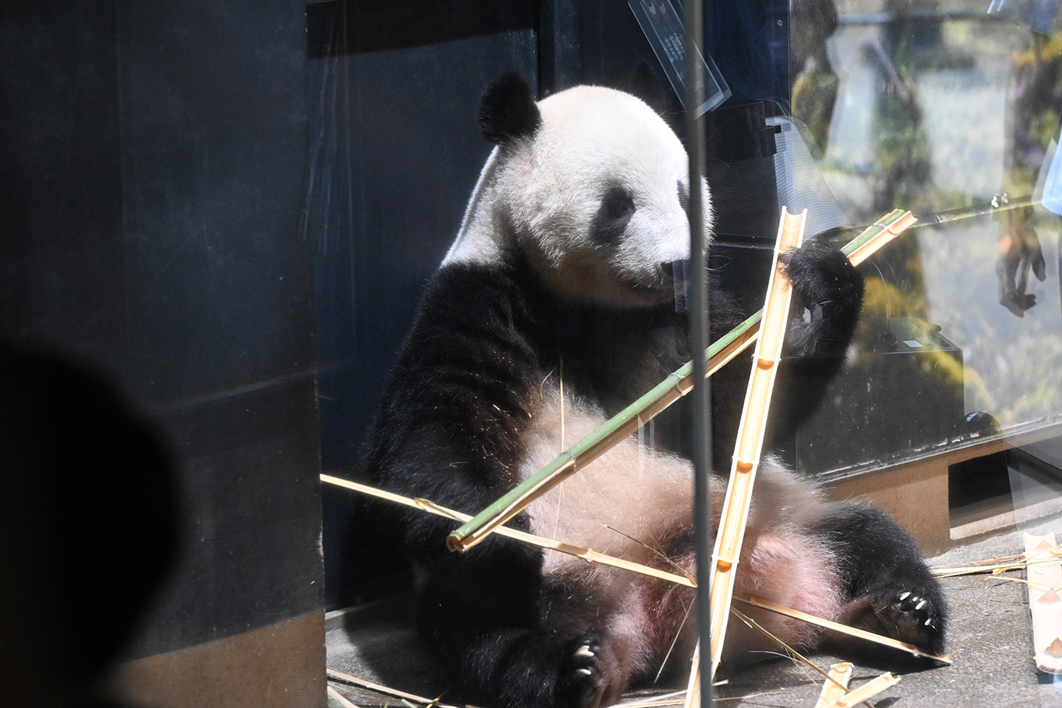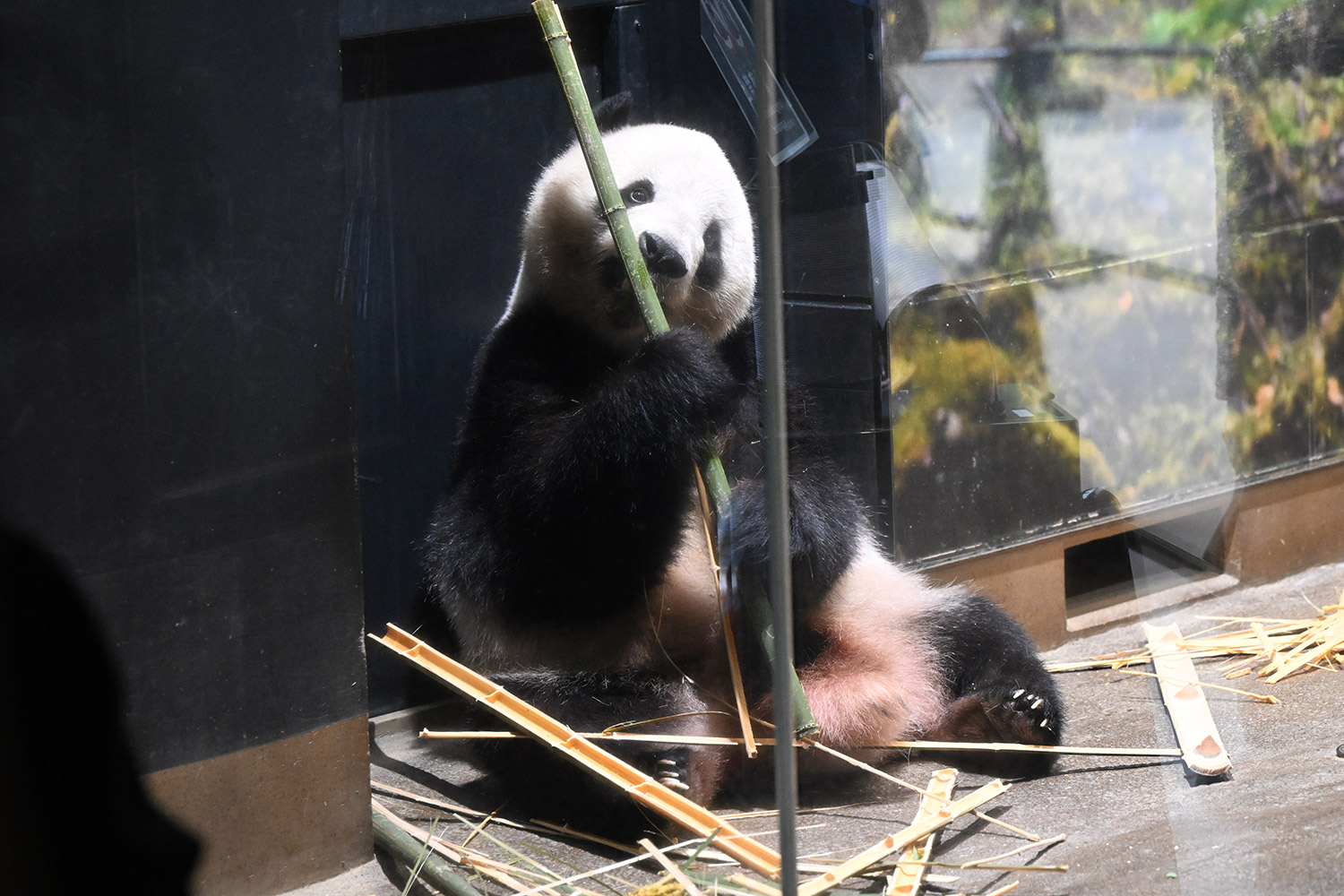 レイちゃん、竹林みたいに竹いっぱい😳💕…食欲が出てきたのかな?竹幹を割ったヤツが壁にズララと並んでるの、釣具屋さん🎣みたいですよね🤭