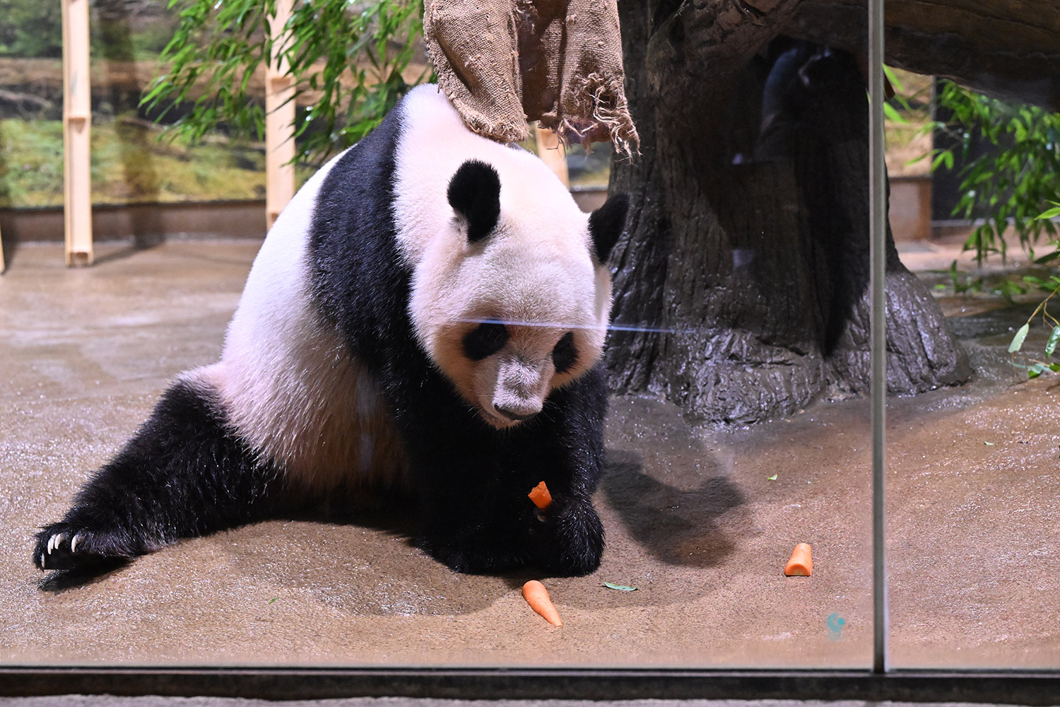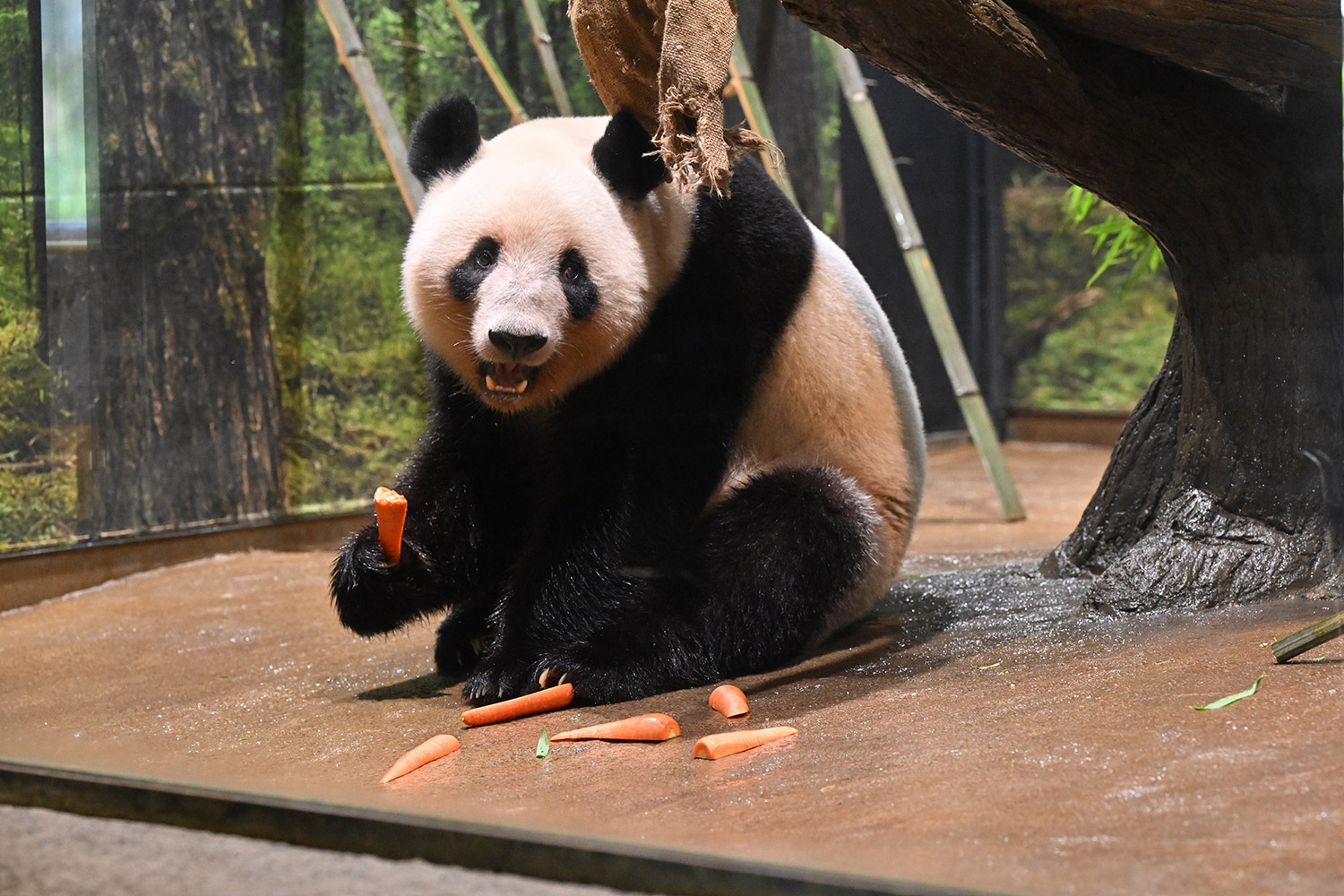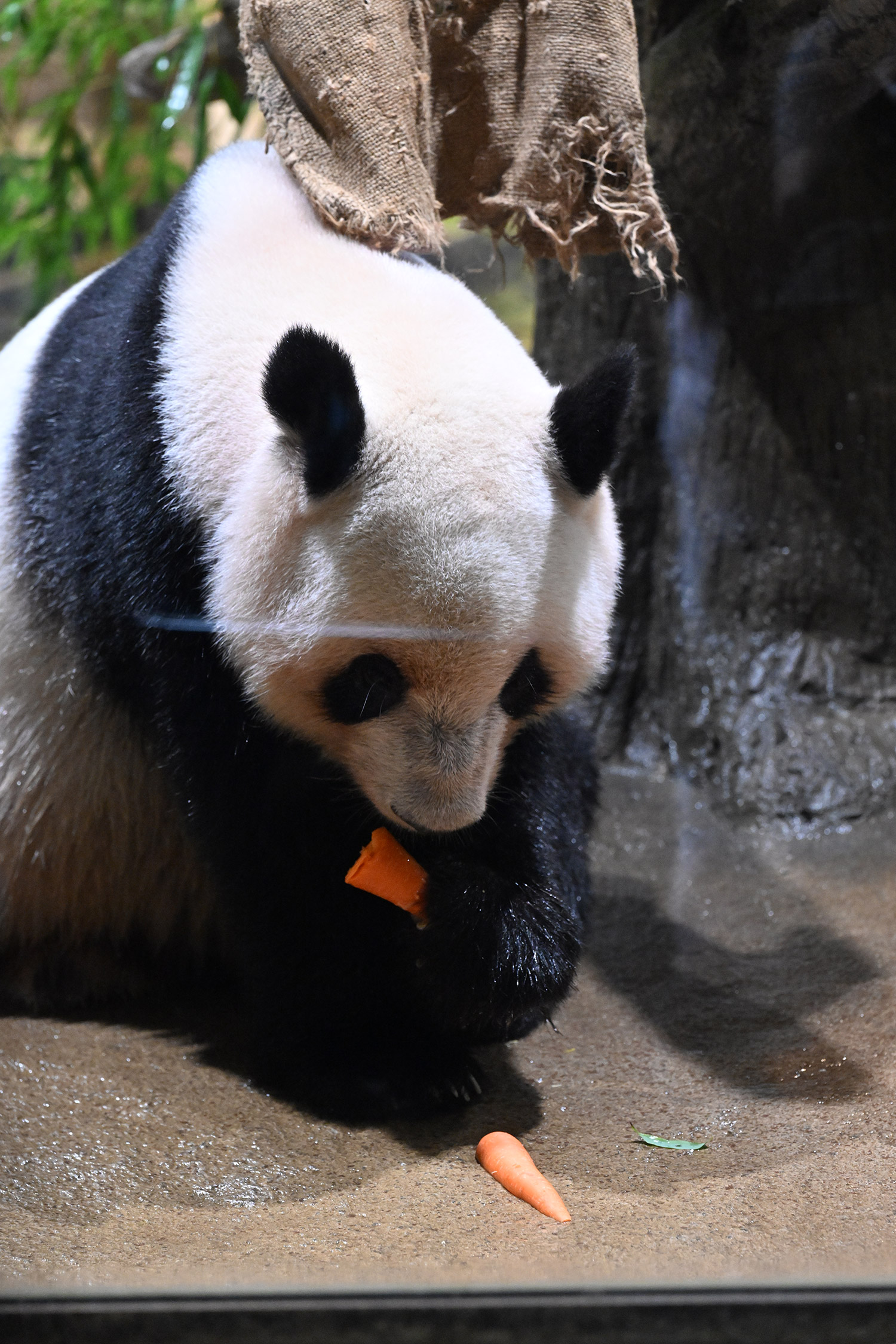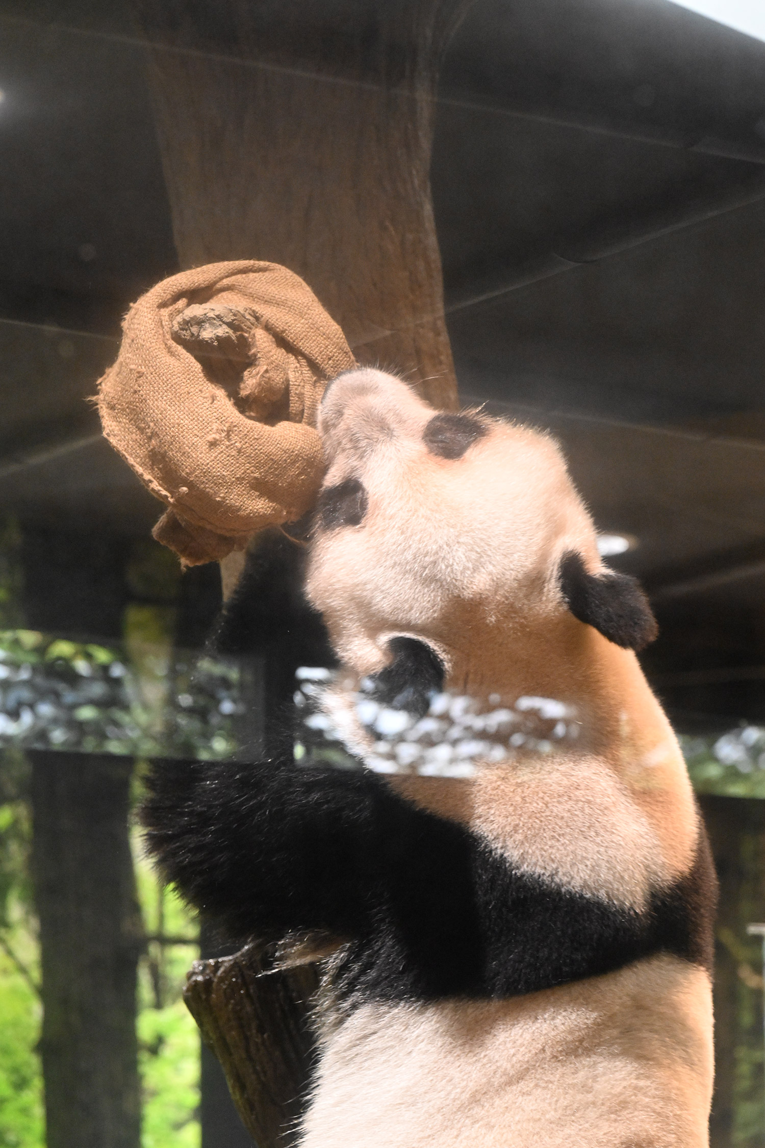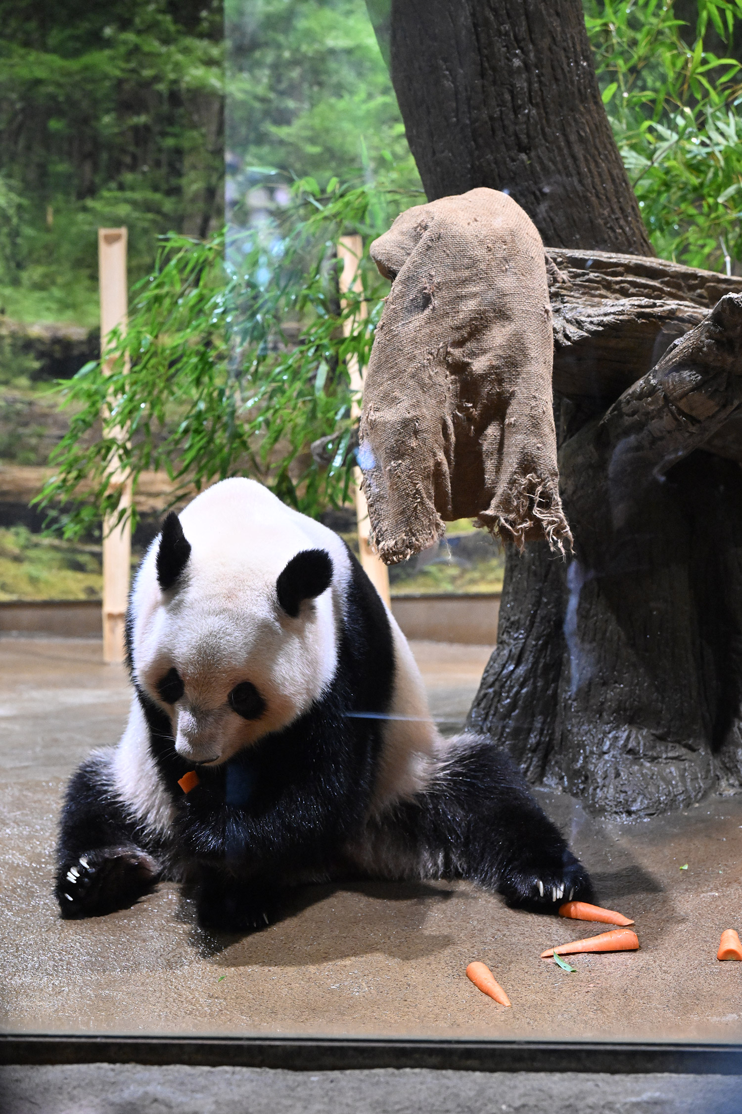 パンダ氏🐼様 皆様こんばんは うわぁー💓凄いなぁ~ 麻袋で絶妙にレイちゃんのお顔が隠れて 麻袋が🥕人参を食べているみたいな この瞬間!この場に氏様がおられる奇跡✨このお写真は 氏様にしか撮影できないと思いました人参 踊るように 落ちていく感じ 素敵です シャオのお腹~💚 ぷっくりで可愛いですねー シャオの後頭部って 特別なビームが出ているのか 心がほどけていく感じが致します 北陸のみっちゃん様 ピースの人形 今年は応募しました 教えてくださり本当にありがとうございます 日立パンダフェス 応援しながら 氏様の写真展を又開催していただきたいと心から思っています