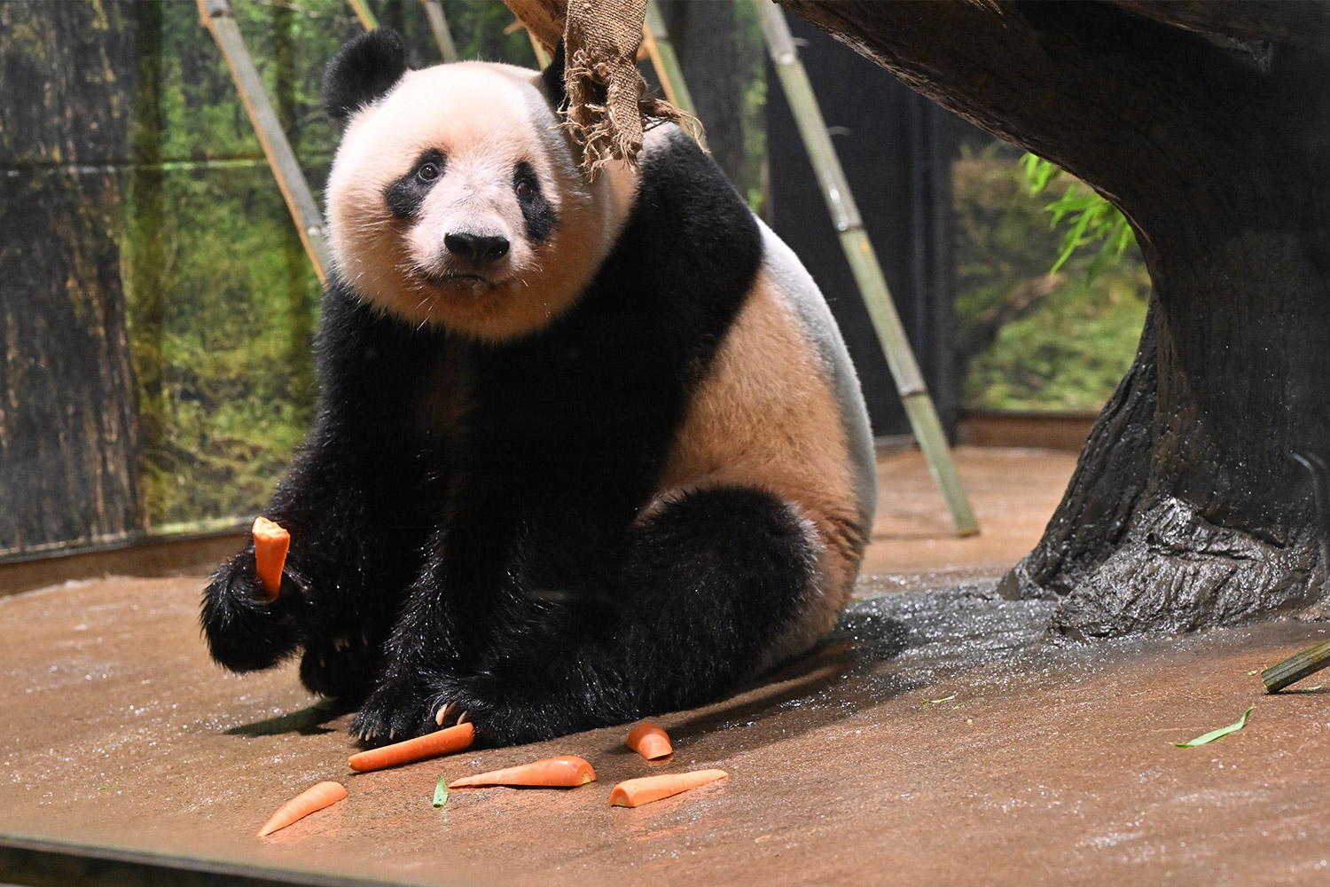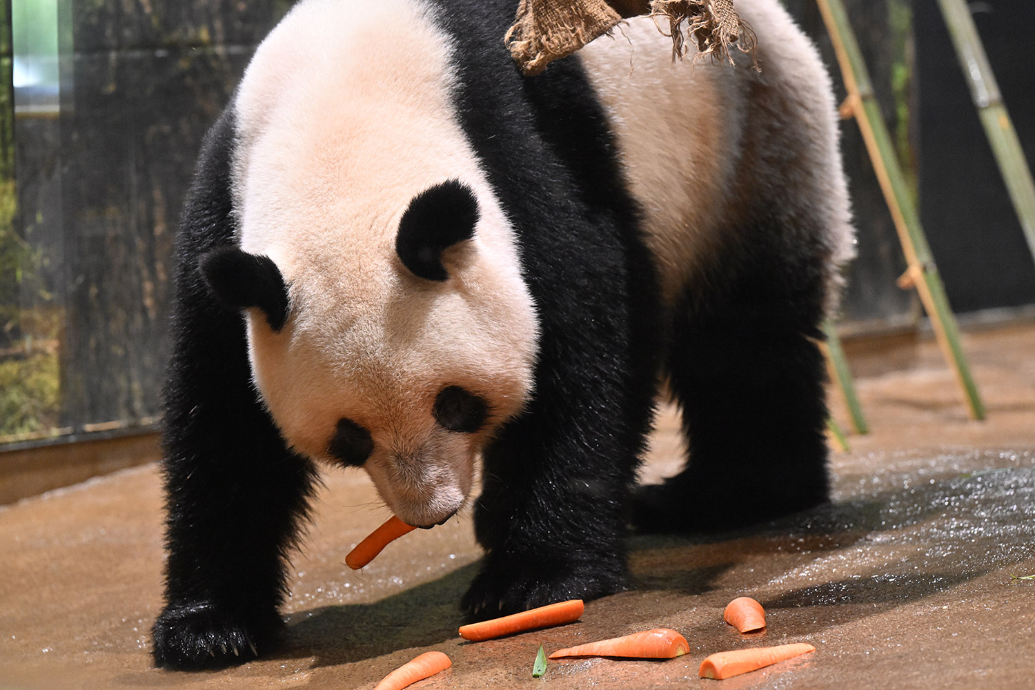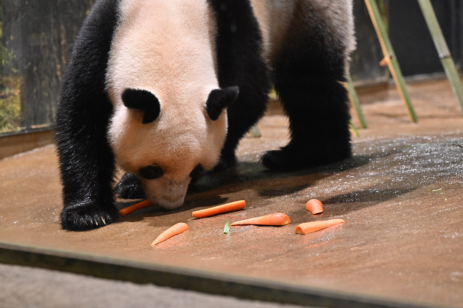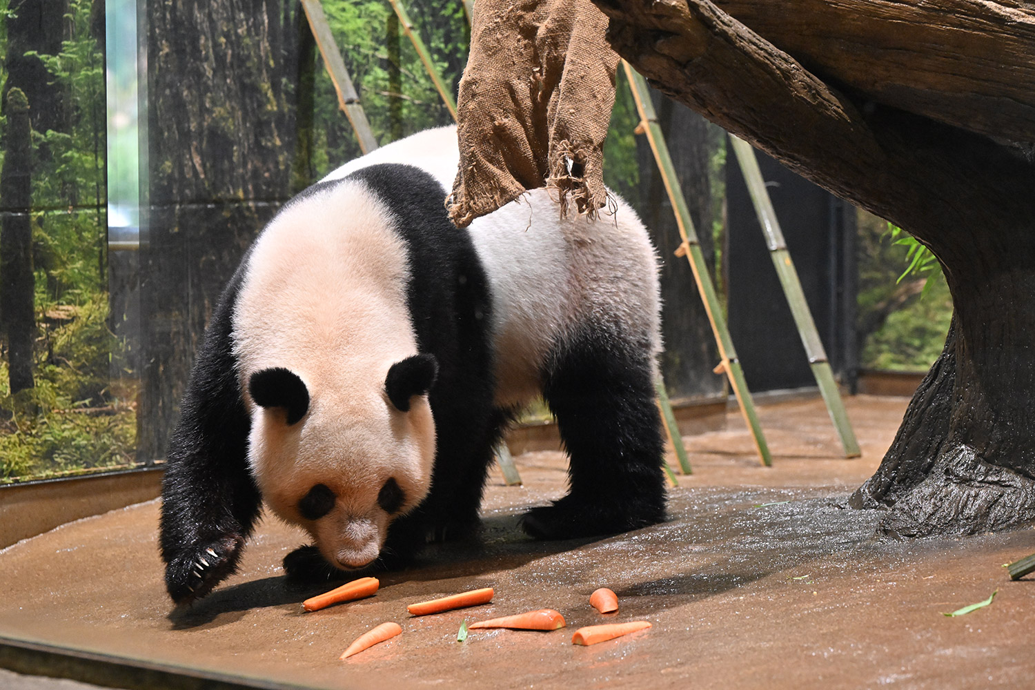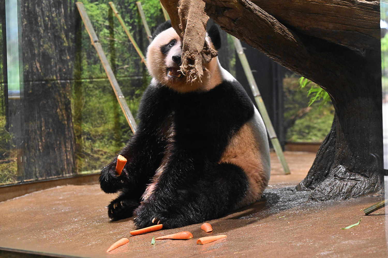 パンダ氏🐼様 皆様こんばんは うわぁー💓凄いなぁ~ 麻袋で絶妙にレイちゃんのお顔が隠れて 麻袋が🥕人参を食べているみたいな この瞬間!この場に氏様がおられる奇跡✨このお写真は 氏様にしか撮影できないと思いました人参 踊るように 落ちていく感じ 素敵です シャオのお腹~💚 ぷっくりで可愛いですねー シャオの後頭部って 特別なビームが出ているのか 心がほどけていく感じが致します 北陸のみっちゃん様 ピースの人形 今年は応募しました 教えてくださり本当にありがとうございます 日立パンダフェス 応援しながら 氏様の写真展を又開催していただきたいと心から思っています