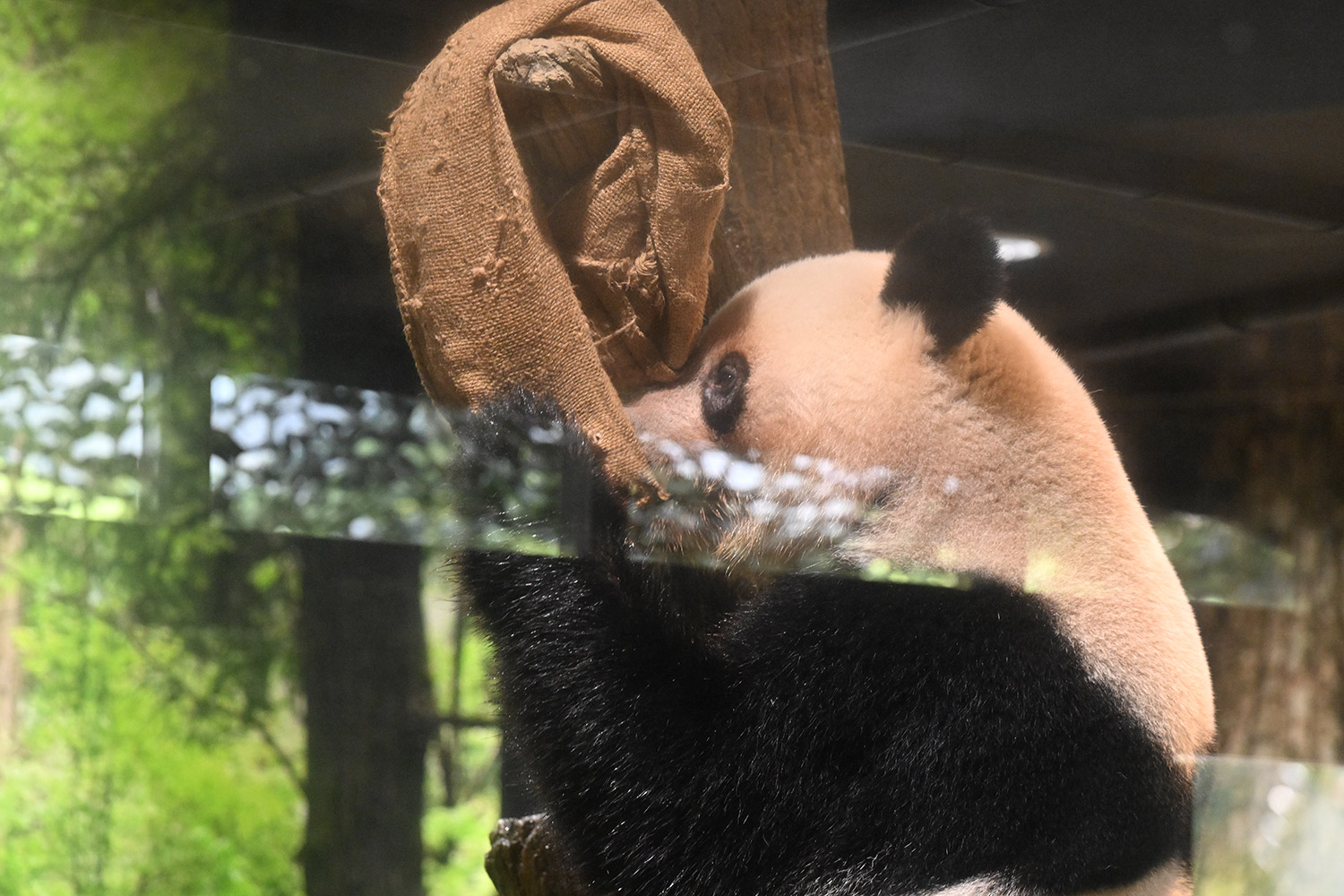 シャオシャオも擬木のおやつ、ゲット出来たかな?