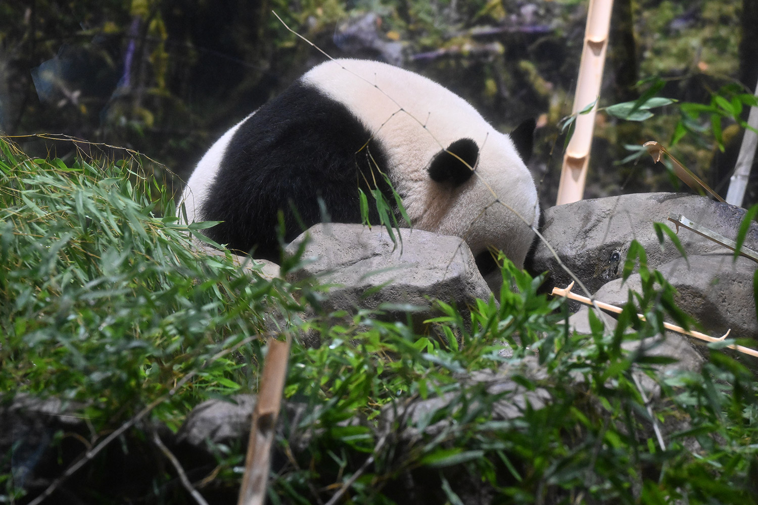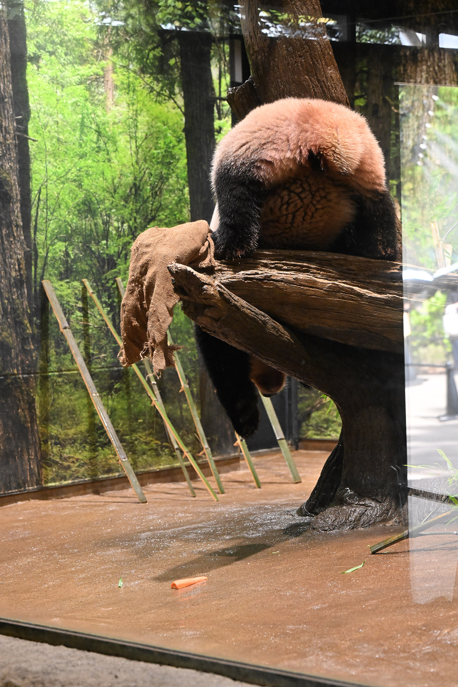 ○シャンはベッドの上で寝るタイプのパンダさんでしたから洞窟の上は最高のベッドに 良かったねうれしいね