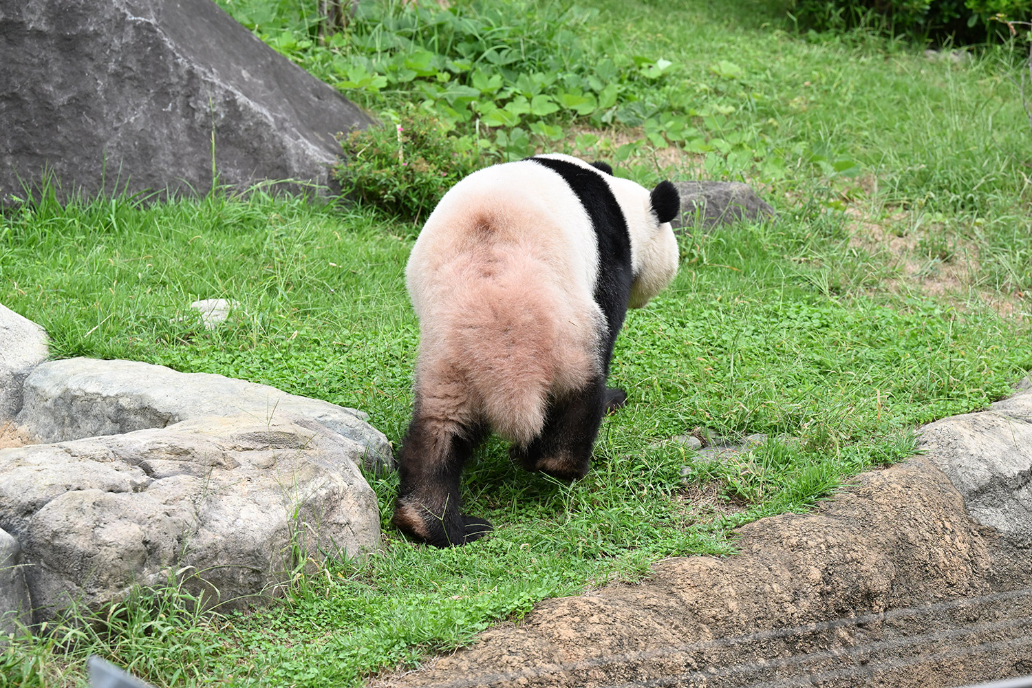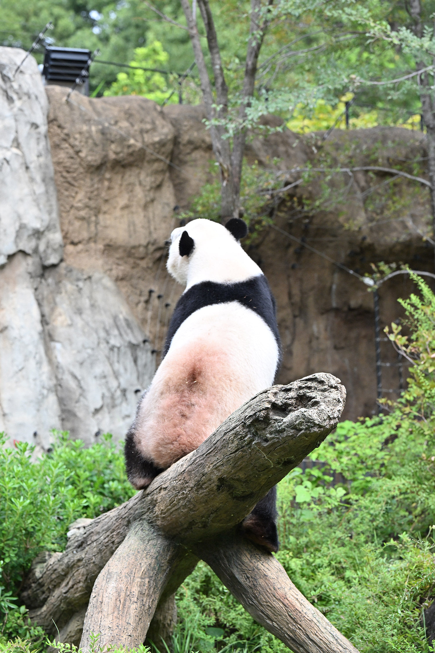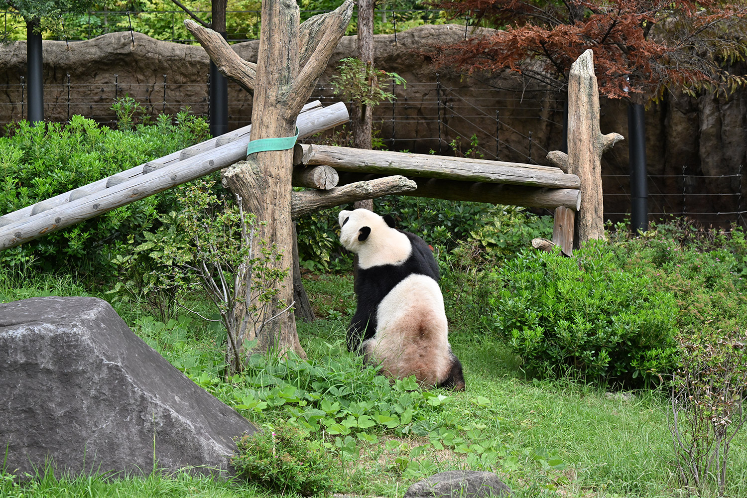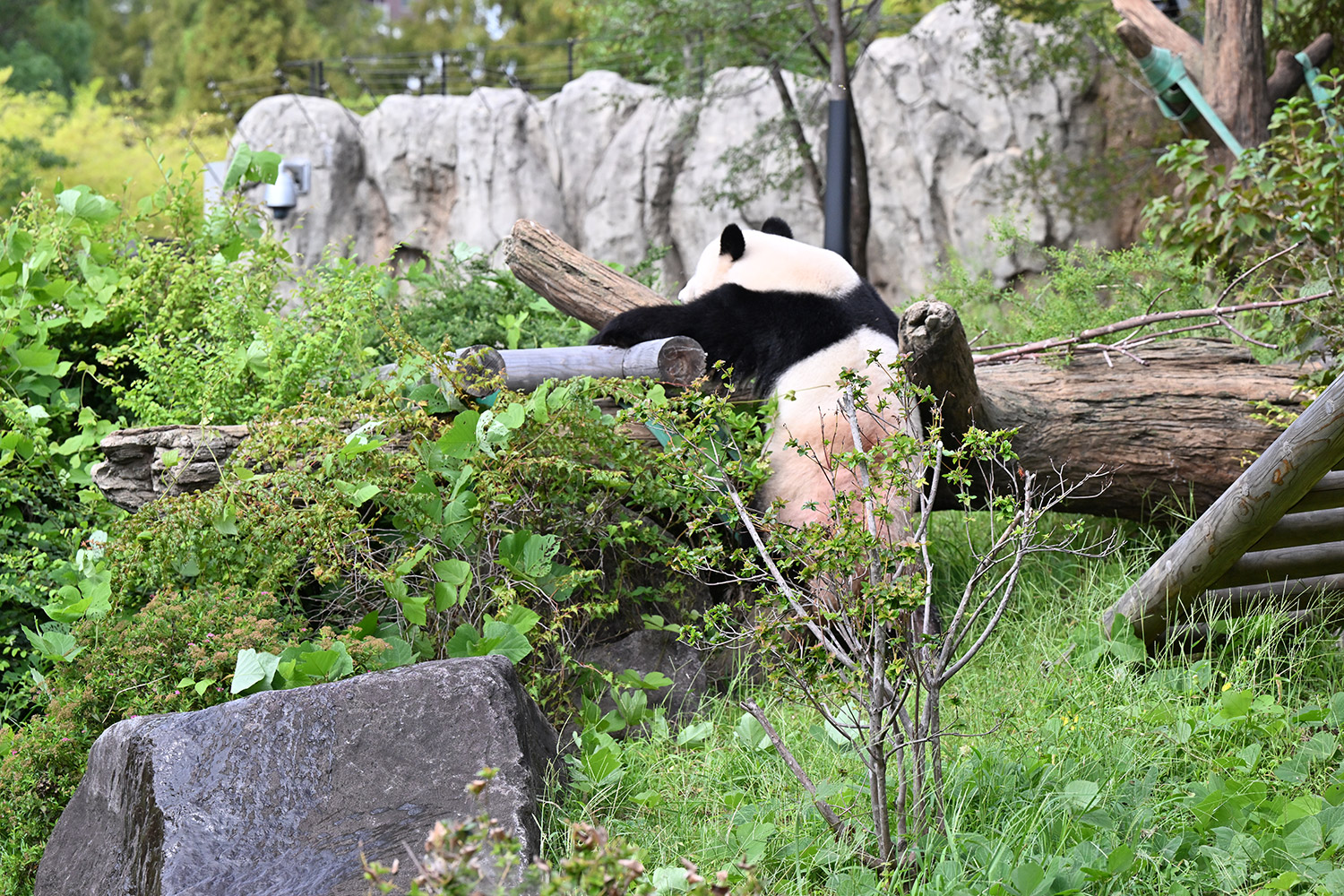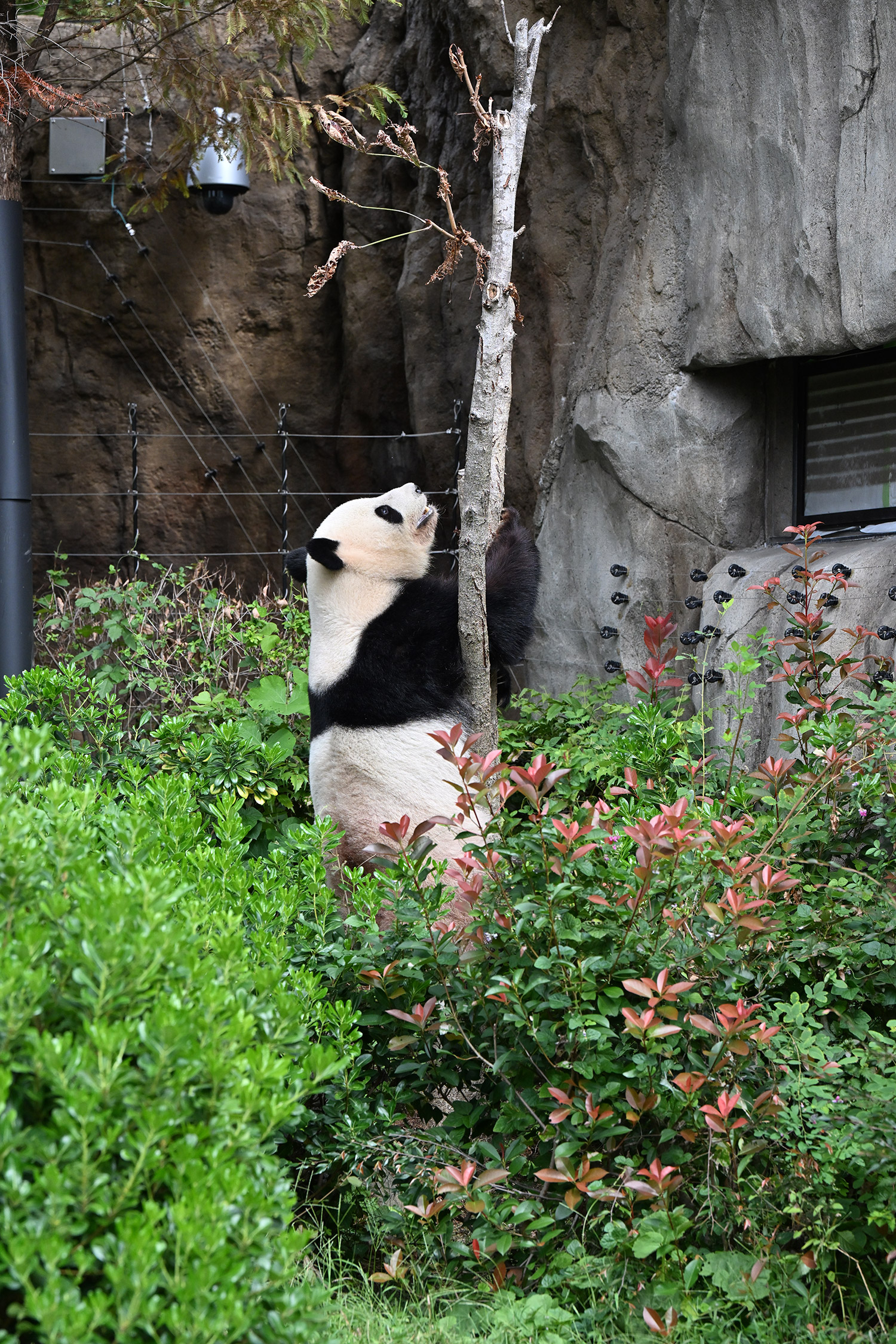 今日のパンダは10:00からです。今日は涼しい気温になったためシャオシャオは朝からお庭でした。