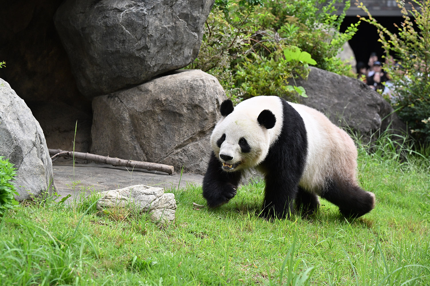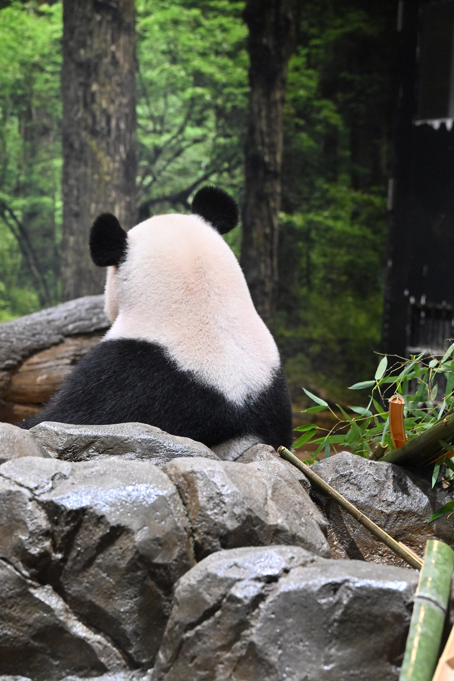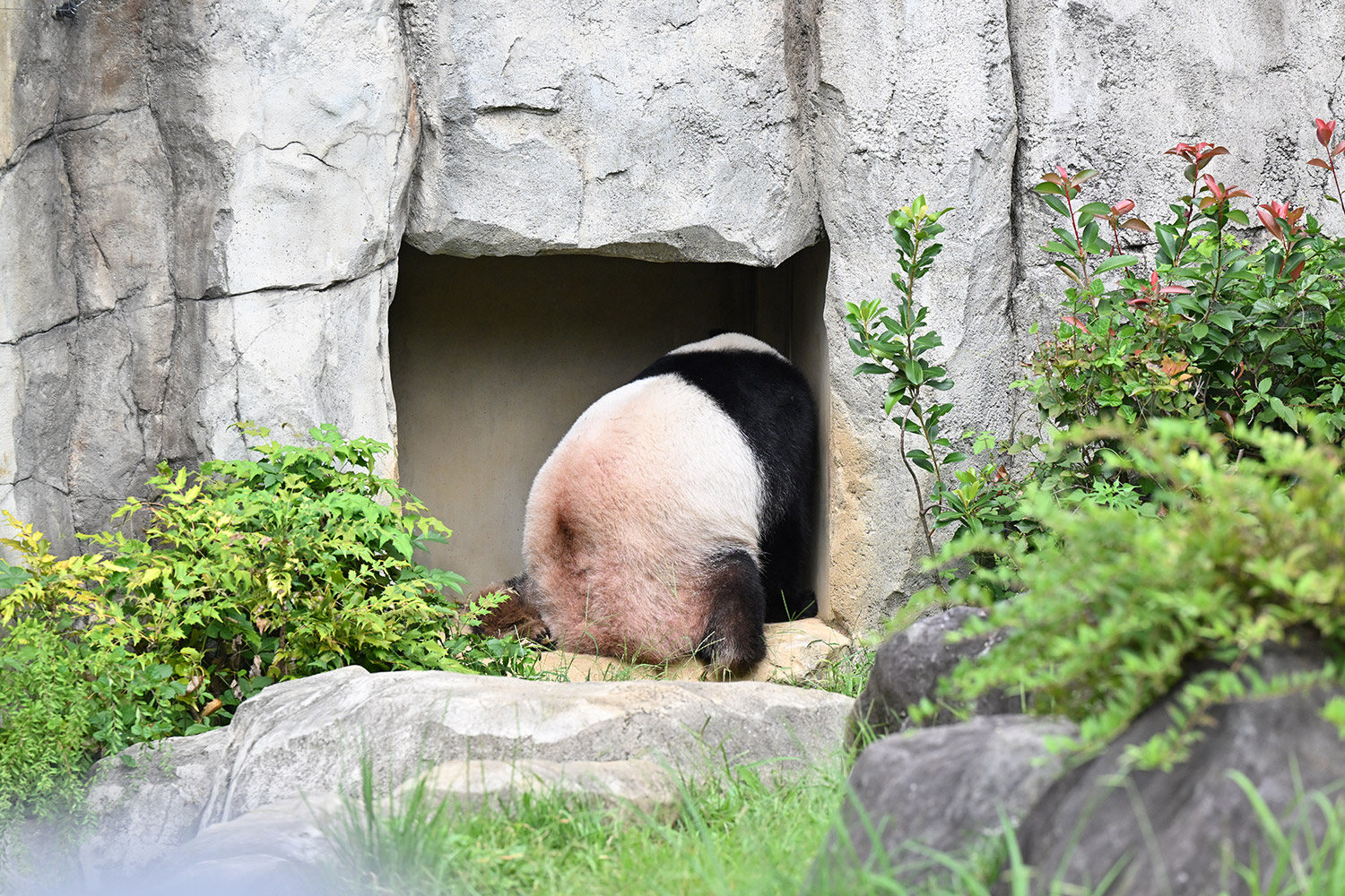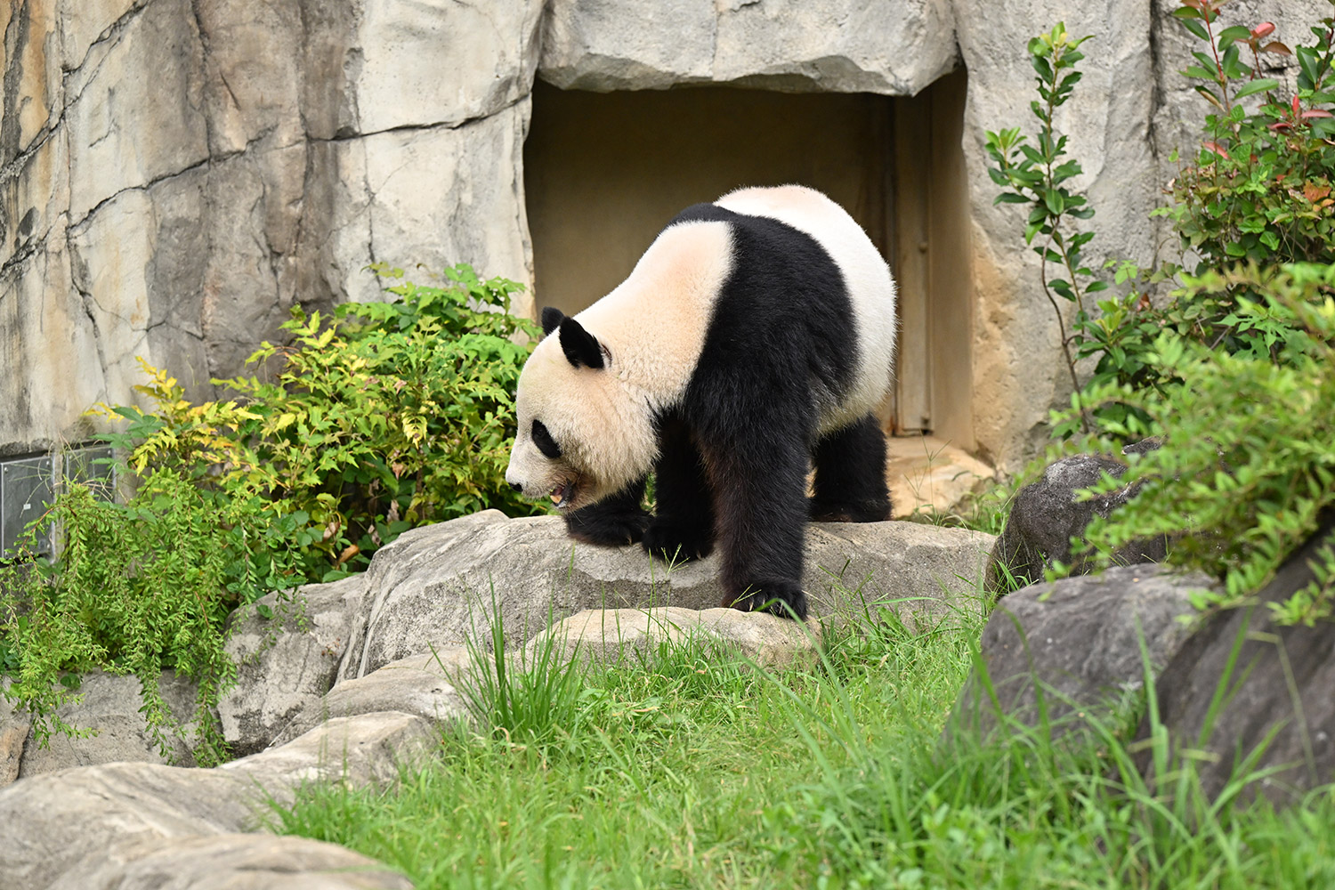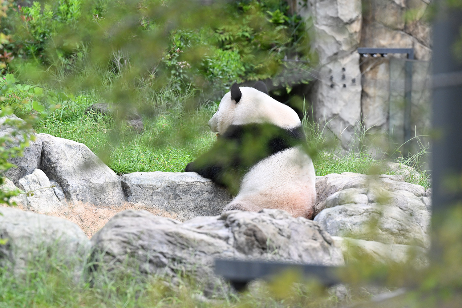 今日のパンダは10:00からです。今日は涼しい気温になったためシャオシャオは朝からお庭でした。