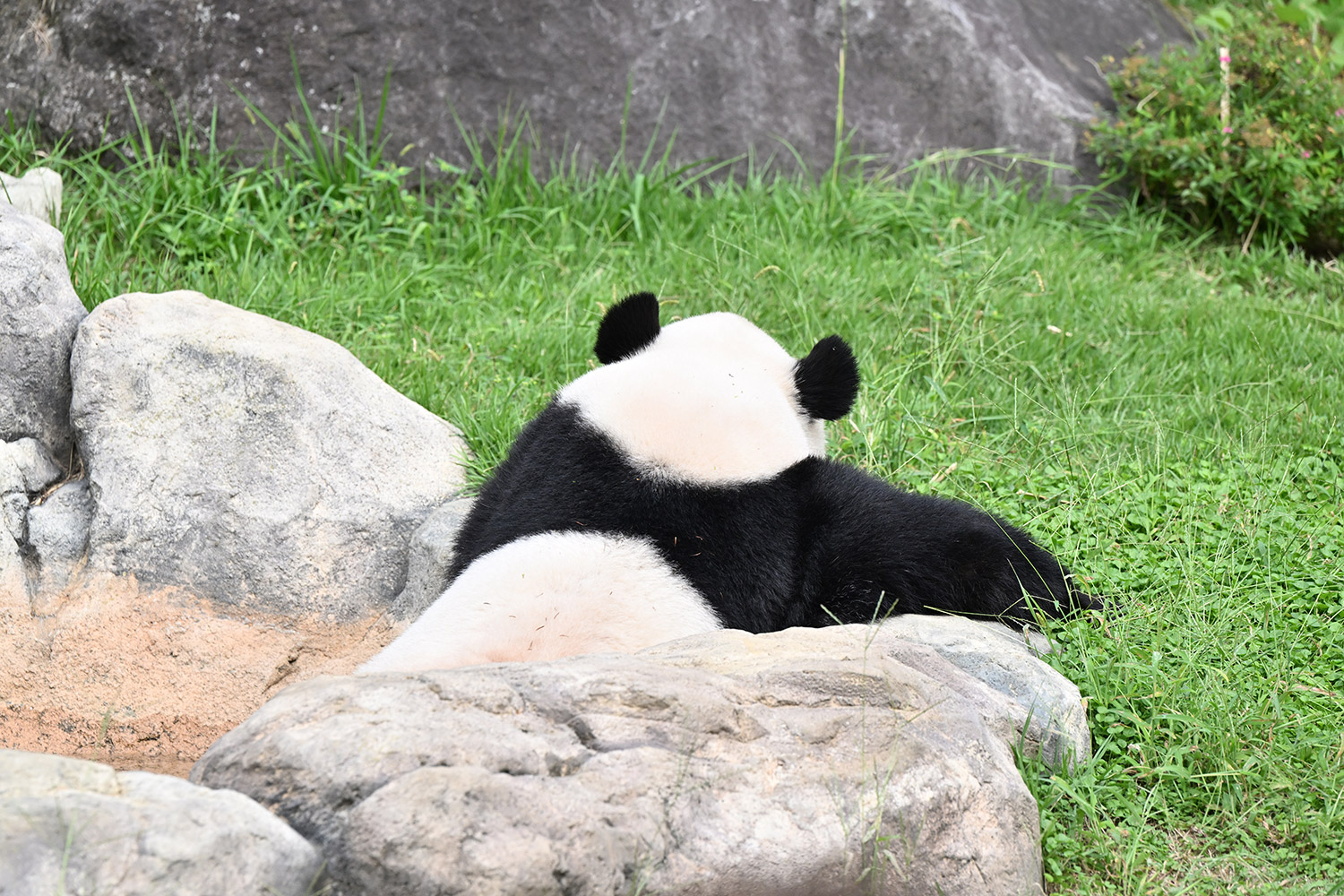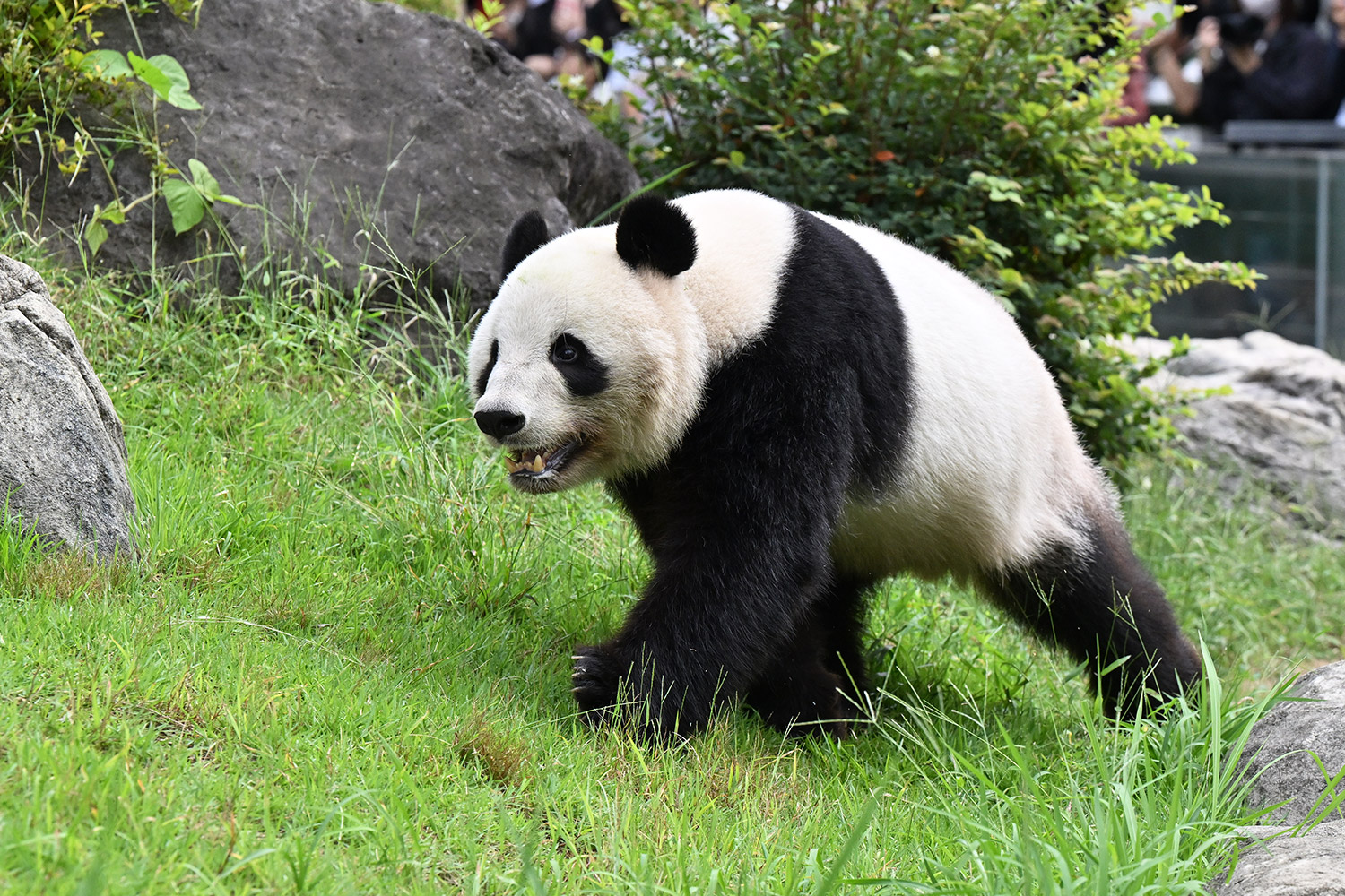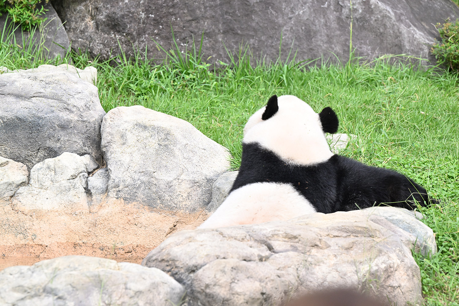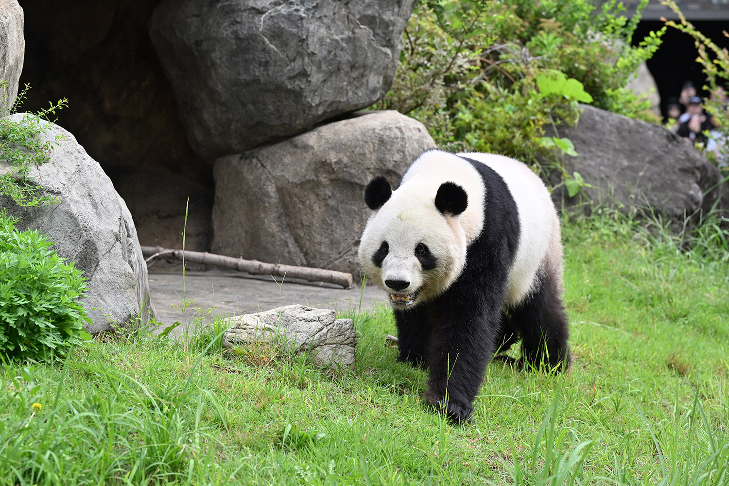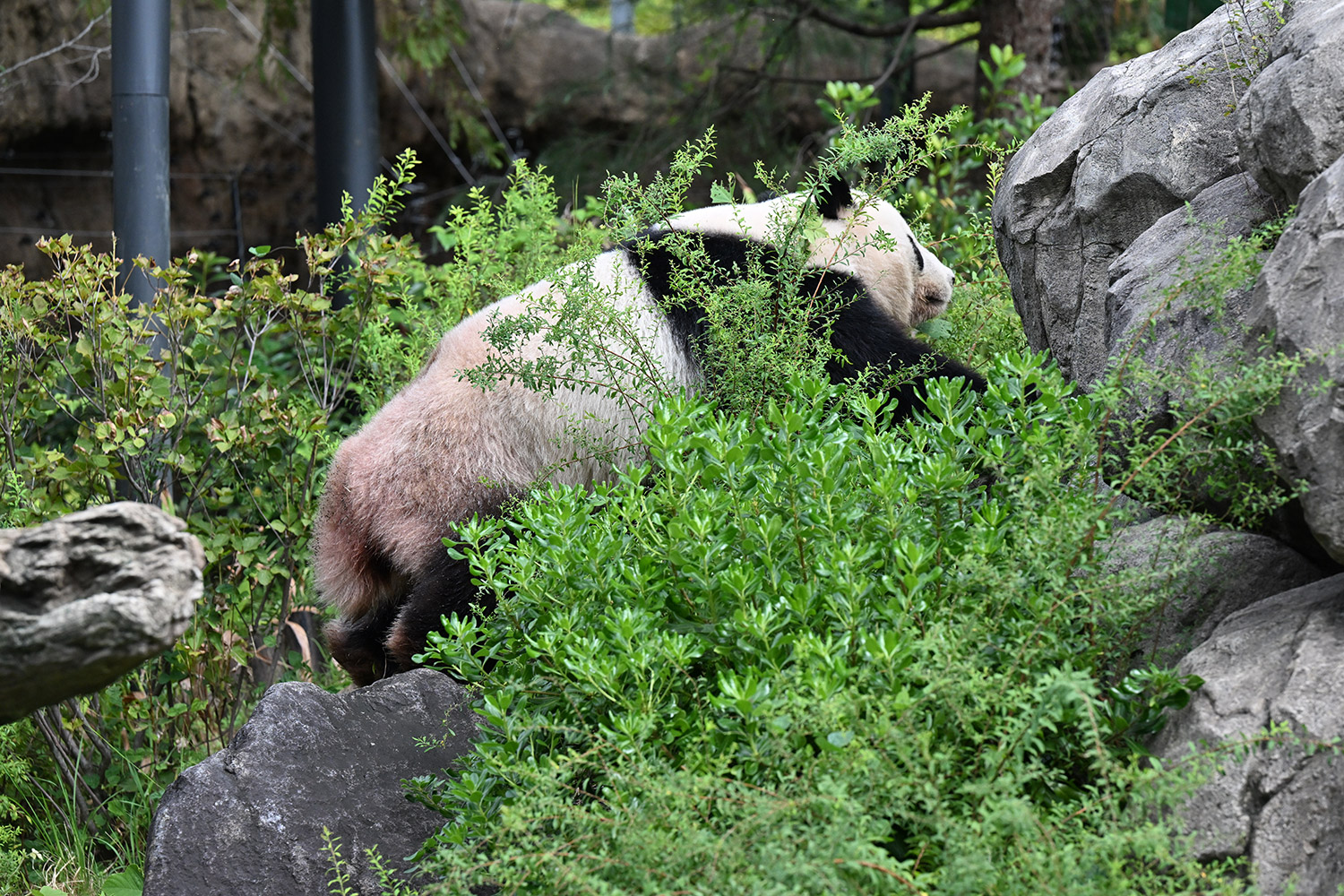 今日のパンダは10:00からです。今日は涼しい気温になったためシャオシャオは朝からお庭でした。