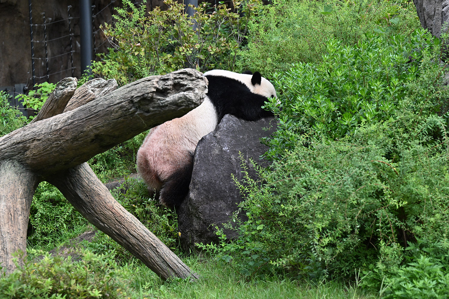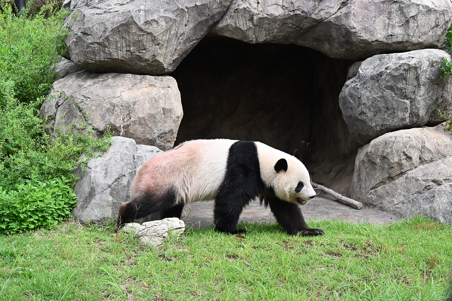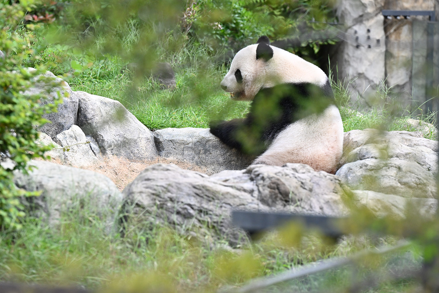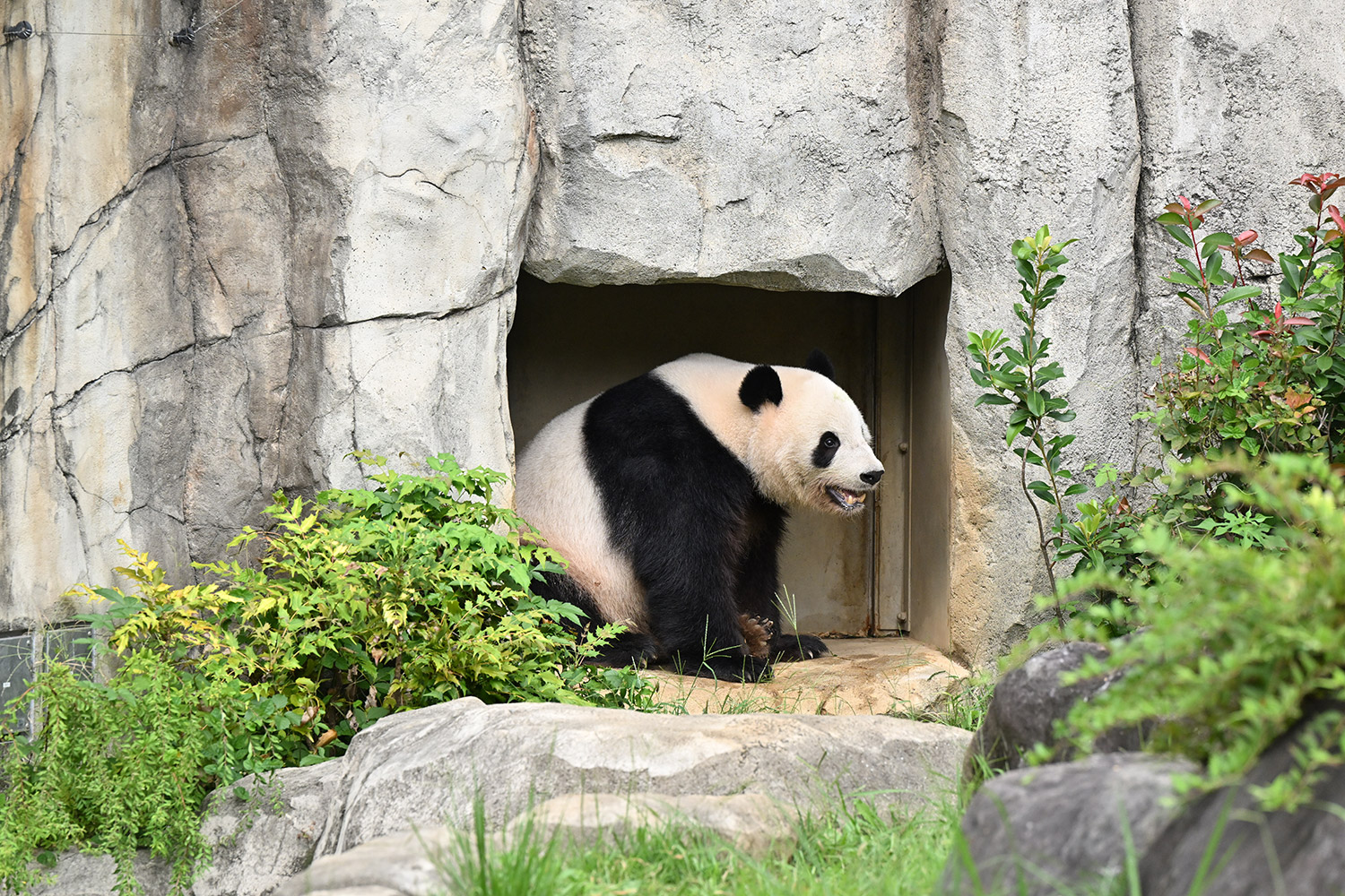 今日のパンダは10:00からです。今日は涼しい気温になったためシャオシャオは朝からお庭でした。