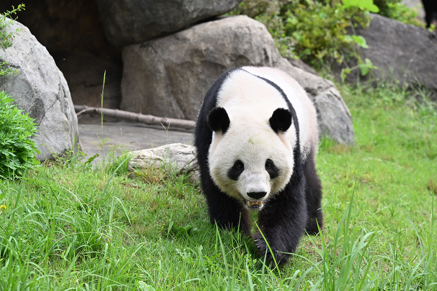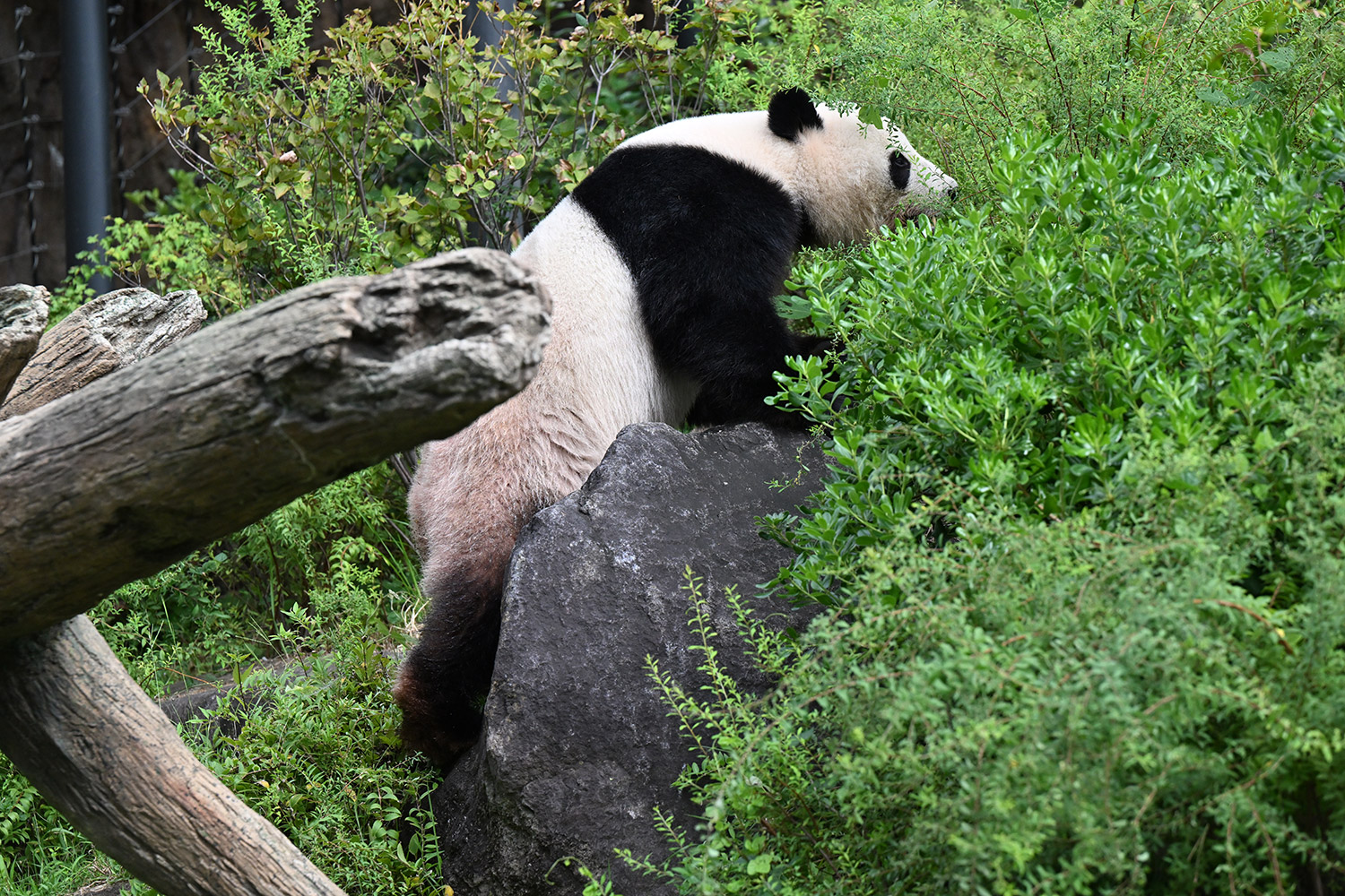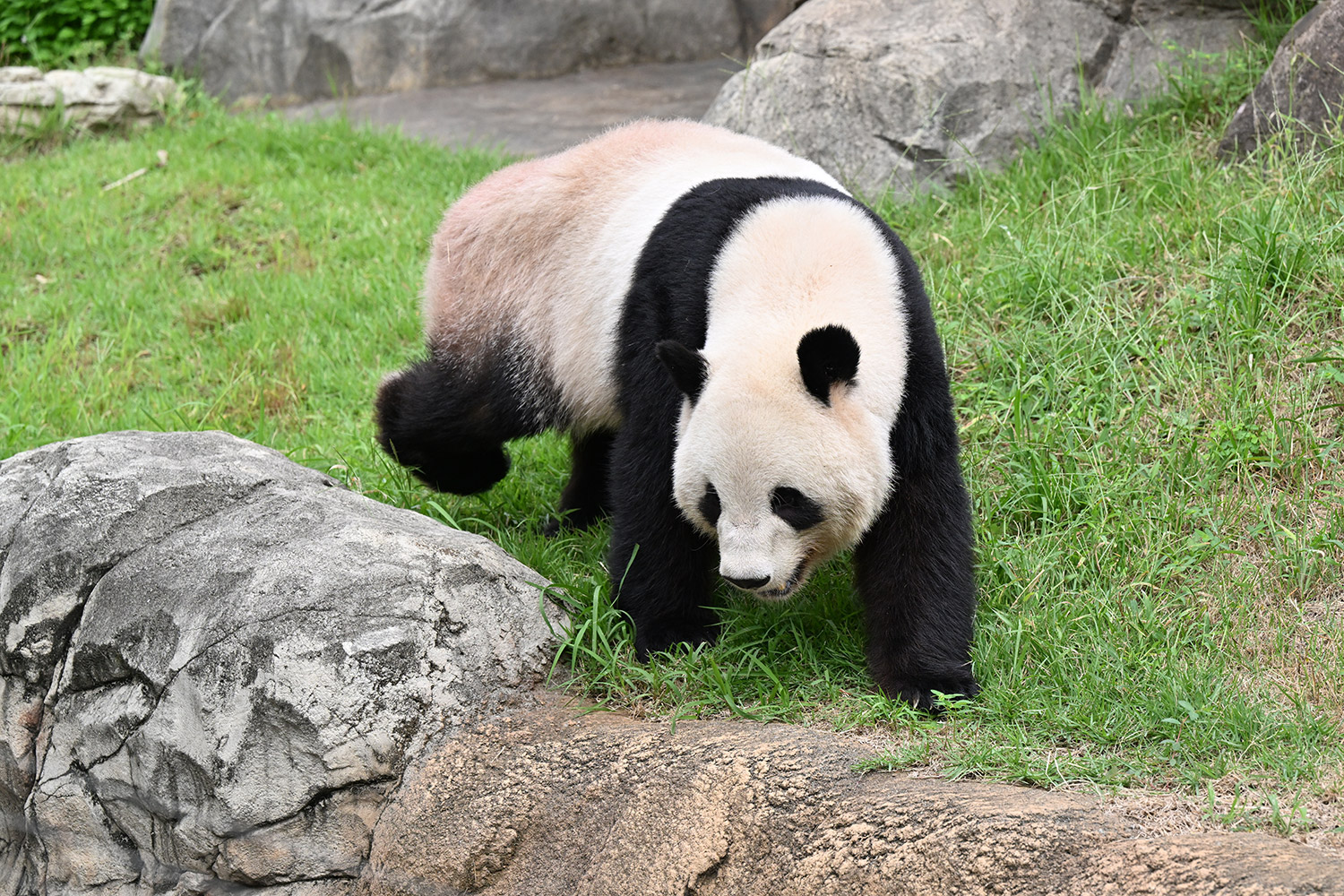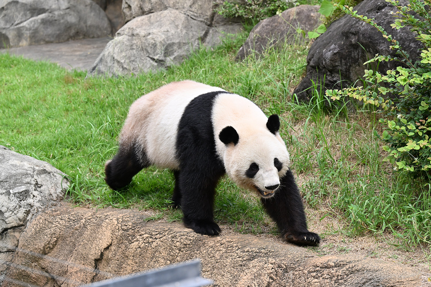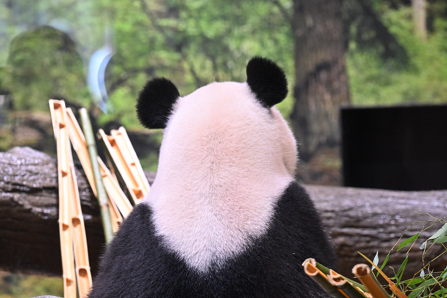 今日のパンダは10:00からです。今日は涼しい気温になったためシャオシャオは朝からお庭でした。
