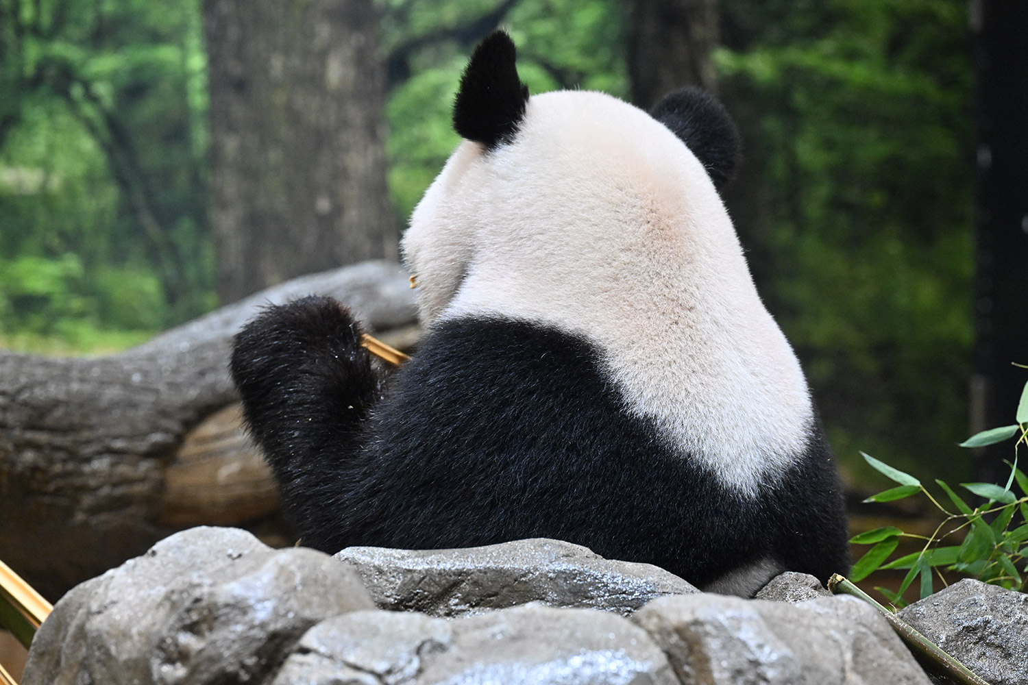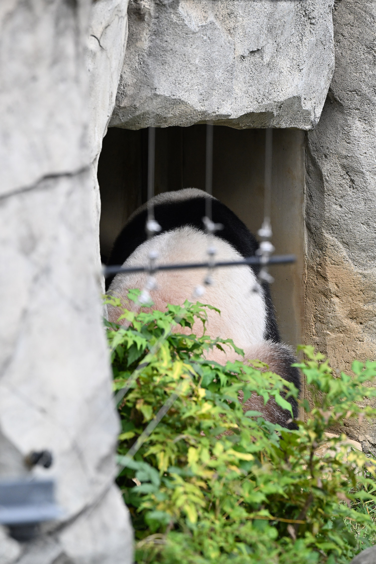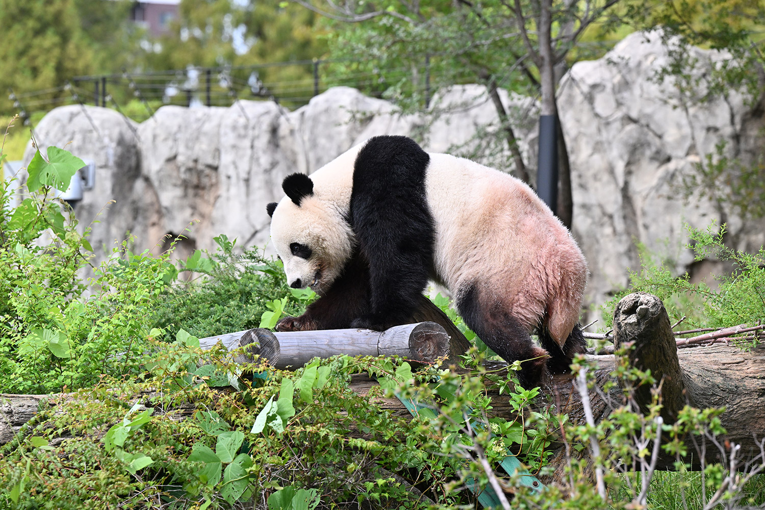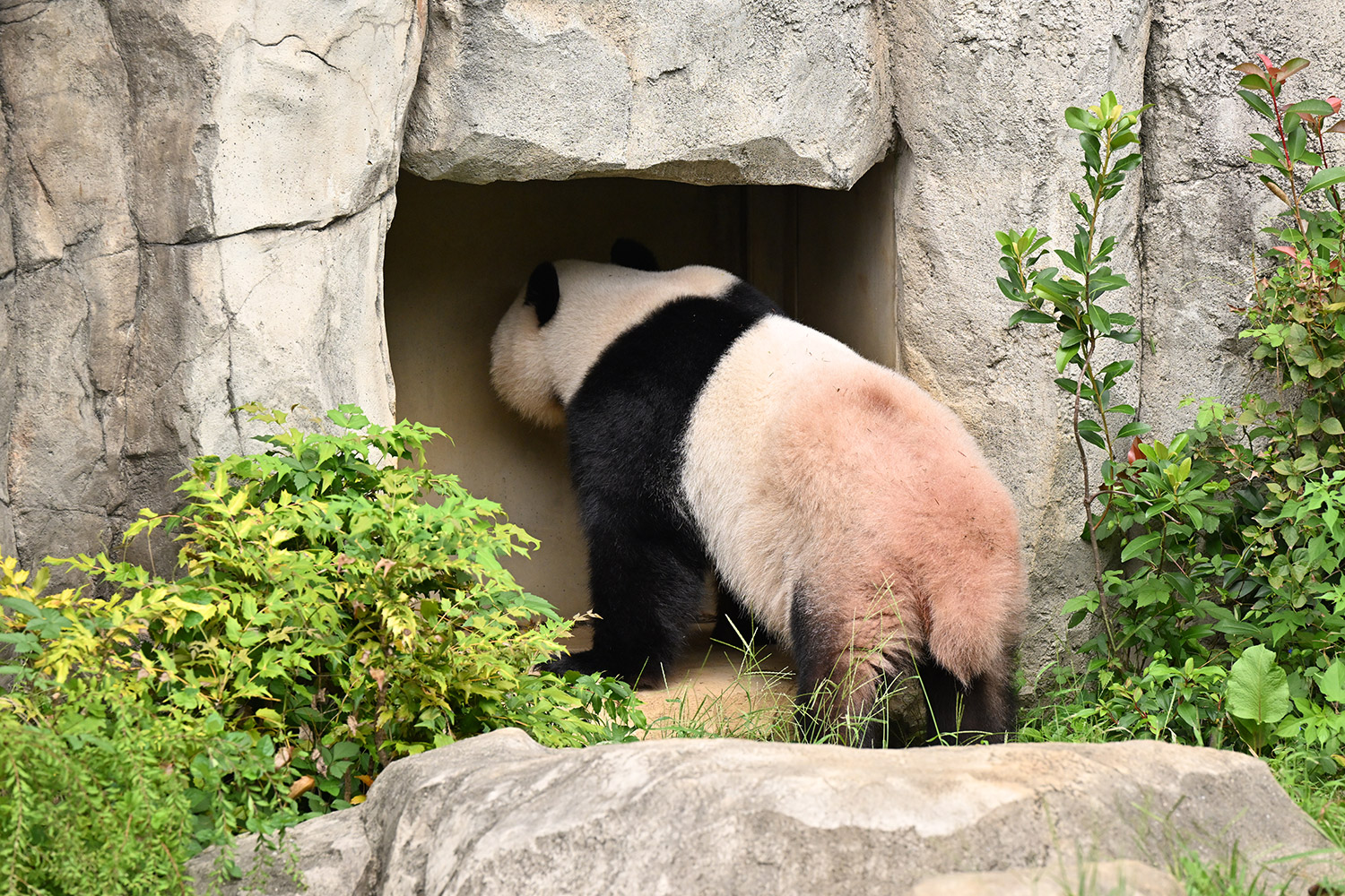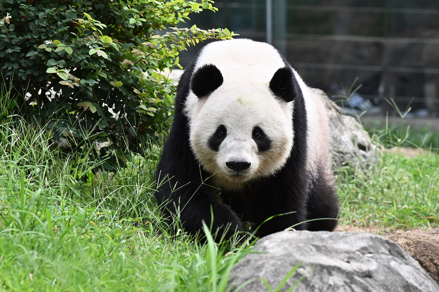 今日のパンダは10:00からです。今日は涼しい気温になったためシャオシャオは朝からお庭でした。