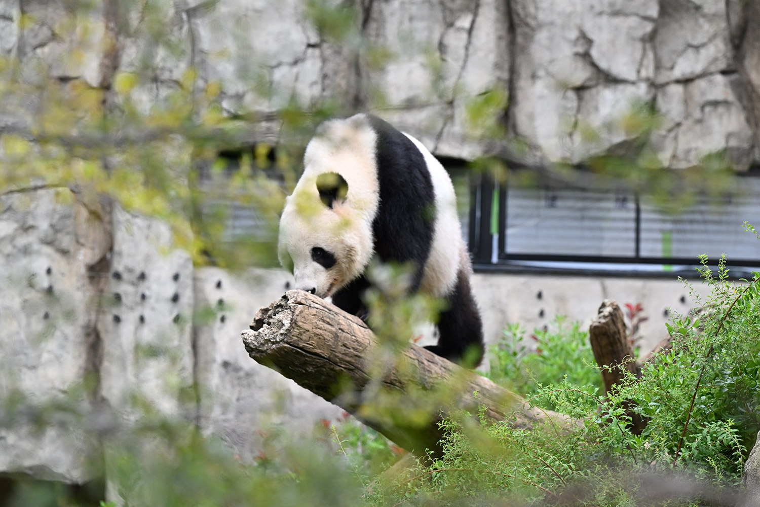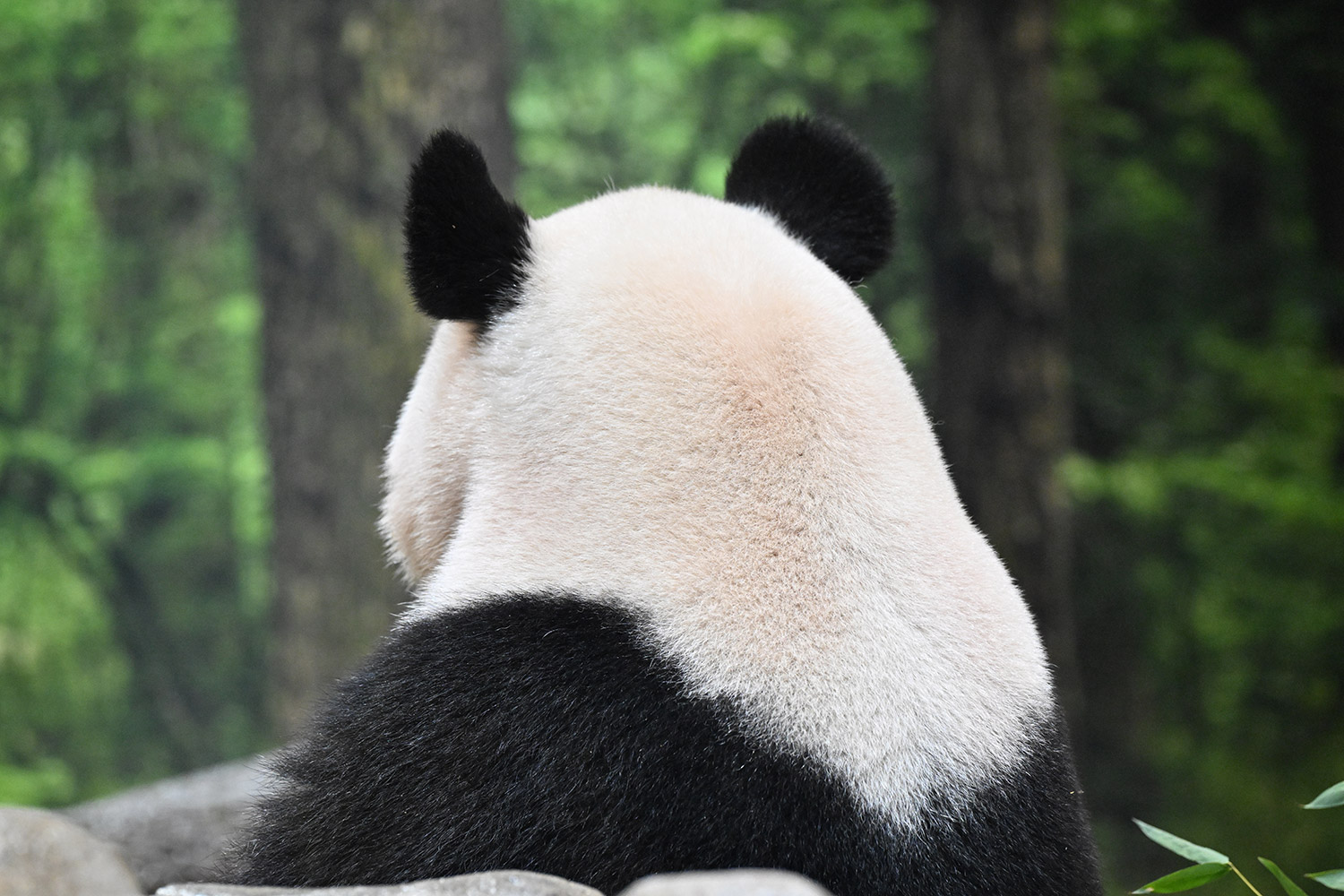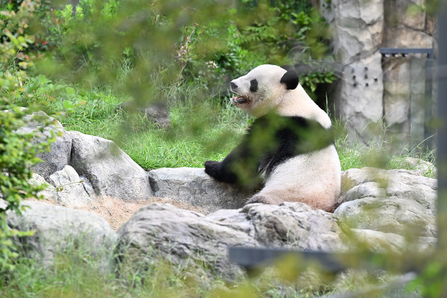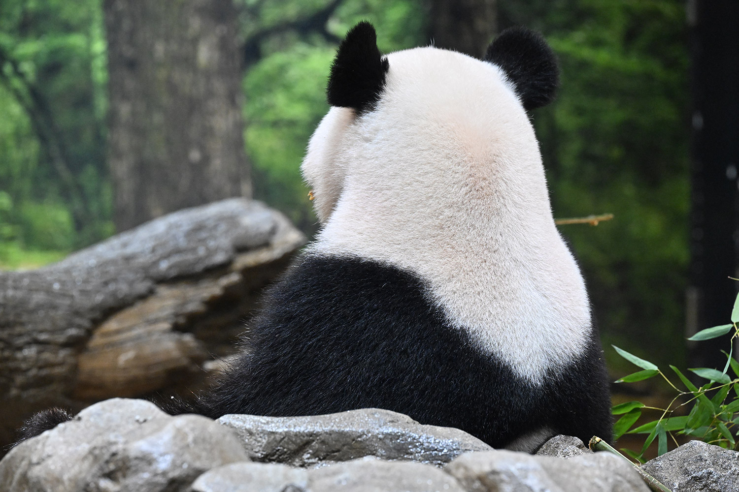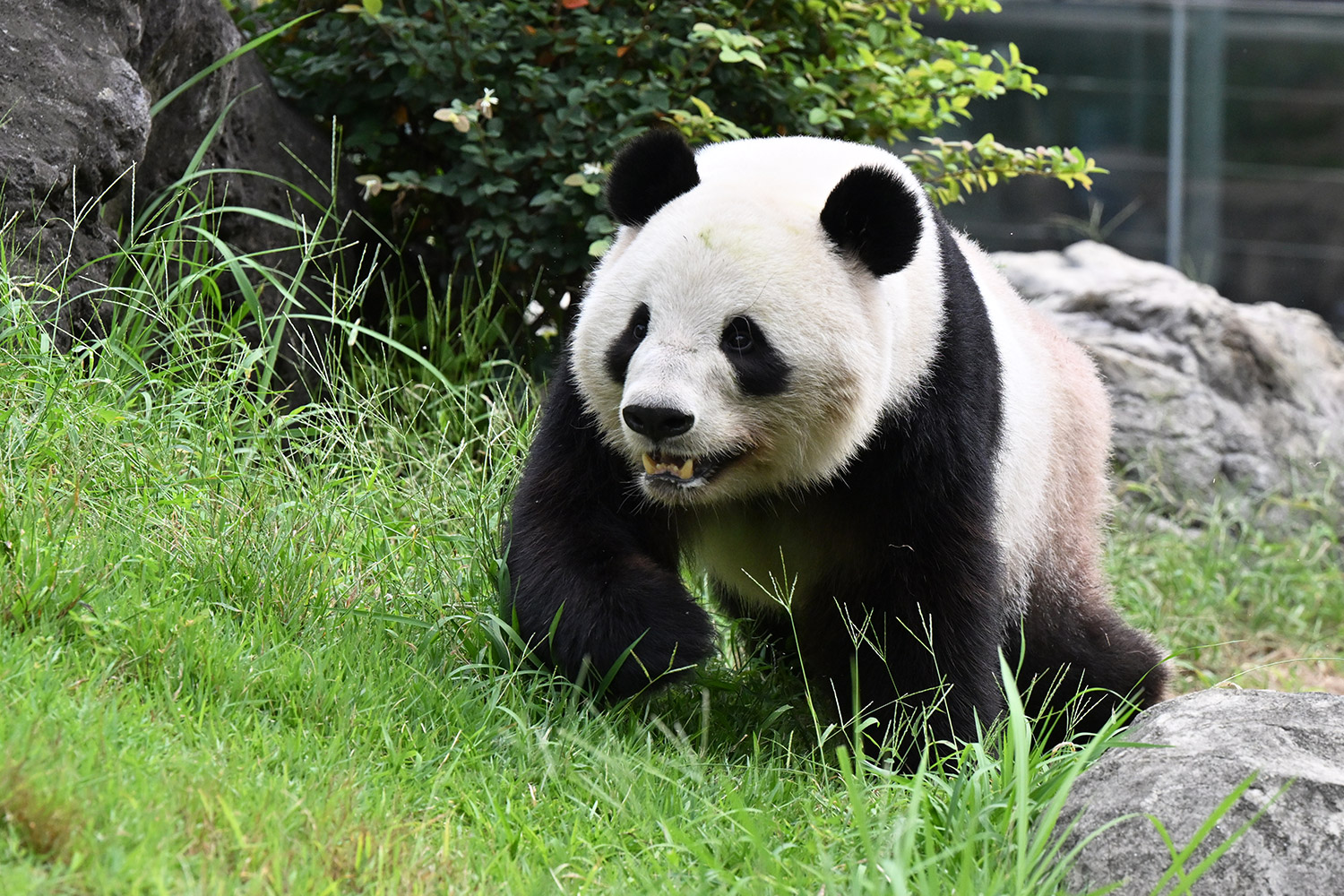 今日のパンダは10:00からです。今日は涼しい気温になったためシャオシャオは朝からお庭でした。