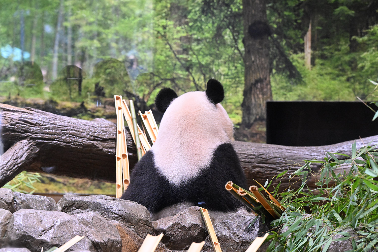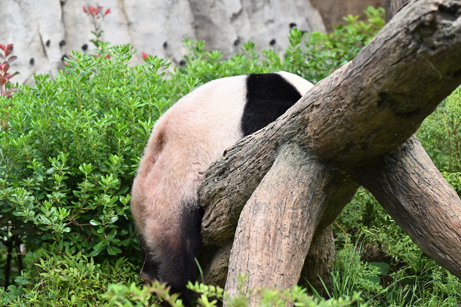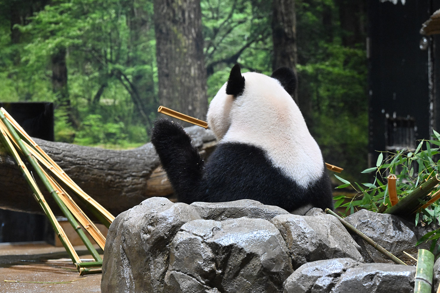 レイちゃんはお部屋かぁ…お庭の下草がまだ刈られてないんですよね、植込みはきれいになってるけど。うえの生まれ🐼ず的にはあんまり馴染みのない環境かな…🙄?すごくきれいに整備されたとこで暮らしてますからね…ママみたいにサラダバー三昧はレイちゃんはしないかな〜😂?