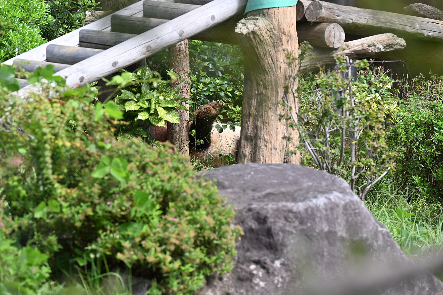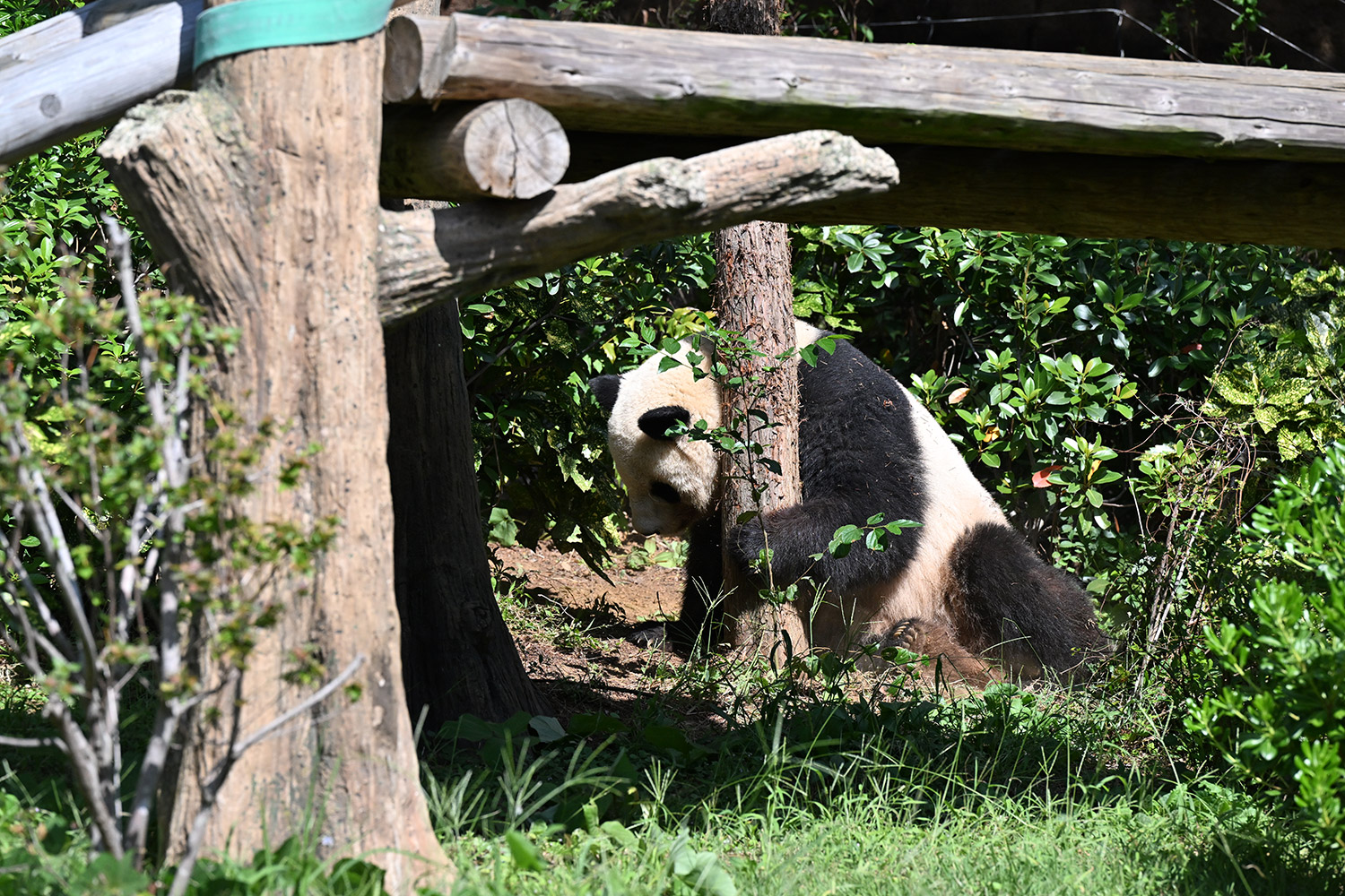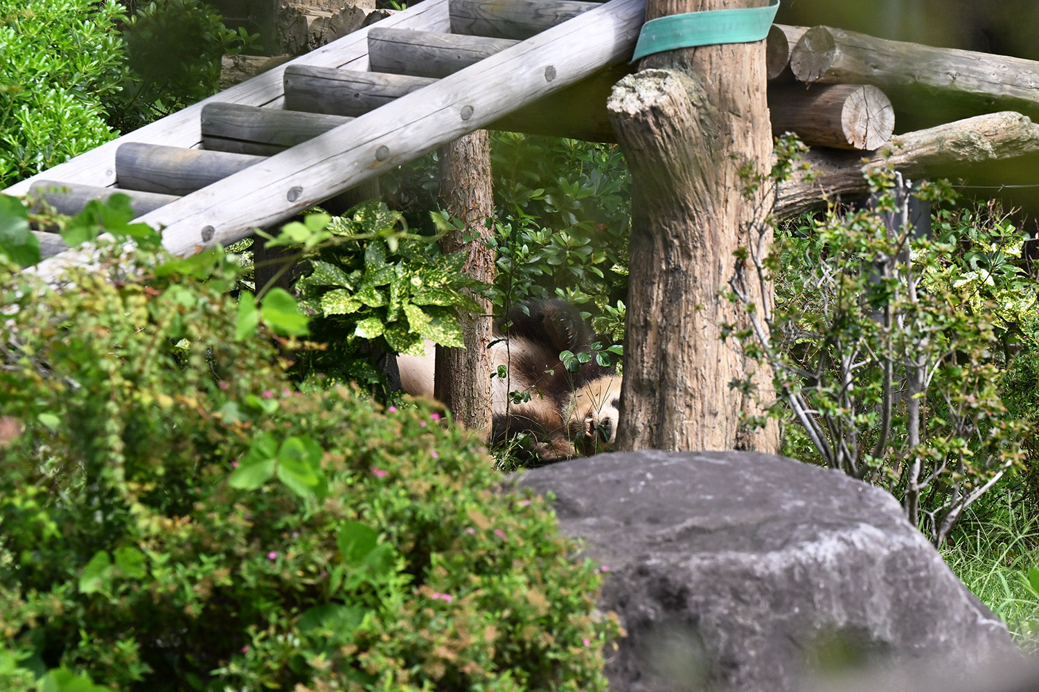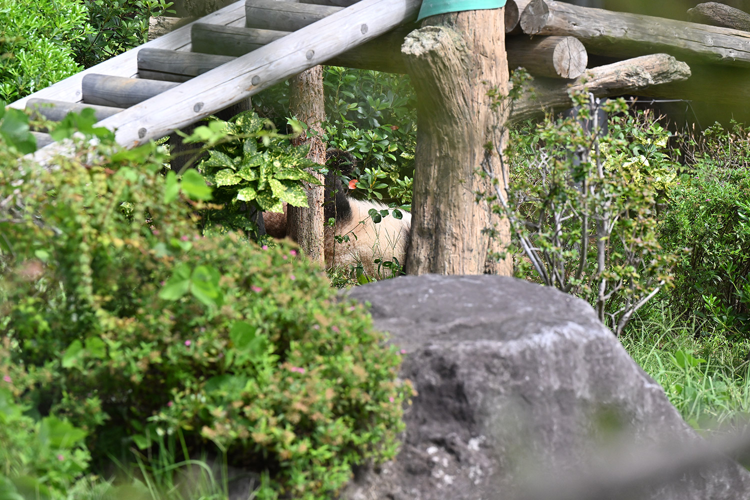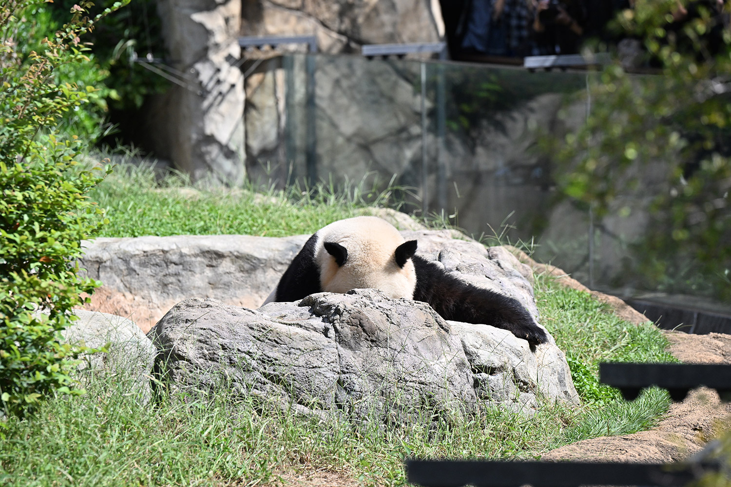 今日のパンダは10:00からです。今日も日差しはやや強めでしたが気温は控えめだったので2頭ともお外でした。