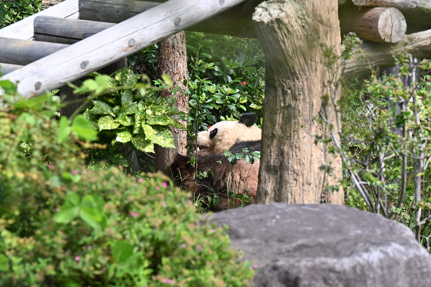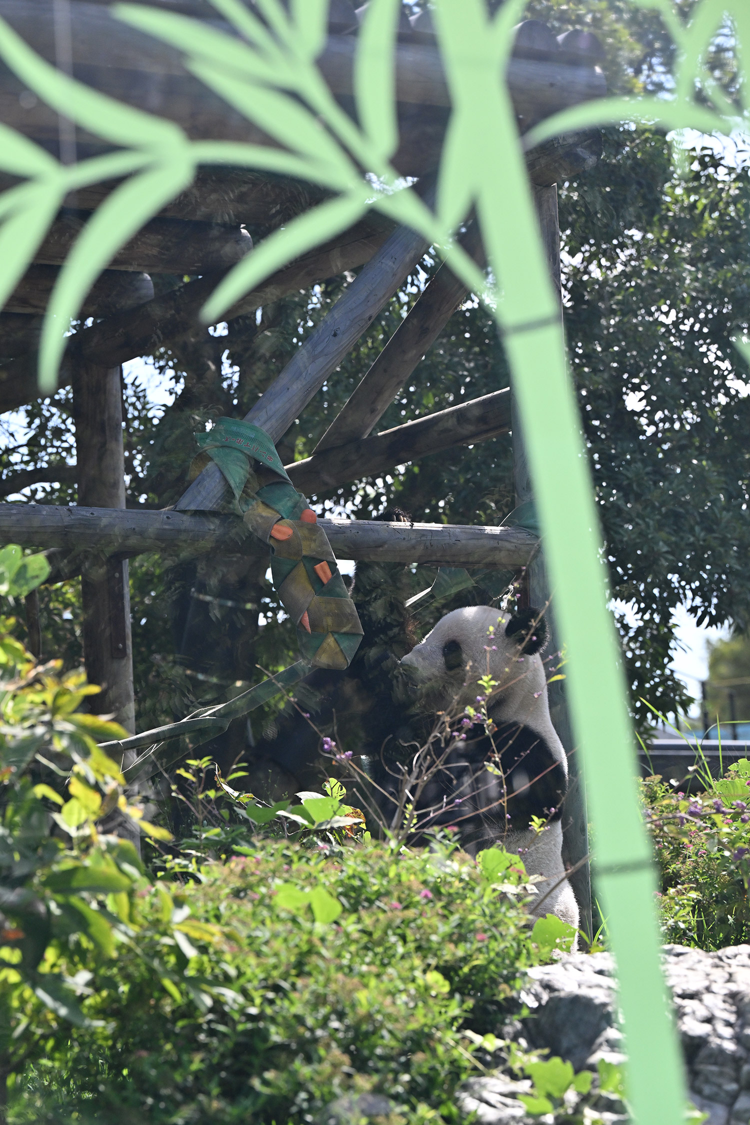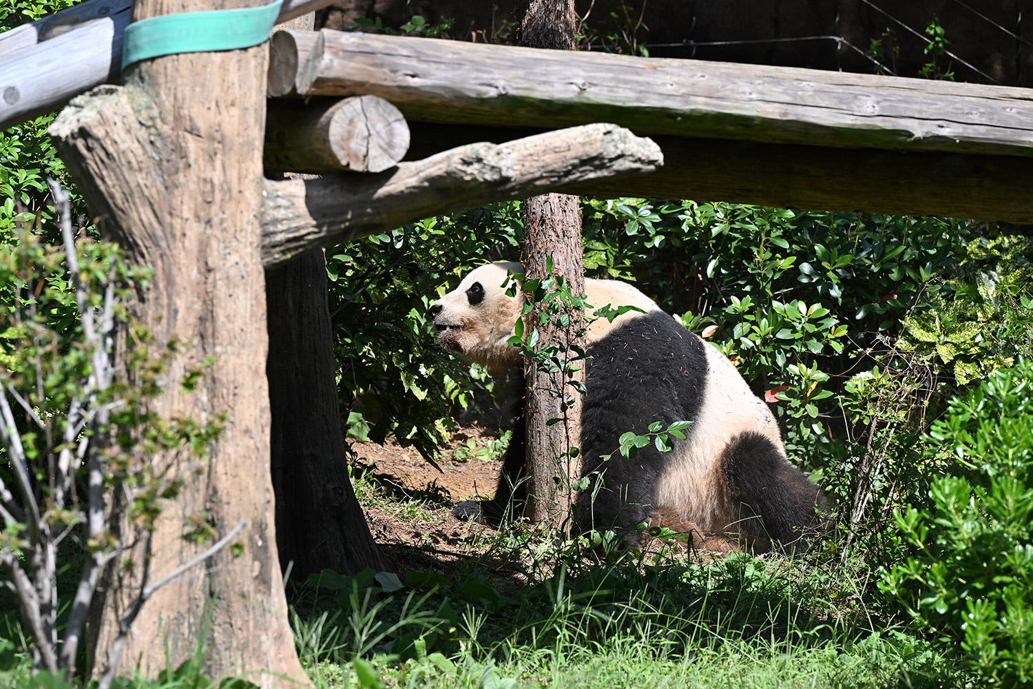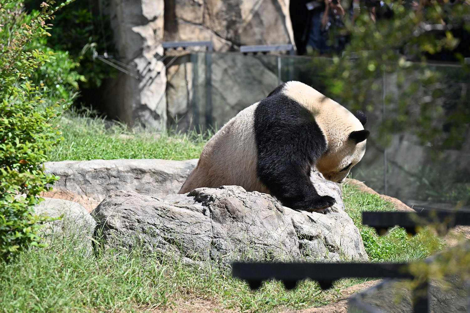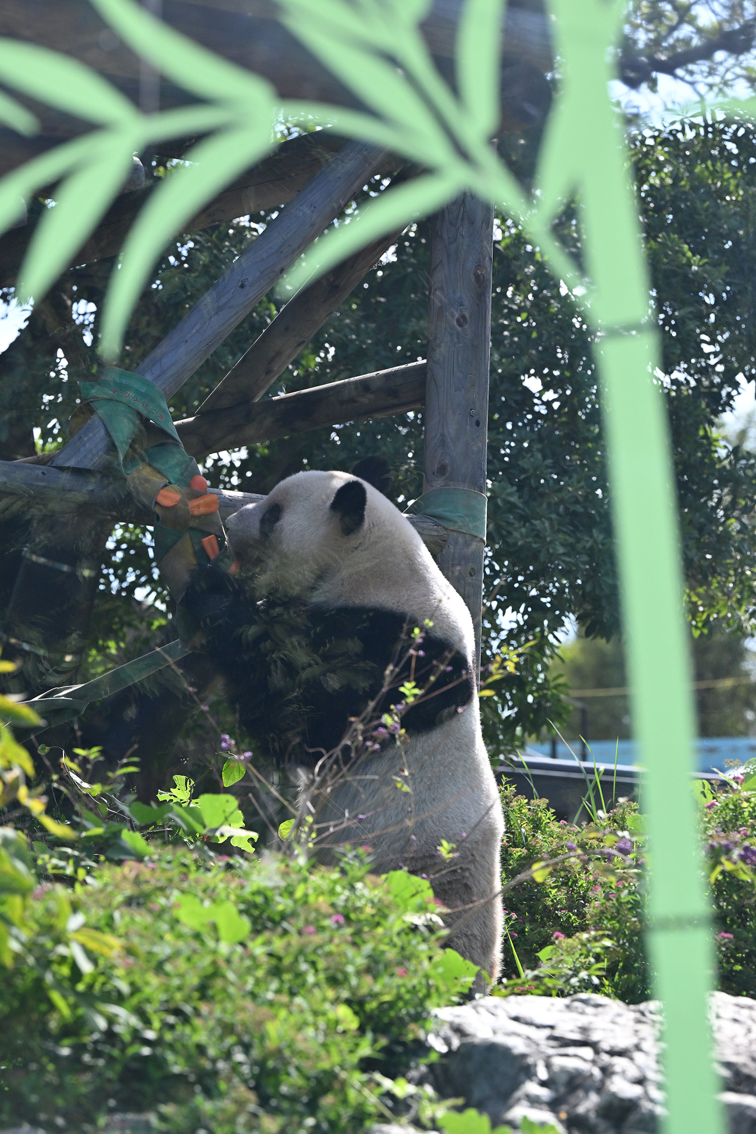 今日のパンダは10:00からです。今日も日差しはやや強めでしたが気温は控えめだったので2頭ともお外でした。