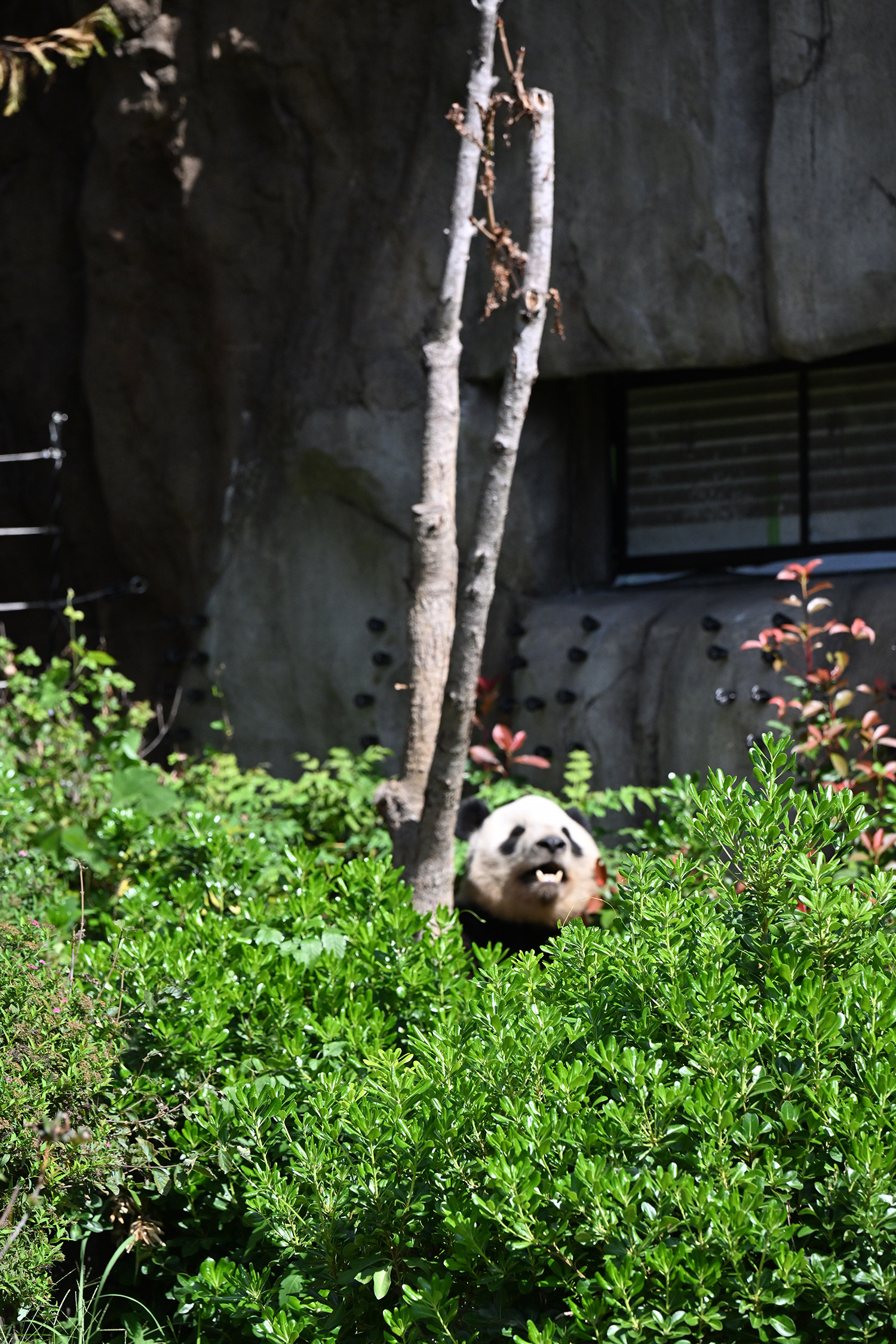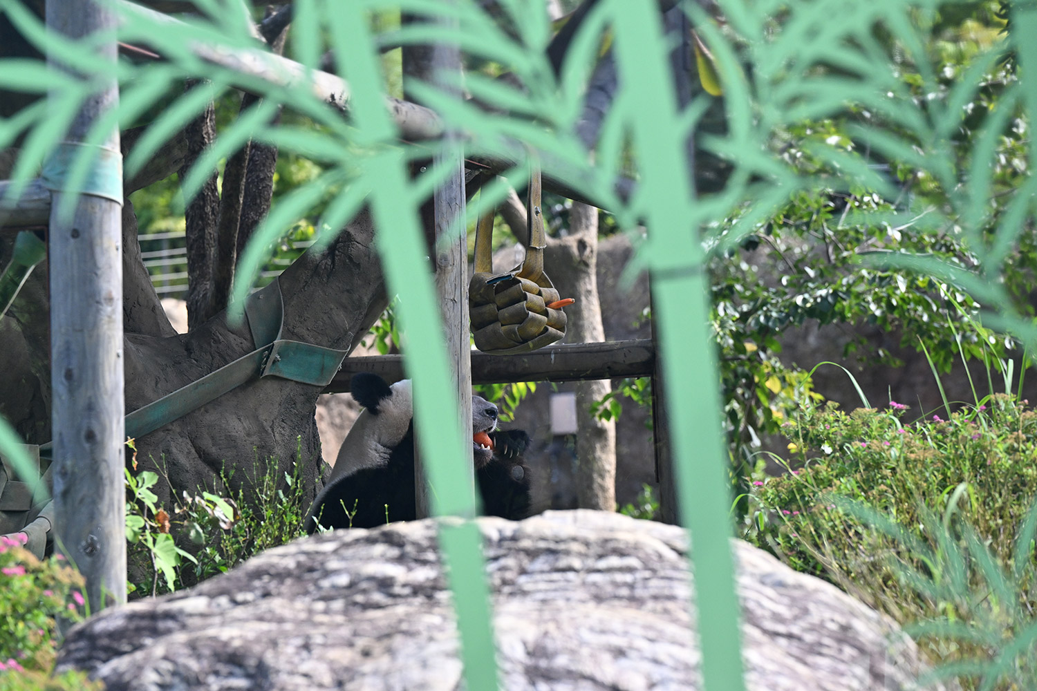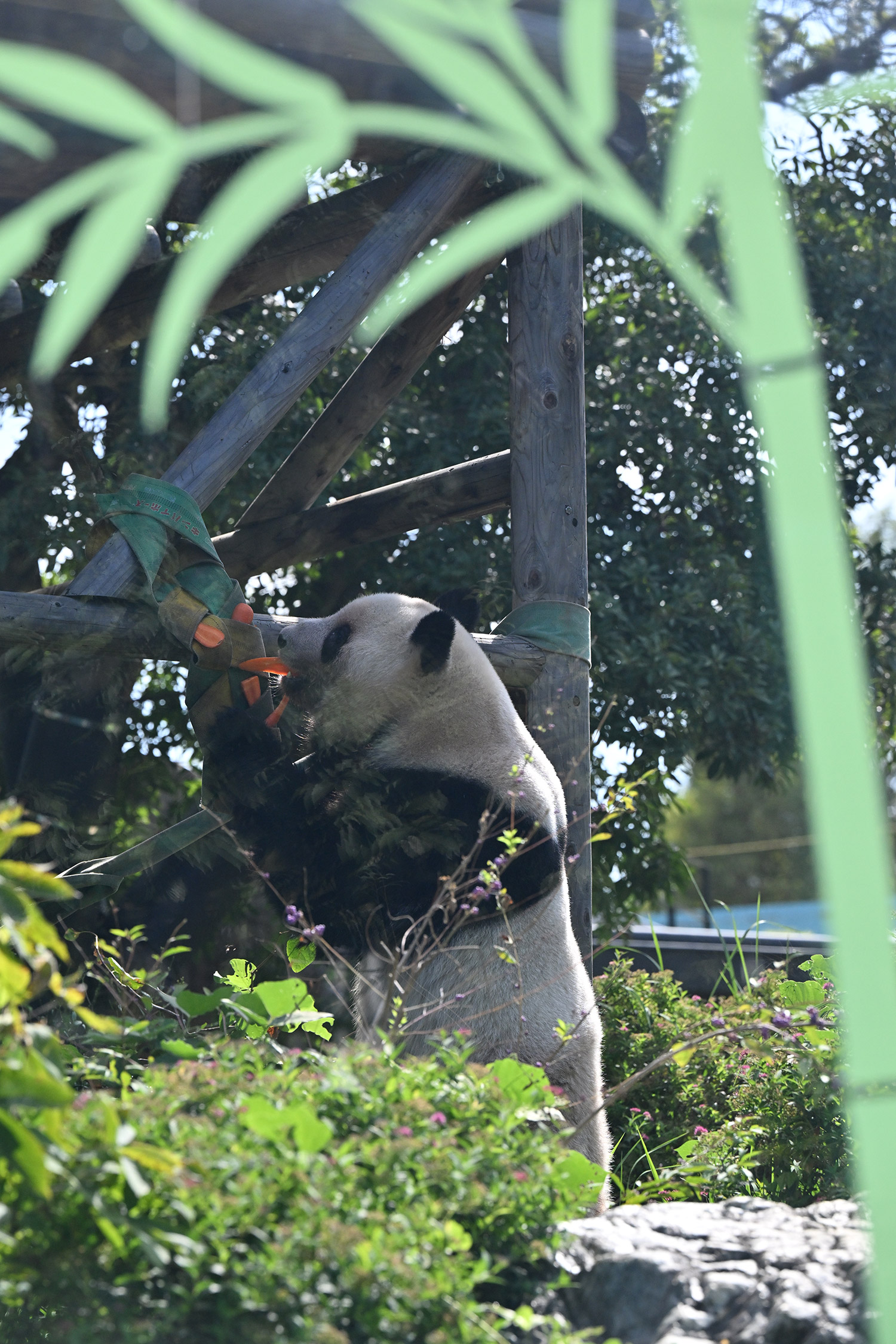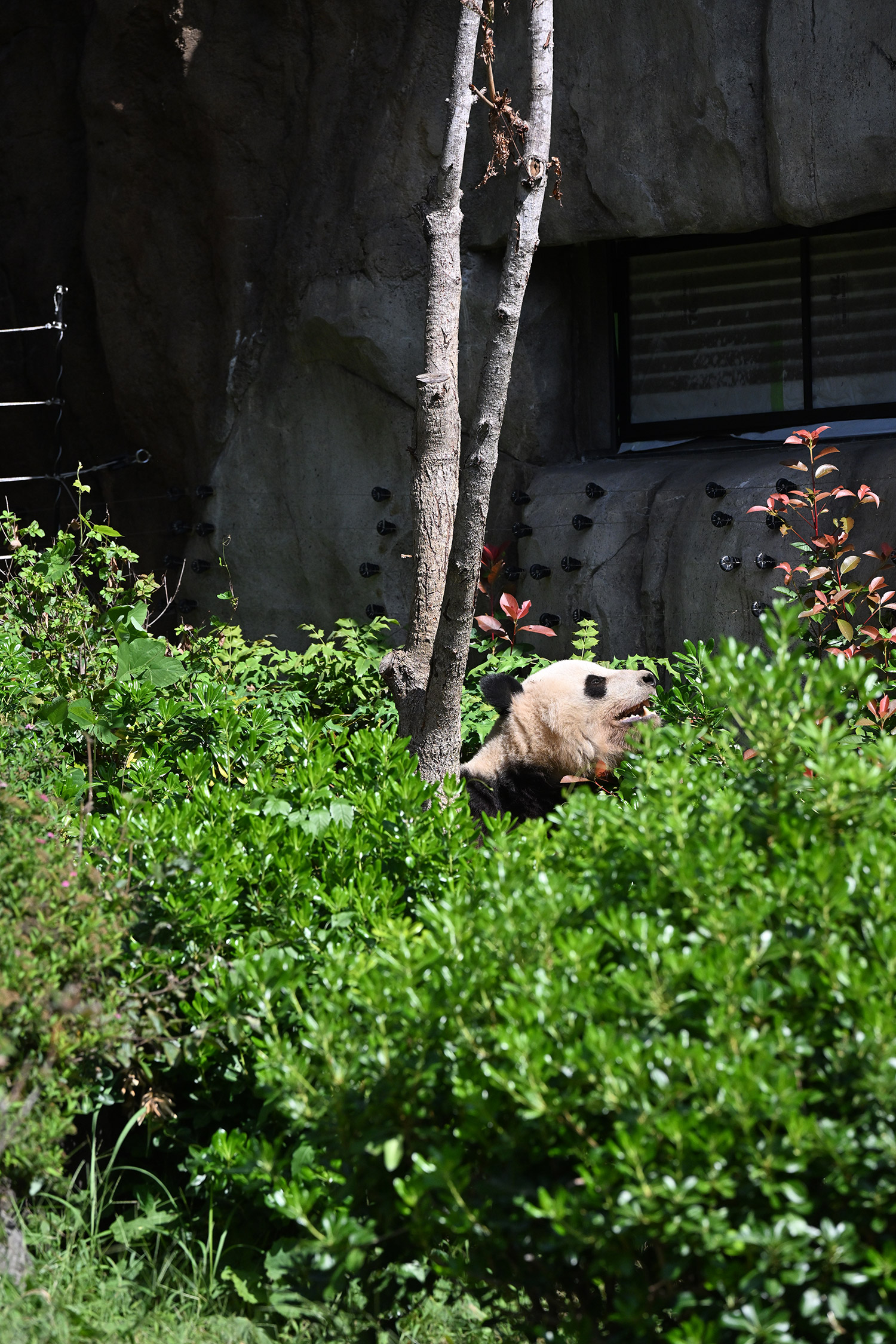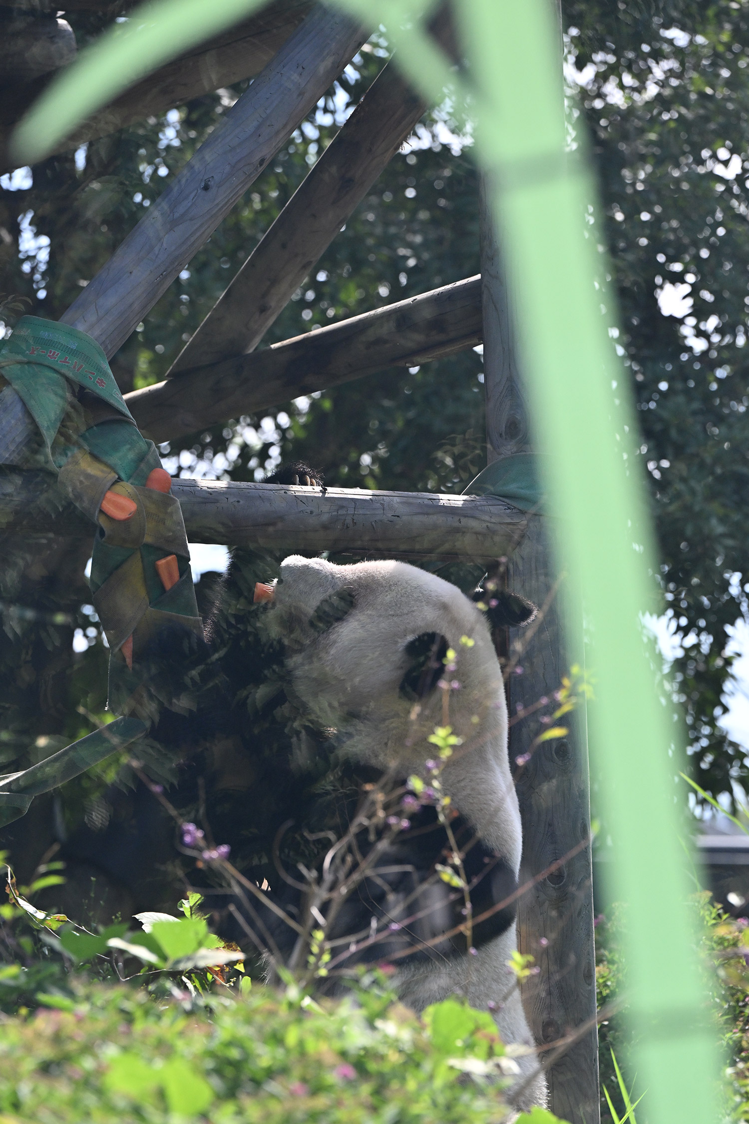 今日のパンダは10:00からです。今日も日差しはやや強めでしたが気温は控えめだったので2頭ともお外でした。