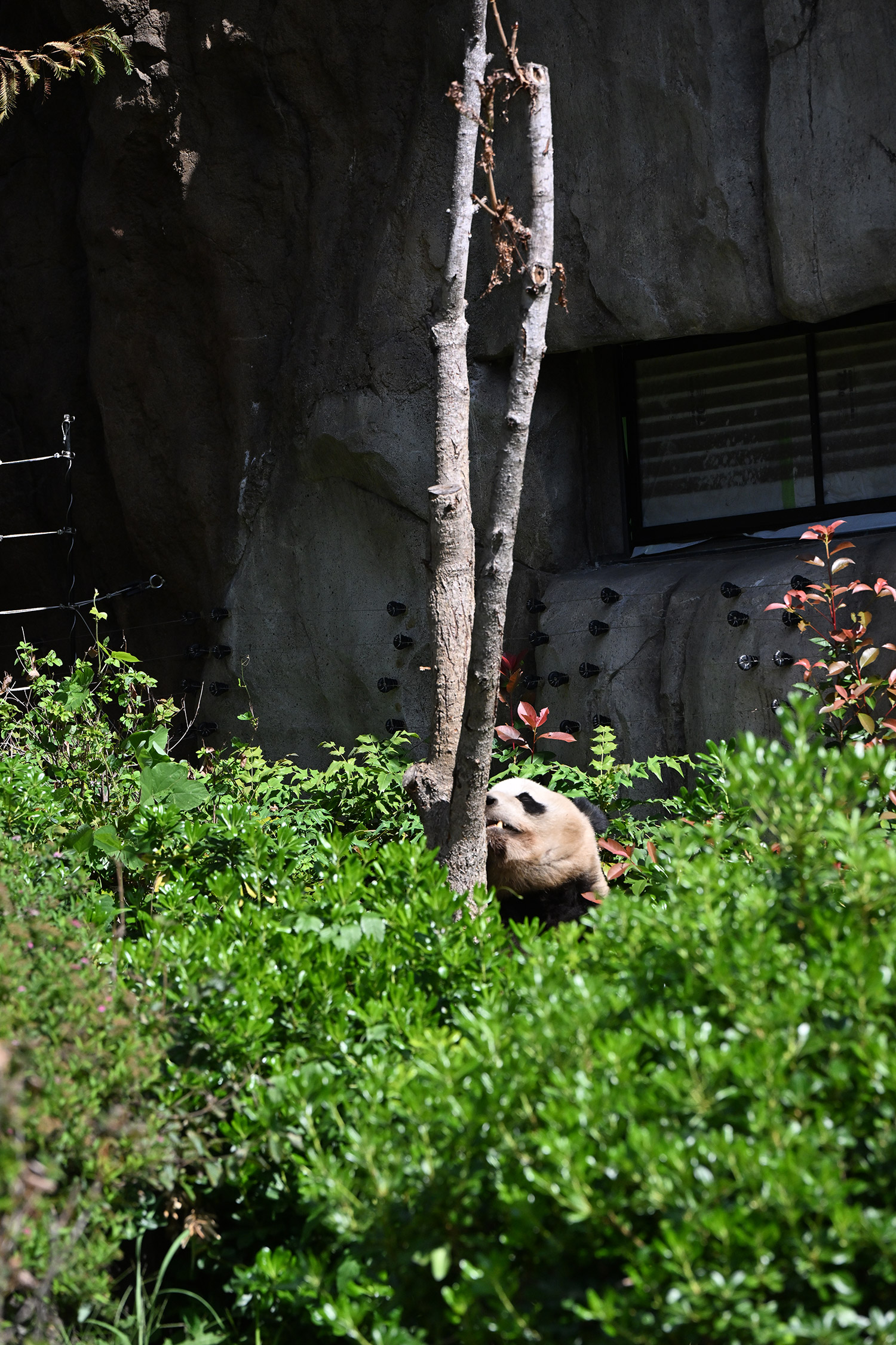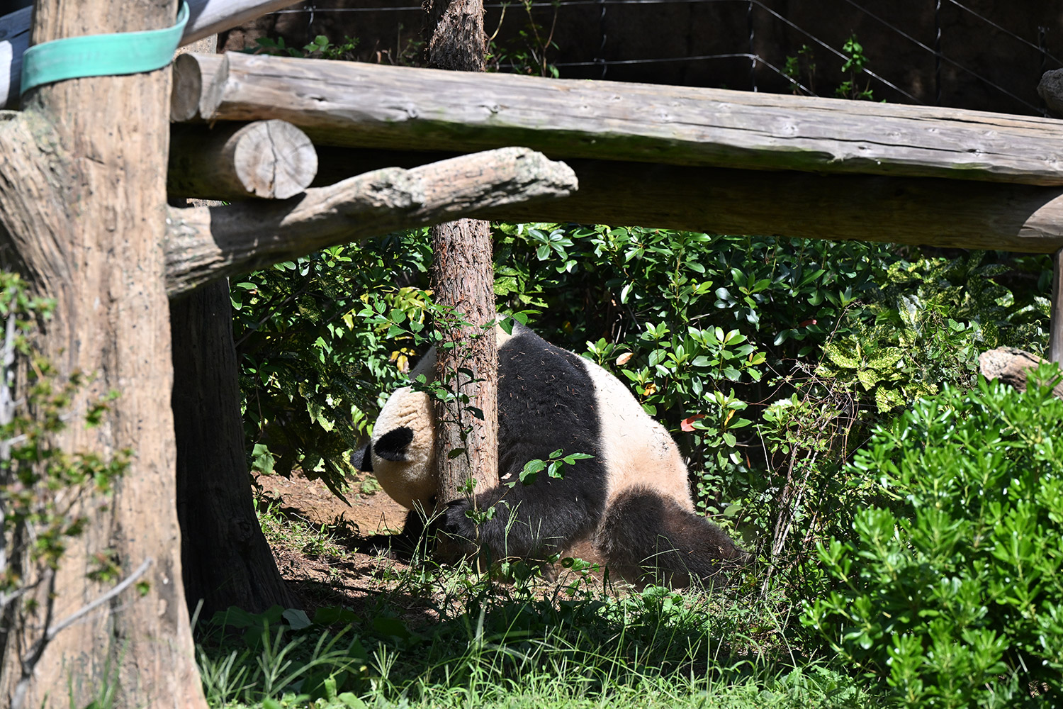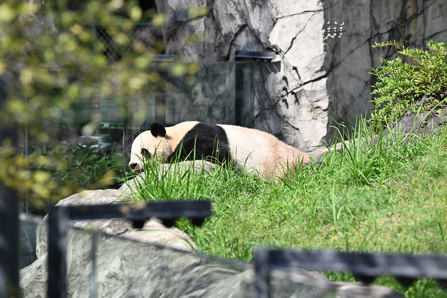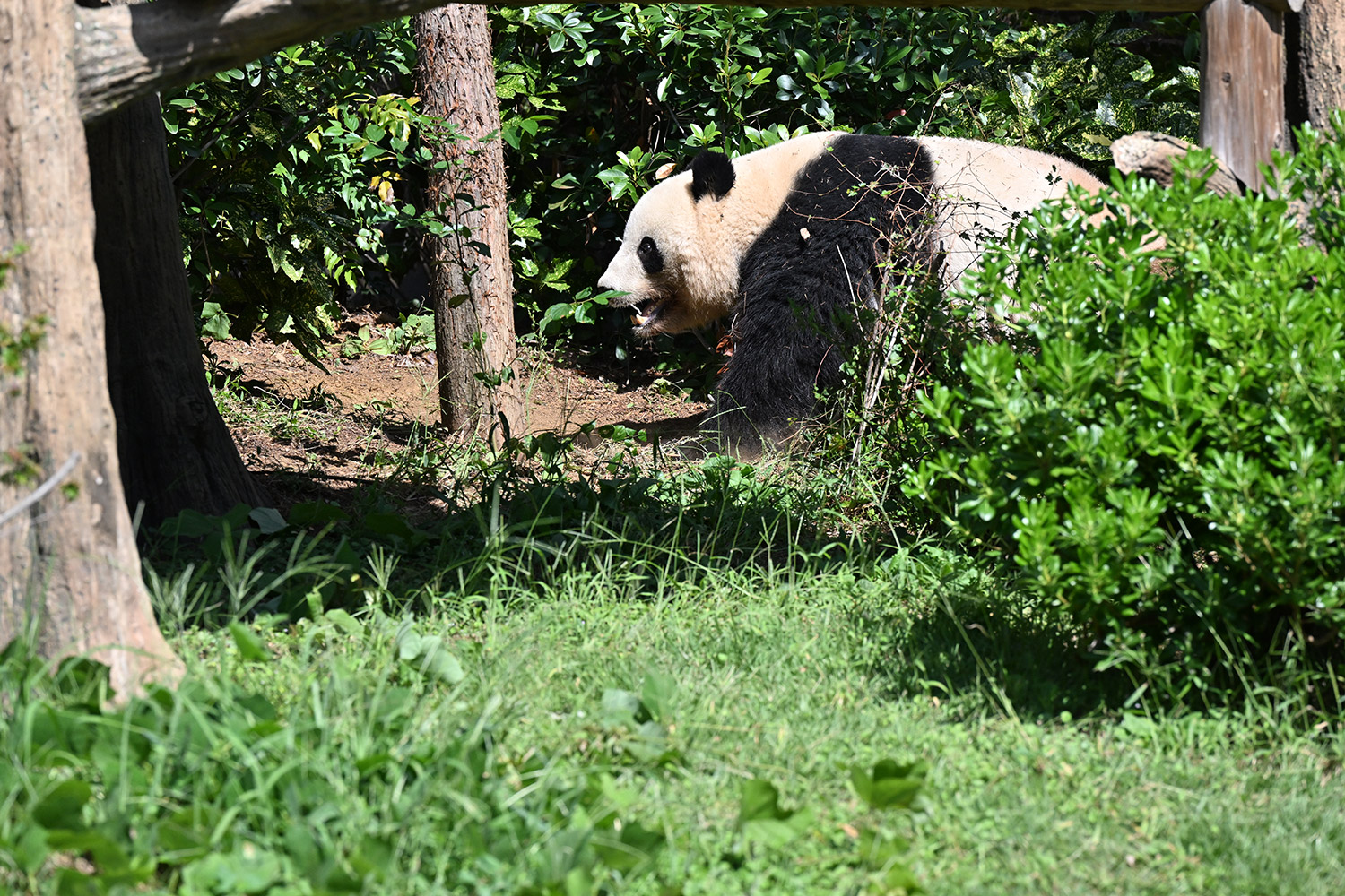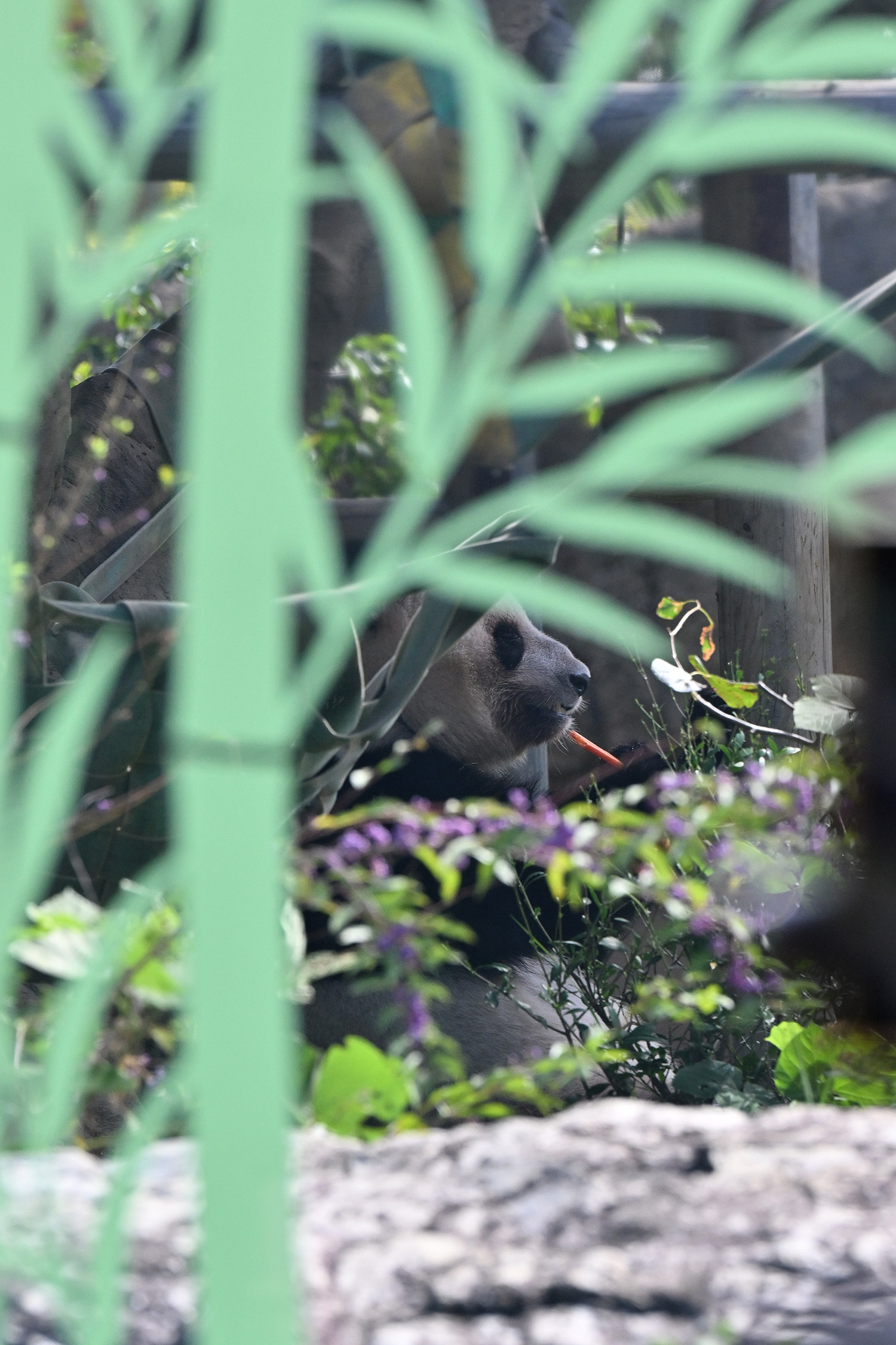 今日のパンダは10:00からです。今日も日差しはやや強めでしたが気温は控えめだったので2頭ともお外でした。