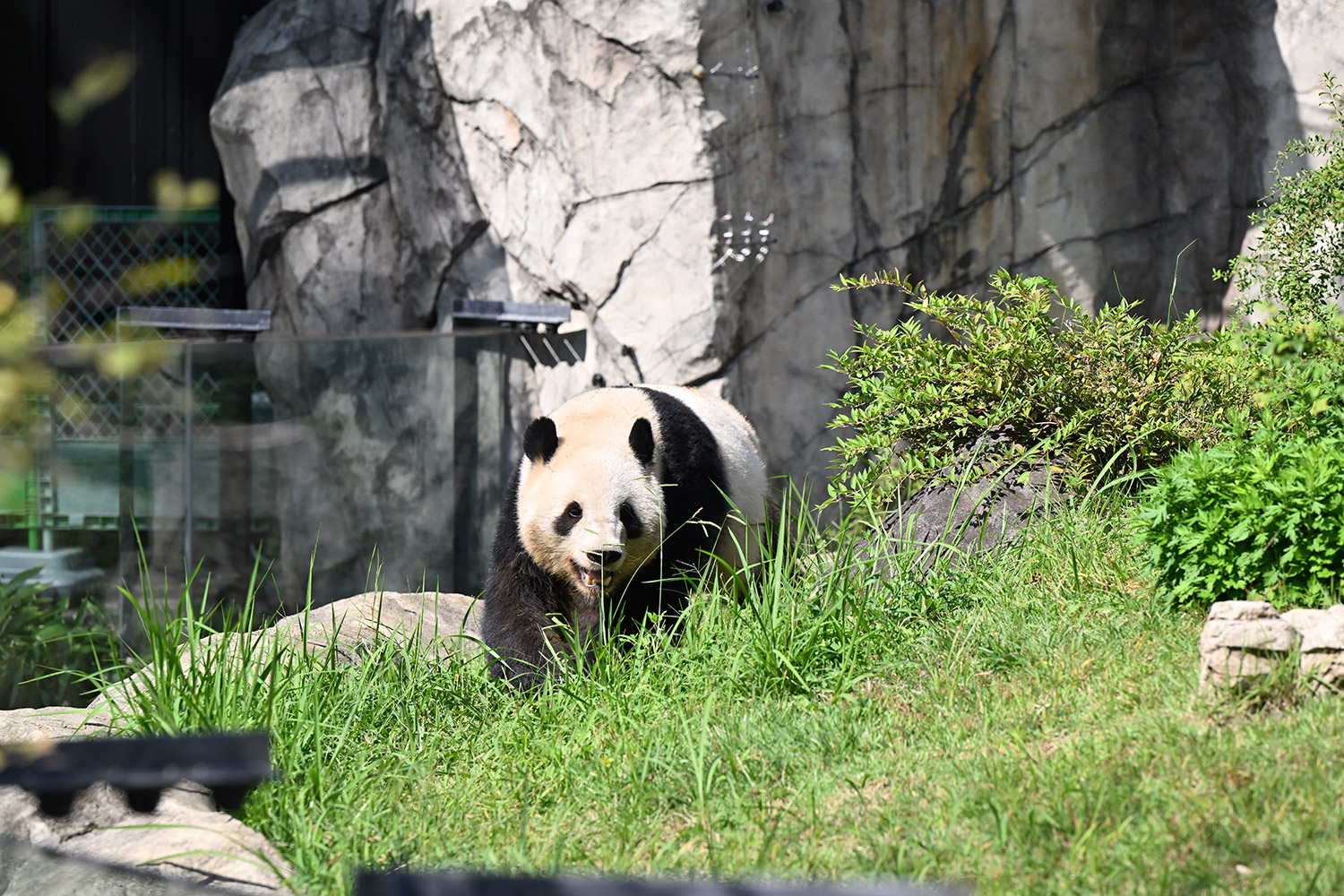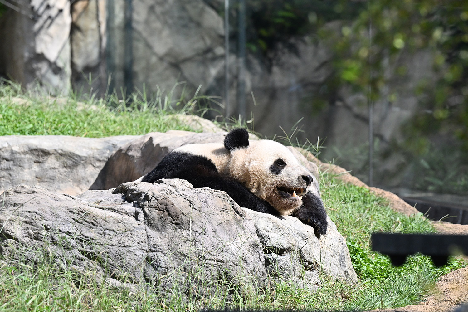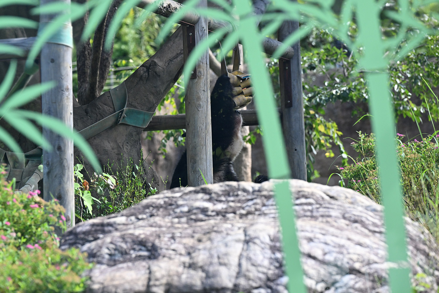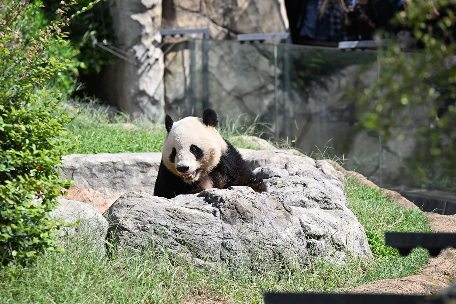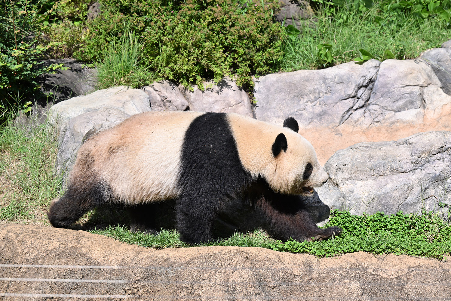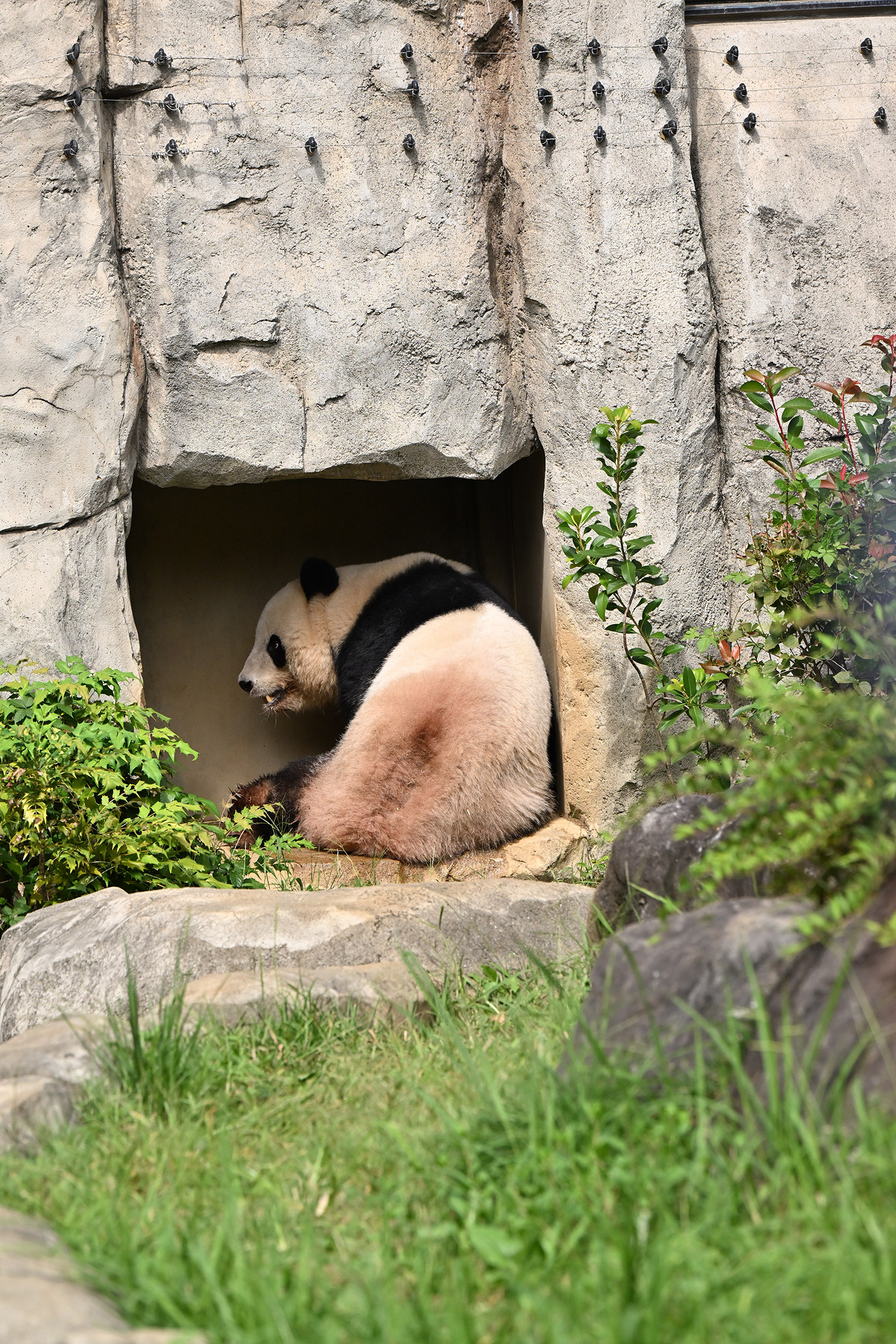 今日のパンダは10:00からです。今日も日差しはやや強めでしたが気温は控えめだったので2頭ともお外でした。