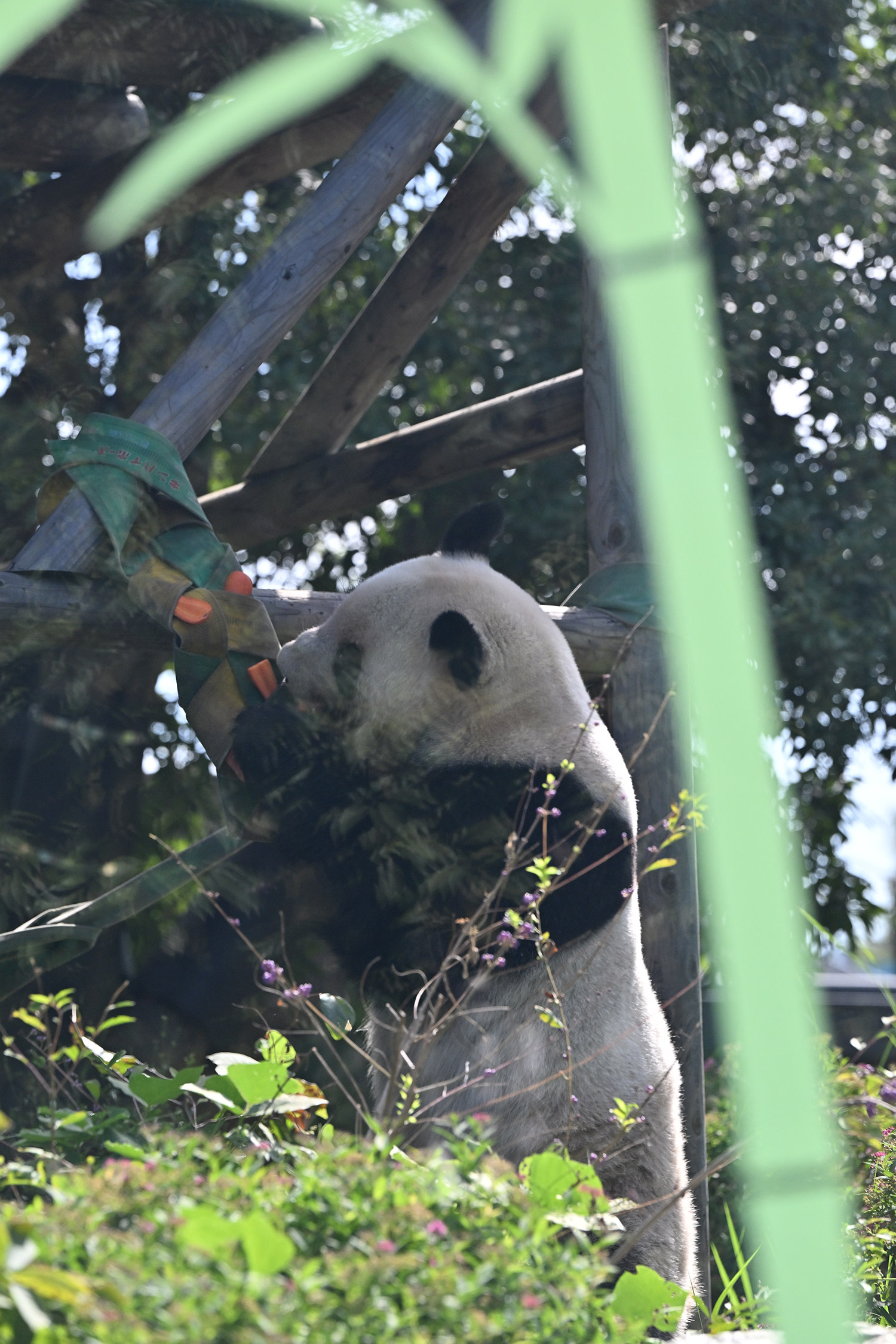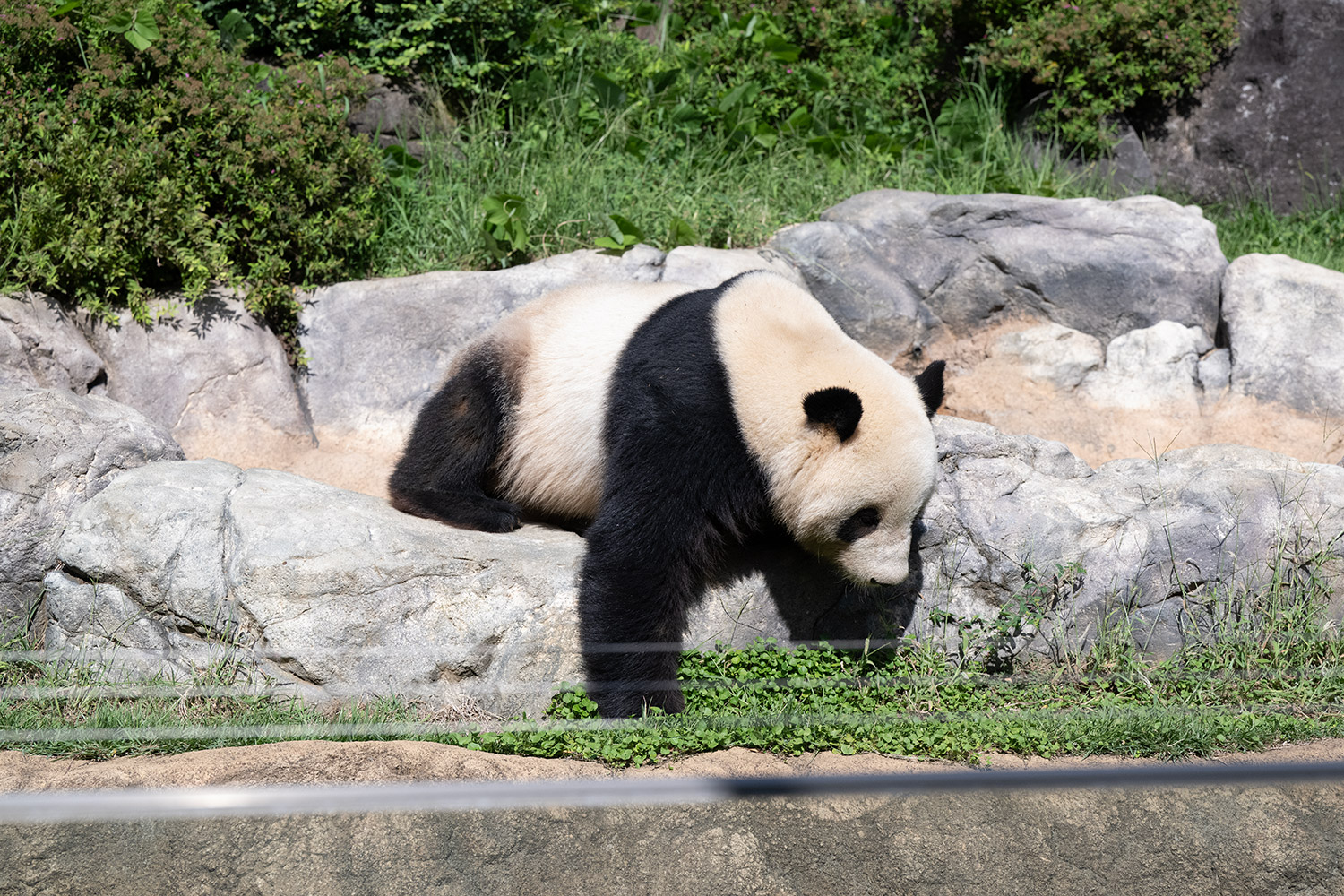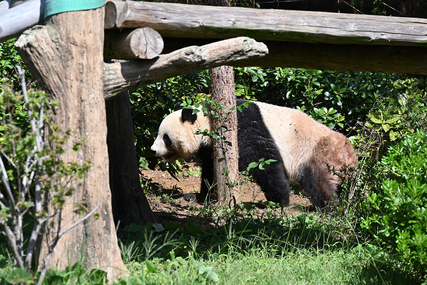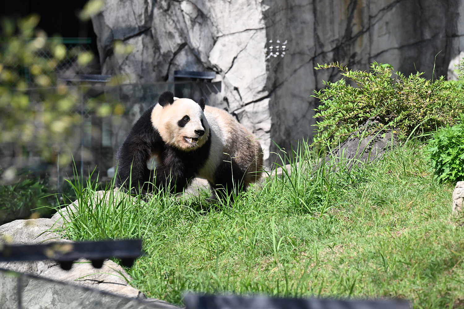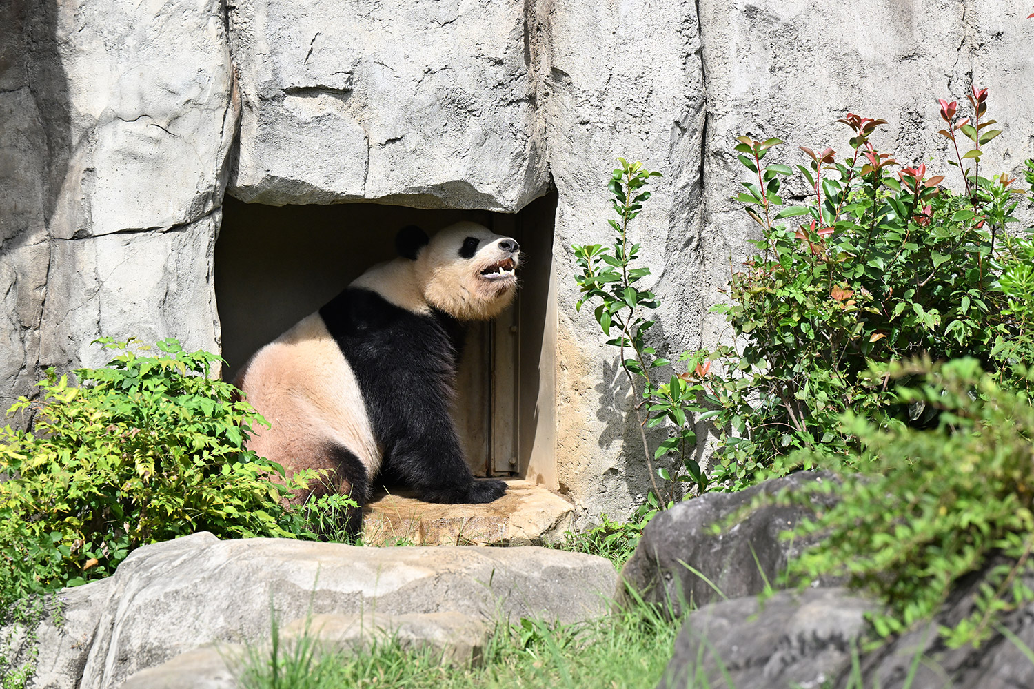 今日のパンダは10:00からです。今日も日差しはやや強めでしたが気温は控えめだったので2頭ともお外でした。
