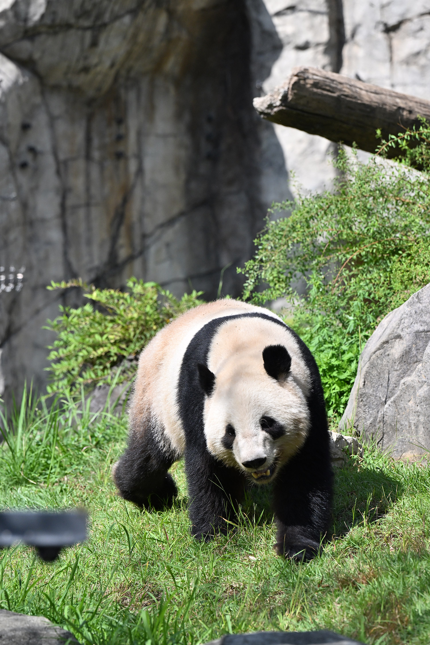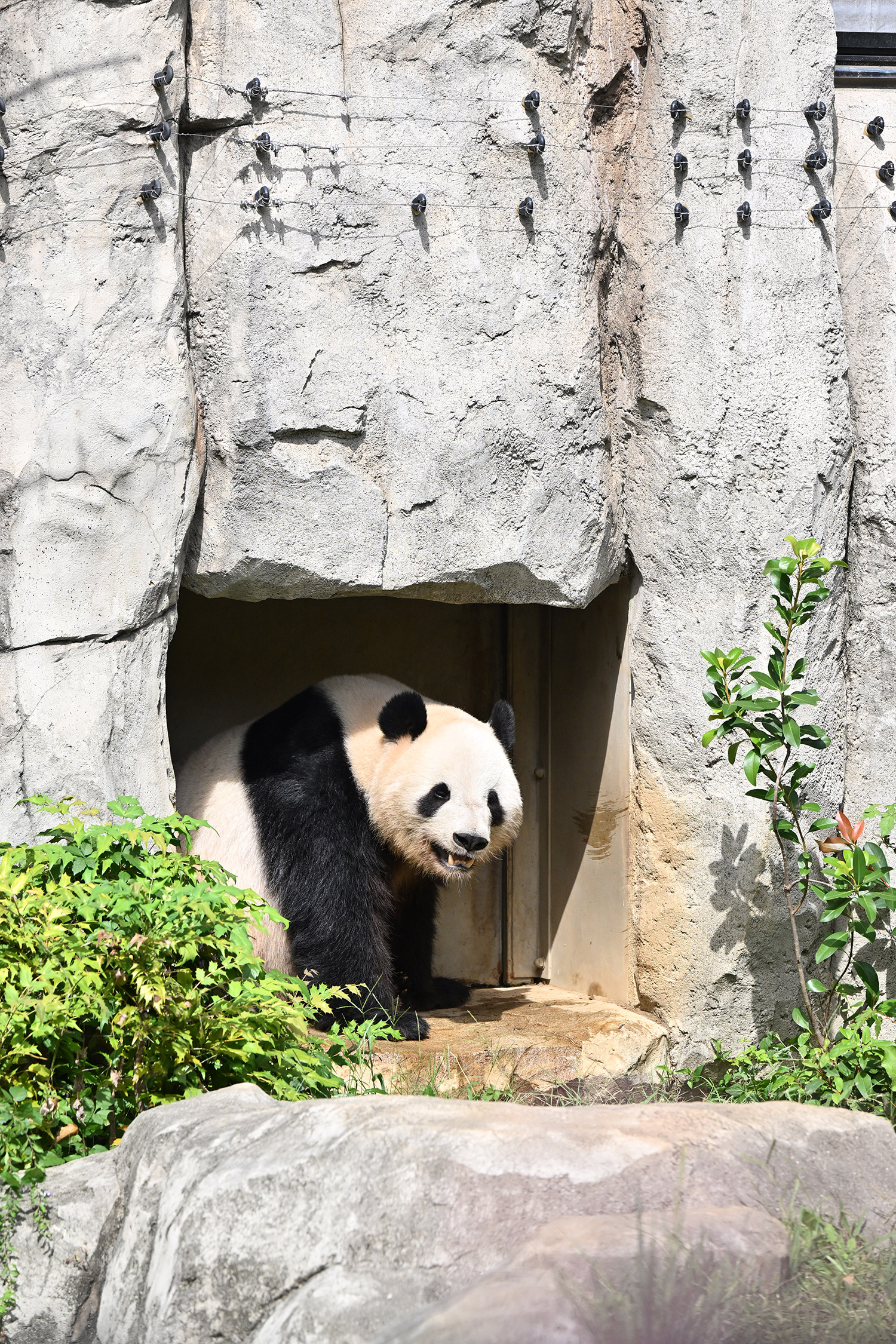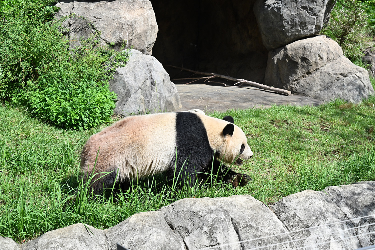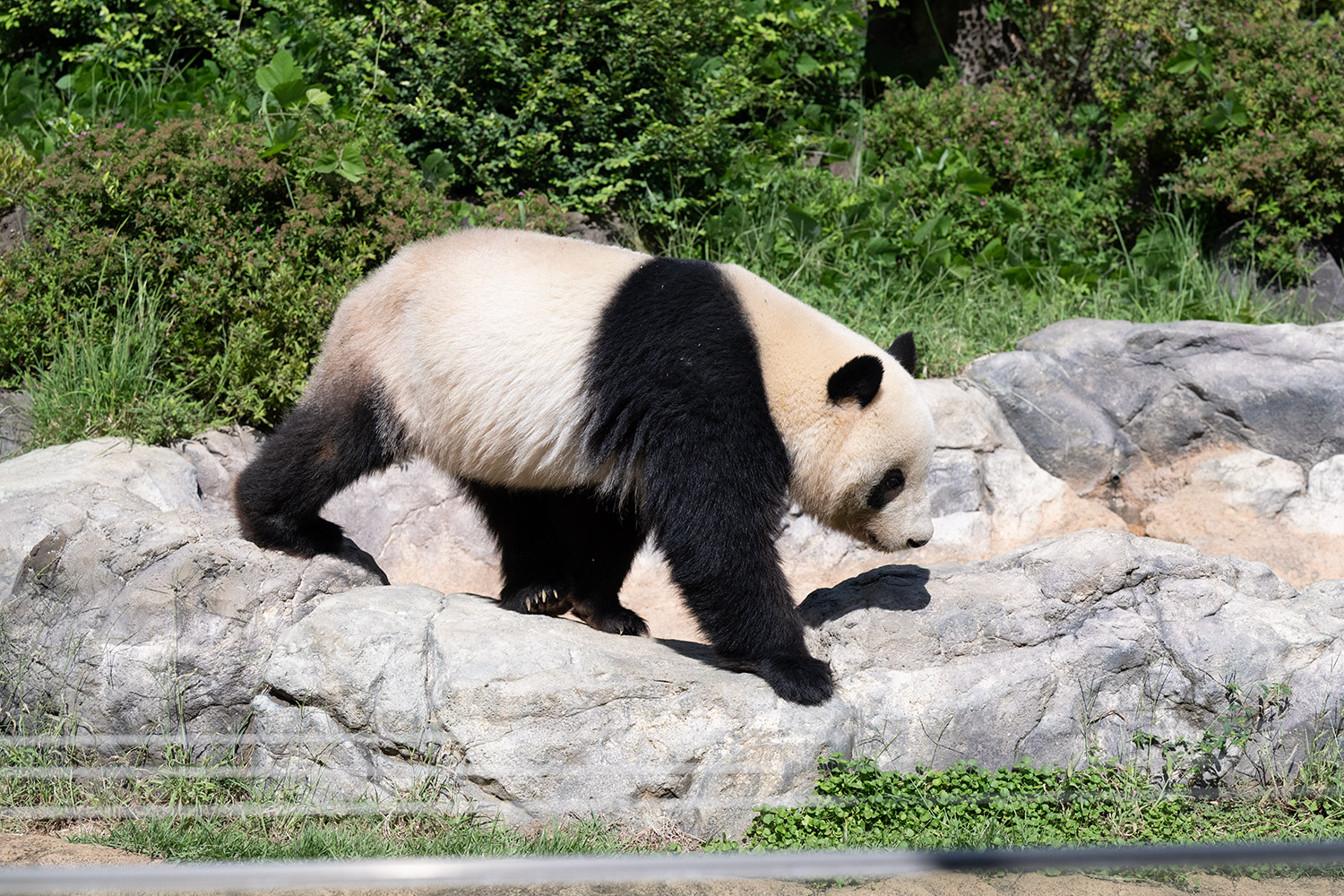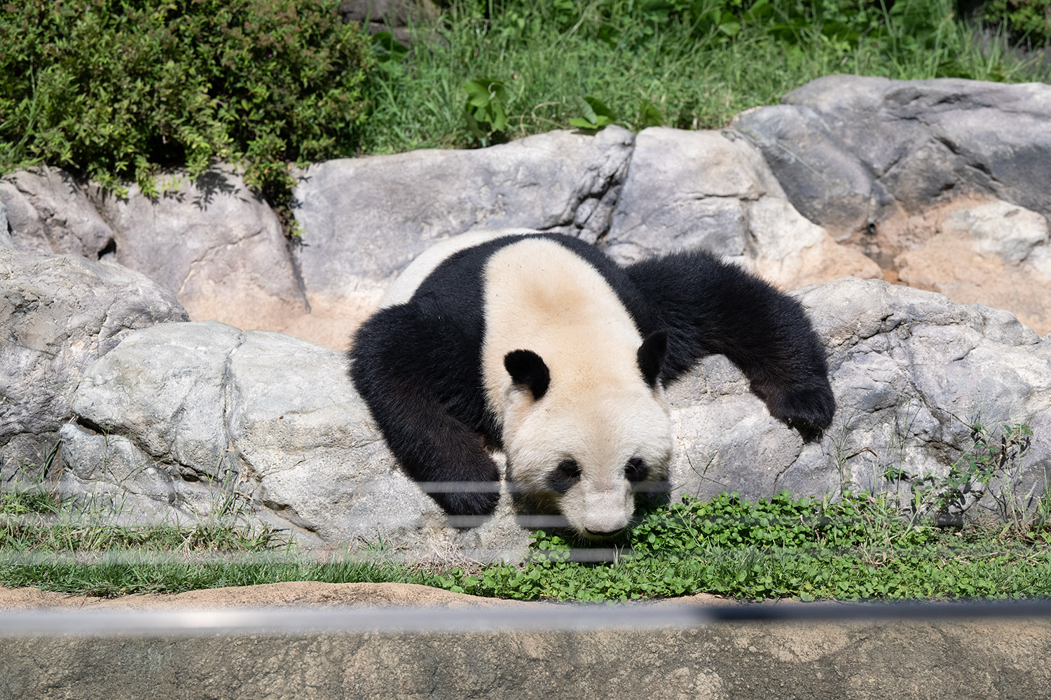 今日のパンダは10:00からです。今日も日差しはやや強めでしたが気温は控えめだったので2頭ともお外でした。