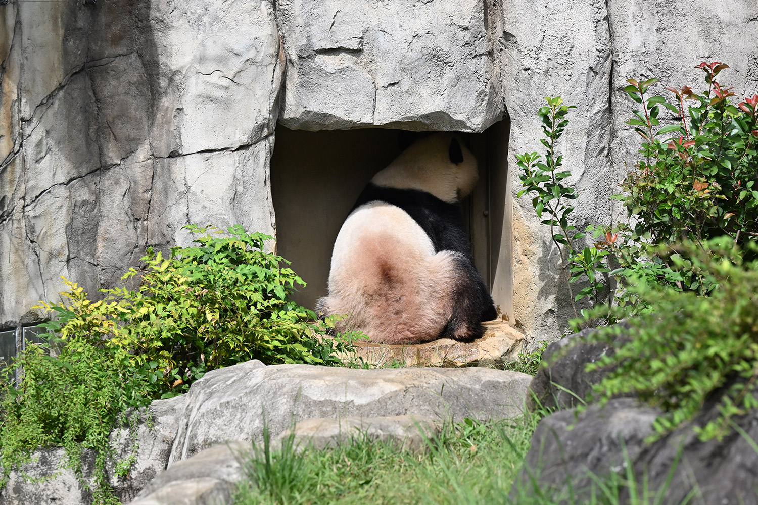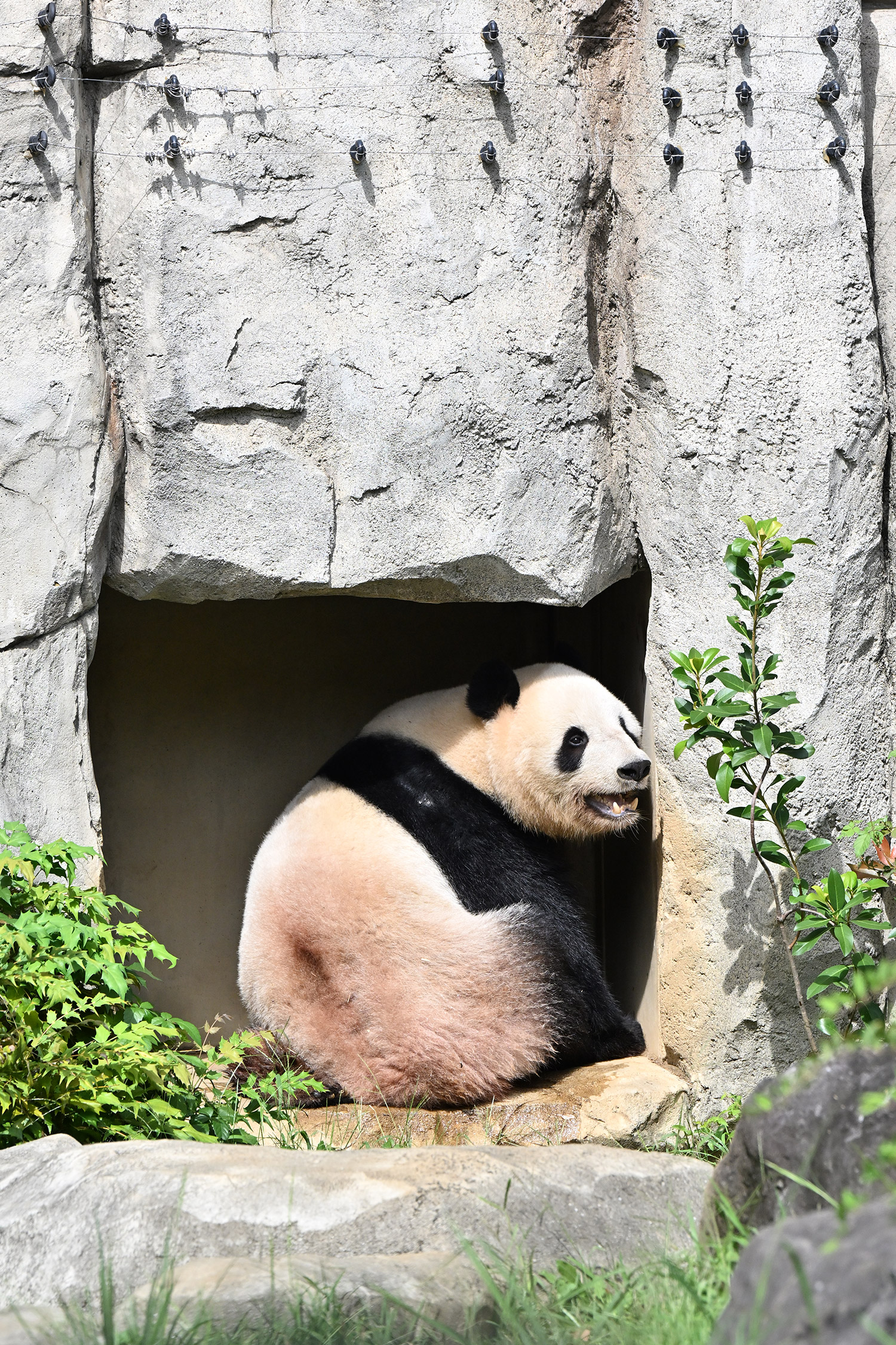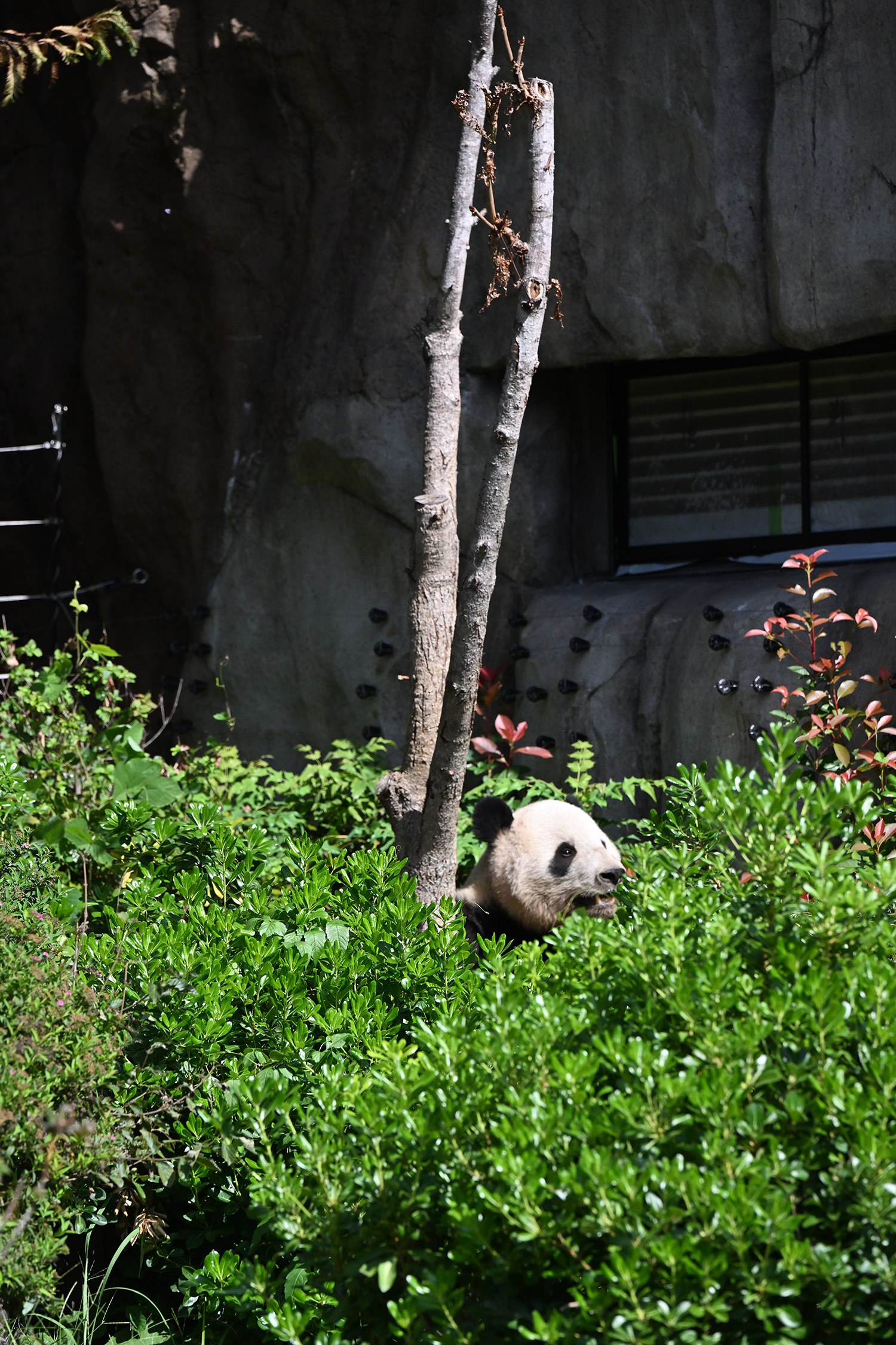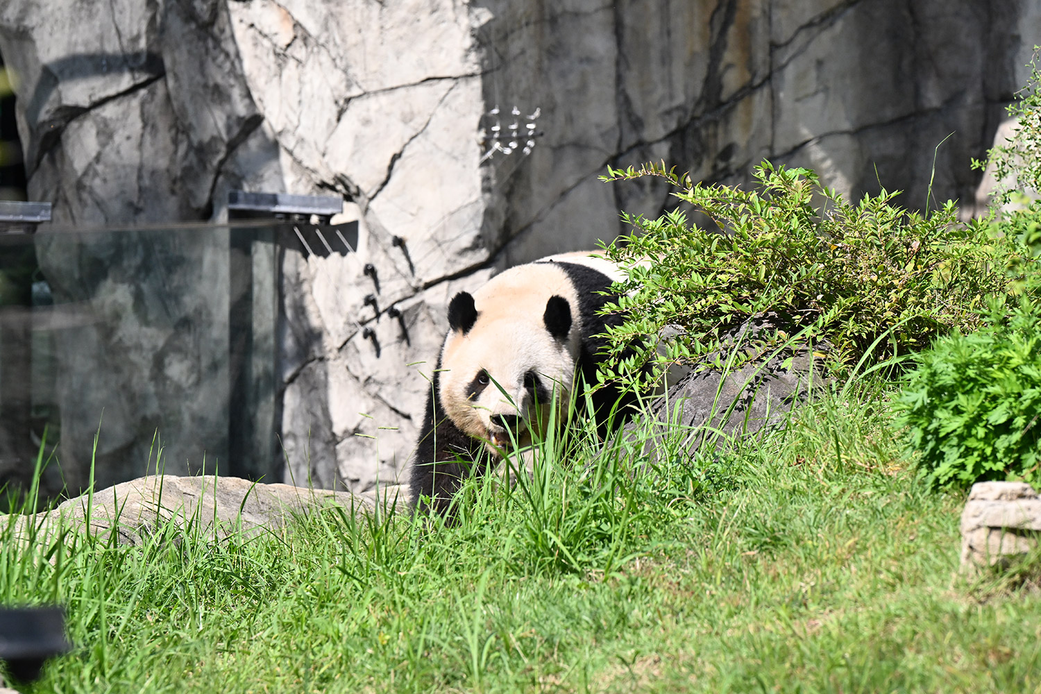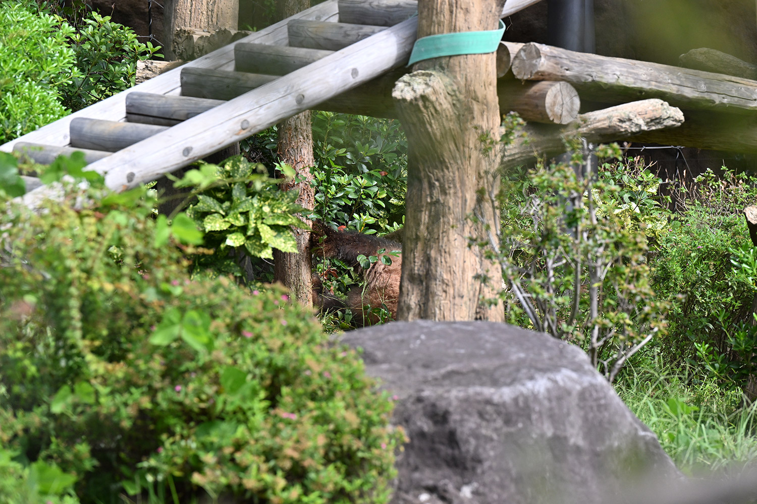 今日のパンダは10:00からです。今日も日差しはやや強めでしたが気温は控えめだったので2頭ともお外でした。