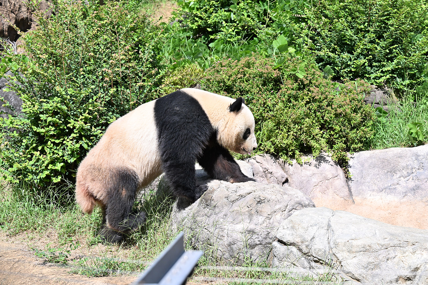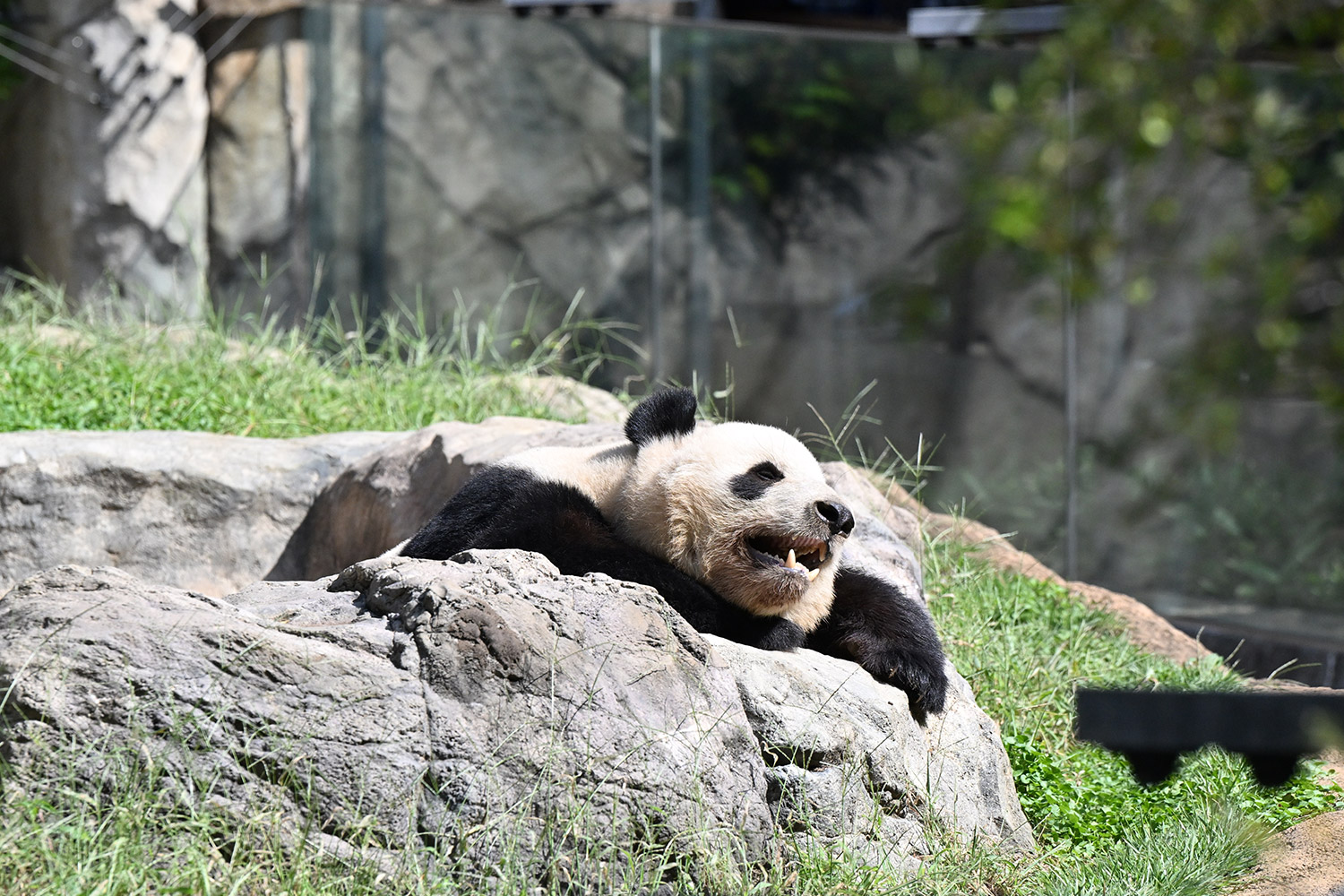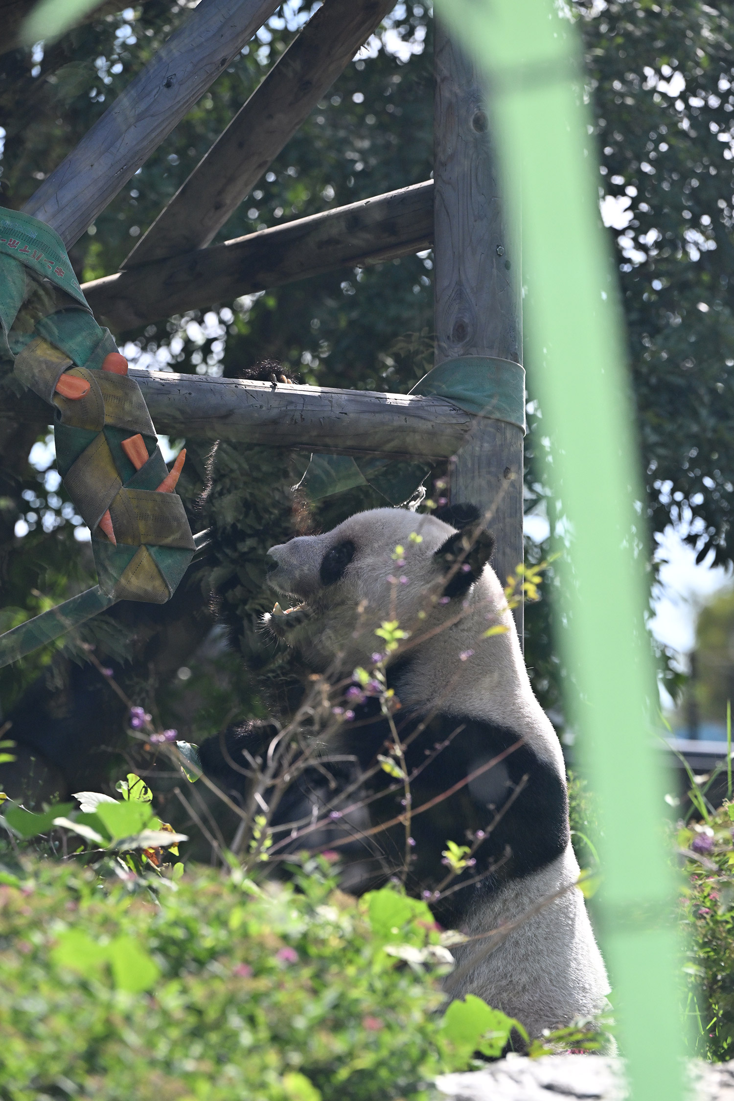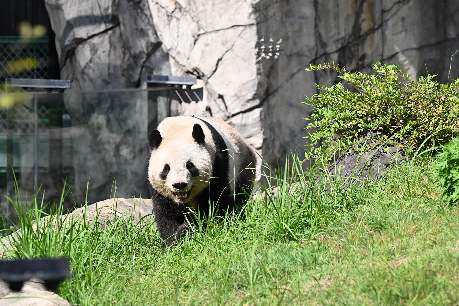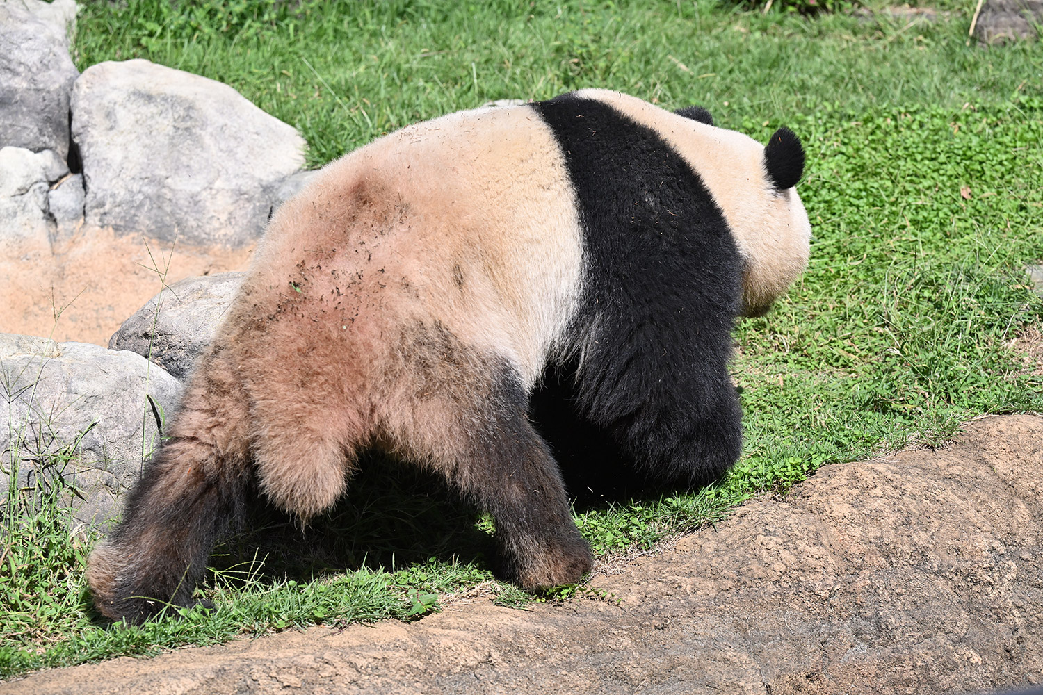 今日のパンダは10:00からです。今日も日差しはやや強めでしたが気温は控えめだったので2頭ともお外でした。