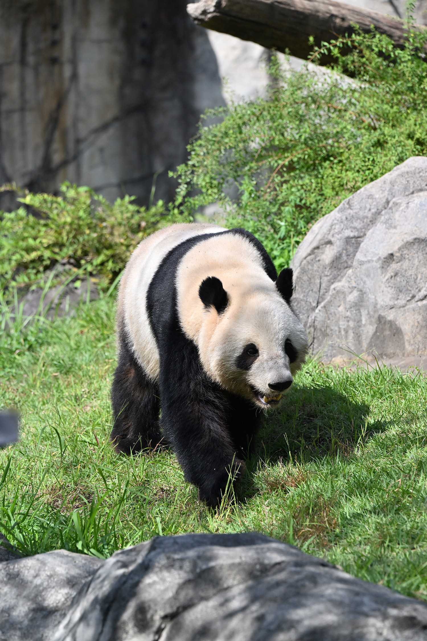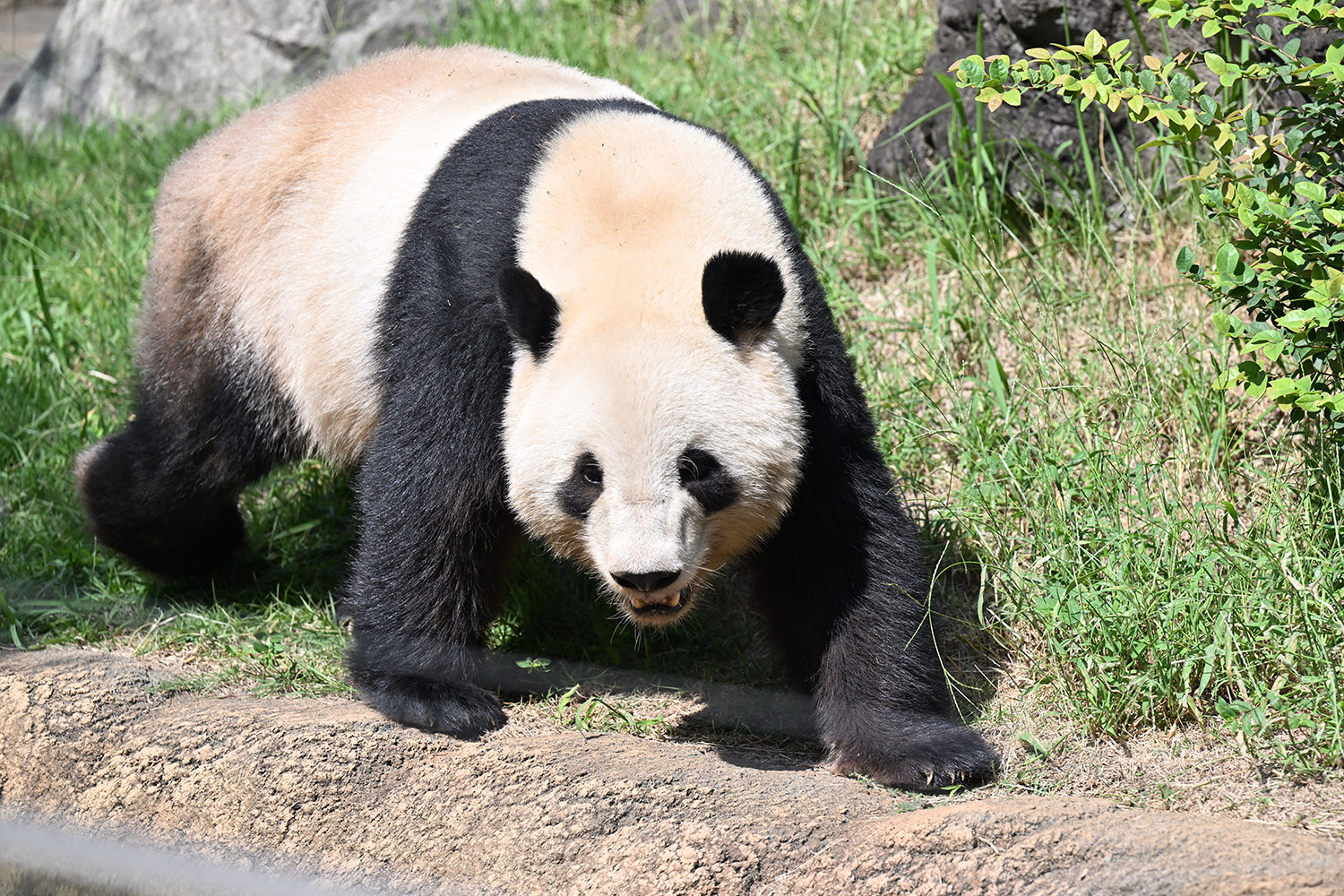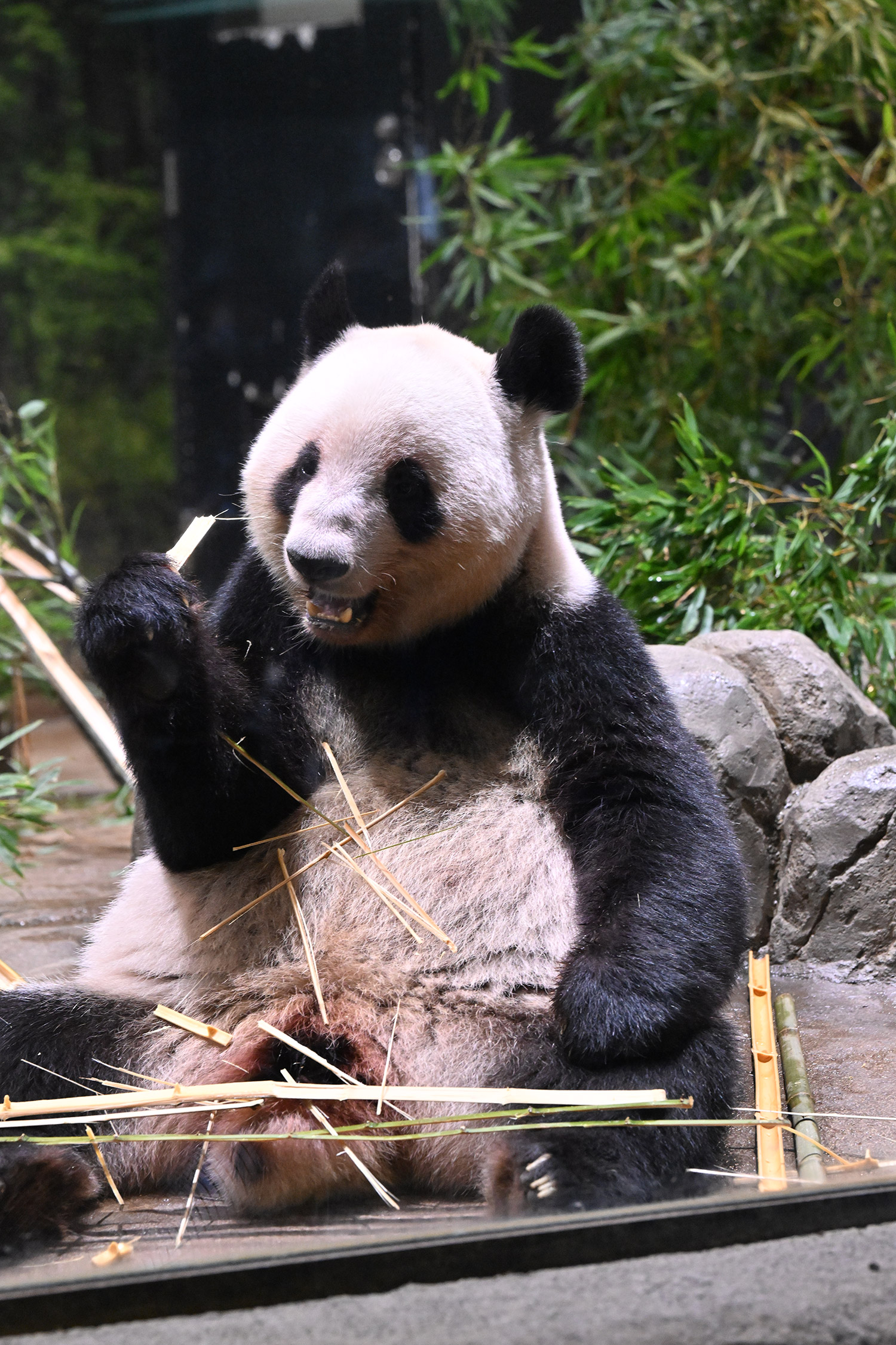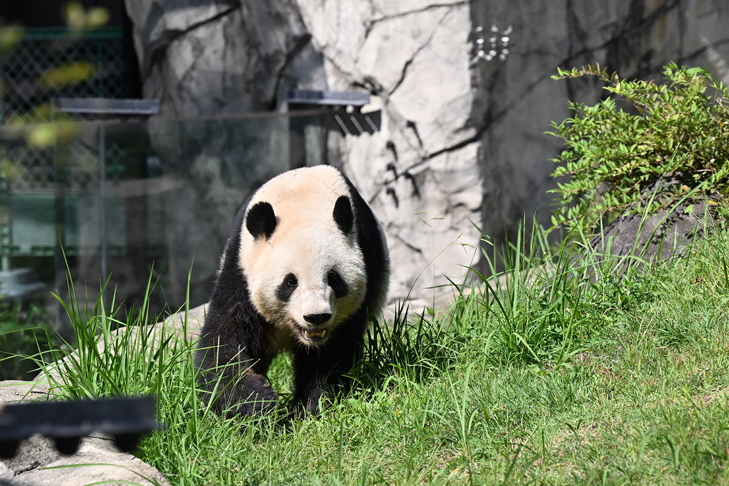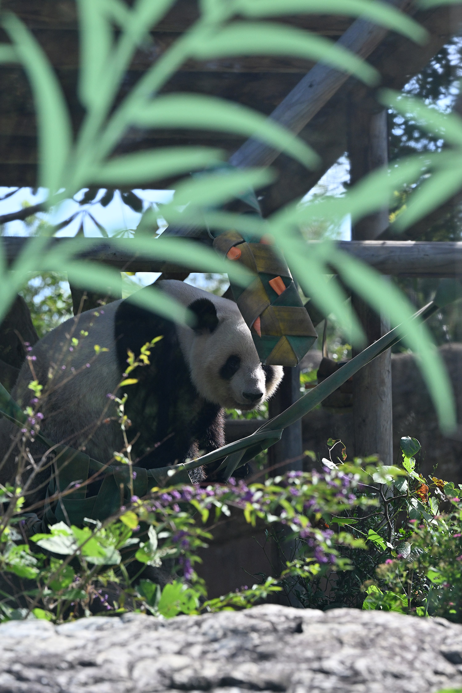 今日のパンダは10:00からです。今日も日差しはやや強めでしたが気温は控えめだったので2頭ともお外でした。