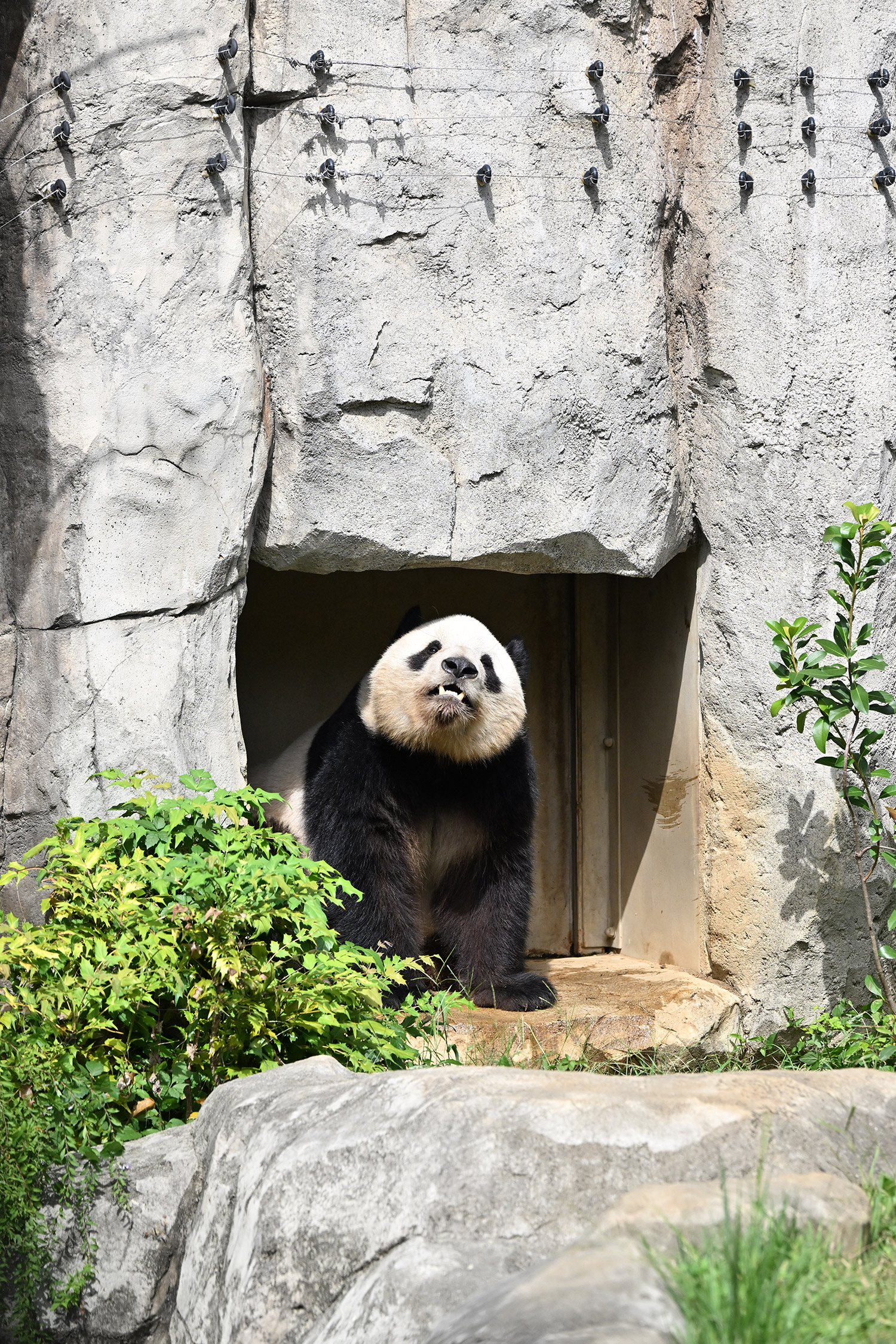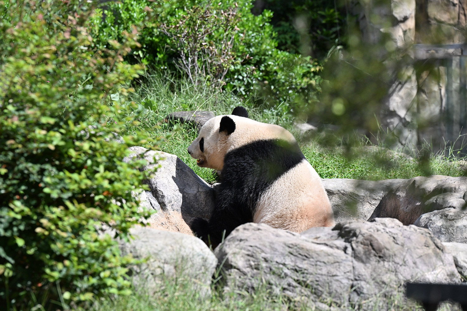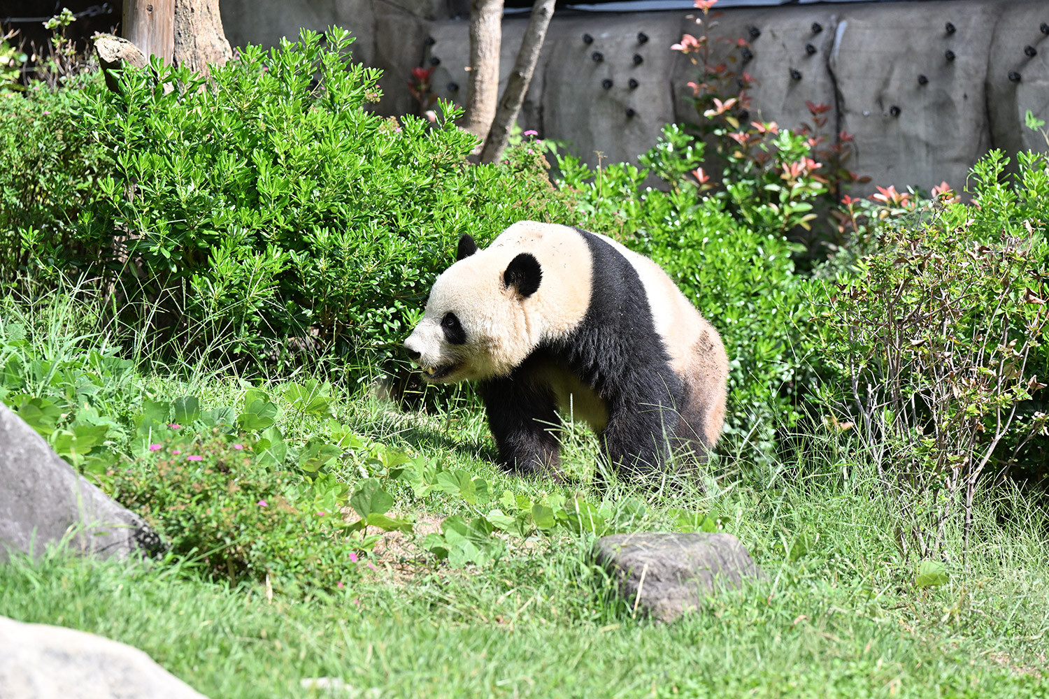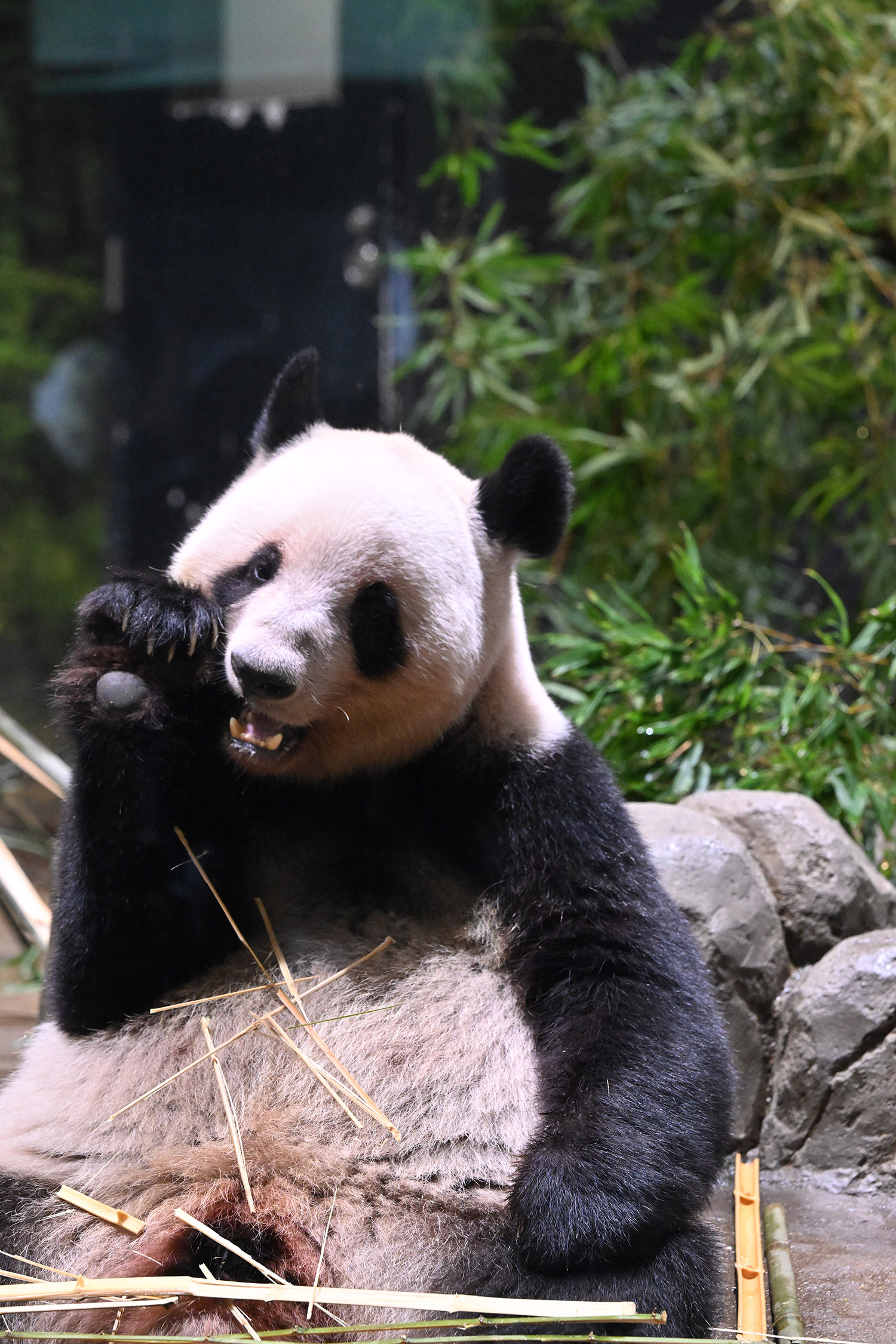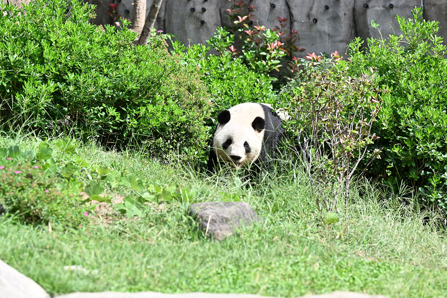 今日のパンダは10:00からです。今日も日差しはやや強めでしたが気温は控えめだったので2頭ともお外でした。