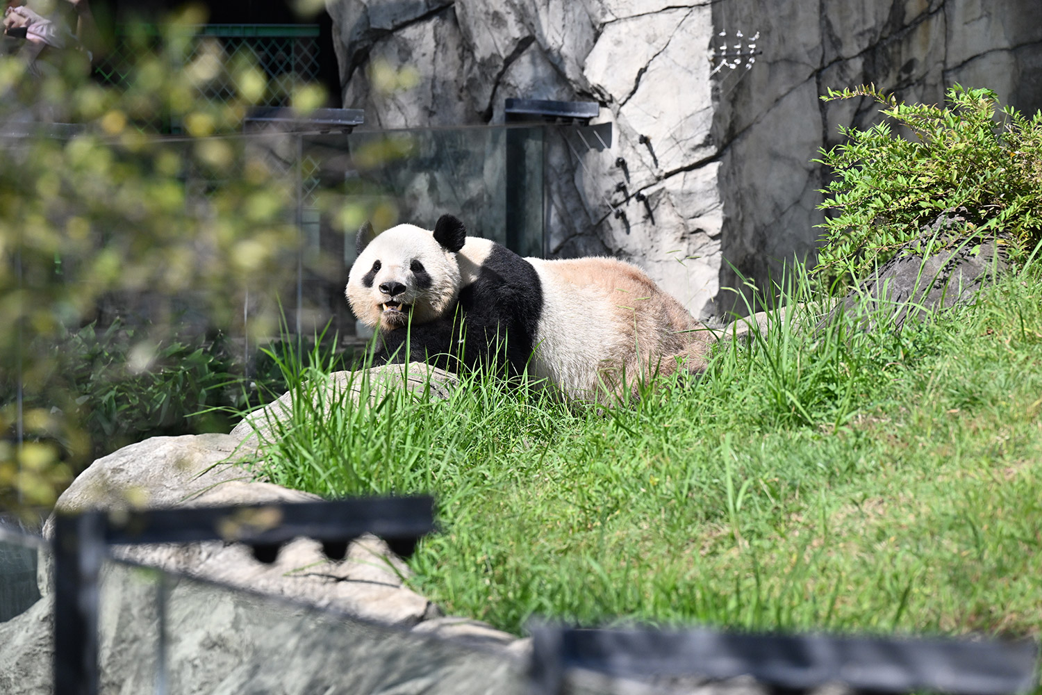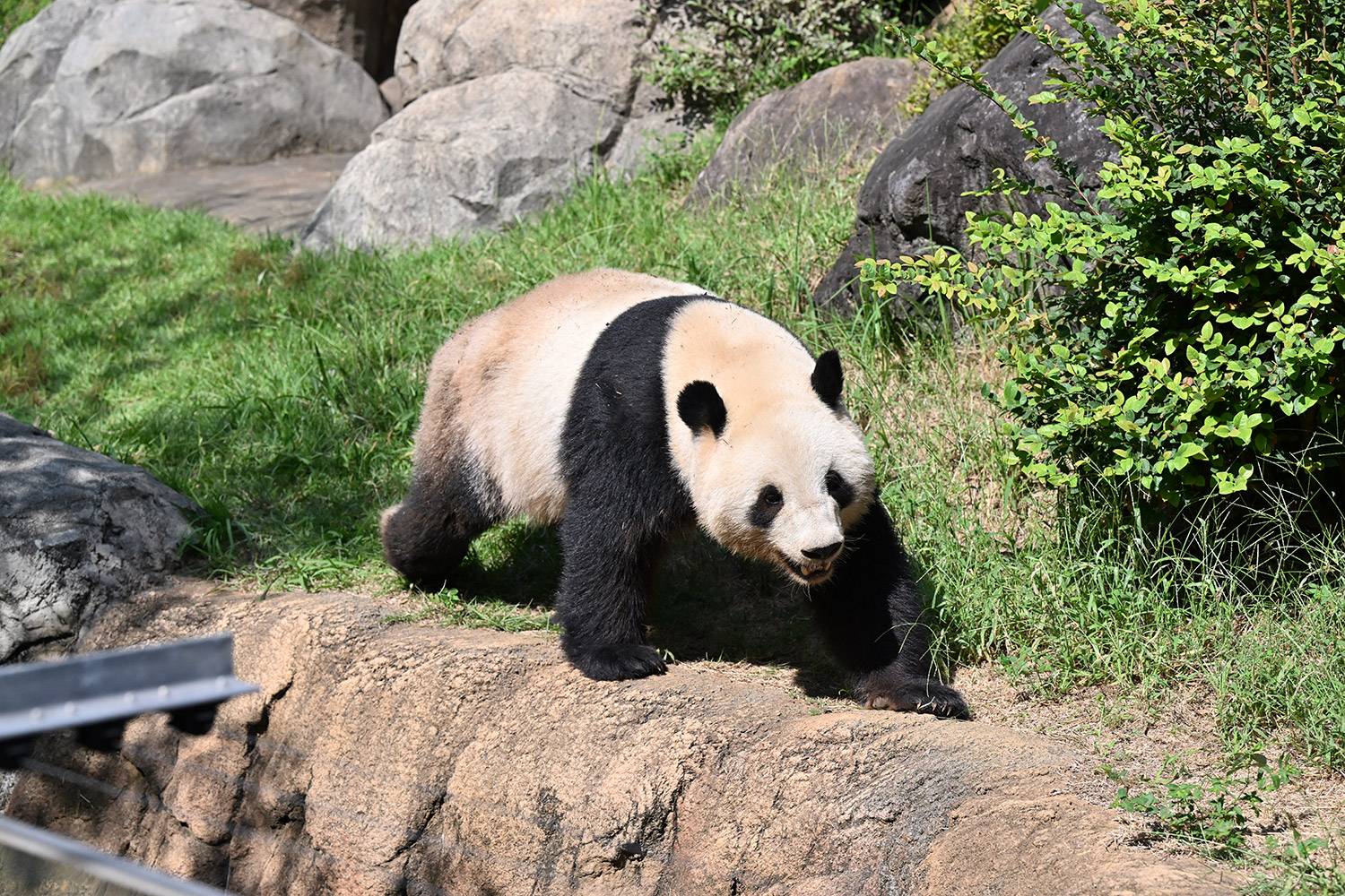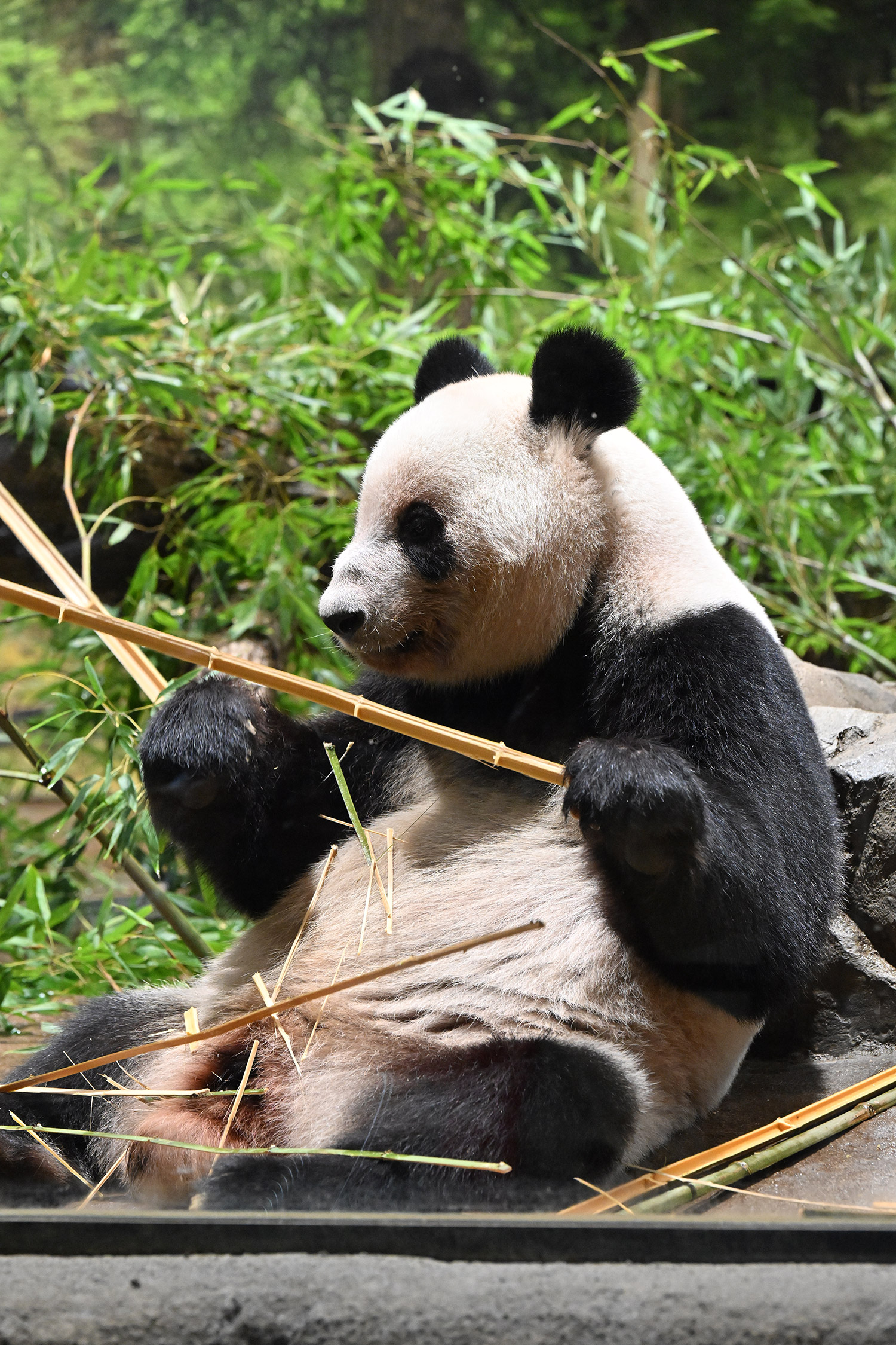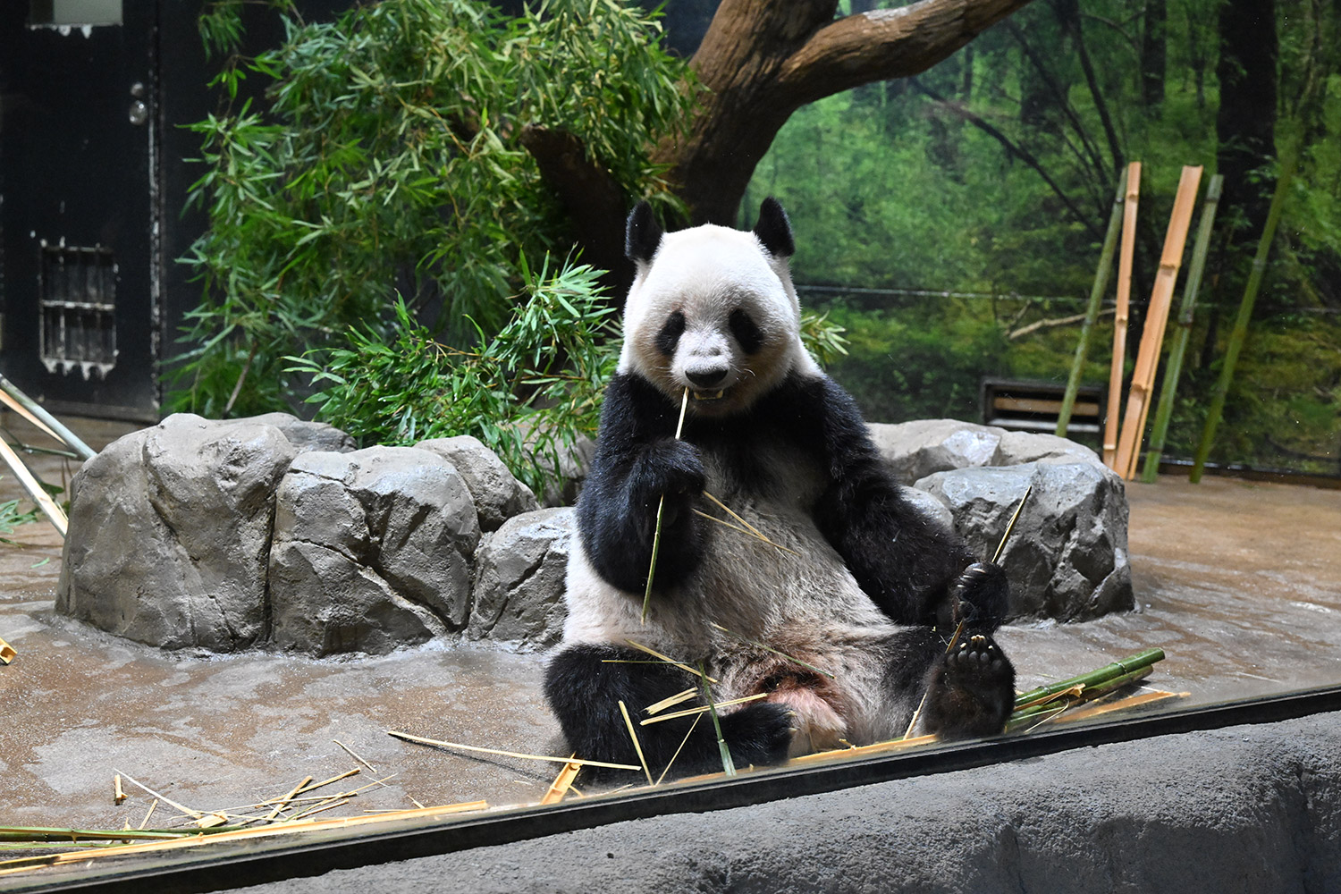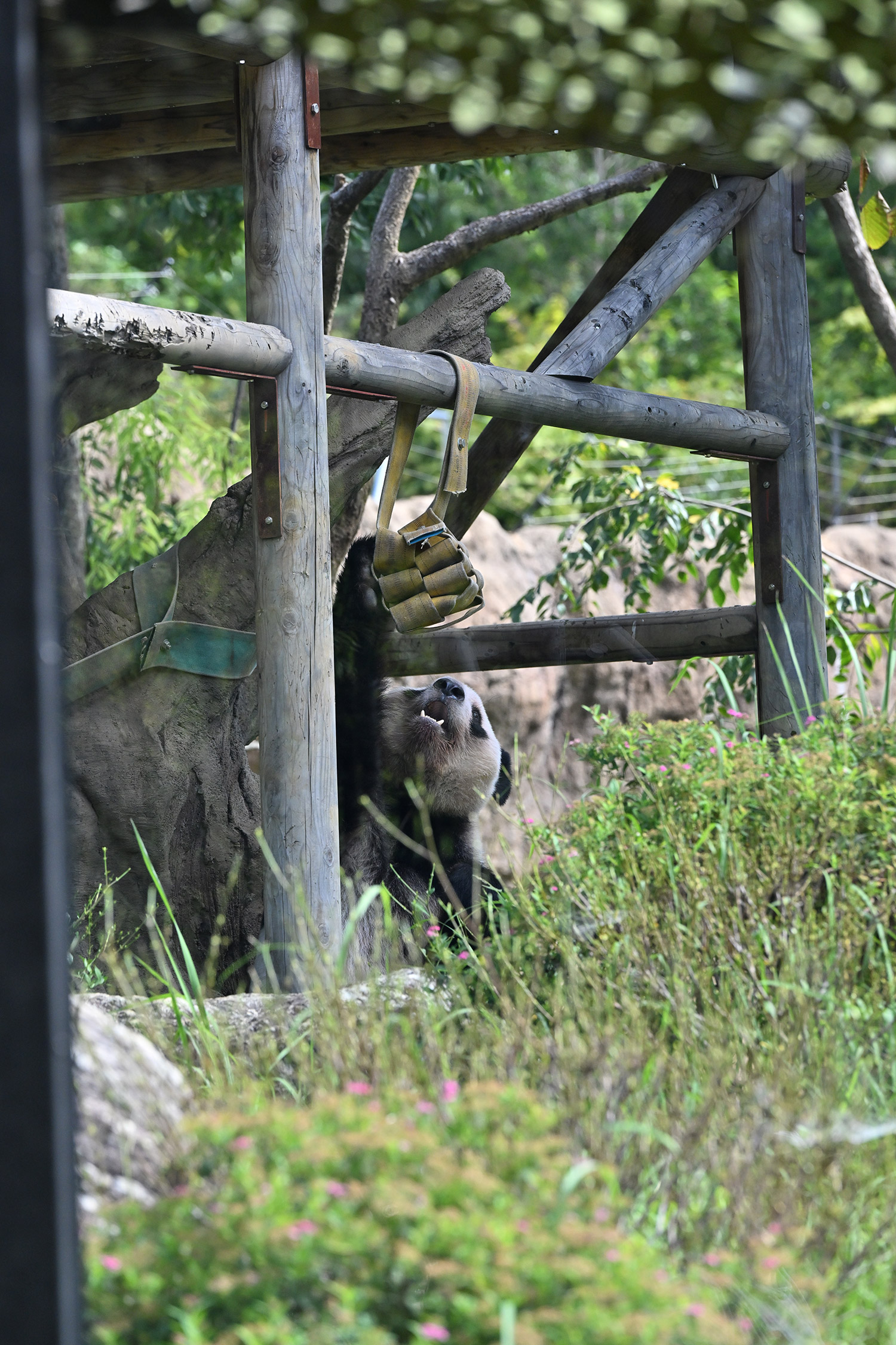 今日のパンダは10:00からです。今日も日差しはやや強めでしたが気温は控えめだったので2頭ともお外でした。