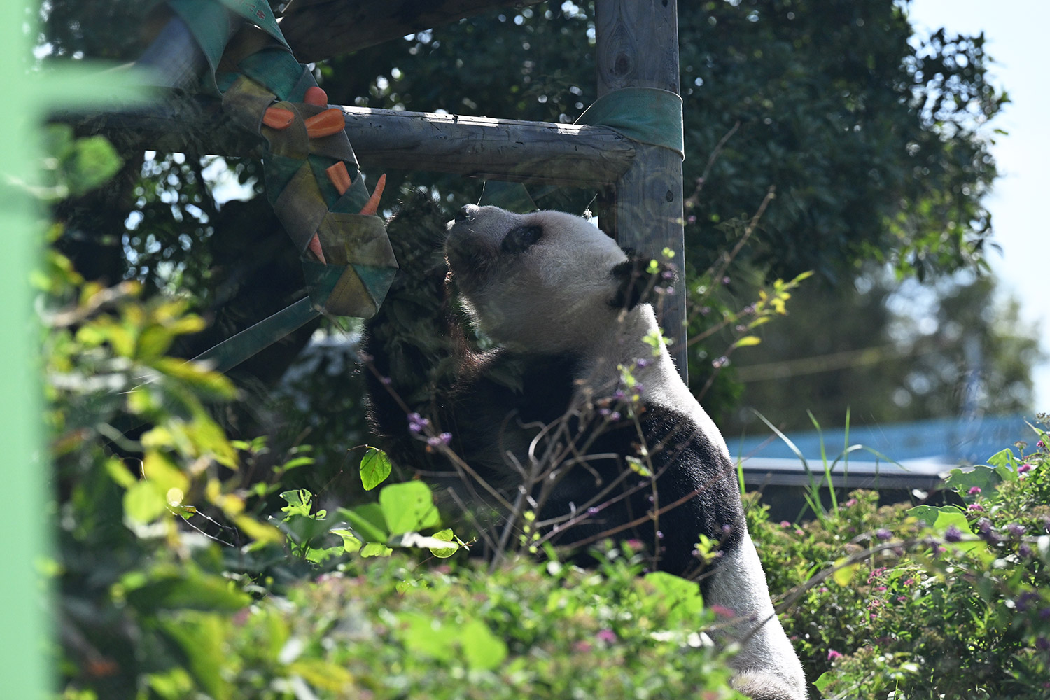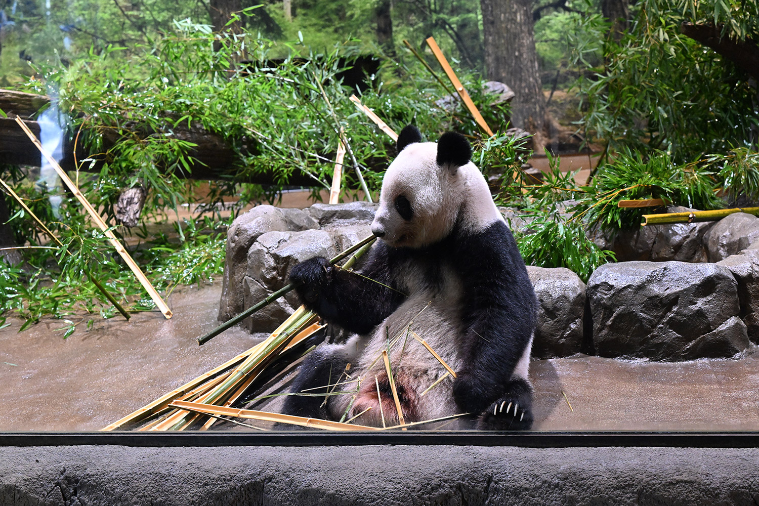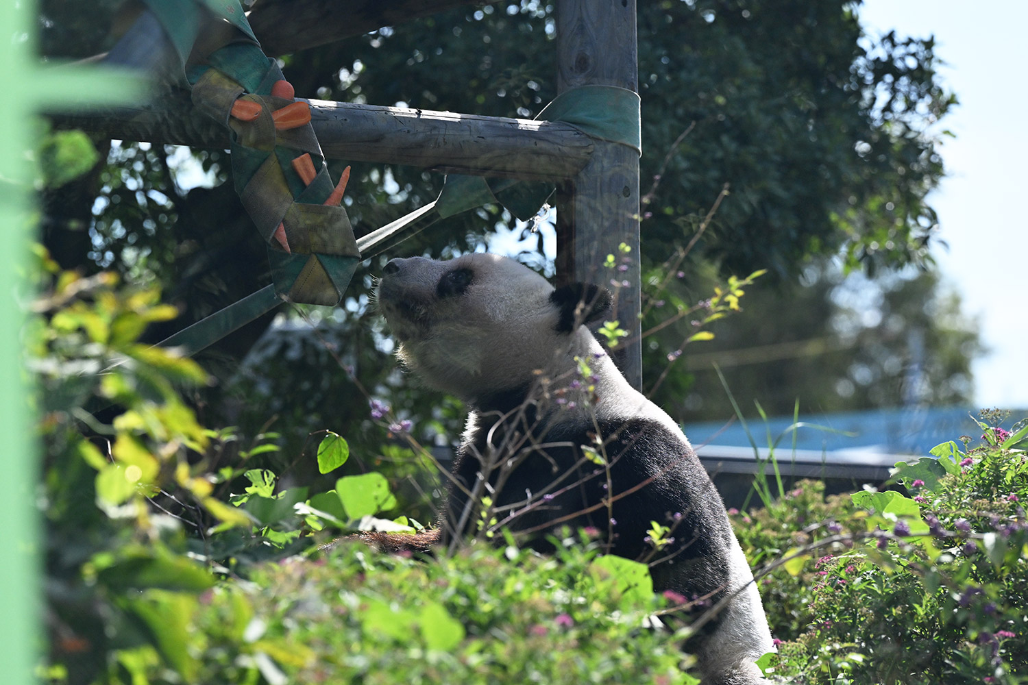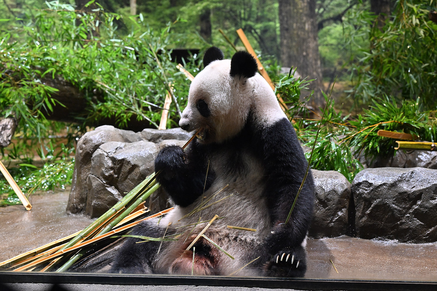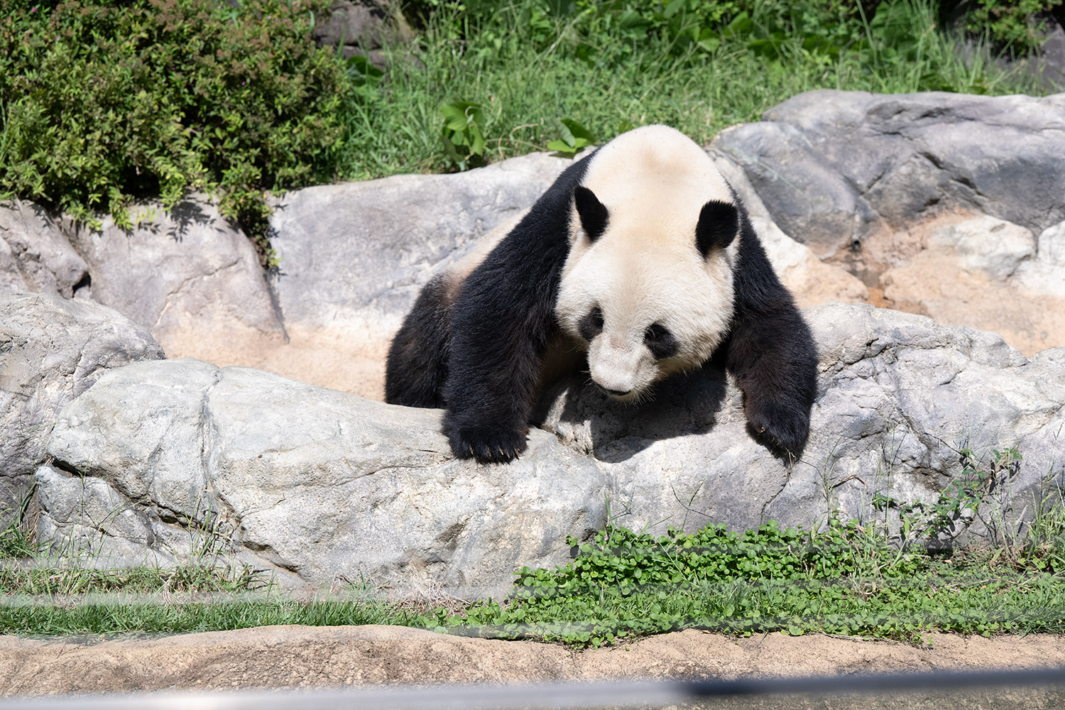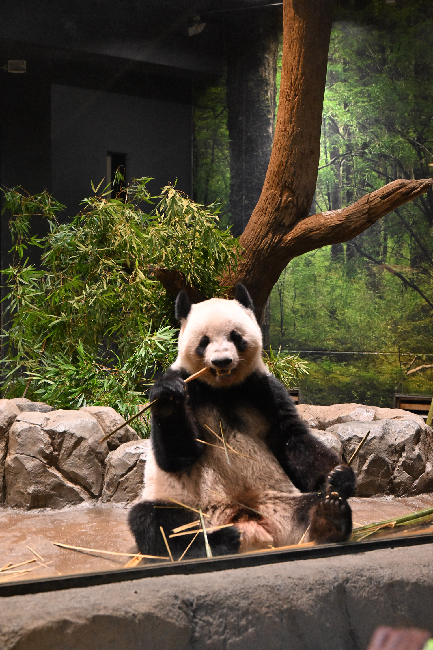 今日のパンダは10:00からです。今日も日差しはやや強めでしたが気温は控えめだったので2頭ともお外でした。