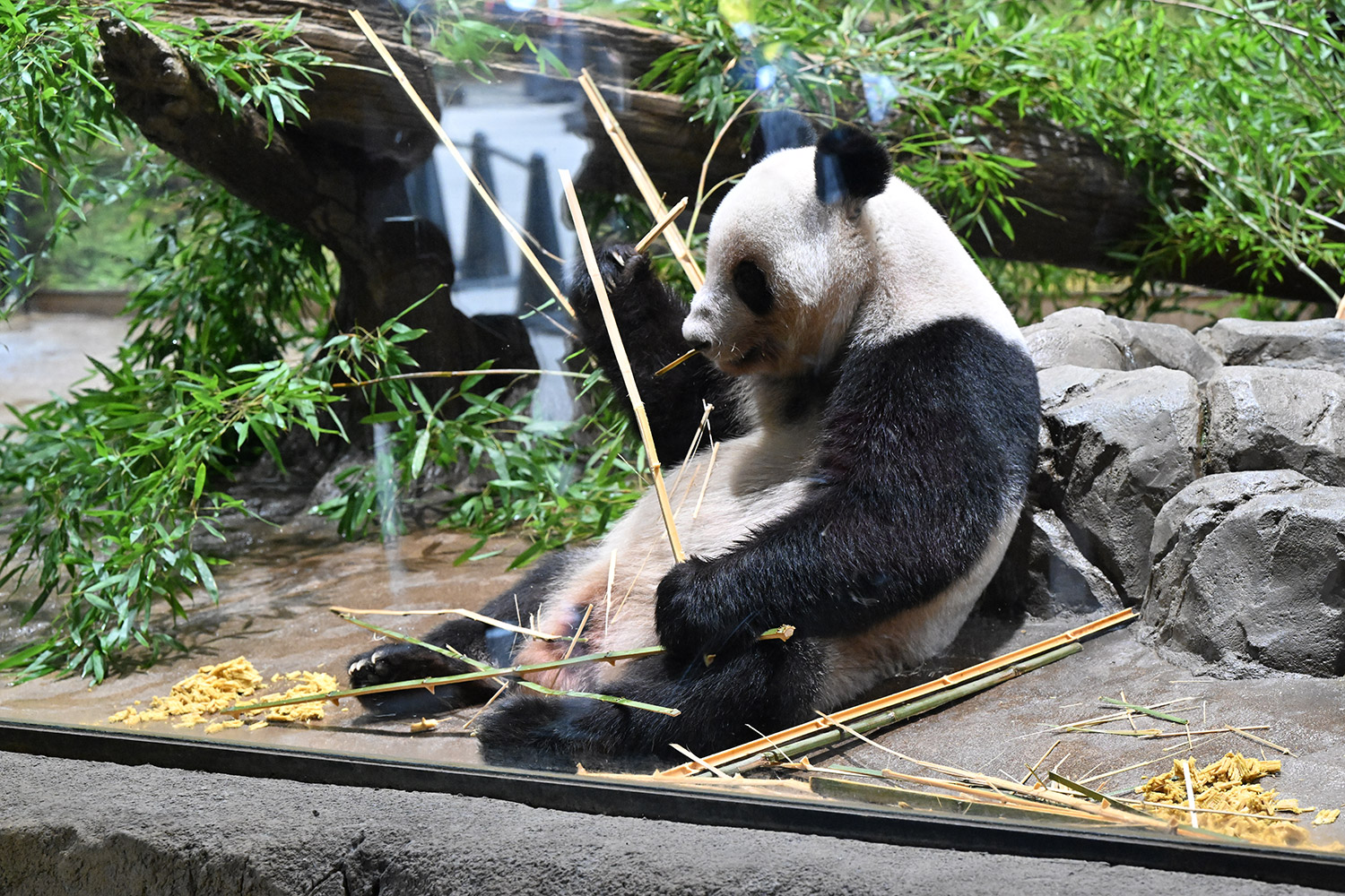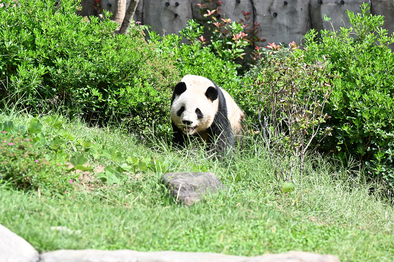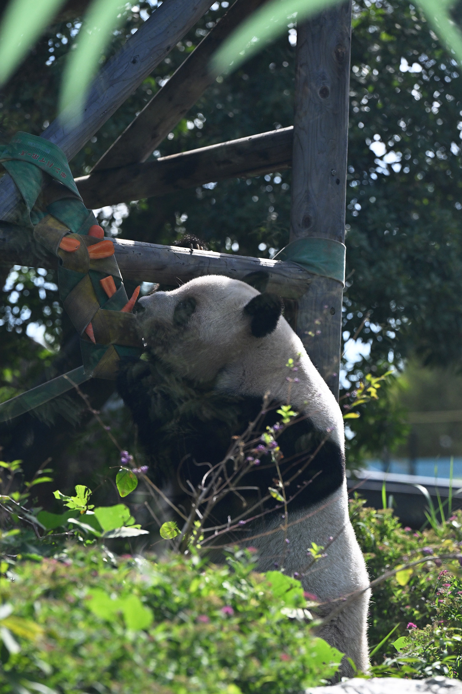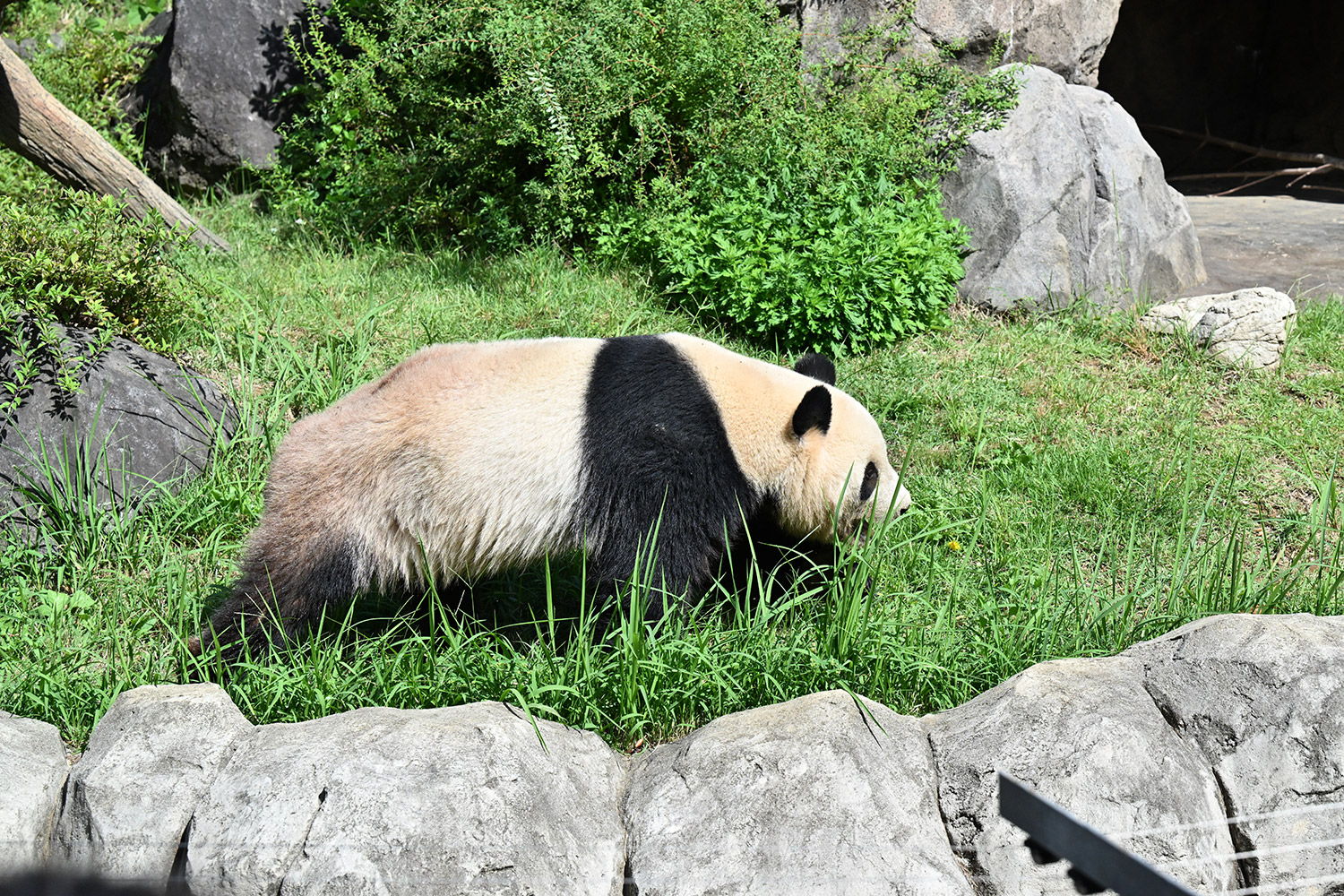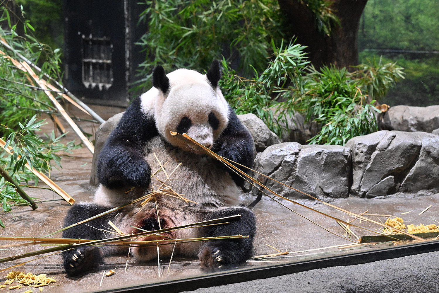 今日のパンダは10:00からです。今日も日差しはやや強めでしたが気温は控えめだったので2頭ともお外でした。