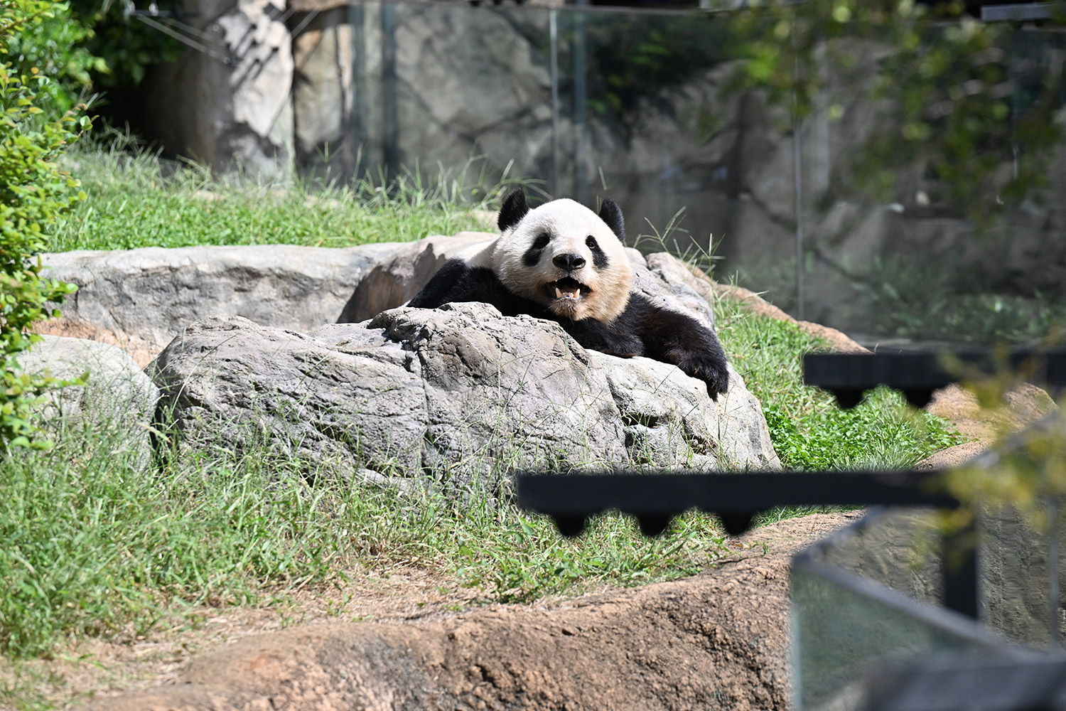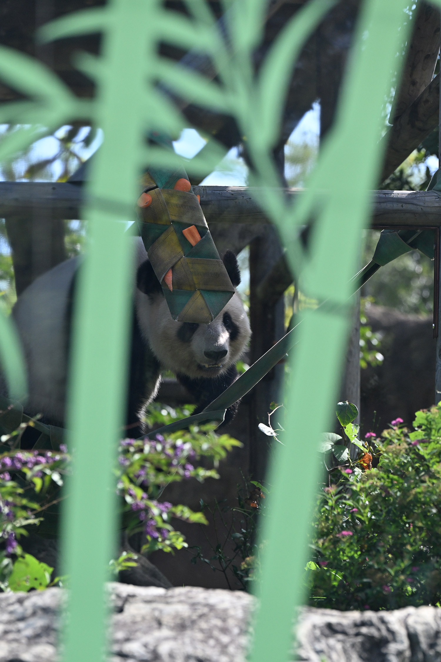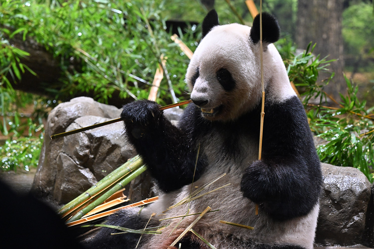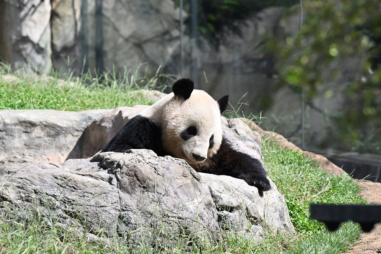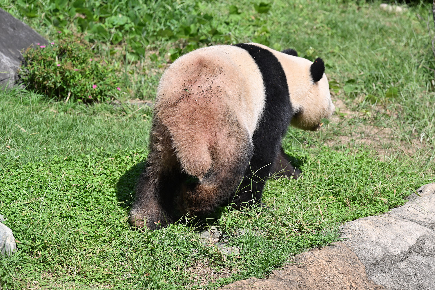 今日のパンダは10:00からです。今日も日差しはやや強めでしたが気温は控えめだったので2頭ともお外でした。