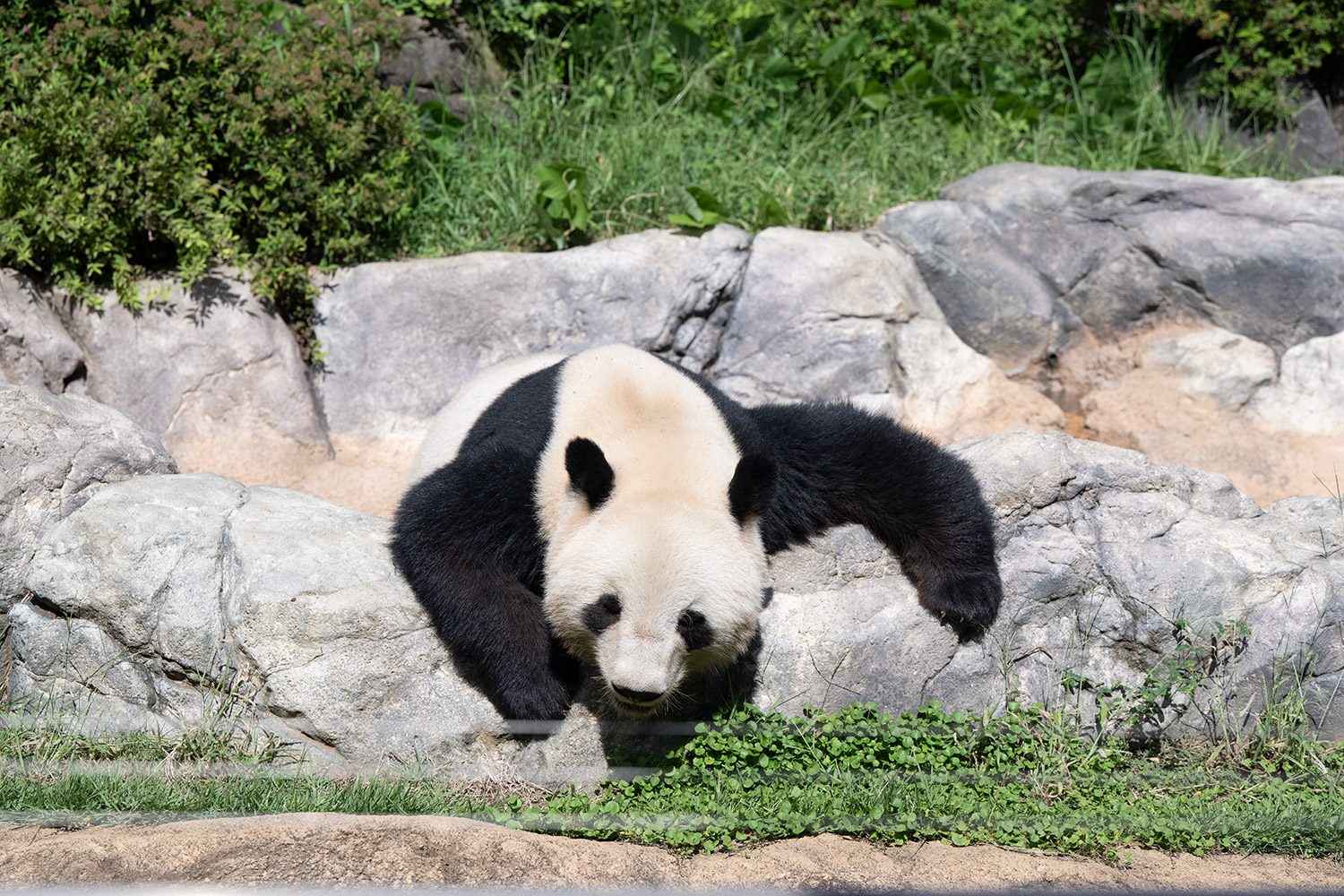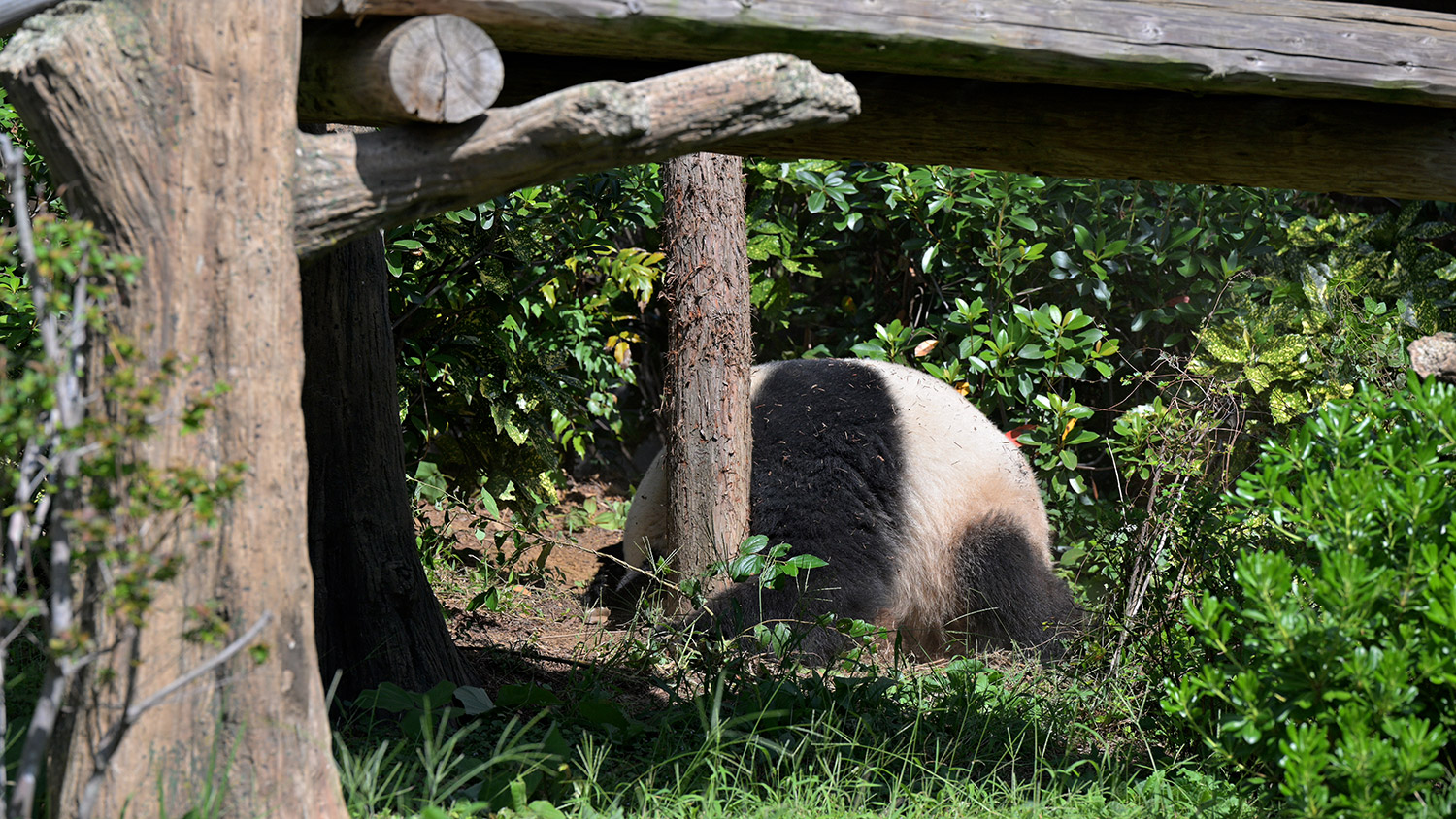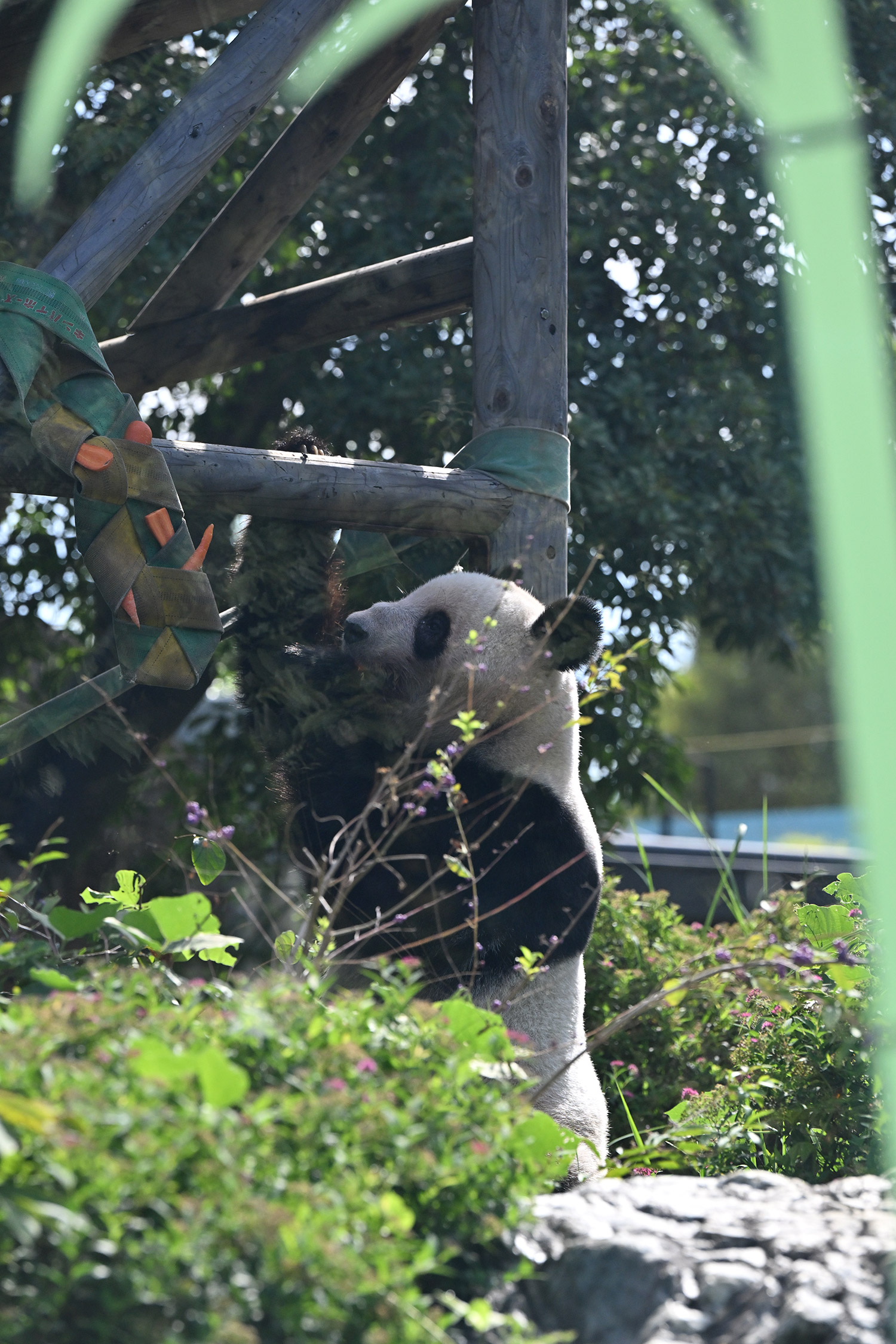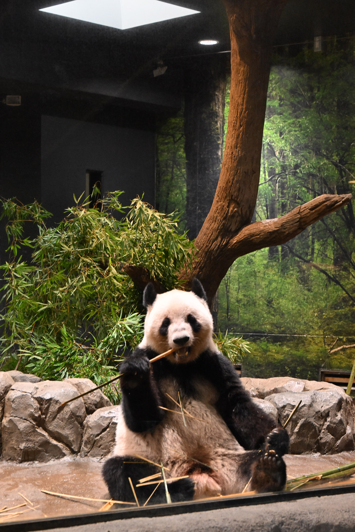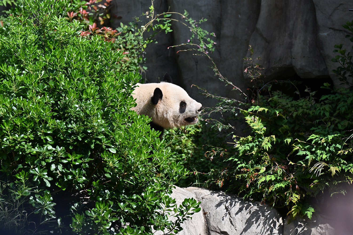 今日のパンダは10:00からです。今日も日差しはやや強めでしたが気温は控えめだったので2頭ともお外でした。