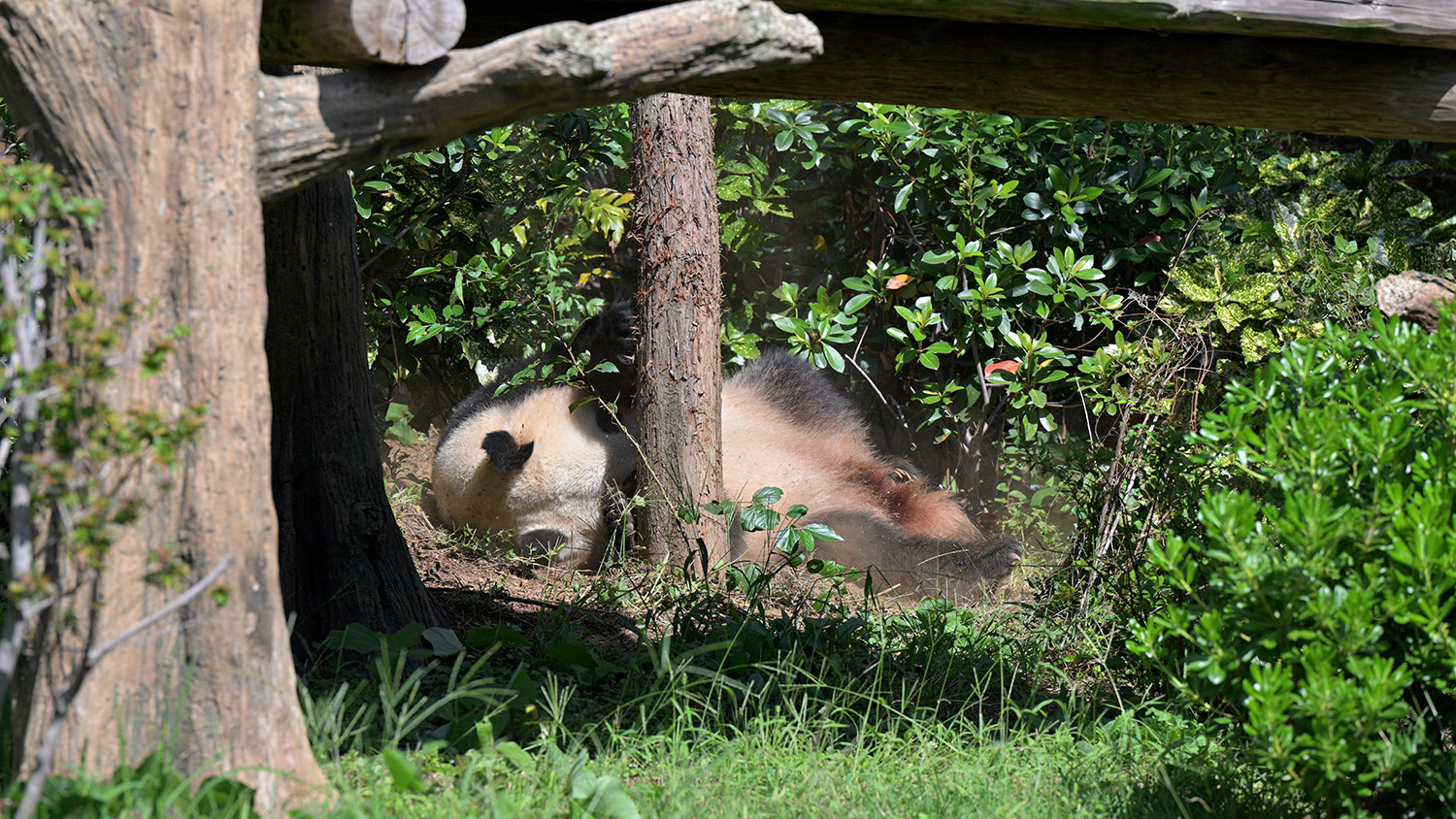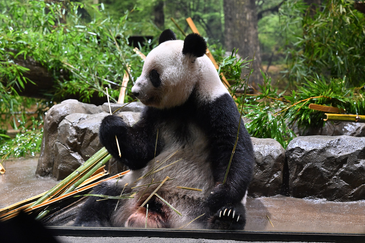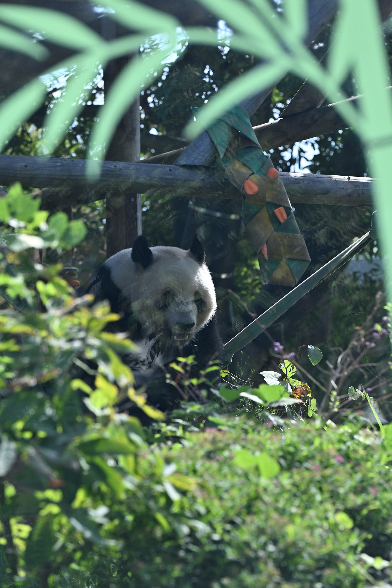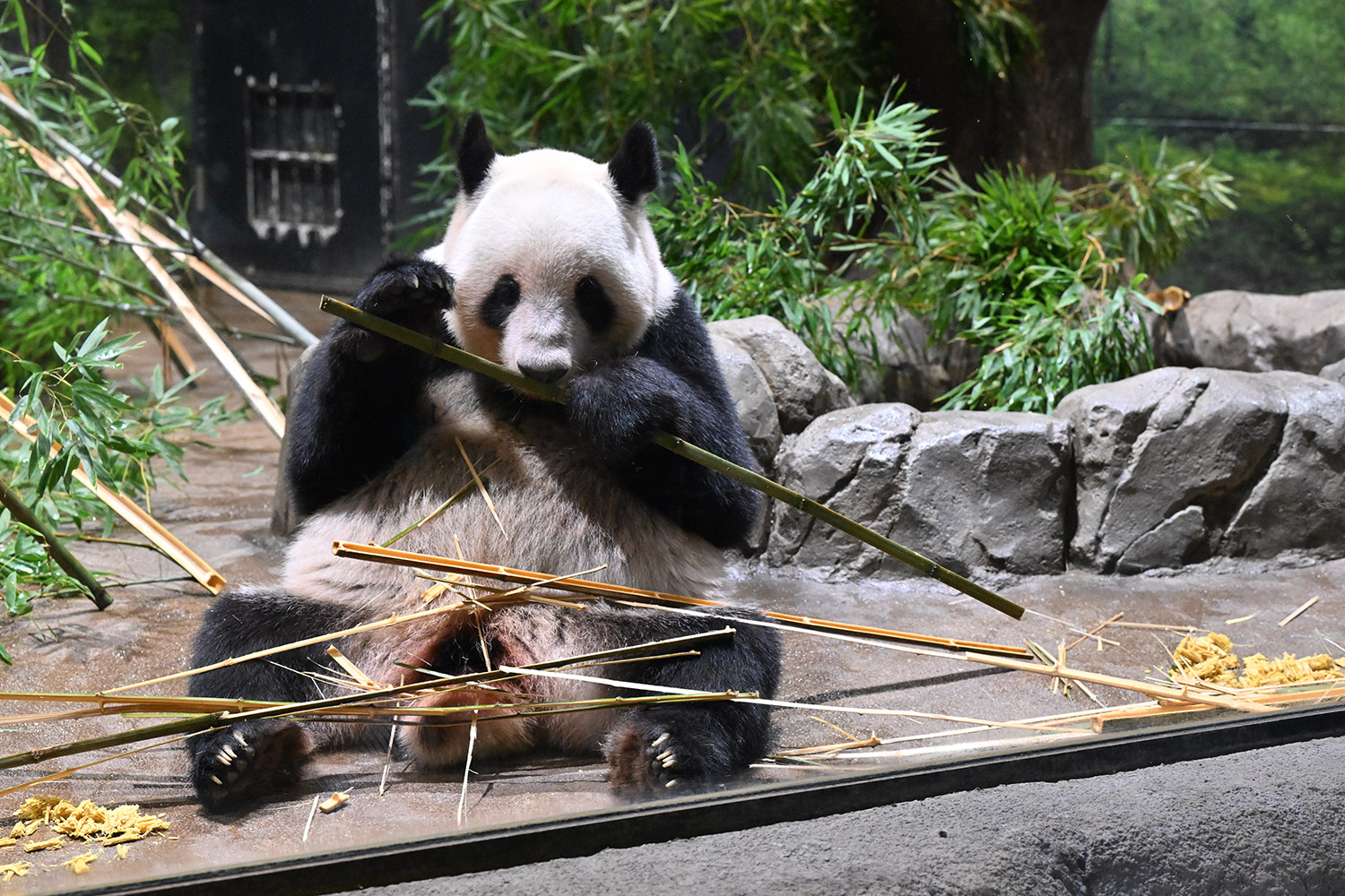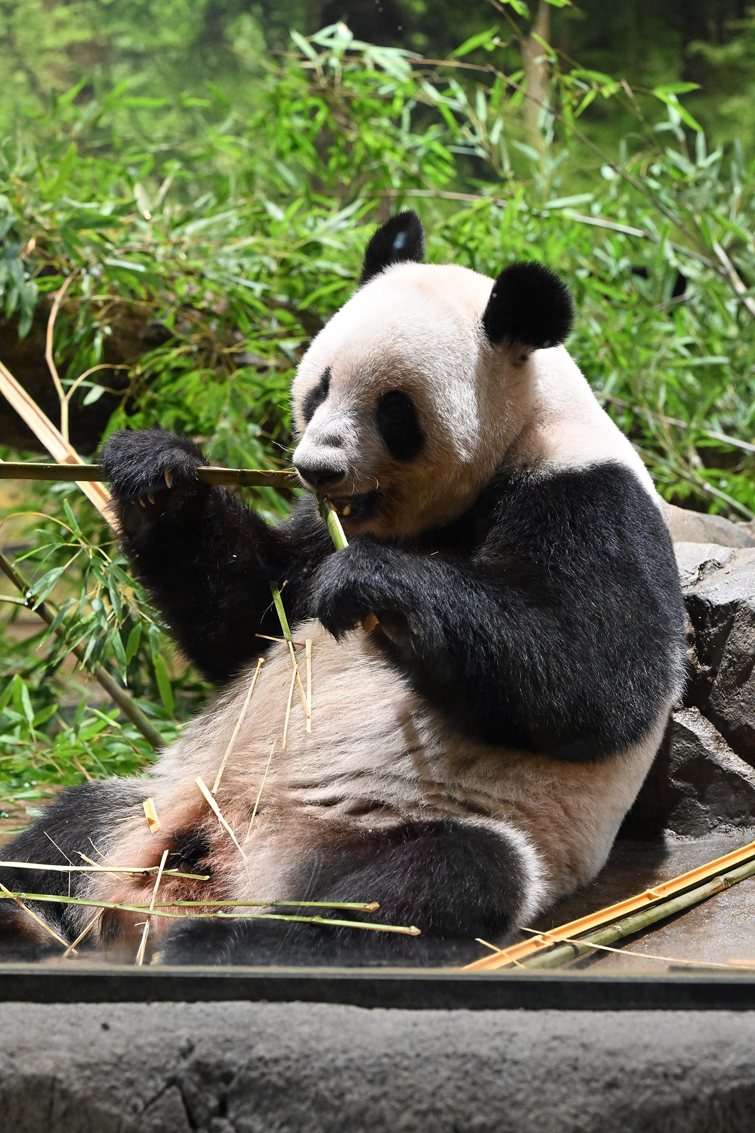 今日のパンダは10:00からです。今日も日差しはやや強めでしたが気温は控えめだったので2頭ともお外でした。