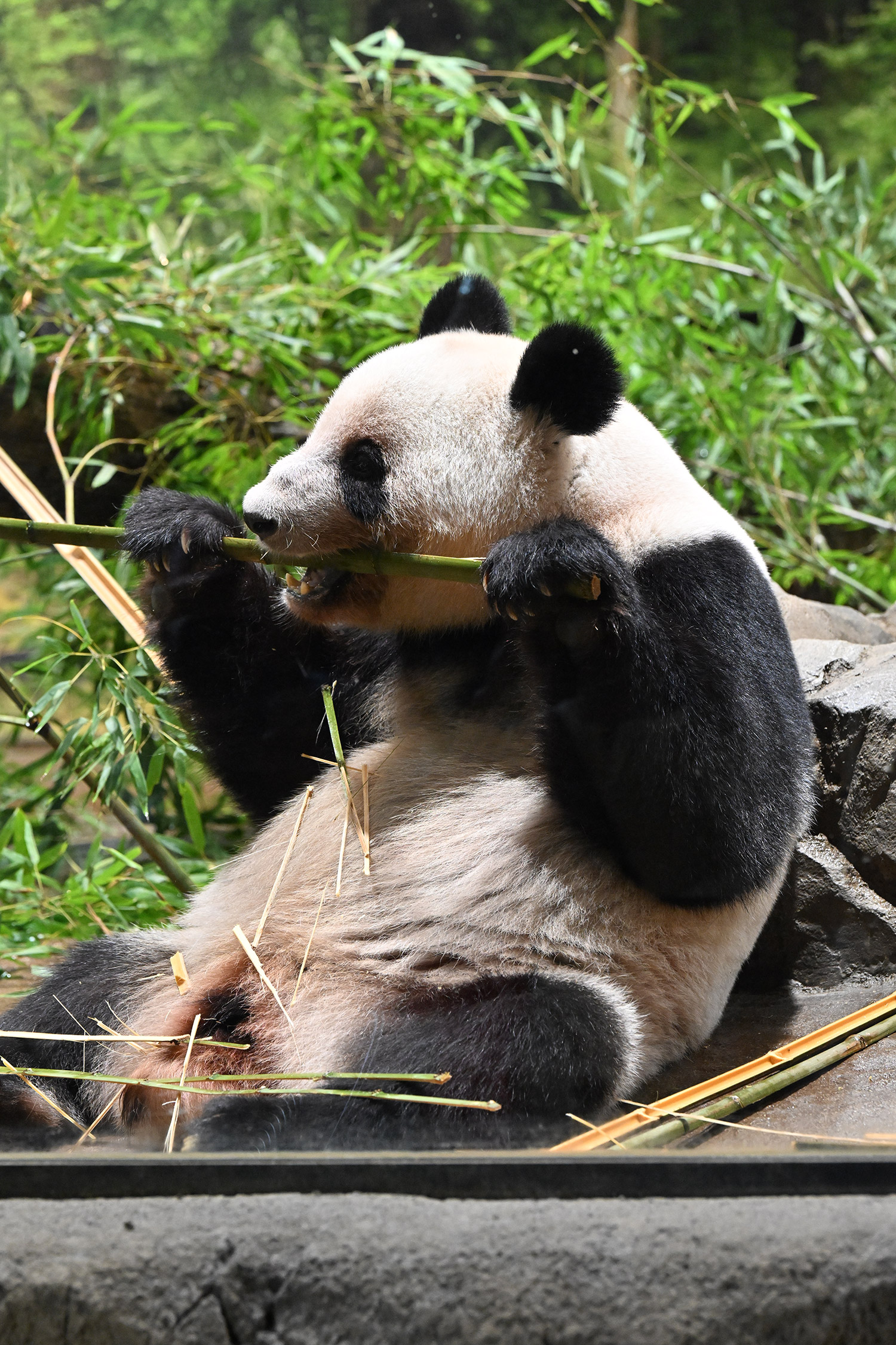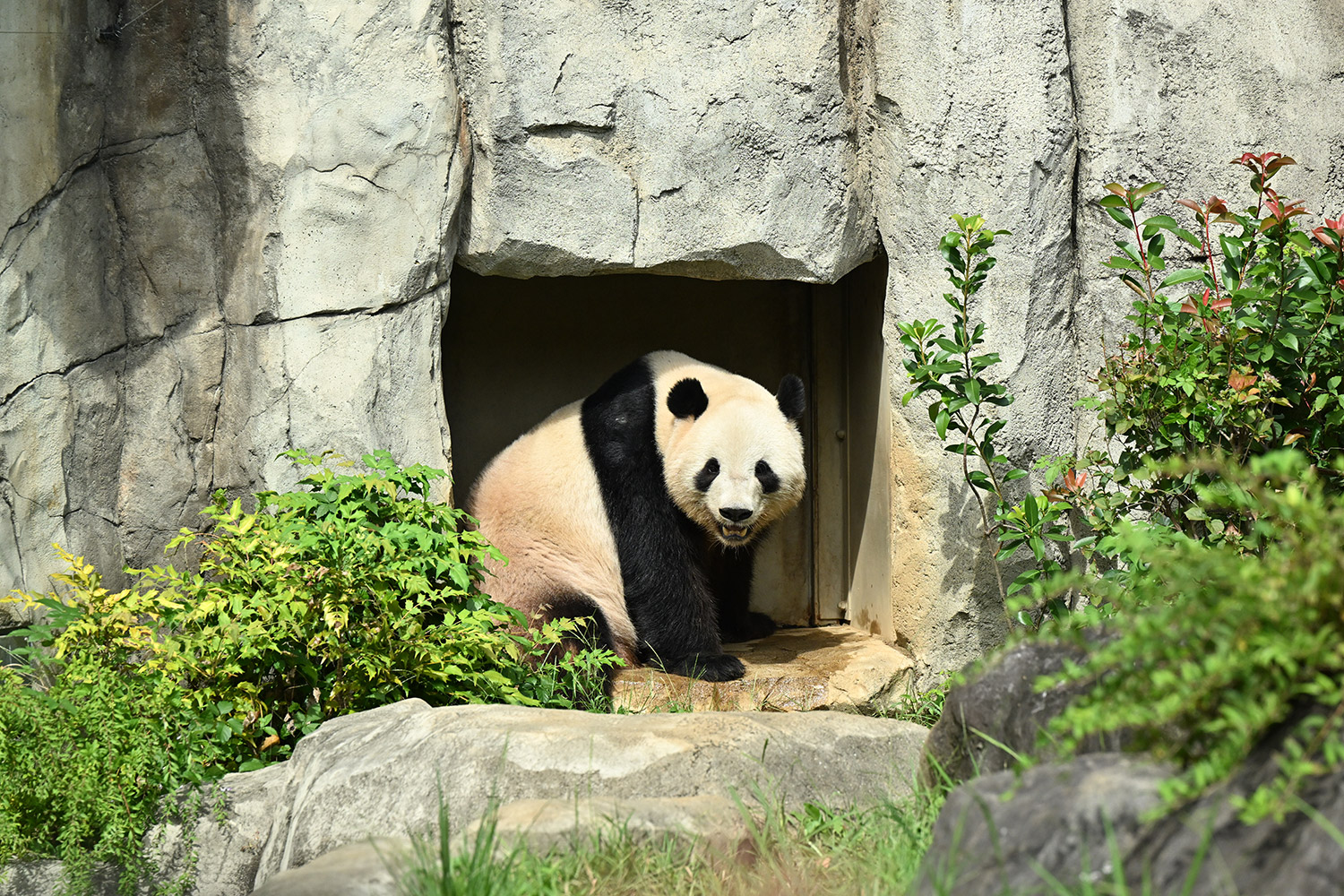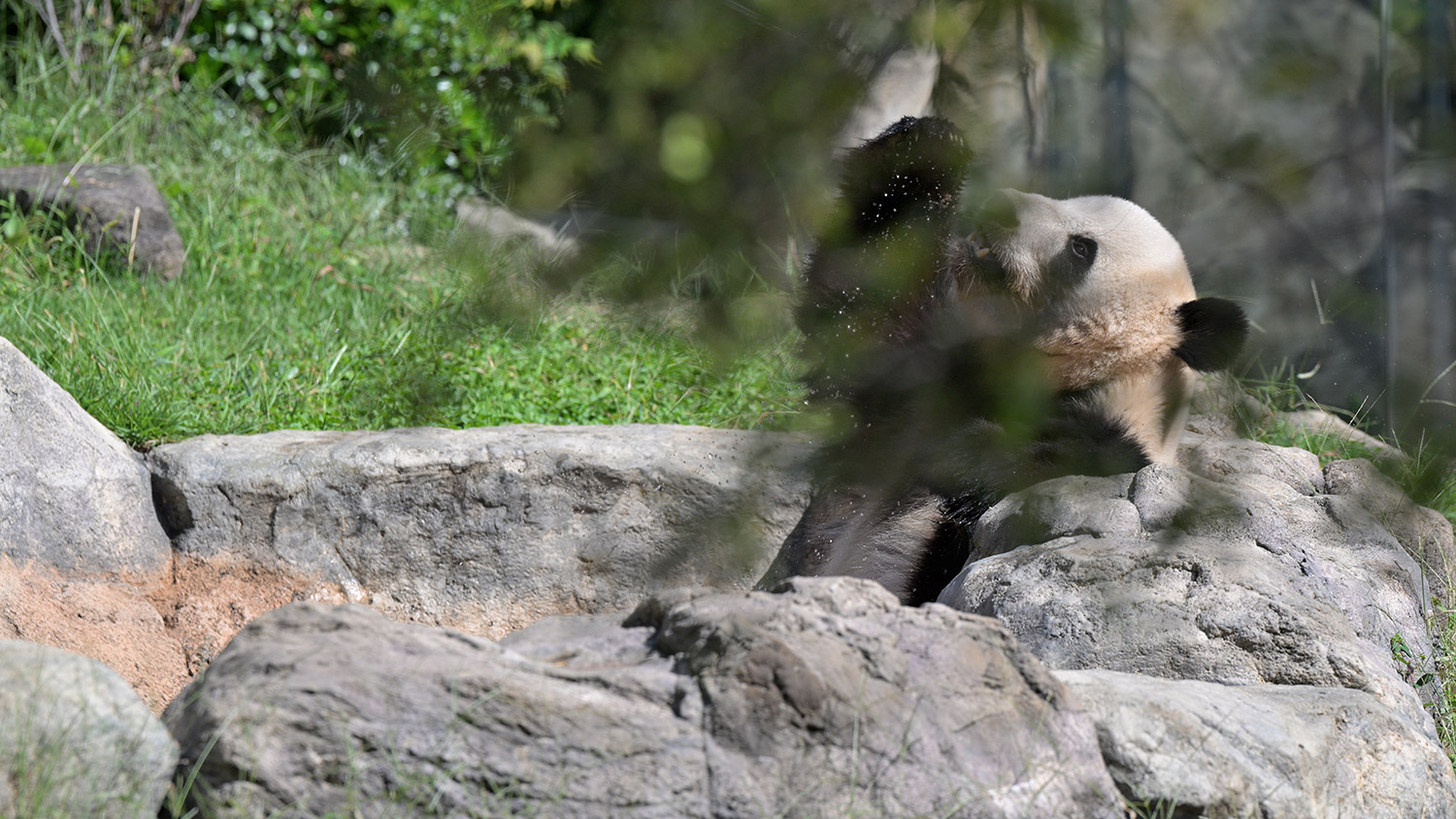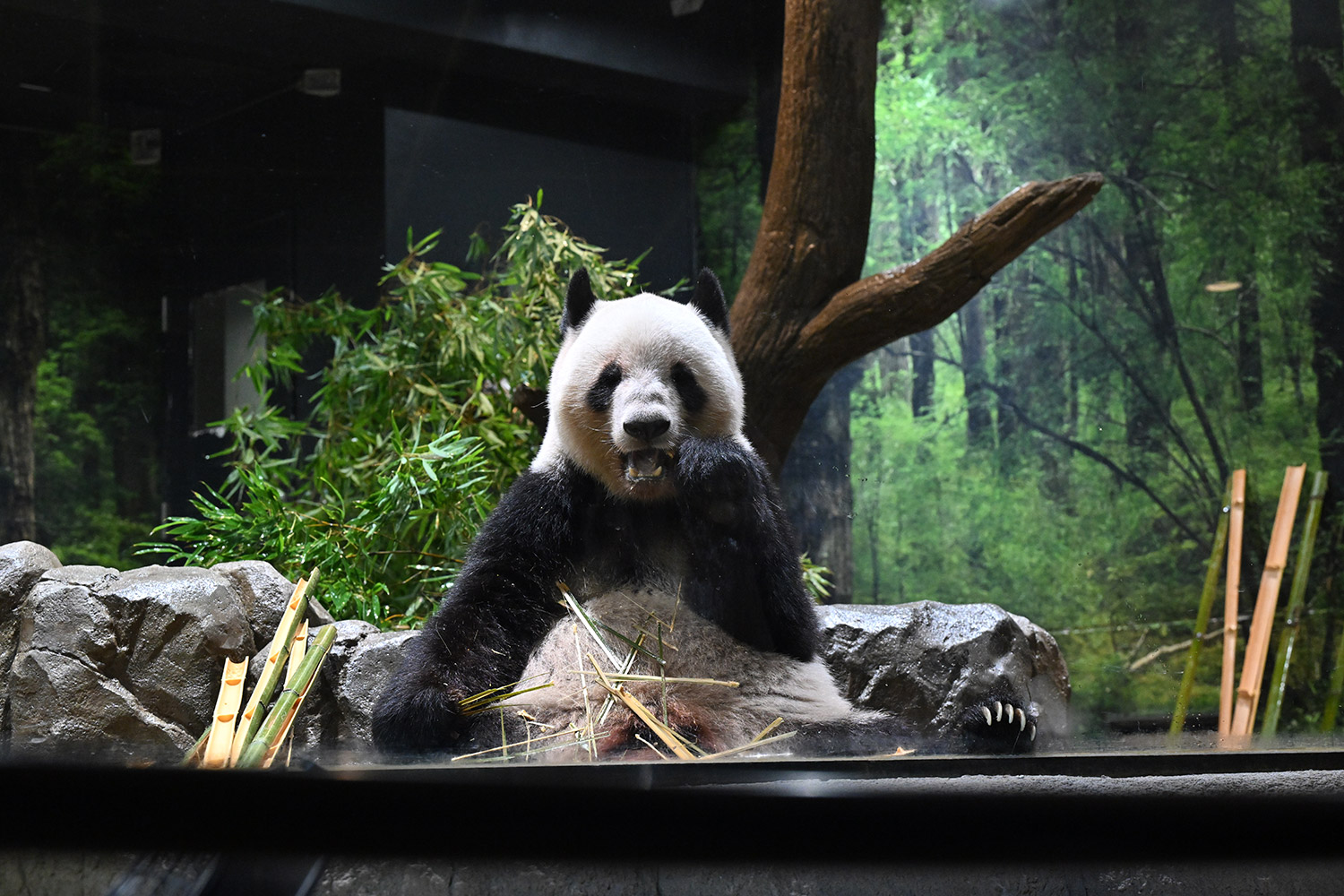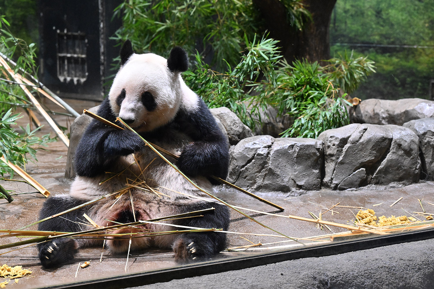今日のパンダは10:00からです。今日も日差しはやや強めでしたが気温は控えめだったので2頭ともお外でした。