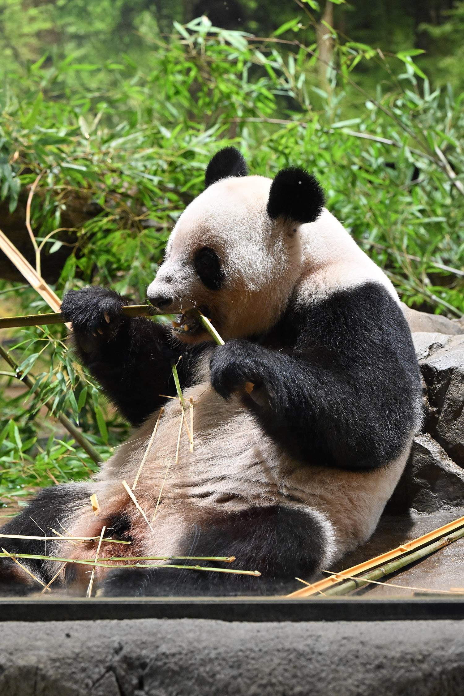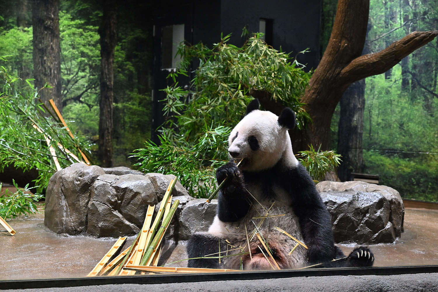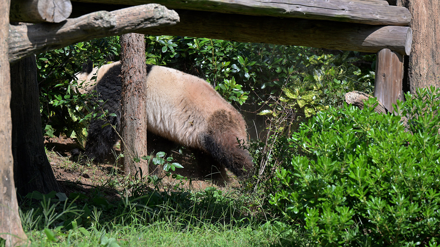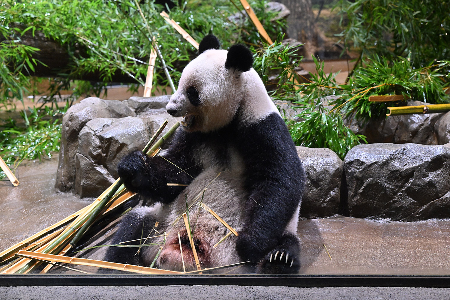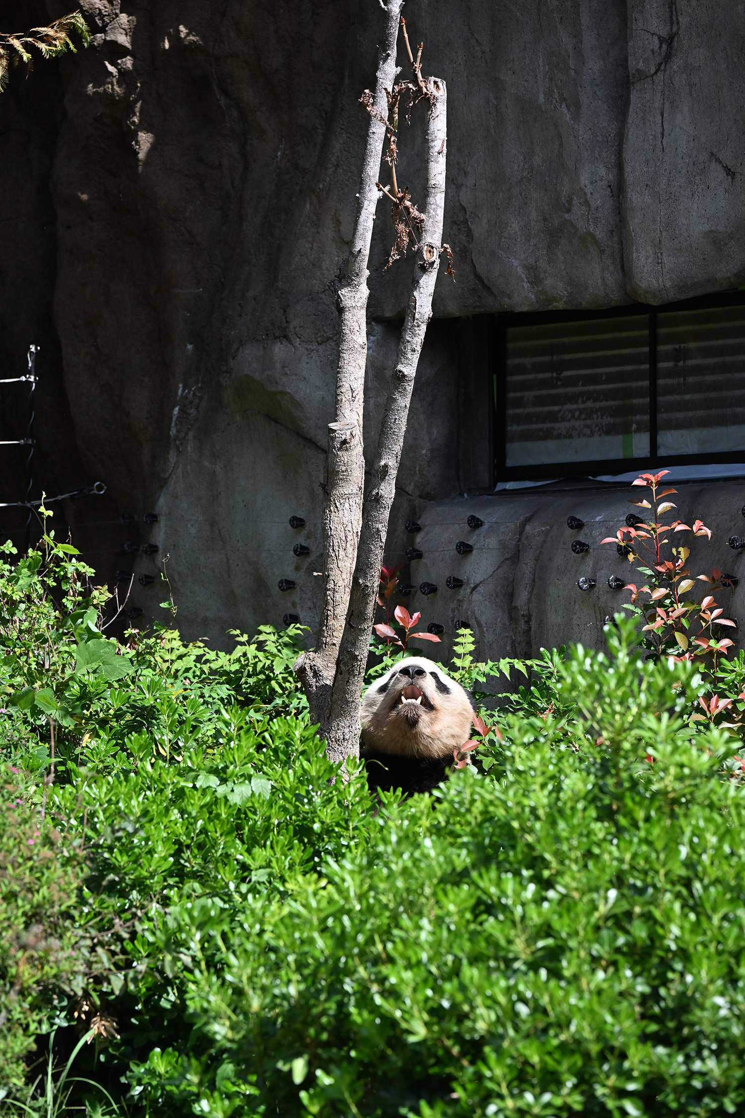 今日のパンダは10:00からです。今日も日差しはやや強めでしたが気温は控えめだったので2頭ともお外でした。