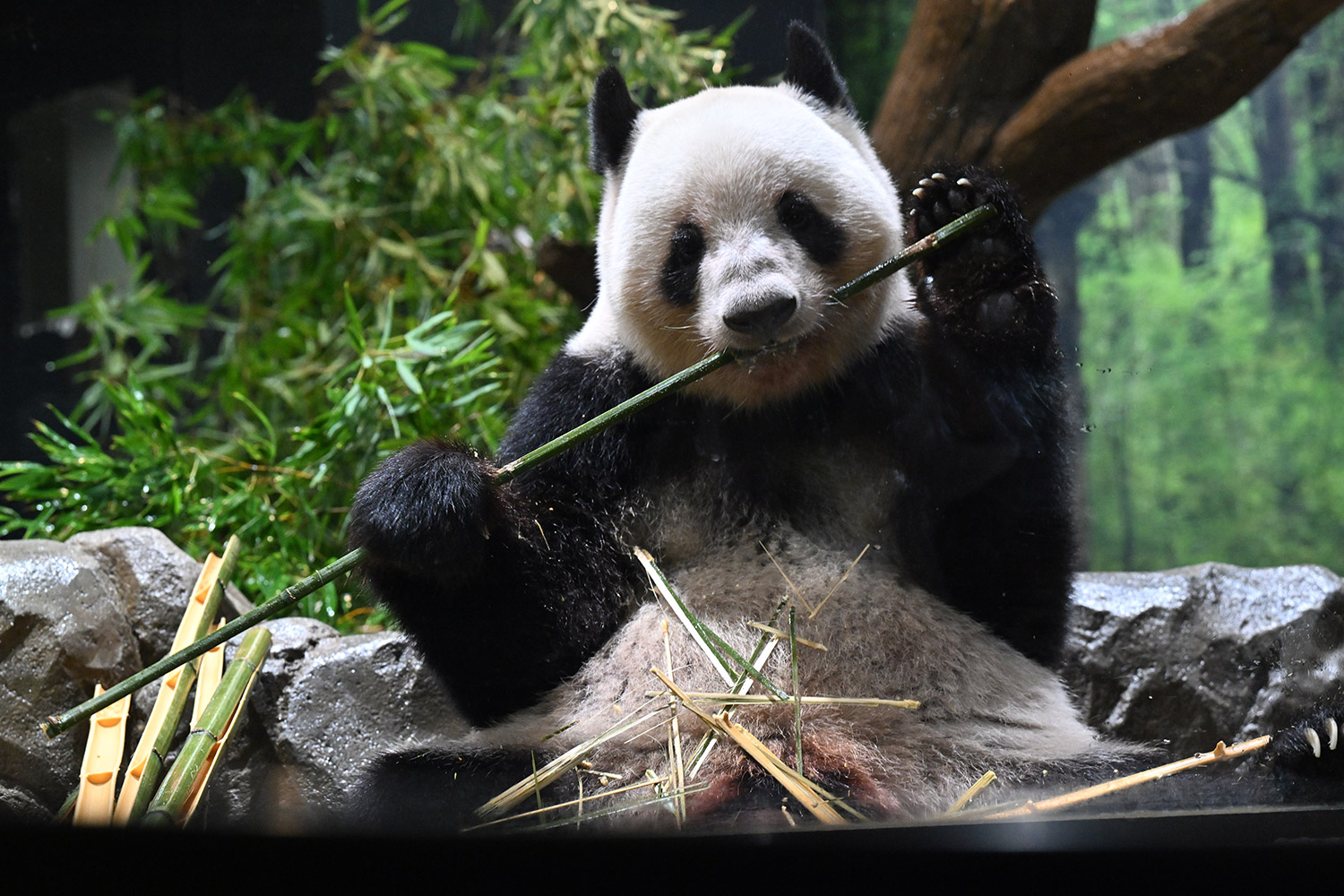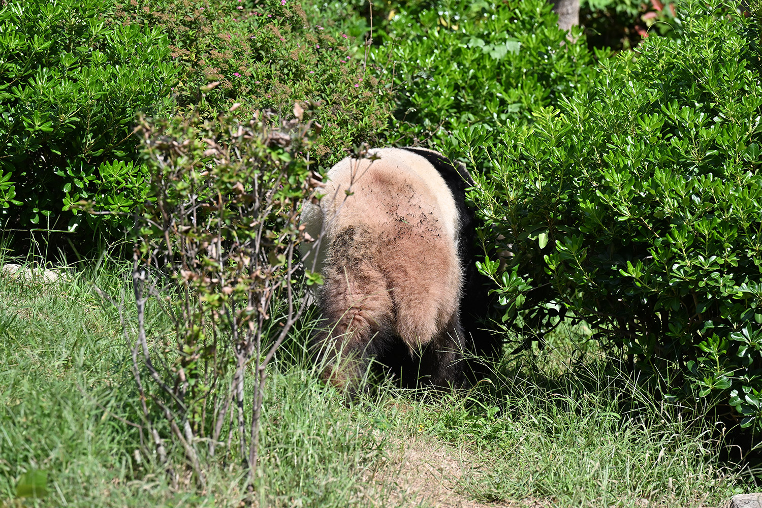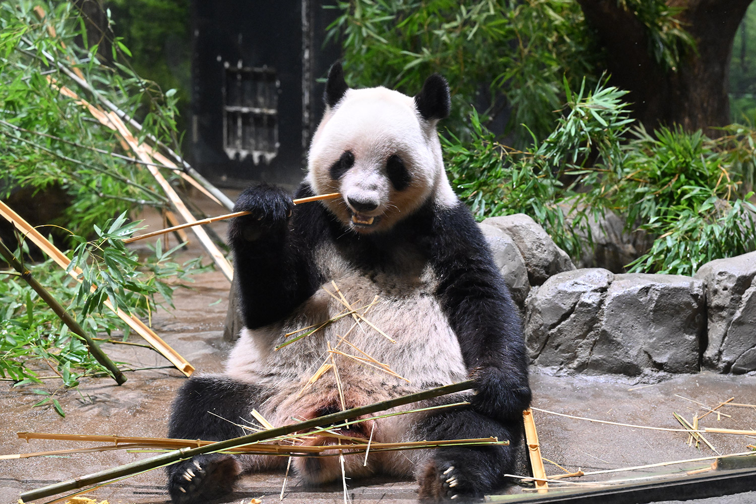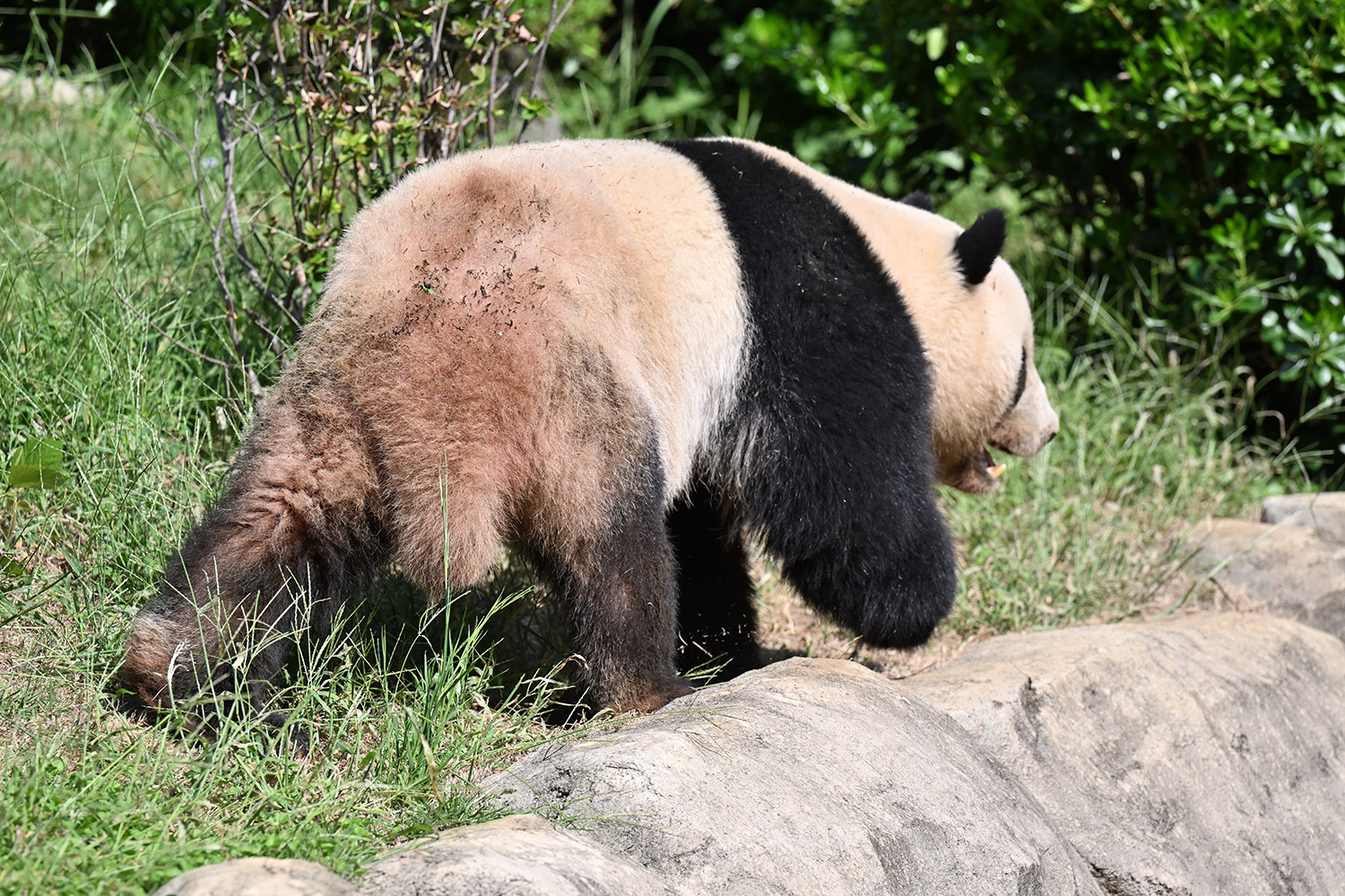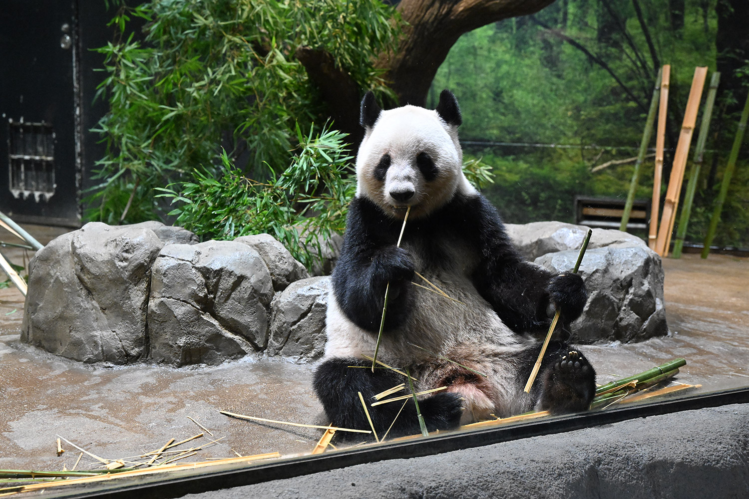 今日のパンダは10:00からです。今日も日差しはやや強めでしたが気温は控えめだったので2頭ともお外でした。