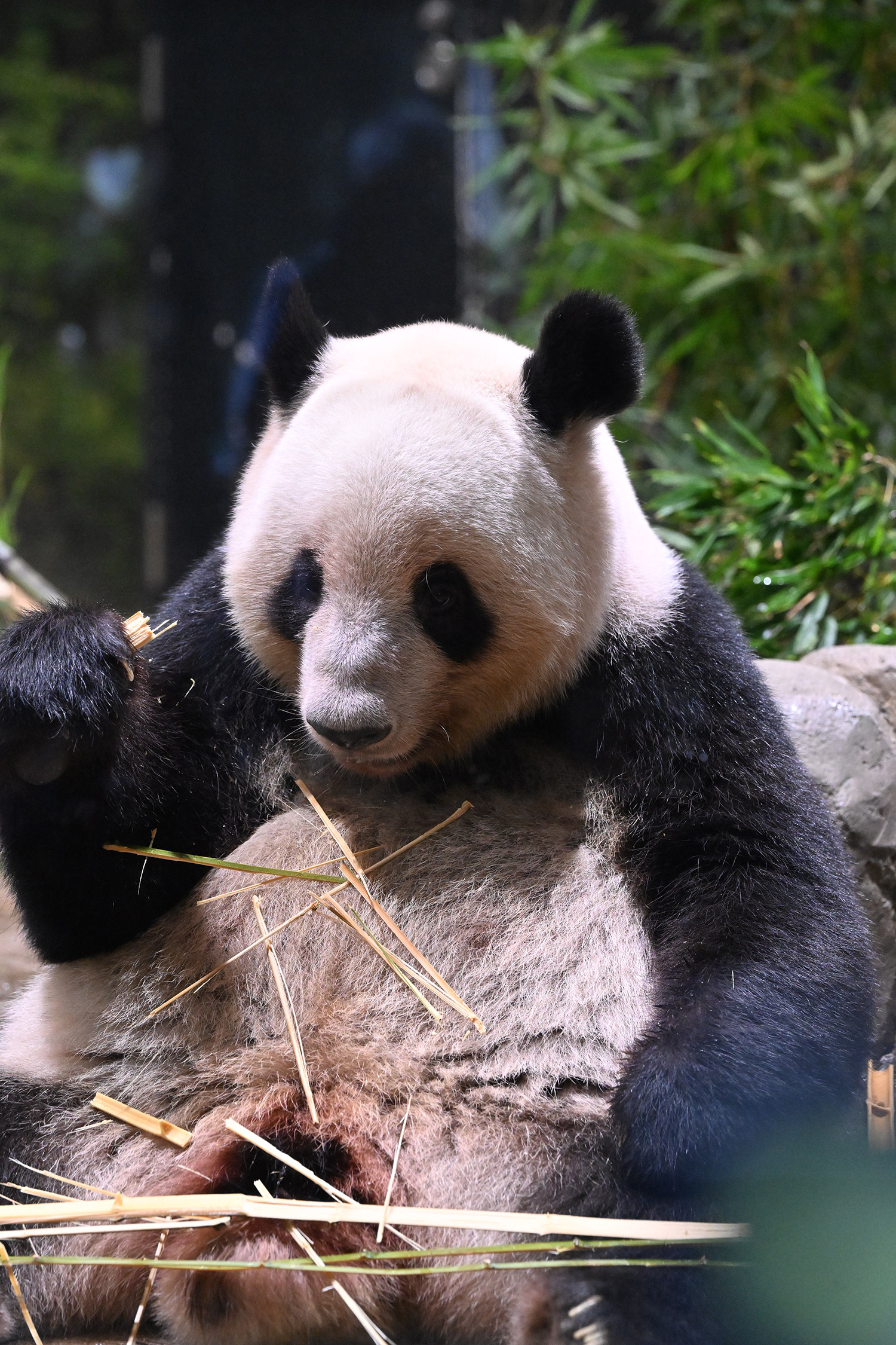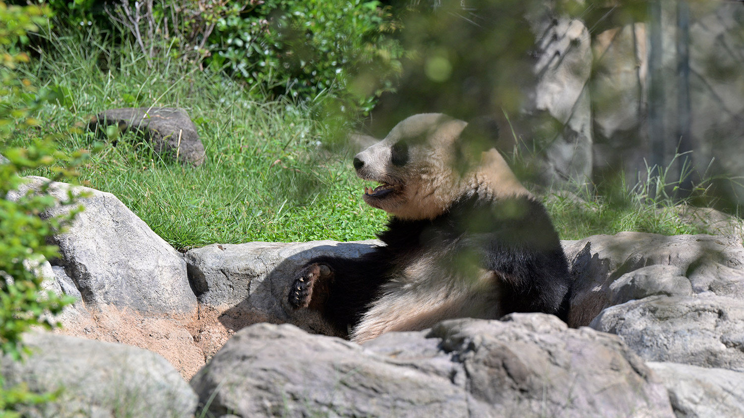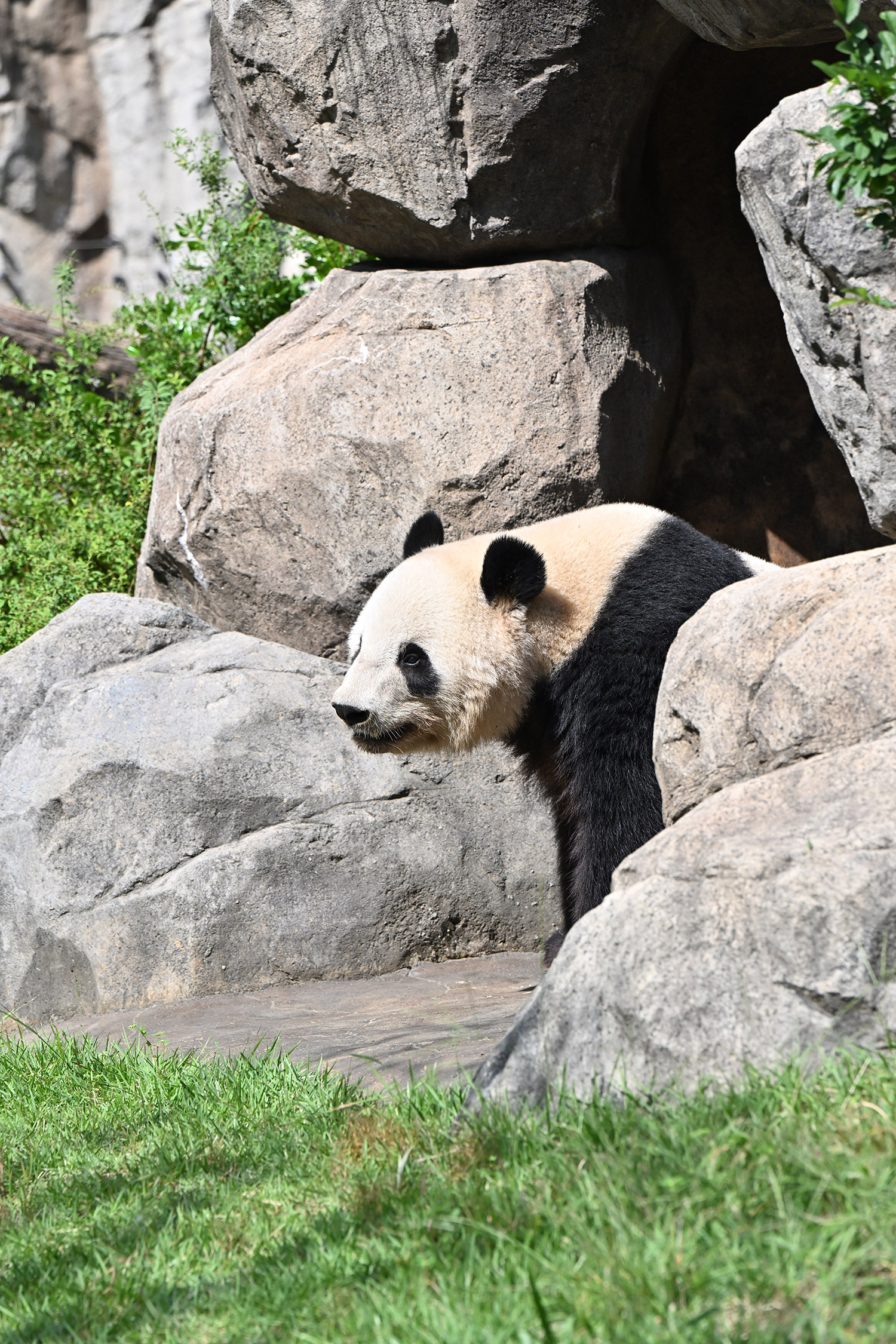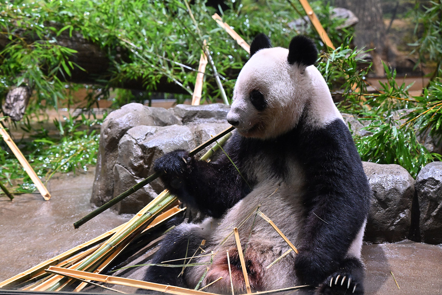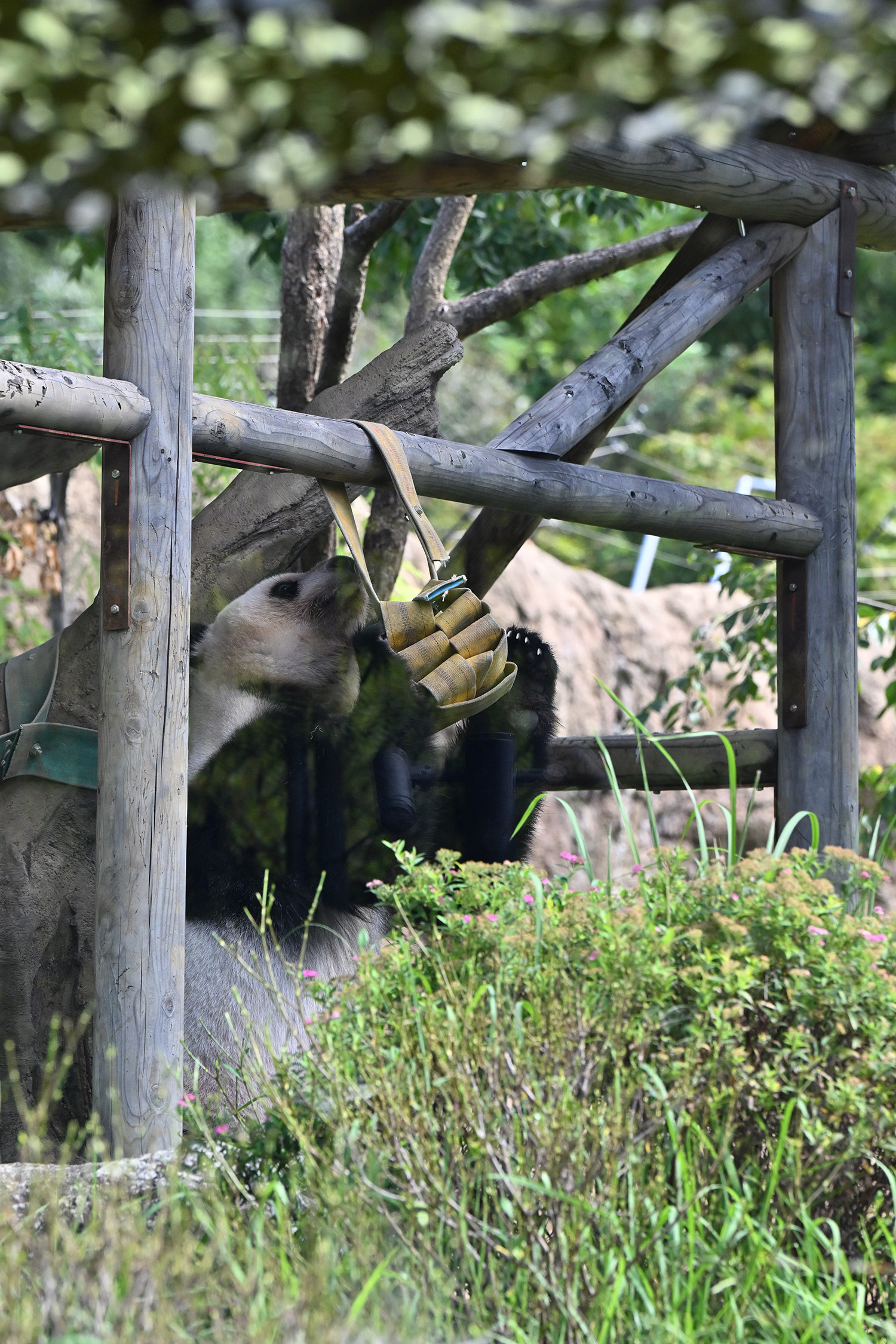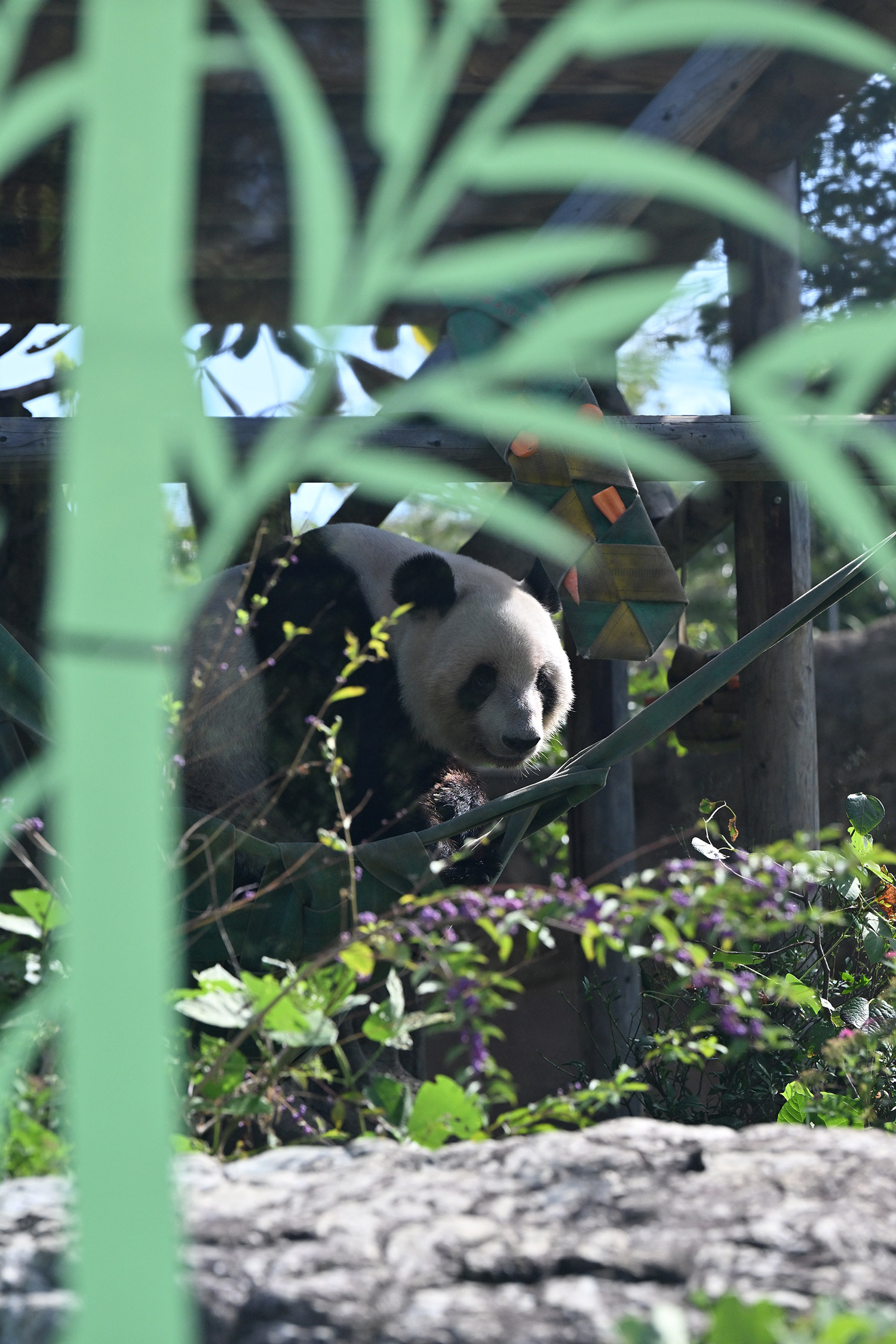 今日のパンダは10:00からです。今日も日差しはやや強めでしたが気温は控えめだったので2頭ともお外でした。