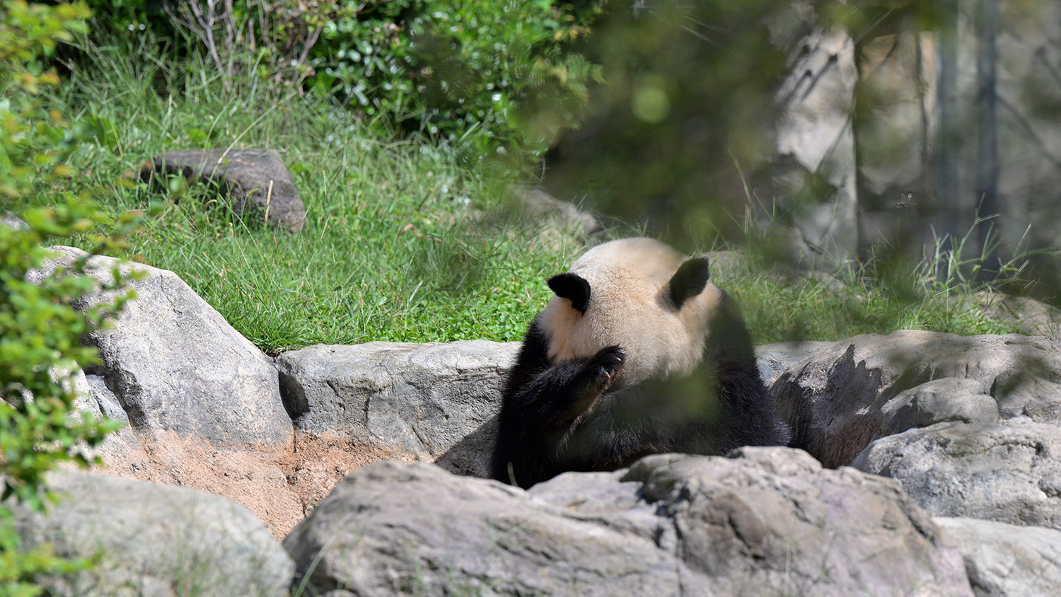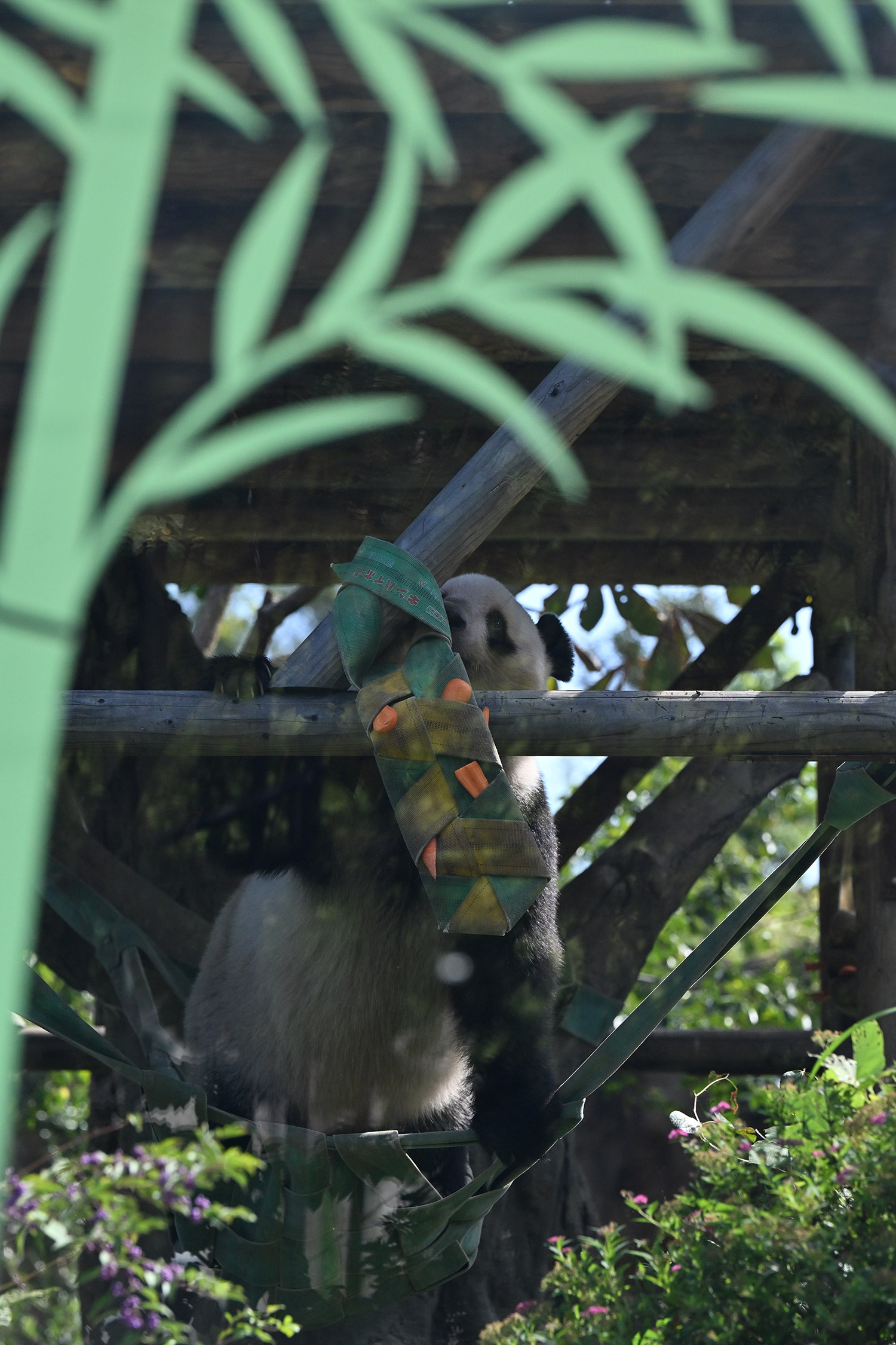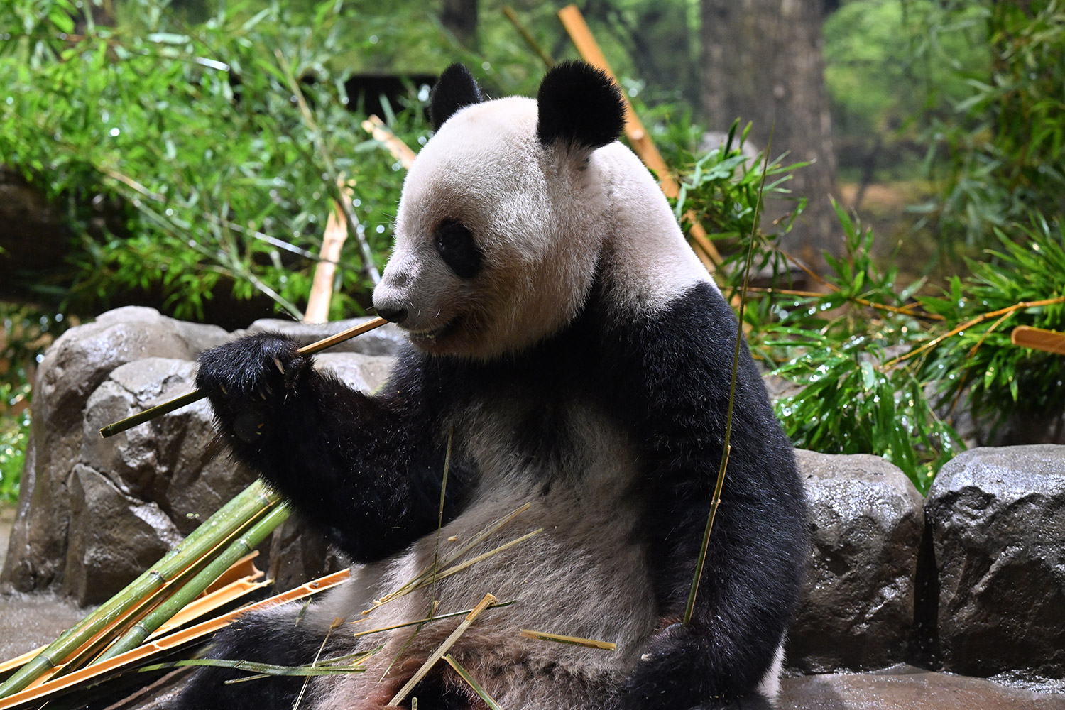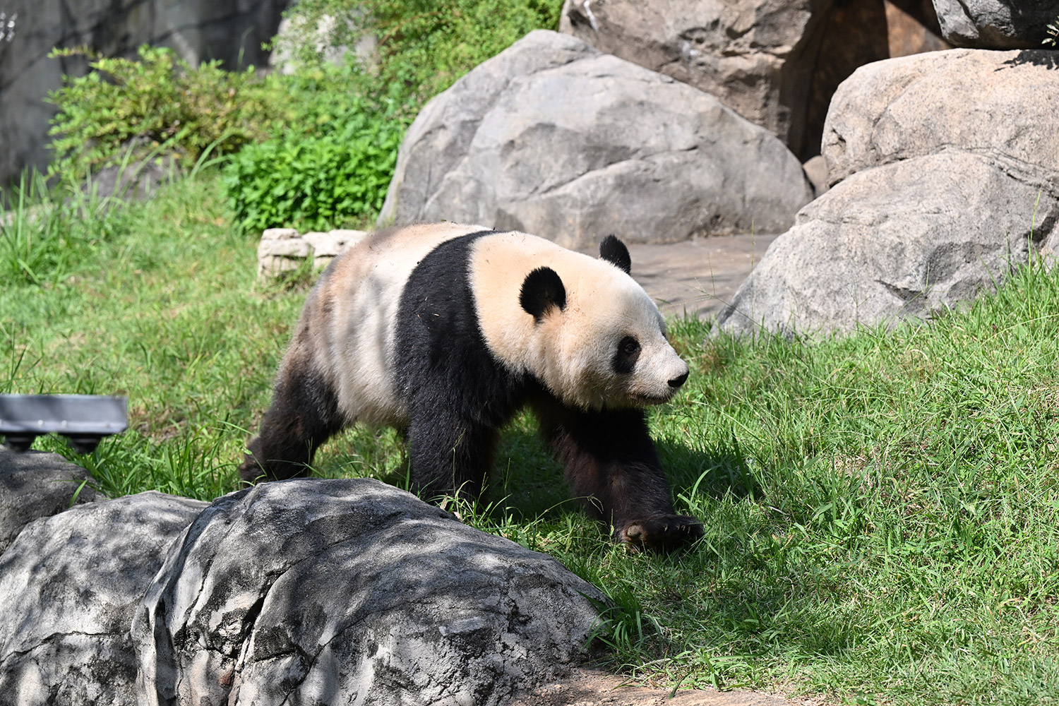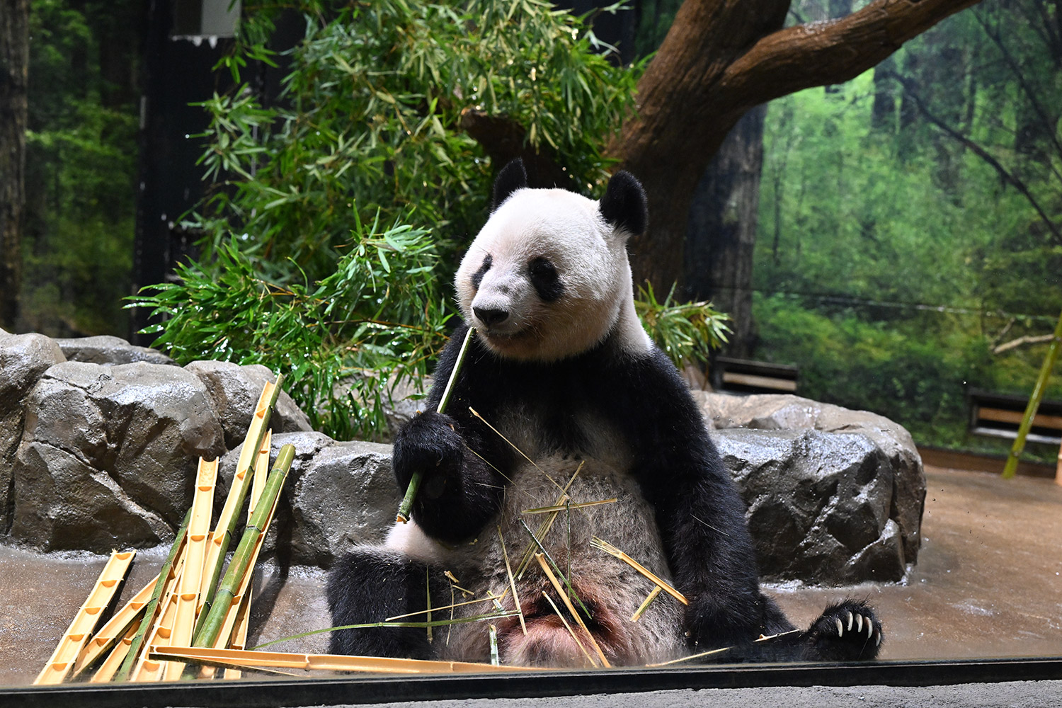 今日のパンダは10:00からです。今日も日差しはやや強めでしたが気温は控えめだったので2頭ともお外でした。