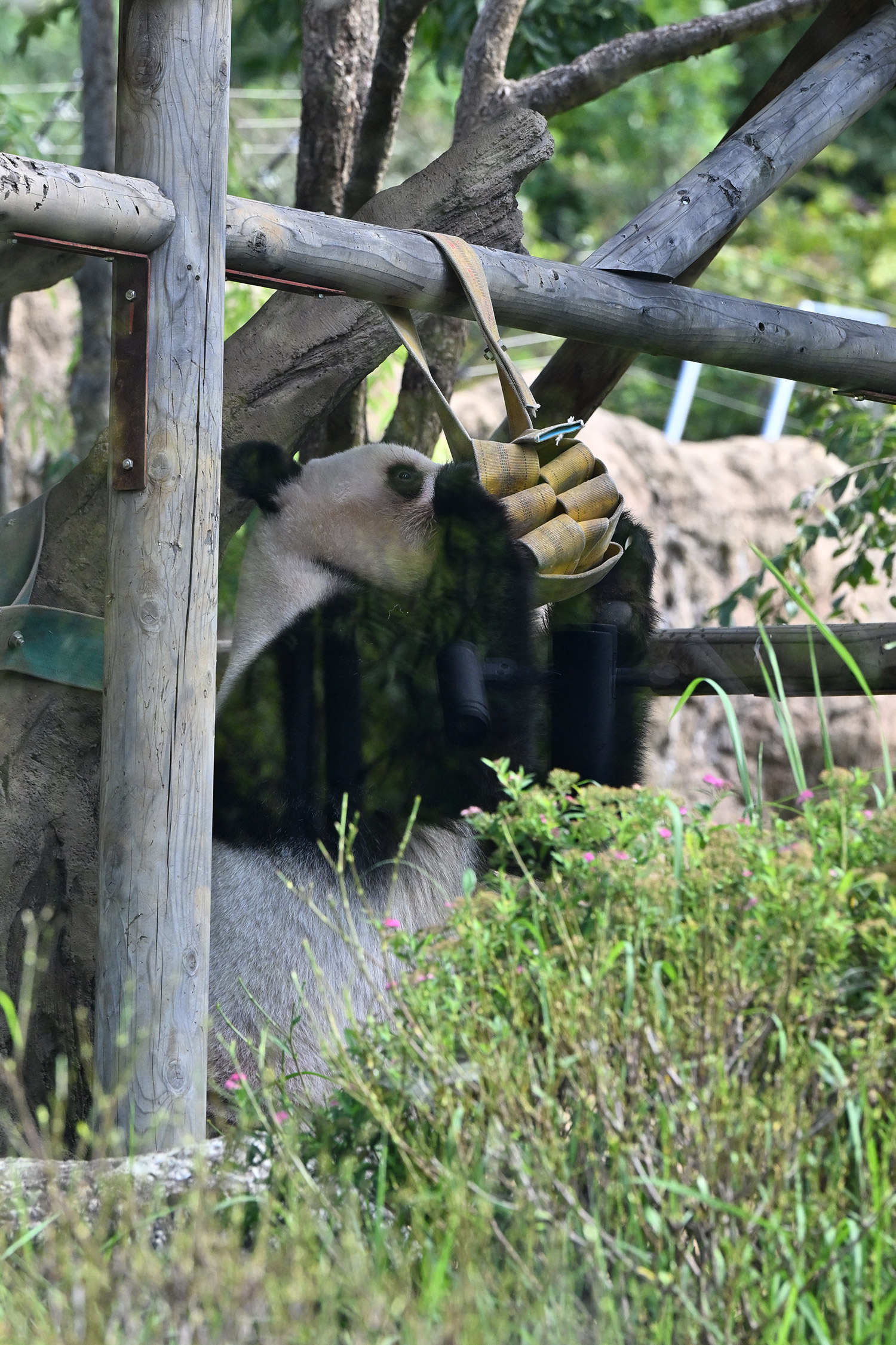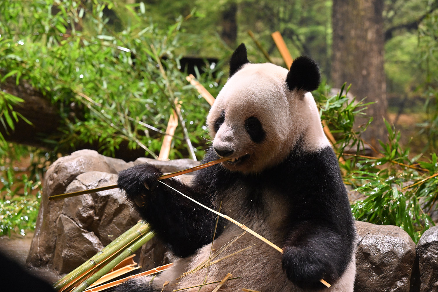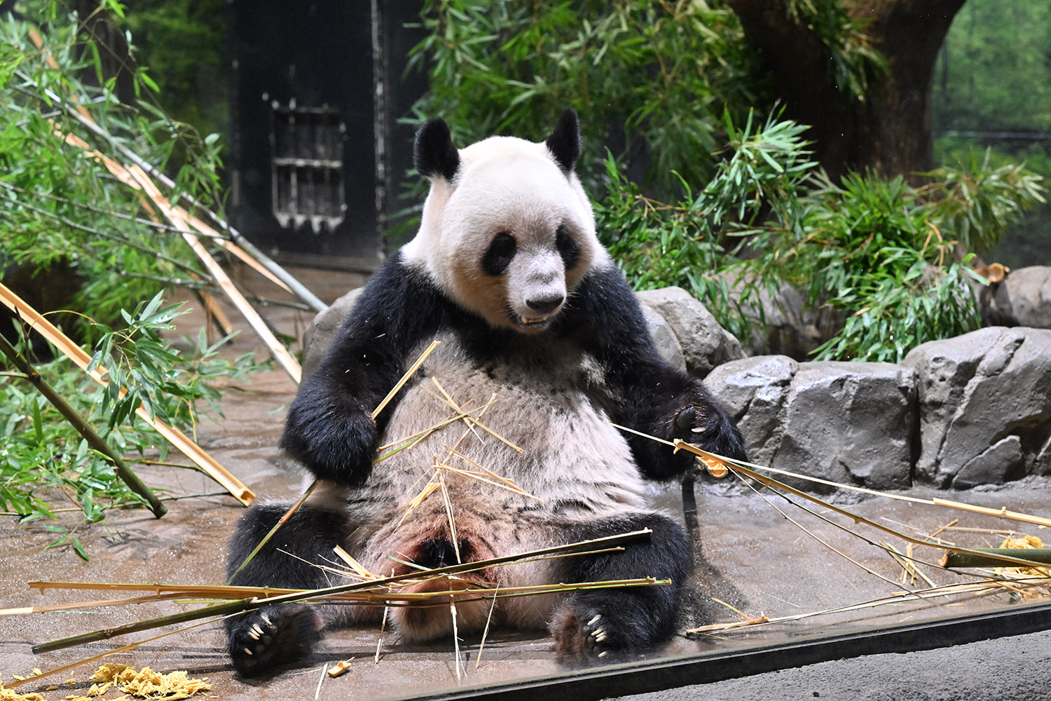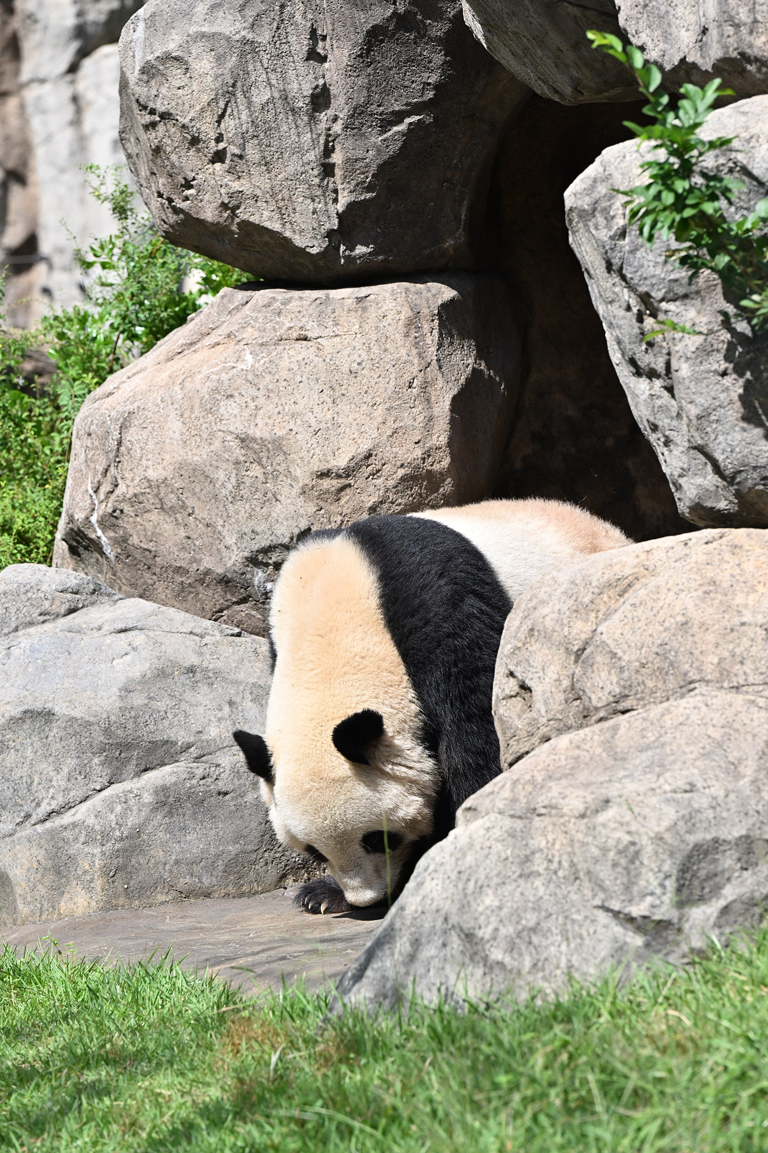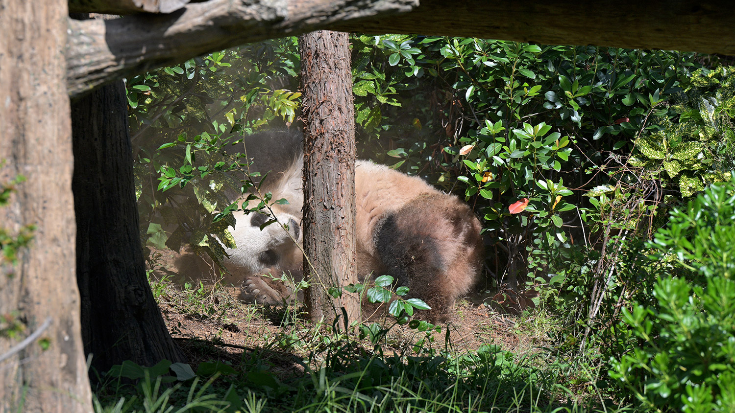 今日のパンダは10:00からです。今日も日差しはやや強めでしたが気温は控えめだったので2頭ともお外でした。